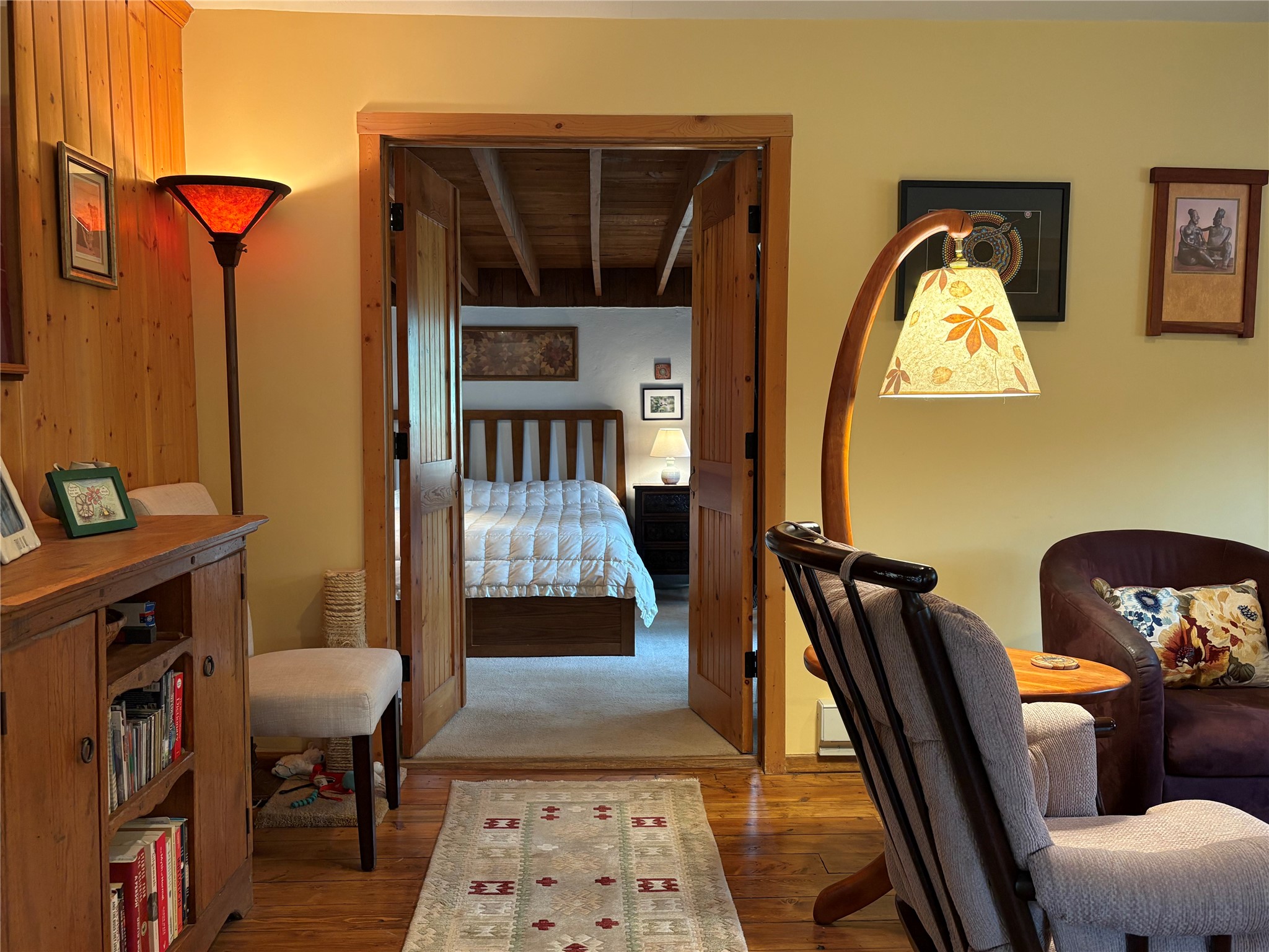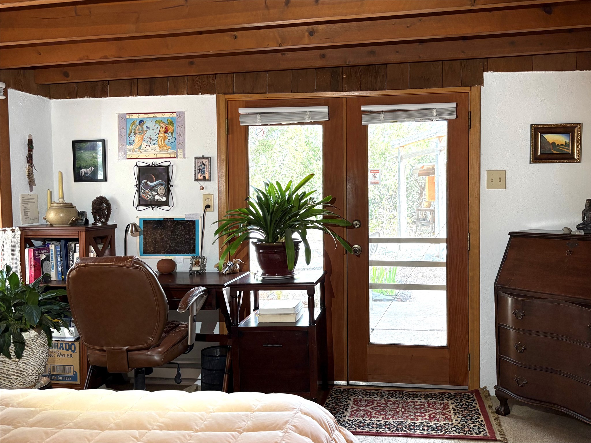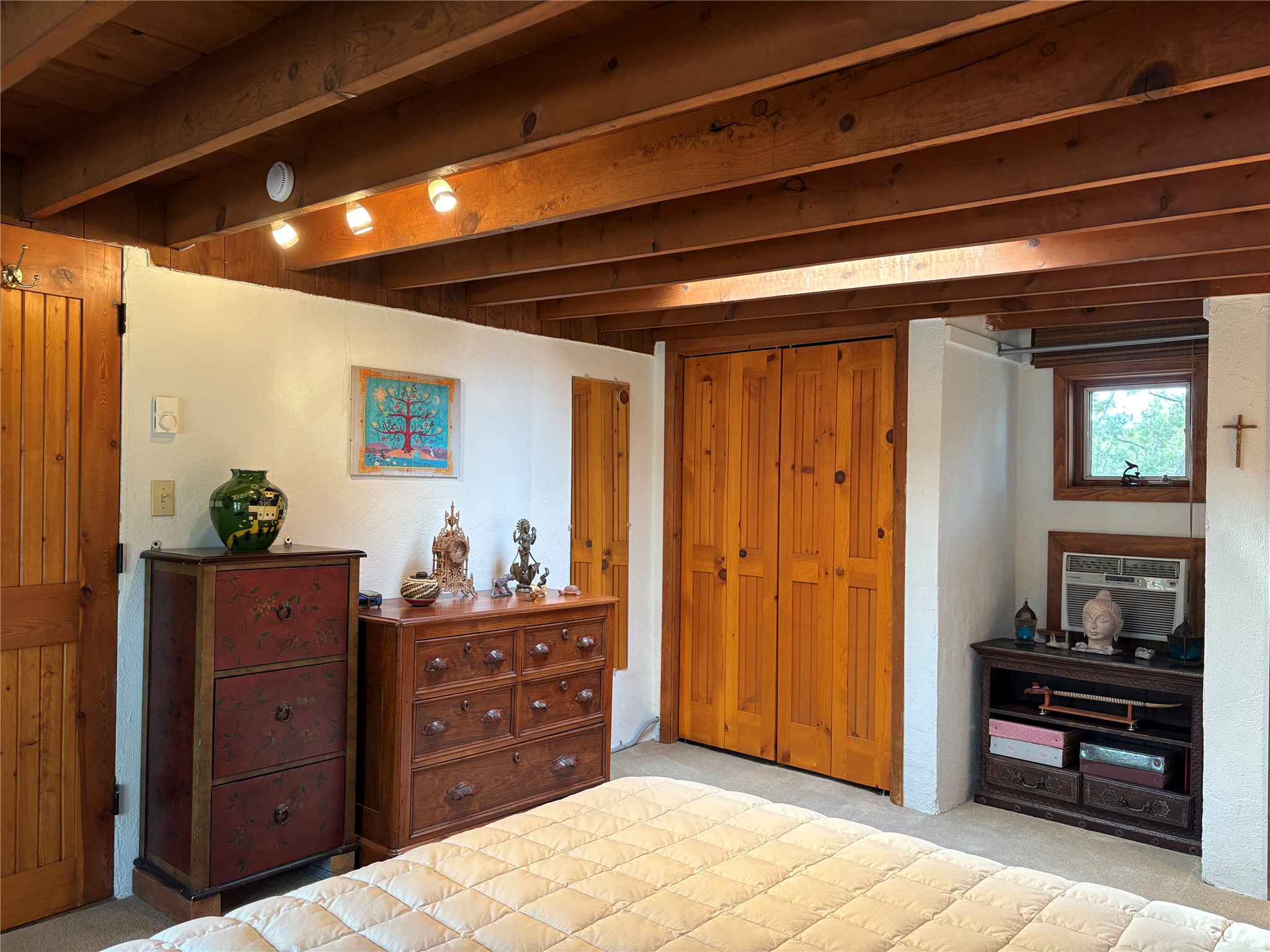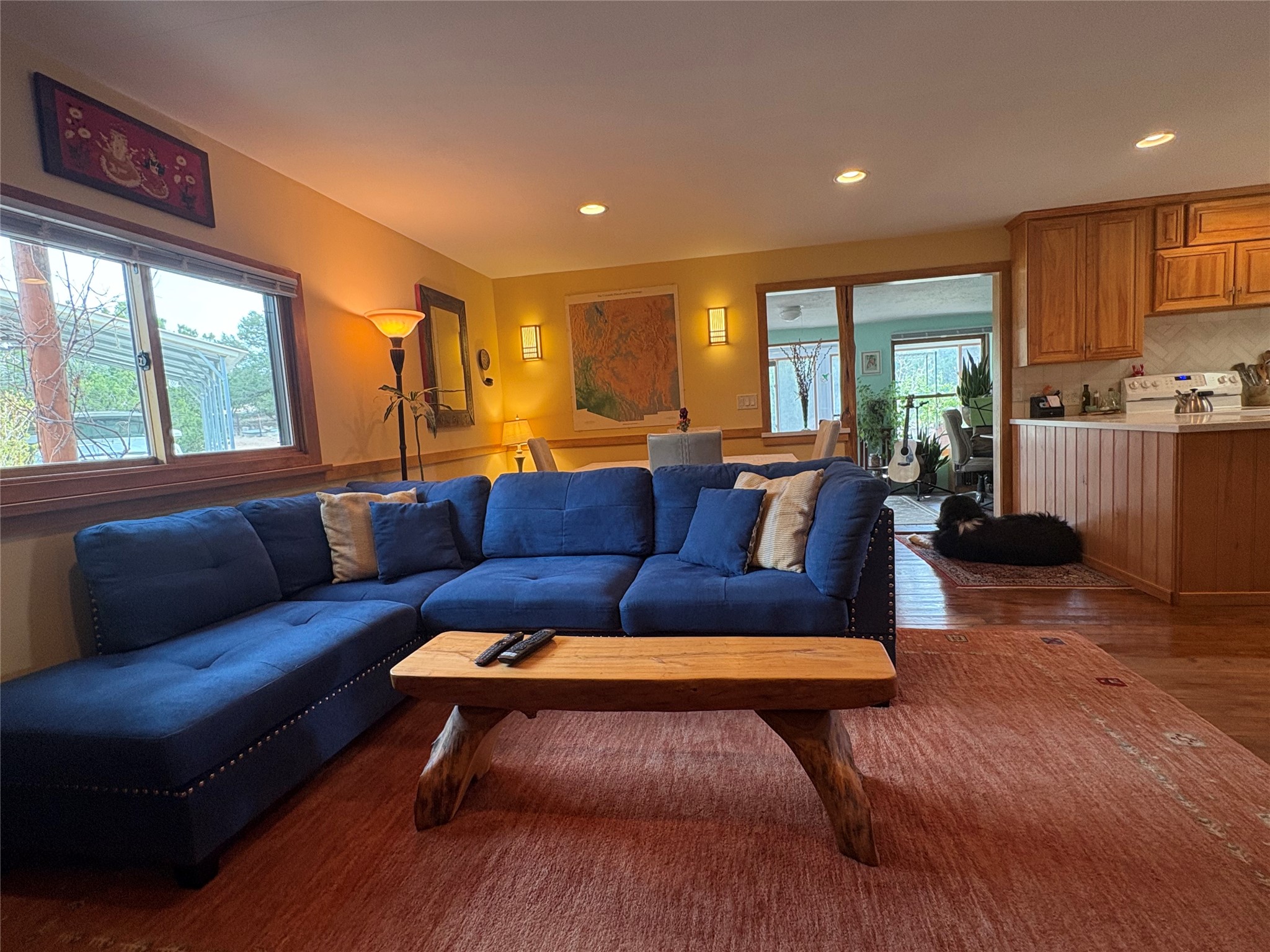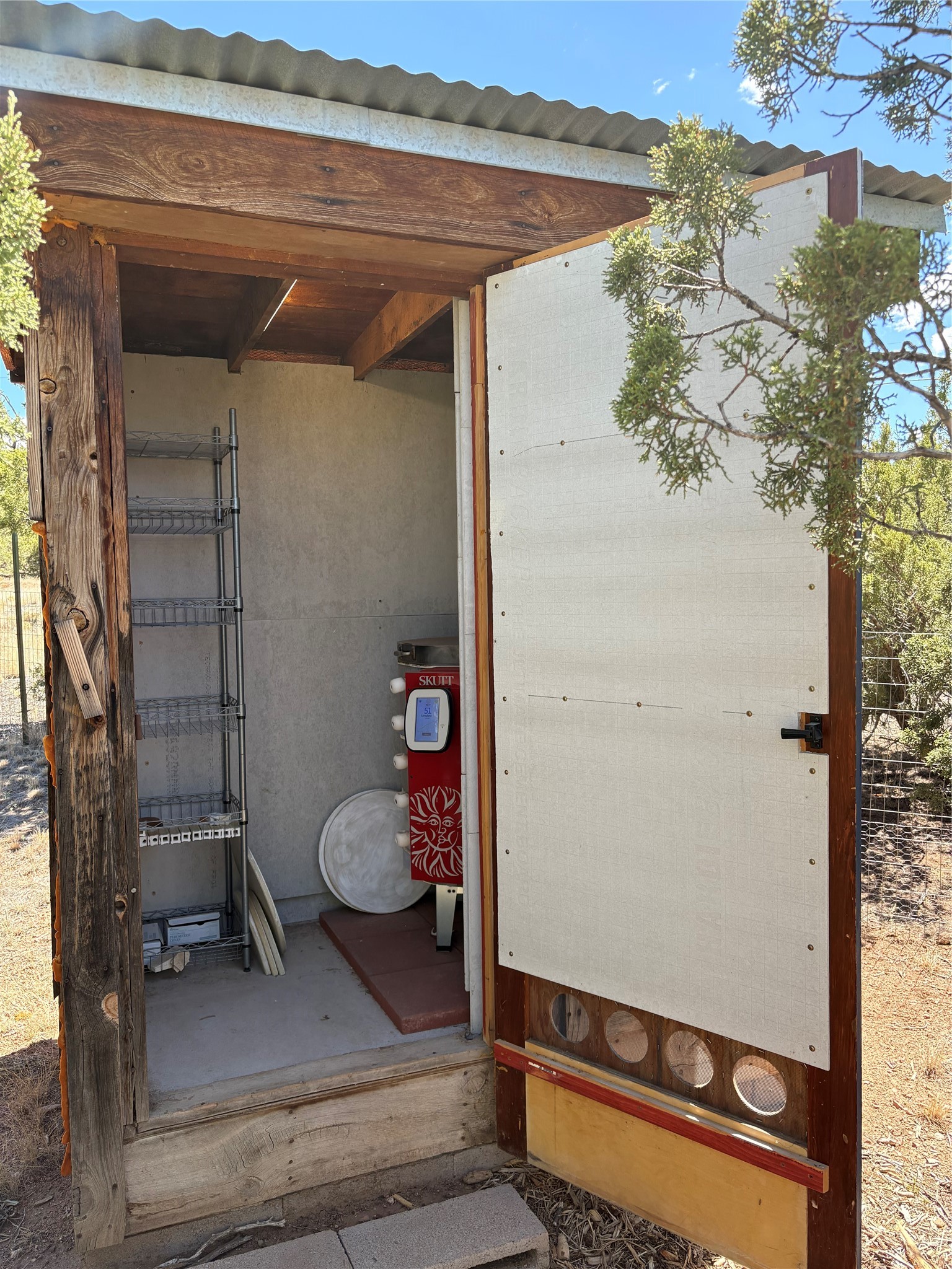 Welcome to '' The Ravens Nest '', this special oasis is nestled among old growth pinon and juniper trees. This 2 bedroom 1 bath home sits on 3+ acres with water-wise landscaping and fertile developed garden beds on a drip system. The attached greenhouse is great for getting plants started and provides passive solar gain to the main house. This property is a very private and peaceful haven yet it's only 12 minutes to the plaza, 6 minutes to the hospital, 3 minutes to I-25 and supermarkets. There is over 1700 square feet of heated space including the main house, the studios and the guest cabin. This property allows for self-sufficient living, featuring a large solar array that powers the house and out buildings, a high producing private well [25 gpm] and over 3000 sq. ft. of gardens under cultivation for organic vegetables, berries, fruit trees and grape arbors all on a well developed drip irrigation system. In addition to the solar powered electric heating system there is a cozy wood stove to support you during the colder winter months. There is a completely new pitched propanel roof and updated windows and doors installed in 2016, a complete kitchen remodel just 5 years ago, a new septic system installed in 2016, new water heater in 2017 and a new washer in 2026. Did I mention the Chicken coop with the hens, a great hot tub and a root cellar all convey. Needless to mention that the guest cabin with basic bath and the studios are all rentable buildings which could provide supplemental income. The property is bordered by an arroyo which separates it from over 50 acres of private land and a ten minute walk brings you to hiking and biking trails at the Arroyo Hondo Open Space Preserve. This is a rare find for country living so close to town ... Please schedule a visit asap, this property won't last long on the market.