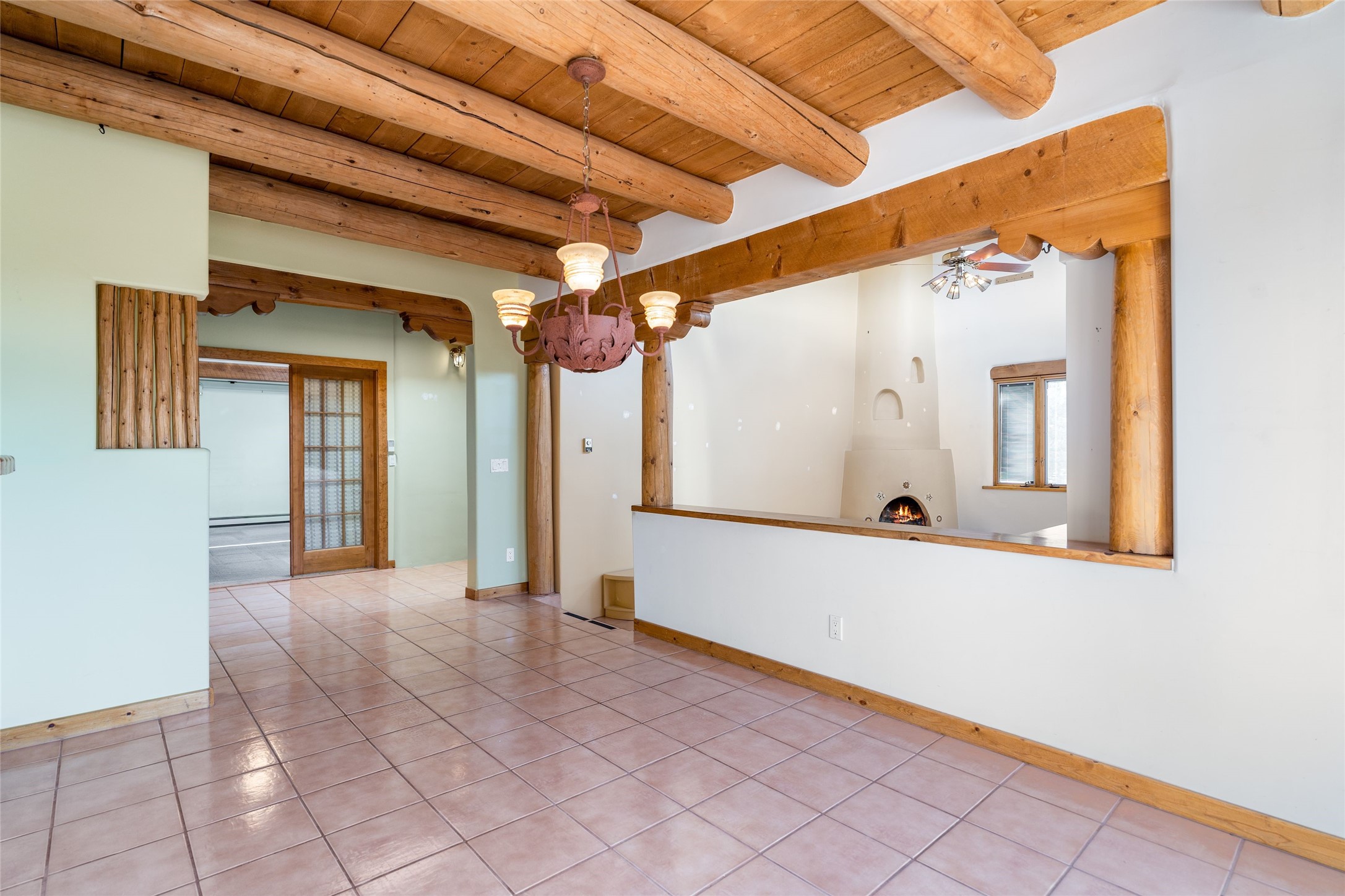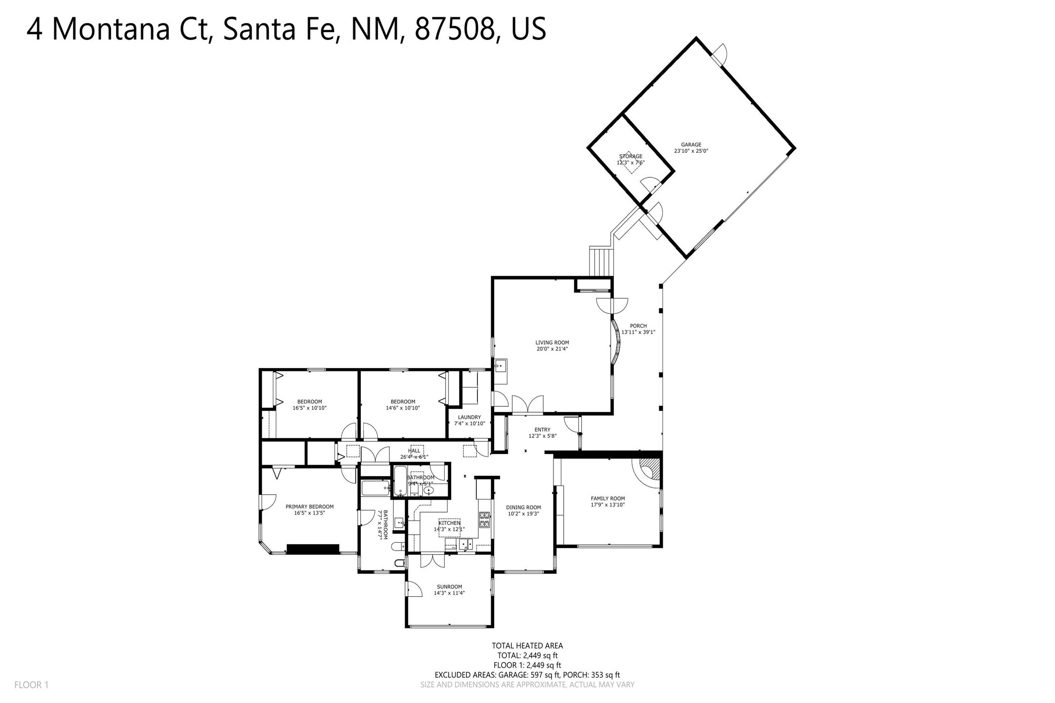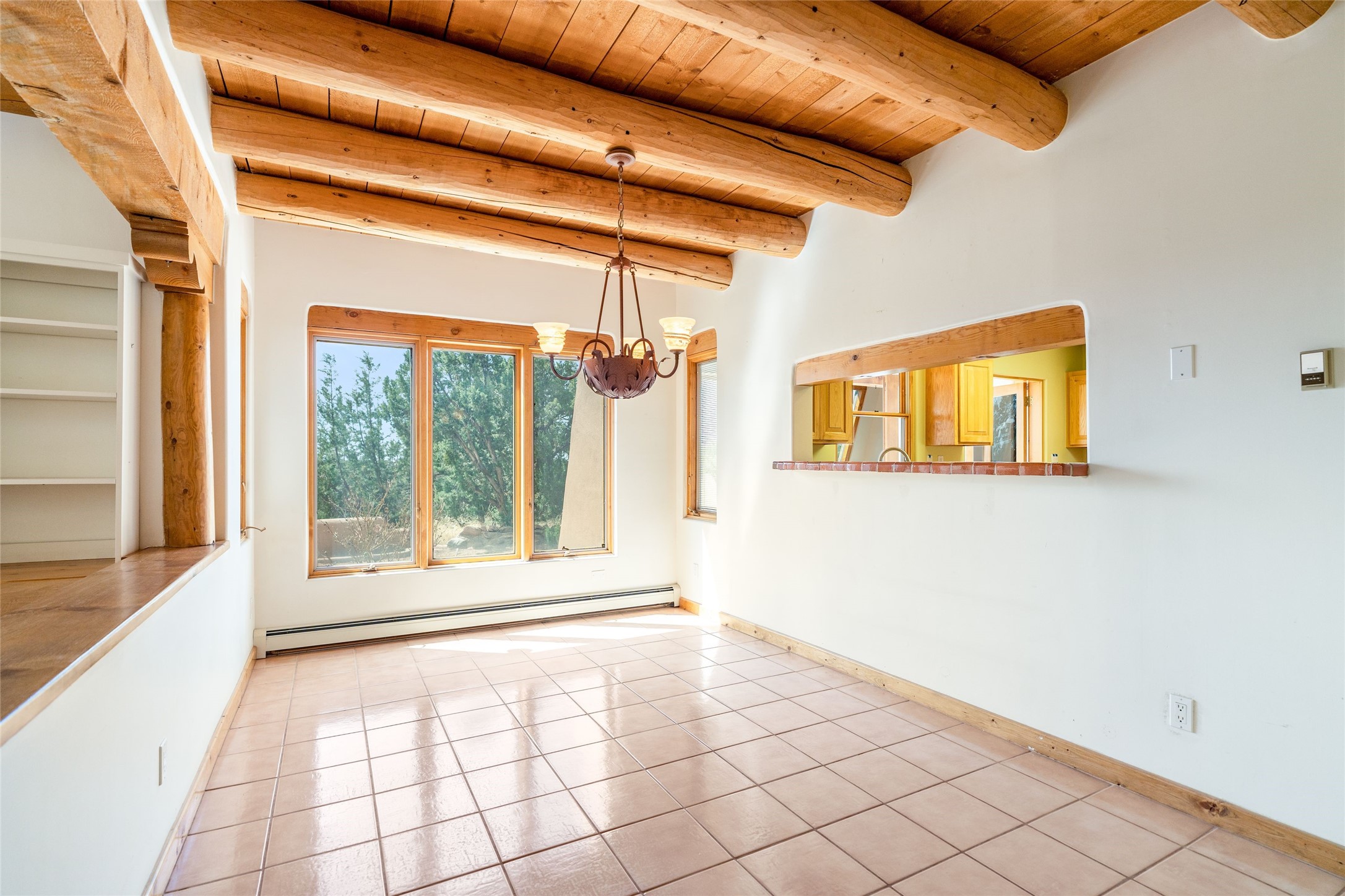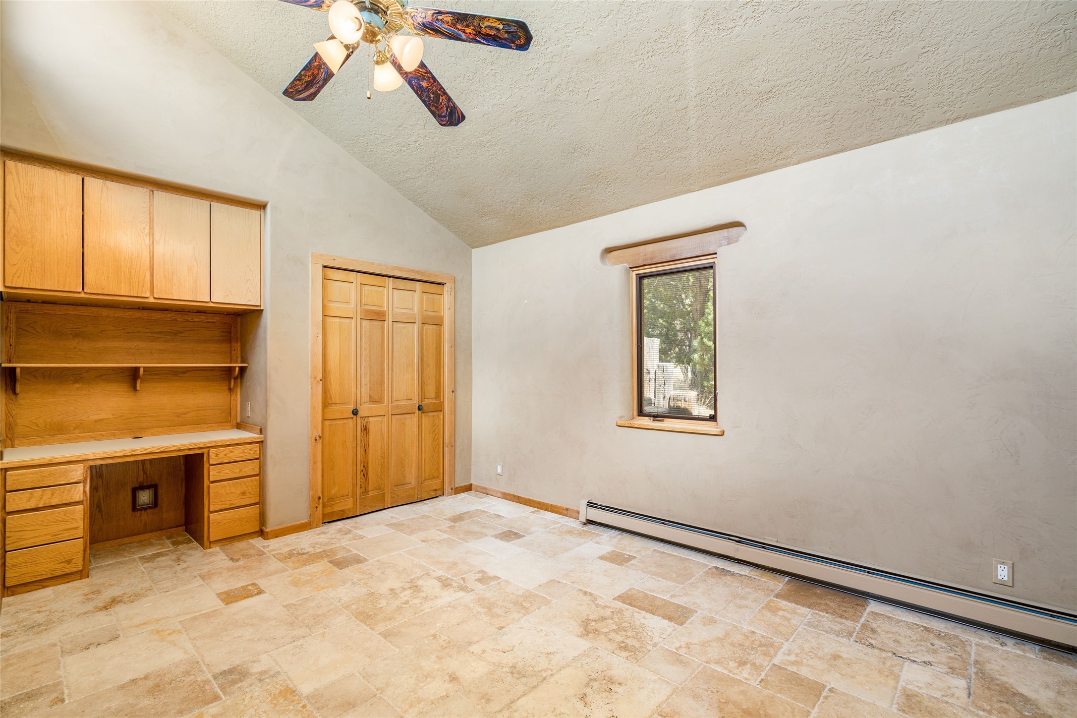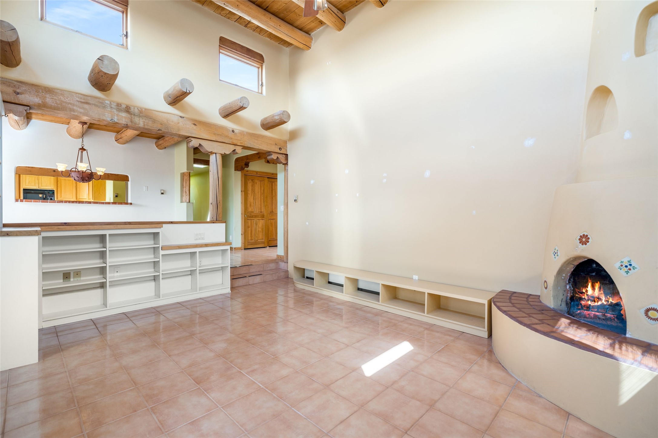 4 Montana Court is a distinctive Pueblo style residence, crafted in the mid 1980s by respected local builder John DiJanni as his personal home. Designed with passive solar Trombe Walls, and solar orientation, his charming home provides energy efficiency and the timeless warmth of classic Southwestern architecture. Set on more than two acres and bordering a greenbelt, the property enjoys remarkable privacy, separation from neighboring homes, and pleasing mountain views. A circular driveway creates an inviting and practical approach to the home. Inside, the formal living room centers around a traditional Kiva fireplace. A separate and generous office or media room--complete with vaulted ceilings, Vigas, clerestory windows, and its own exterior entrance--provides a flexible space ideal for work, creative pursuits, and a variety of uses. Adjoining the delightful and centrally placed kitchen, there is a dedicated Sunroom for growing herbs and plants throughout the year. The bedroom wing is finished with chipped edge travertine flooring, adding a refined touch. The generously sized primary suite includes a jacuzzi tub/shower, a single hardwood vanity, and a bidet. Two guest bedrooms feature vaulted Viga ceilings, clerestory windows, and abundant natural light, with a well placed full bath conveniently serving both rooms. A detached three car garage, connected to the home by a covered portal, offers excellent versatility; one bay has previously been used as an office or studio, and can easily be converted back to garage space if preferred.