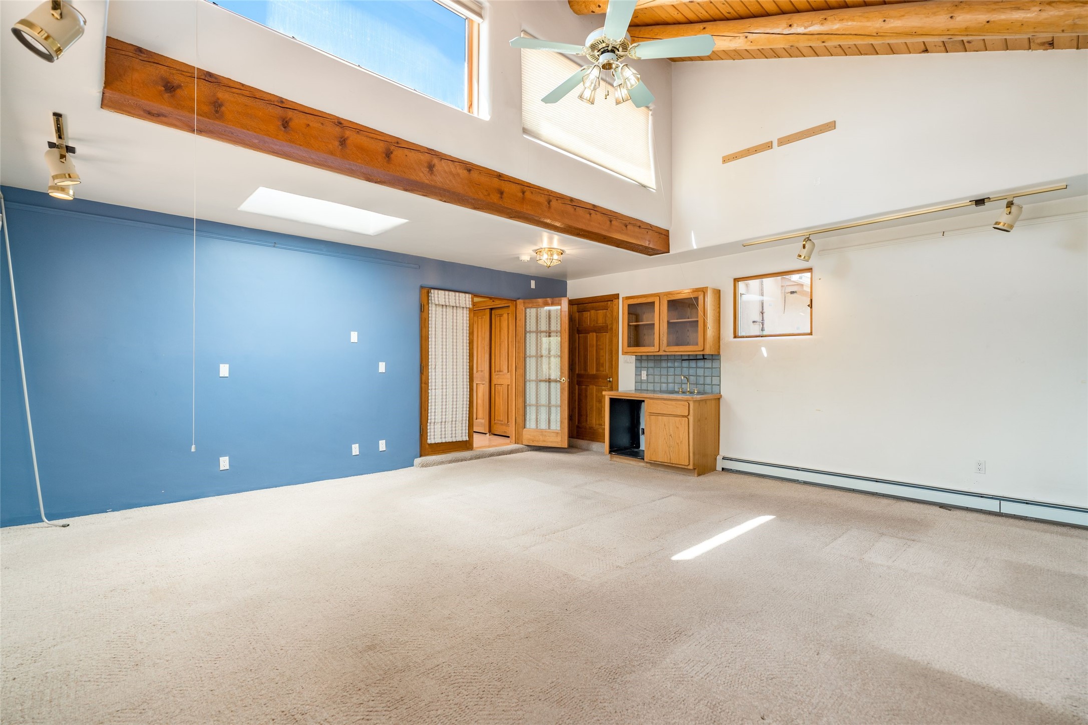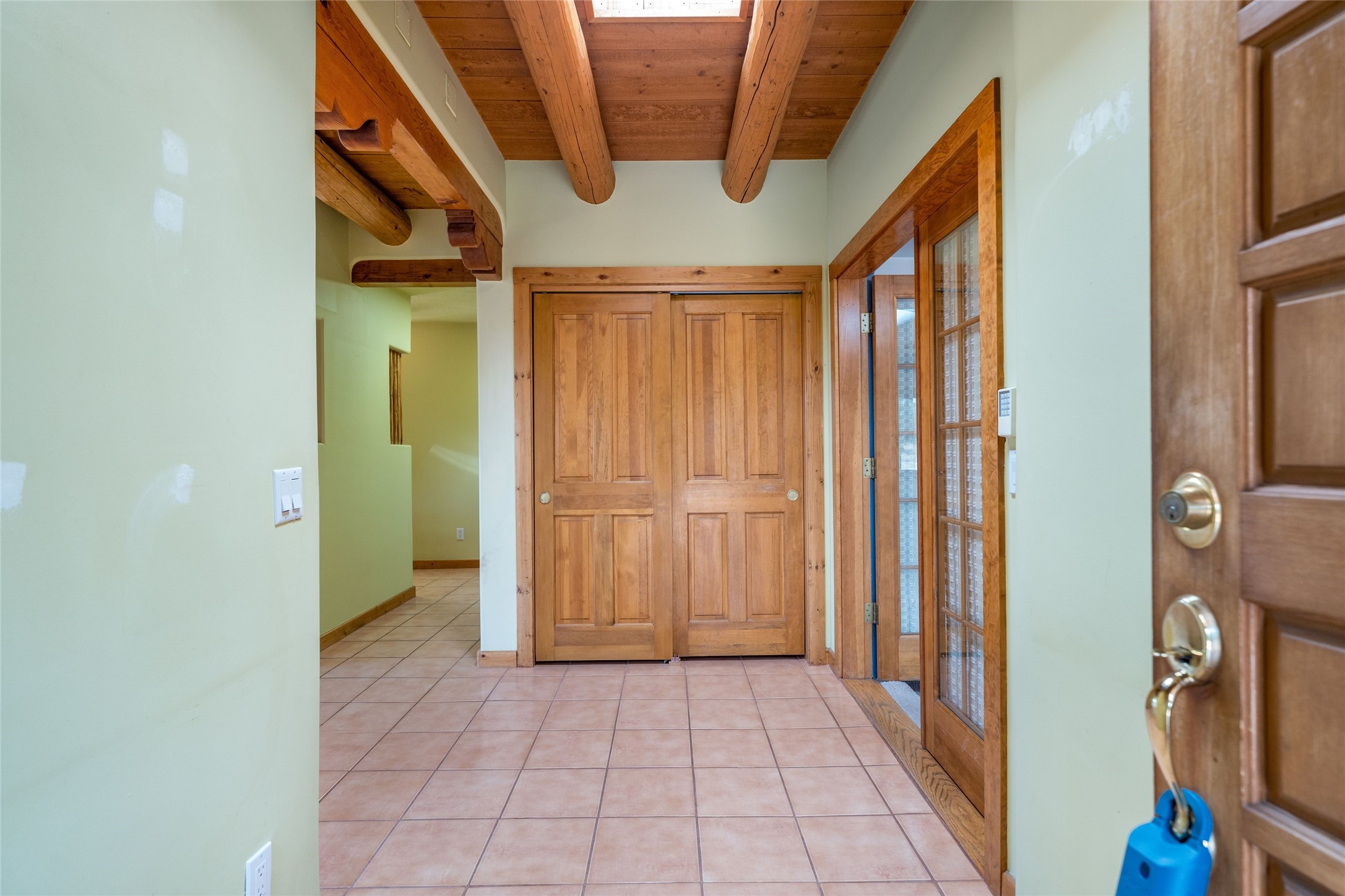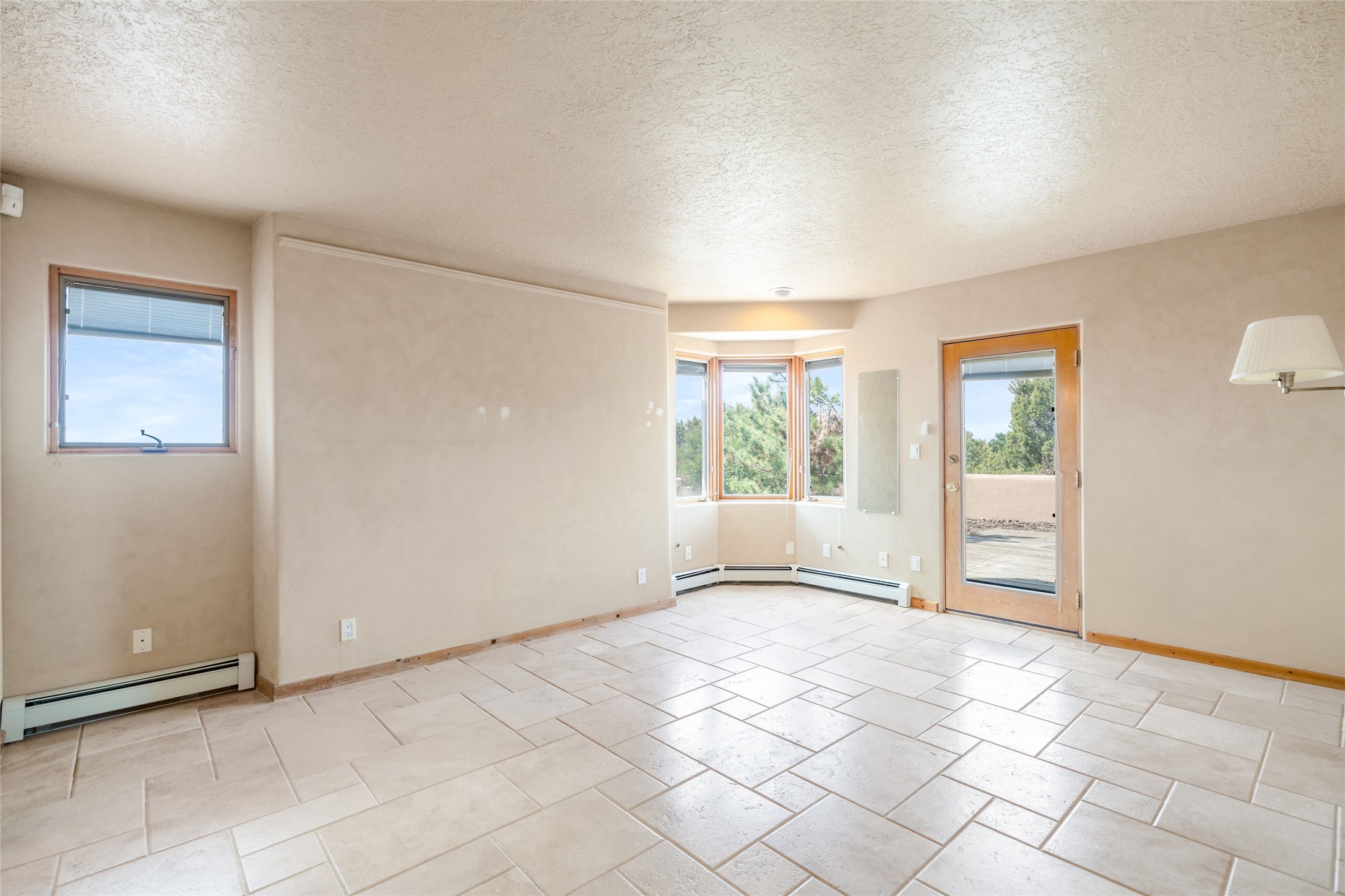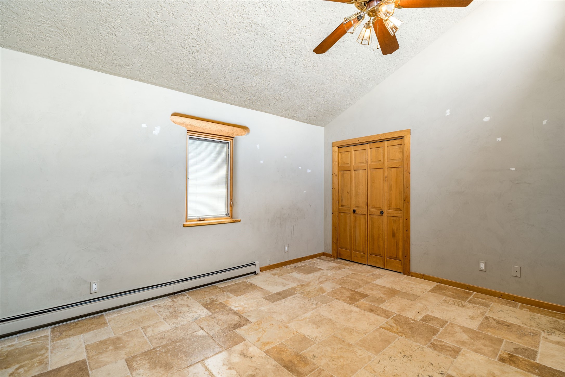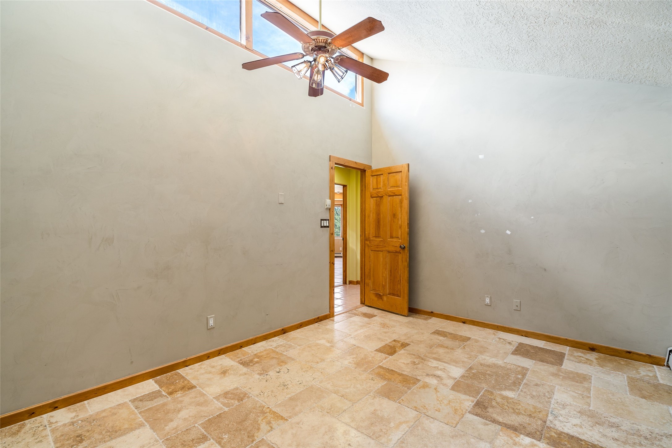 4 Montana Court is a distinctive Pueblo style residence, crafted in the mid 1980s by respected local builder John DiJanni as his personal home. Designed with passive solar Trombe Walls, and solar orientation, his charming home provides energy efficiency and the timeless warmth of classic Southwestern architecture. Set on more than two acres and bordering a greenbelt, the property enjoys remarkable privacy, separation from neighboring homes, and pleasing mountain views. A circular driveway creates an inviting and practical approach to the home. Inside, the formal living room centers around a traditional Kiva fireplace. A separate and generous office or media room--complete with vaulted ceilings, Vigas, clerestory windows, and its own exterior entrance--provides a flexible space ideal for work, creative pursuits, and a variety of uses. Adjoining the delightful and centrally placed kitchen, there is a dedicated Sunroom for growing herbs and plants throughout the year. The bedroom wing is finished with chipped edge travertine flooring, adding a refined touch. The generously sized primary suite includes a jacuzzi tub/shower, a single hardwood vanity, and a bidet. Two guest bedrooms feature vaulted Viga ceilings, clerestory windows, and abundant natural light, with a well placed full bath conveniently serving both rooms. A detached three car garage, connected to the home by a covered portal, offers excellent versatility; one bay has previously been used as an office or studio, and can easily be converted back to garage space if preferred.