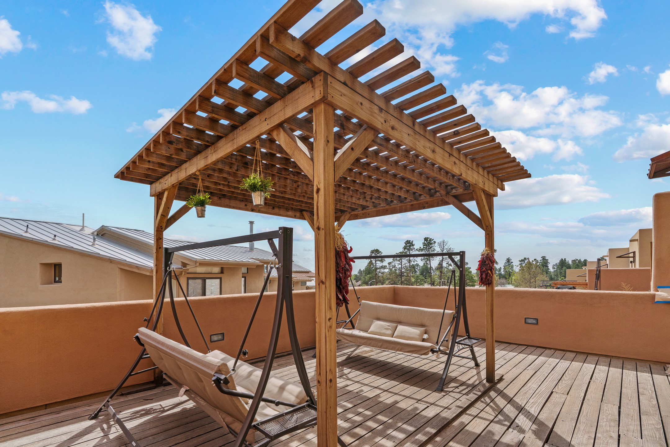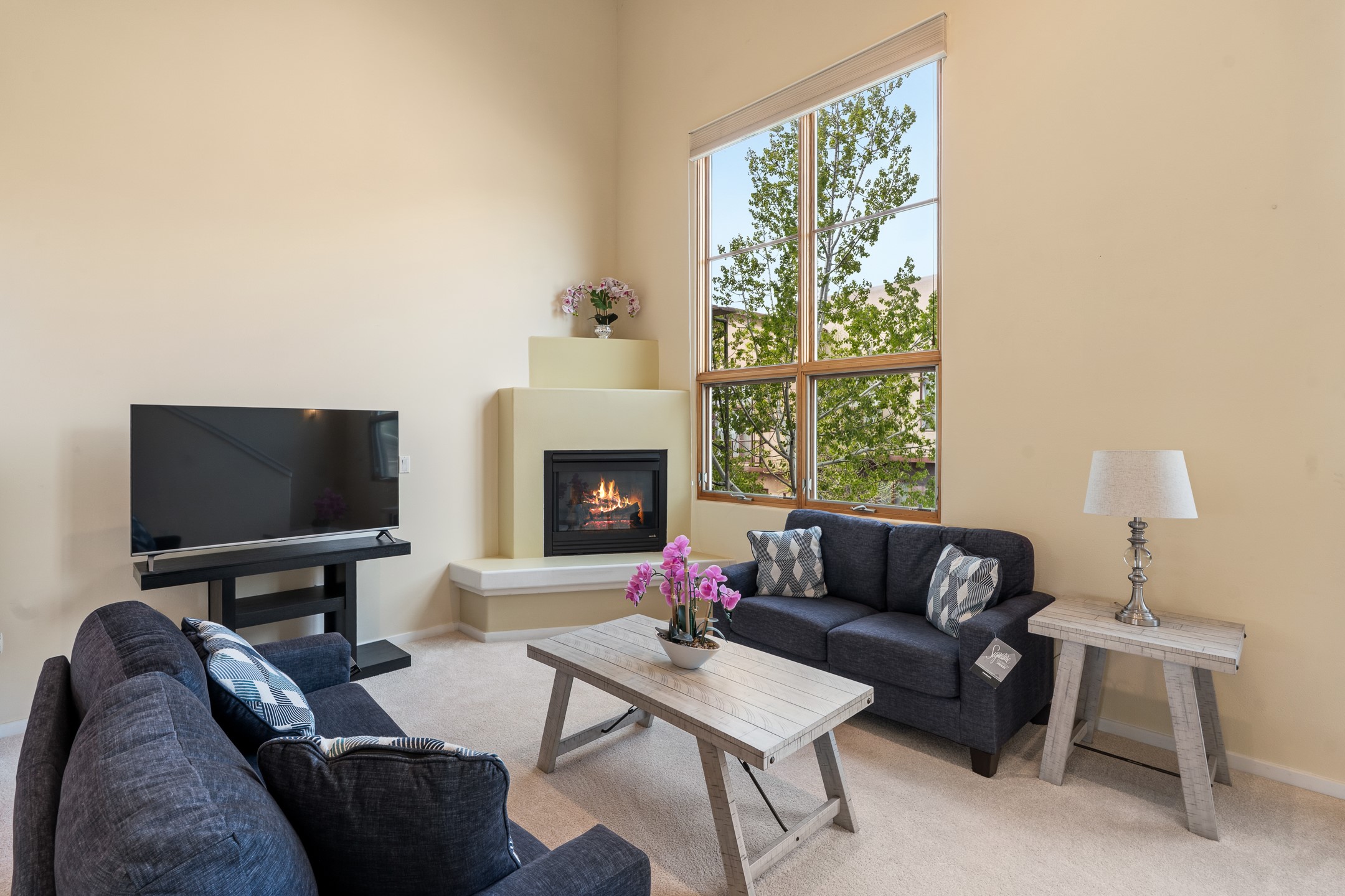 Flexible, modern live/work living in this bright three-story townhome in the highly desirable Quemazon neighborhood of Los Alamos. Designed for versatility, this 2,328 sq ft residence offers beautifully separated spaces for home, office, and play, just minutes from LANL, town amenities, trails, and an easy commute to Santa Fe.On the street level, a private live/work suite with its own entrance has been updated with wood-look tile flooring and fresh paint, creating an ideal setting for a professional office, studio, guest quarters, recreation room, or potential rental space. With a large three-quarter bath and direct access to the oversized two-car garage, this level functions as a true flex space while maintaining privacy from the upper floors.The main level is made for entertaining, featuring an open living, dining, and kitchen area drenched in natural light from large picture windows and a grand two-story vaulted ceiling. A cozy gas fireplace anchors the living room, while the spacious kitchen offers an island and easy flow to the dining area, which opens onto a private deck perfect for grilling, outdoor dining, and taking in the mountain air. A convenient three-quarter bath and in-unit washer/dryer on this floor add everyday practicality.Upstairs, the top floor is a peaceful retreat with a well-sized bedroom, full bath, and a loft that can flex as an additional bedroom, office, media room, or playroom. A vented skylight with remote control brings in extra daylight and fresh air year-round, enhancing the sense of comfort and openness.Features include radiant in-floor heat, natural gas fireplace, flat roof, stucco exterior, and attached two-car garage, plus community area maintenance through the Quemazon HOA. Outdoor enthusiasts will love the proximity to nearby walking and hiking trails, while the location, just about 10 minutes to LANL and roughly 40 minutes to Santa Fe, makes this a smart choice for commuters and home-based professionals alike.