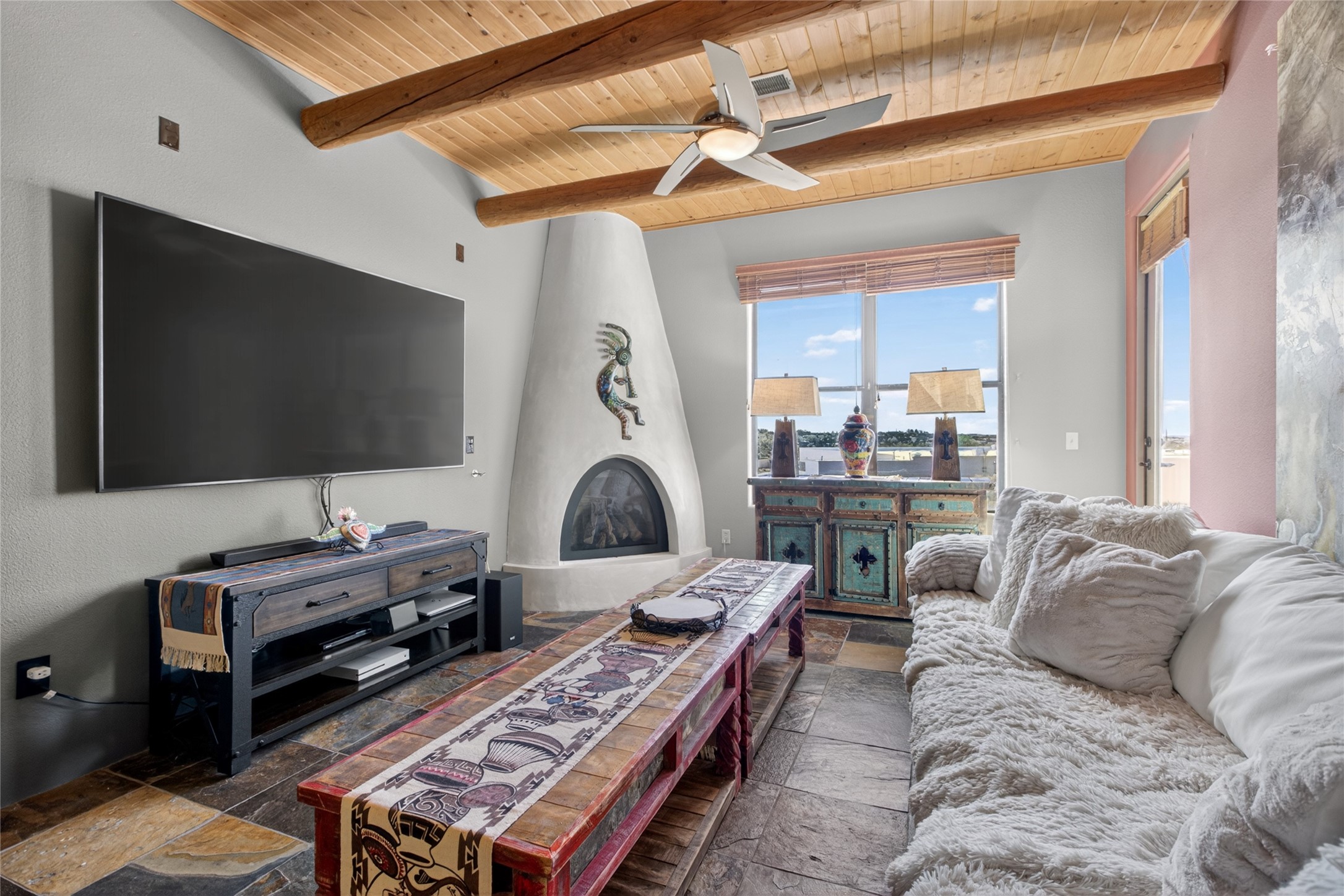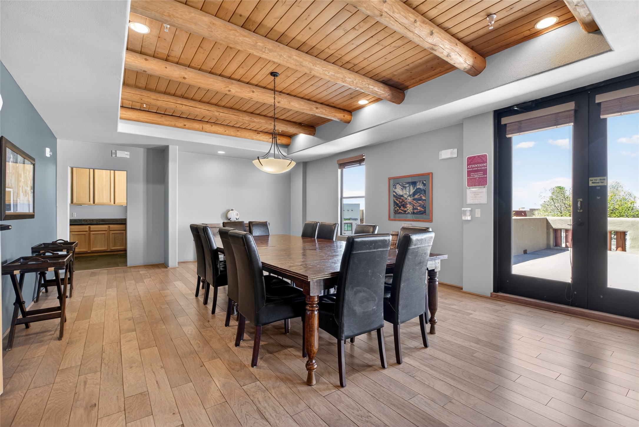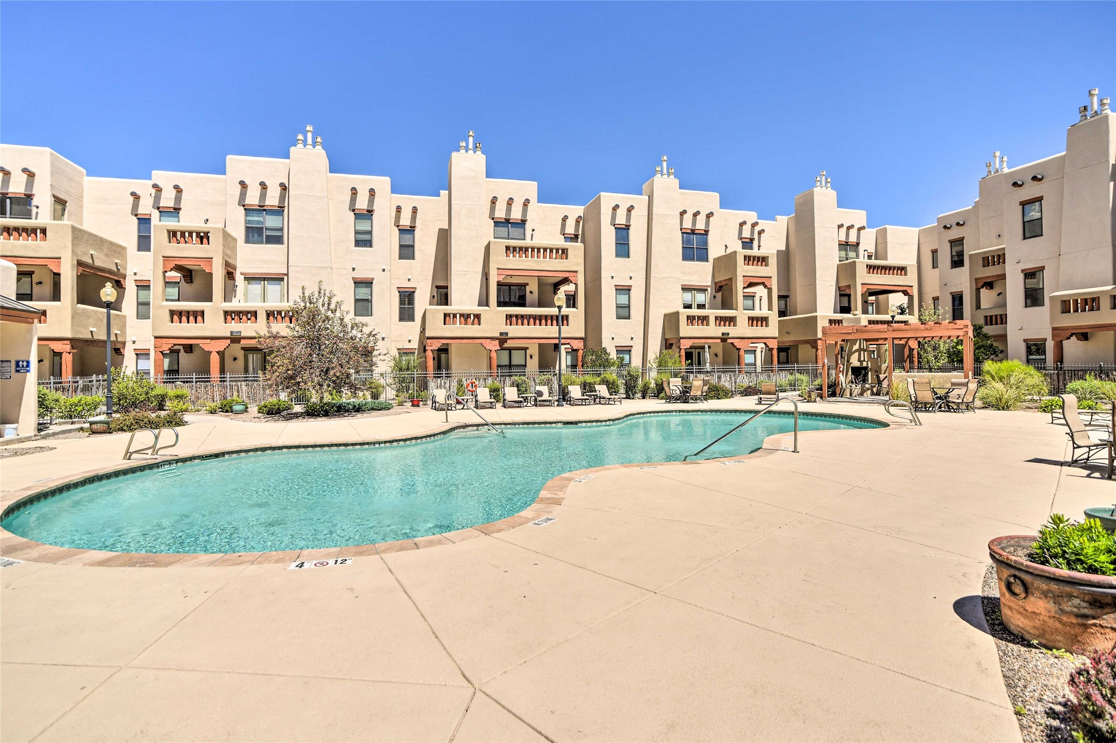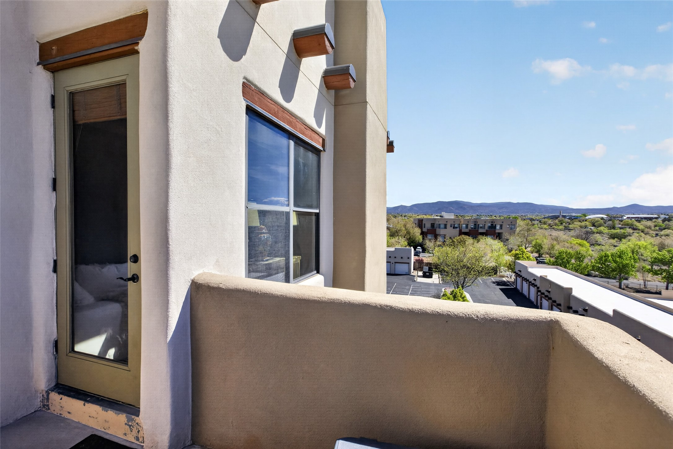 Welcome to a stunning condo that feels straight out of New Mexico Magazine, offering a refined blend of Santa Fe style and effortless living. This 2-bedroom, 2-bath residence was the former model unit and features upgrades not found in every home within the community.Ideally situated on the third-floor corner of Wings C and D, the condo enjoys mountain views from both the patio and the primary bedroom. Upon entry, you're welcomed by abundant natural light and a rare foyer skylight, creating a warm and inviting first impression.The kitchen is both functional and beautiful, featuring stainless steel appliances and a Sub-Zero refrigerator, ideal for both everyday living and entertaining. A custom closet system in the primary suite adds thoughtful organization, while high-end designer lighting fixtures enhance the home's overall ambiance. Additional details include Hunter Douglas blinds, ceiling fans in the living room and both bedrooms, and extra windows in the primary suite--offering enhanced light, privacy, and uninterrupted eastern mountain views.Life at The Alameda's offers a true lock-and-leave lifestyle, designed for ease and enjoyment. The HOA covers many of the responsibilities typically associated with single-family ownership, including common area maintenance and utilities, hazard insurance, and access to exceptional amenities such as a swimming pool, fitness center, conference spaces, library, elevators, clubhouse, secured gated entry, and beautifully maintained grounds.HOA dues also contribute to reserves for major components such as stucco, roofing, and asphalt, all professionally managed by HOAMCO.Conveniently located near shopping, dining, entertainment, and scenic walking and biking trails, this residence offers the perfect balance of comfort, convenience, and classic Santa Fe charm.Furniture available for purchase by separate bill of sale.