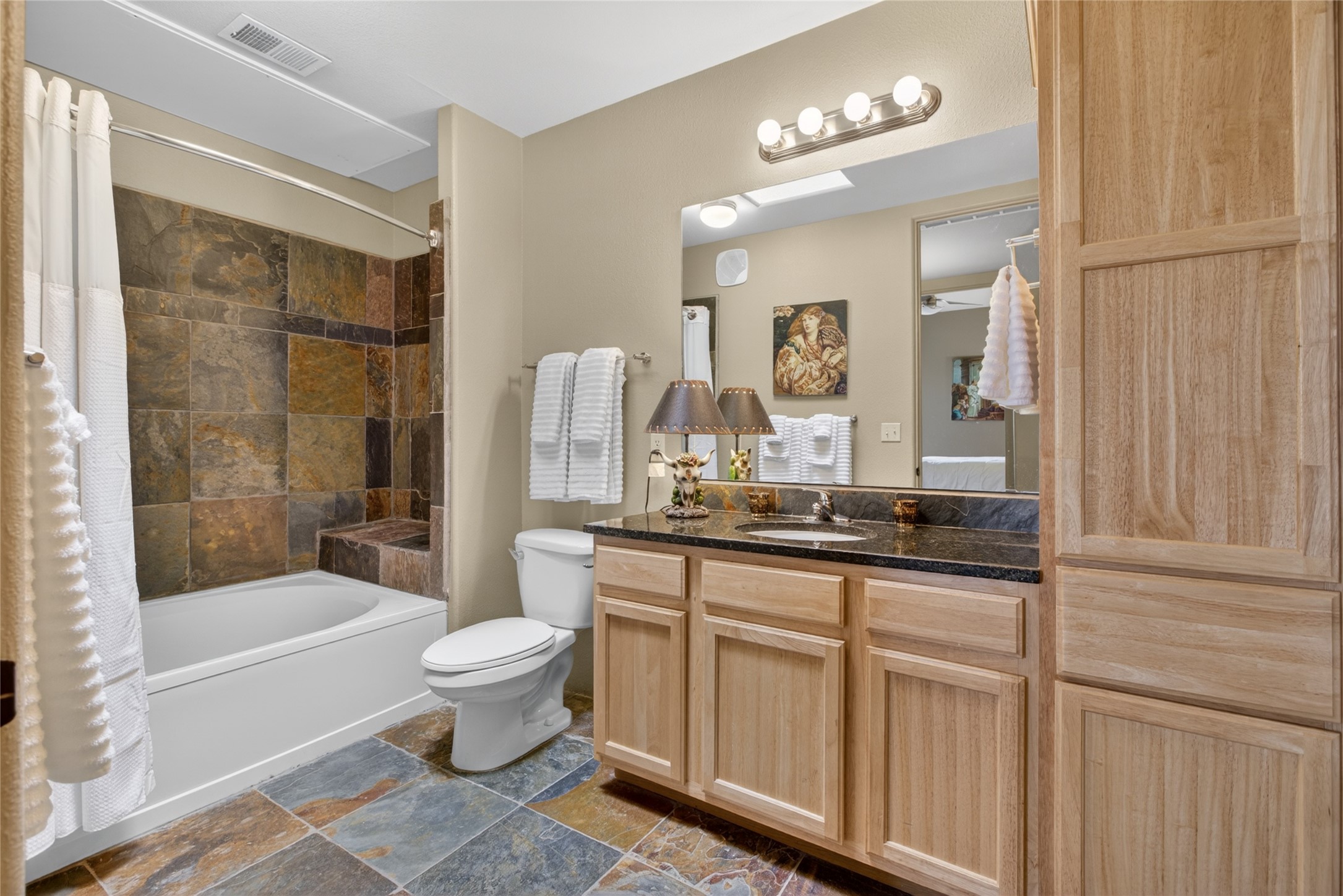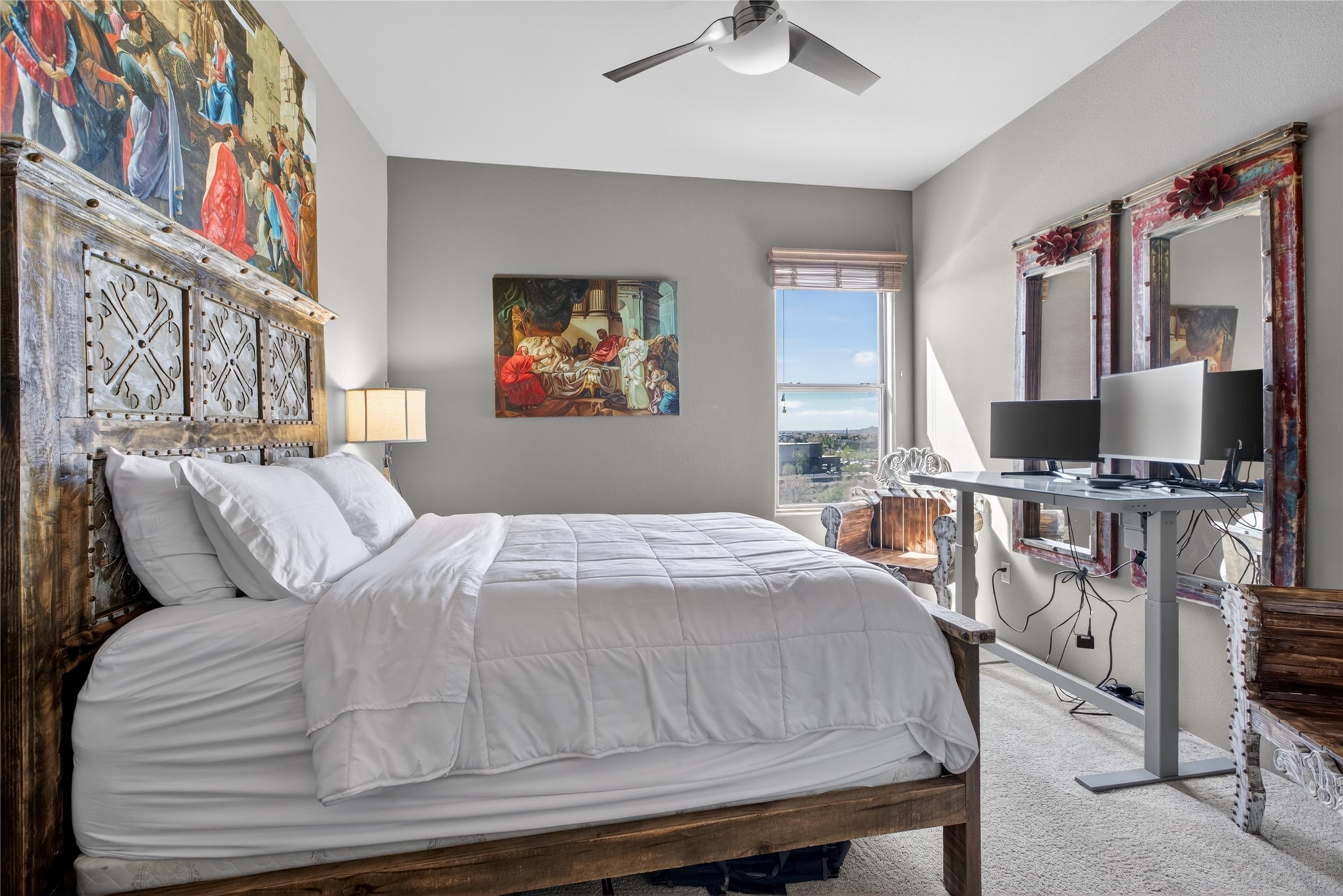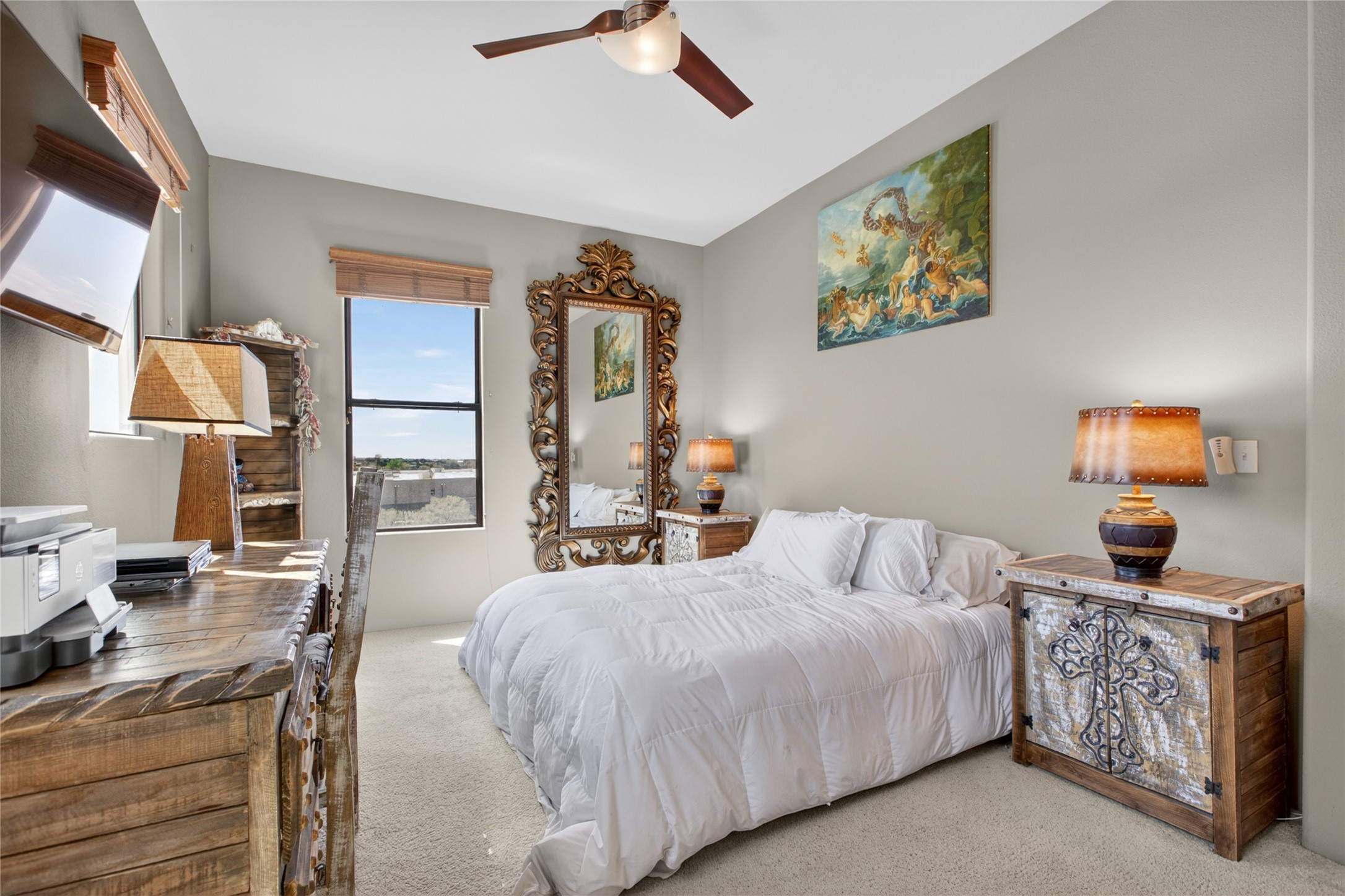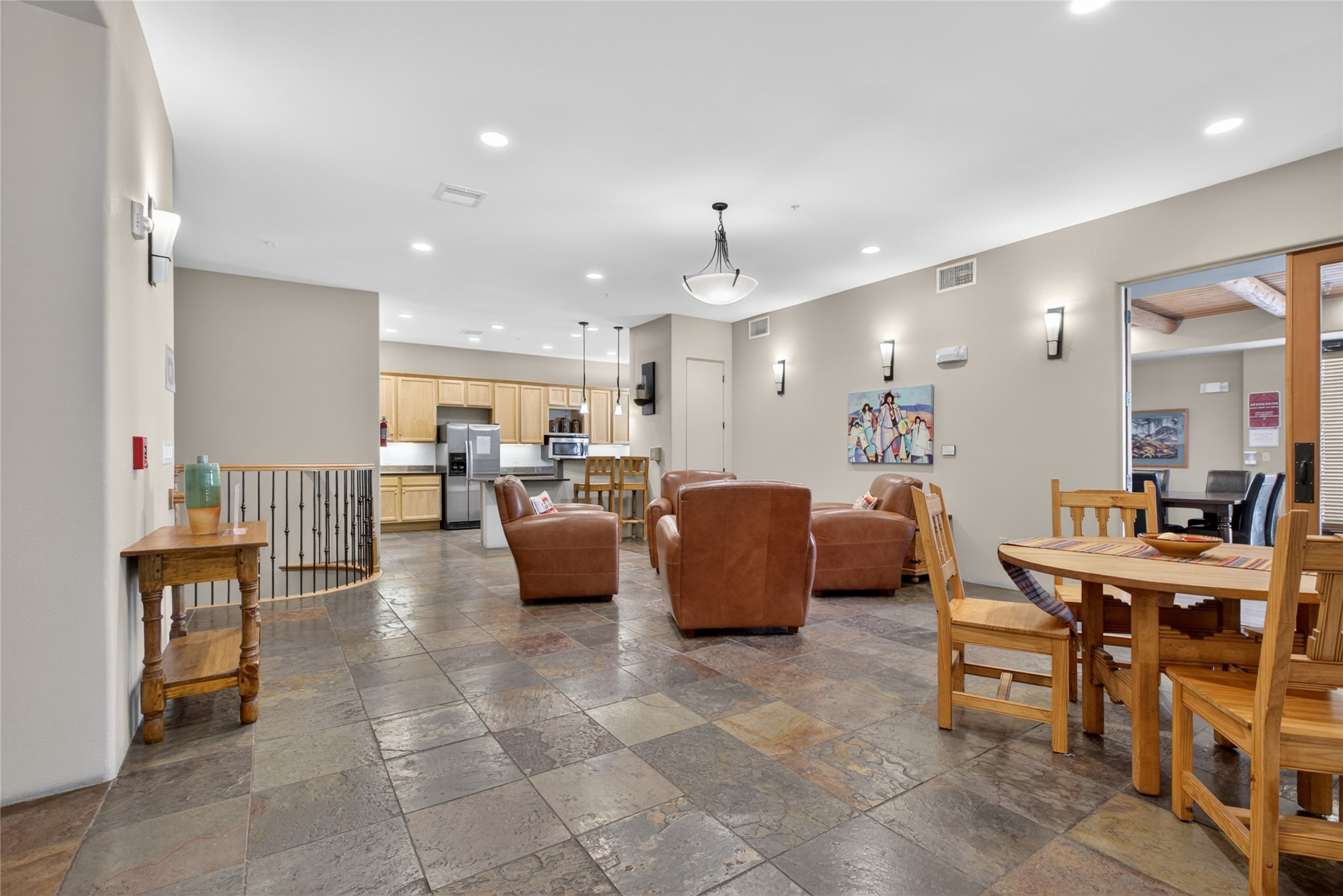 Welcome to a stunning condo that feels straight out of New Mexico Magazine, offering a refined blend of Santa Fe style and effortless living. This 2-bedroom, 2-bath residence was the former model unit and features upgrades not found in every home within the community.Ideally situated on the third-floor corner of Wings C and D, the condo enjoys mountain views from both the patio and the primary bedroom. Upon entry, you're welcomed by abundant natural light and a rare foyer skylight, creating a warm and inviting first impression.The kitchen is both functional and beautiful, featuring stainless steel appliances and a Sub-Zero refrigerator, ideal for both everyday living and entertaining. A custom closet system in the primary suite adds thoughtful organization, while high-end designer lighting fixtures enhance the home's overall ambiance. Additional details include Hunter Douglas blinds, ceiling fans in the living room and both bedrooms, and extra windows in the primary suite--offering enhanced light, privacy, and uninterrupted eastern mountain views.Life at The Alameda's offers a true lock-and-leave lifestyle, designed for ease and enjoyment. The HOA covers many of the responsibilities typically associated with single-family ownership, including common area maintenance and utilities, hazard insurance, and access to exceptional amenities such as a swimming pool, fitness center, conference spaces, library, elevators, clubhouse, secured gated entry, and beautifully maintained grounds.HOA dues also contribute to reserves for major components such as stucco, roofing, and asphalt, all professionally managed by HOAMCO.Conveniently located near shopping, dining, entertainment, and scenic walking and biking trails, this residence offers the perfect balance of comfort, convenience, and classic Santa Fe charm.Furniture available for purchase by separate bill of sale.