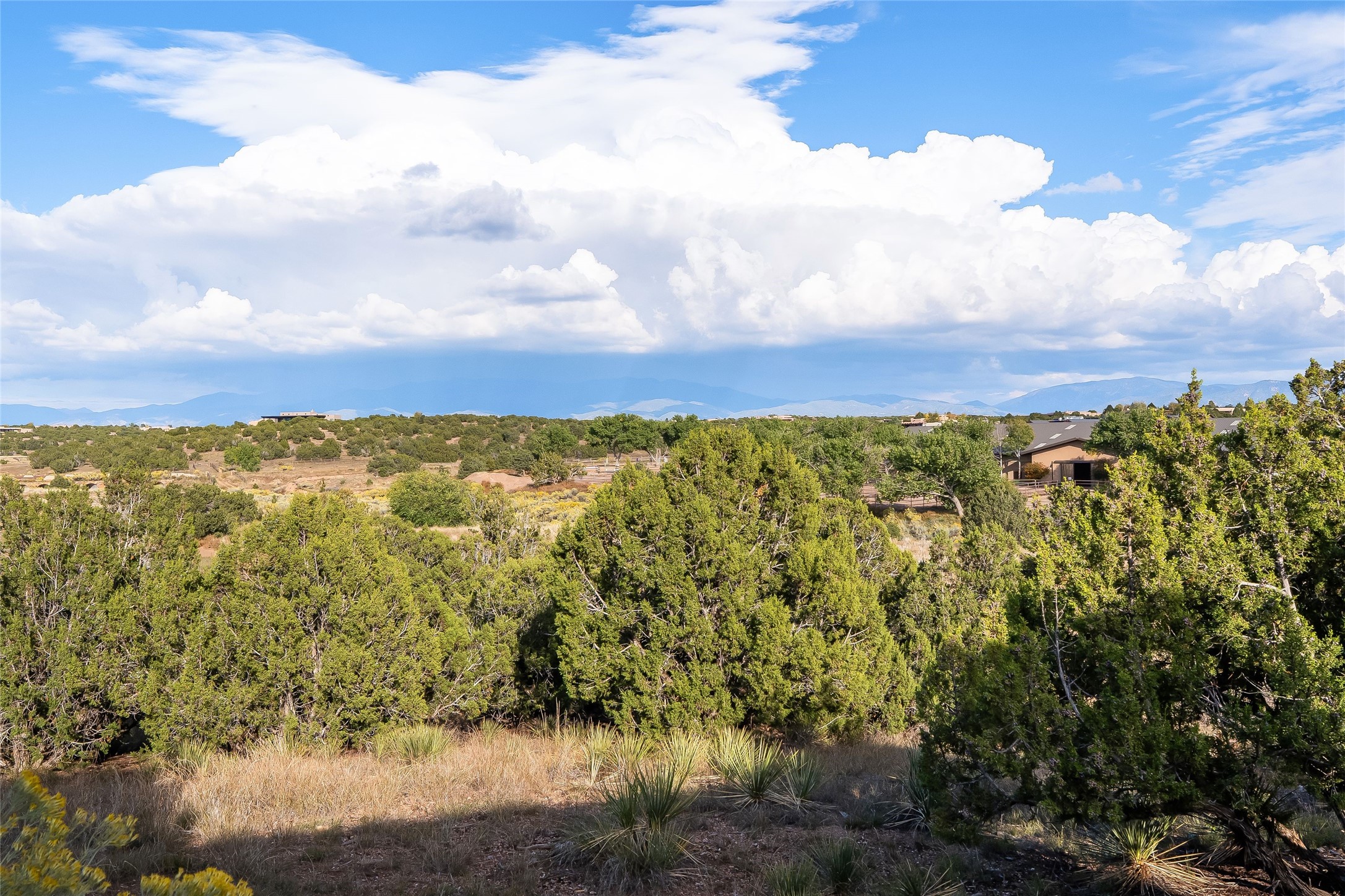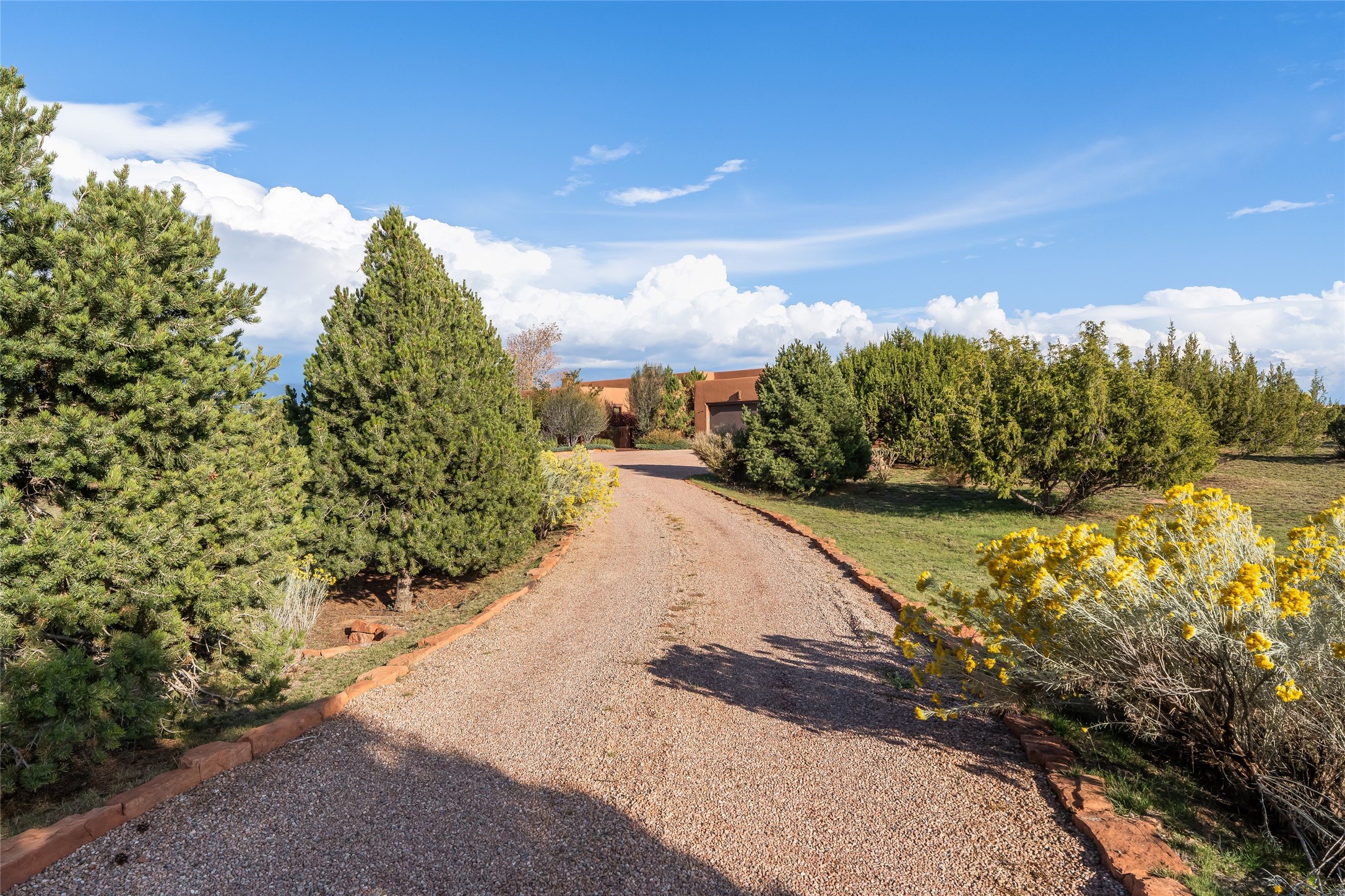 Overlooking unencumbered Sangre Mountain views, as well as the world-class equestrian center of Las Campanas, this extraordinary property is a display of sumptuous detailing and magnificent design. Situated on approximately 2 manicured acres, this 3,658 sq. ft. single-story home was built in 2008 with an extra garage (total of 4 garages) and heated 200 sq.ft. +/- studio added in 2019. Consisting of three large bedrooms suites, 3-1/2 bathrooms, formal living and dining areas as well as an open chef's kitchen with separate wet bar, sun room and library/office all with views and access to the outdoor gardens. Extensive flagstone walkways meander through yard with a stunning wall of living room glass doors opening onto the deep bricked portal with outdoor kiva fireplace. Attention to detail is evident in the custom cabinetry, granite counters, and the vast expanse of private space and formal entertaining space. The home flows with a warm andairy feel, completely integrated with custom lighting, radiant floor heating, as well as mini-split heating/air-conditioning and evaporative cooling in place. The owners' suite is separated from the secondary en-suite bedrooms with a spa-like bathroom, large soaking tub, and nearby walk-in closet. Large stone floors, wood floors, smooth plaster walls, high ceilings with traditional vigas and ceiling treatments are blended seamlessly together, notably exuding classic Santa Fe style all within close proximity to the Las Campanas Club, Spa, Equestrian and Golf Amenities.
