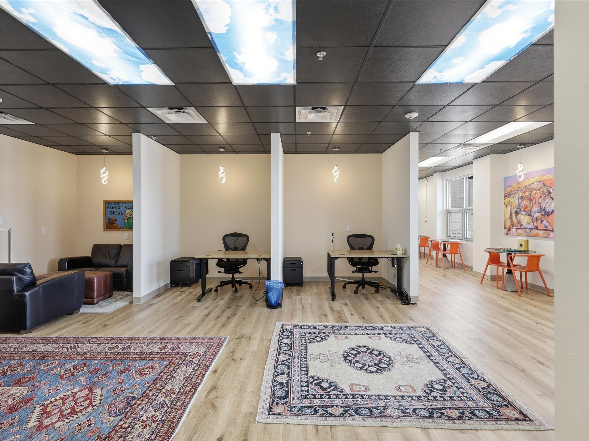 Elevate your workday at the Farmers Market building in Santa Fe's dynamic Railyard district. This bright and modern second-floor office suite is filled with natural light and thoughtfully laid out for both focus and collaboration. There are great views of the Railyard and mountains from the suite which is served by both an elevator and stairs. It also offers secure access. Enjoy a flexible mix of two private offices, a conference room, open workspace, reception area, and a dedicated breakroom--perfect for growing teams. The gross lease includes utilities, making budgeting straightforward and hassle-free. Located in the heart of the Railyard District, the property is surrounded by some of Santa Fe's best dining, retail, and cultural amenities--creating an inspiring environment for both employees and clients. Available for occupancy 10/1/2026.