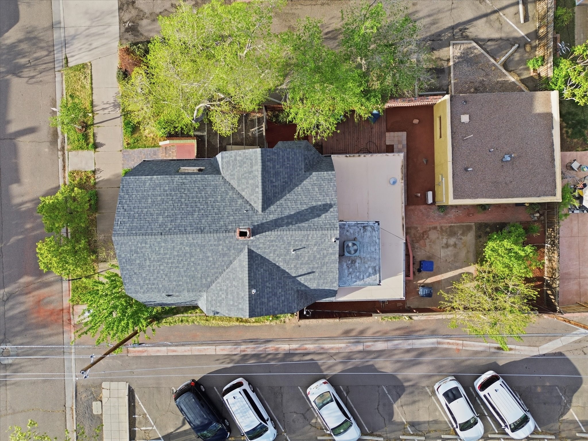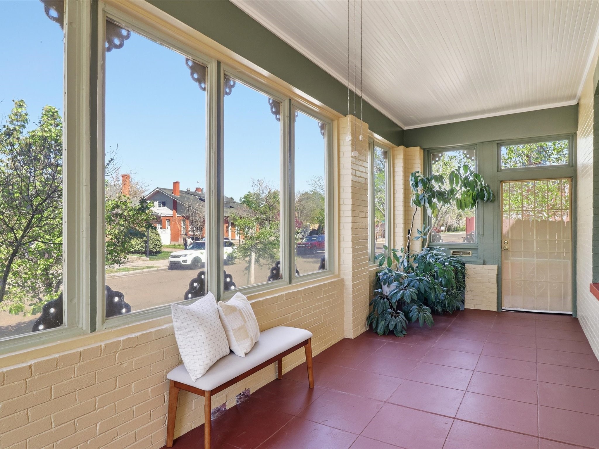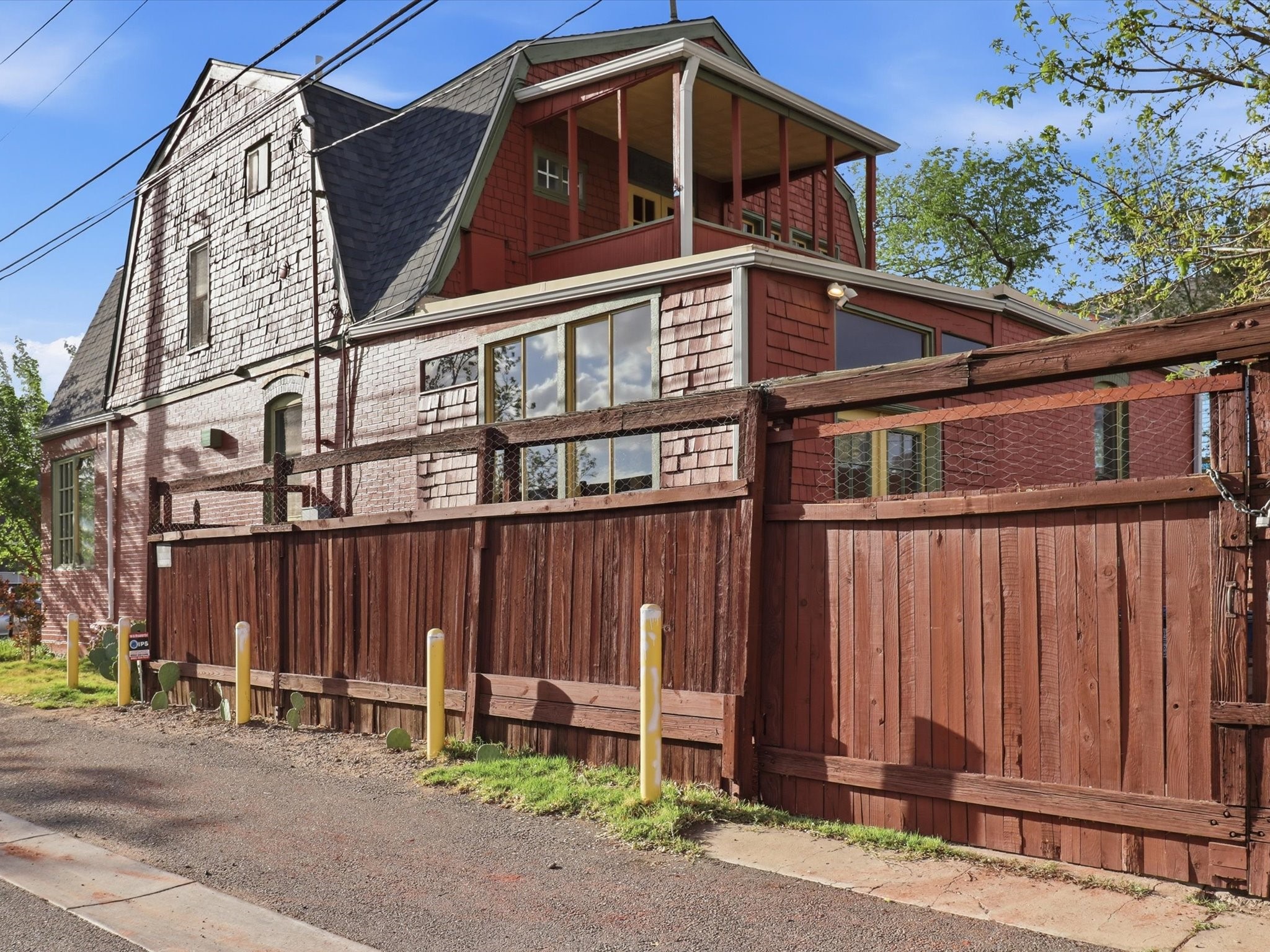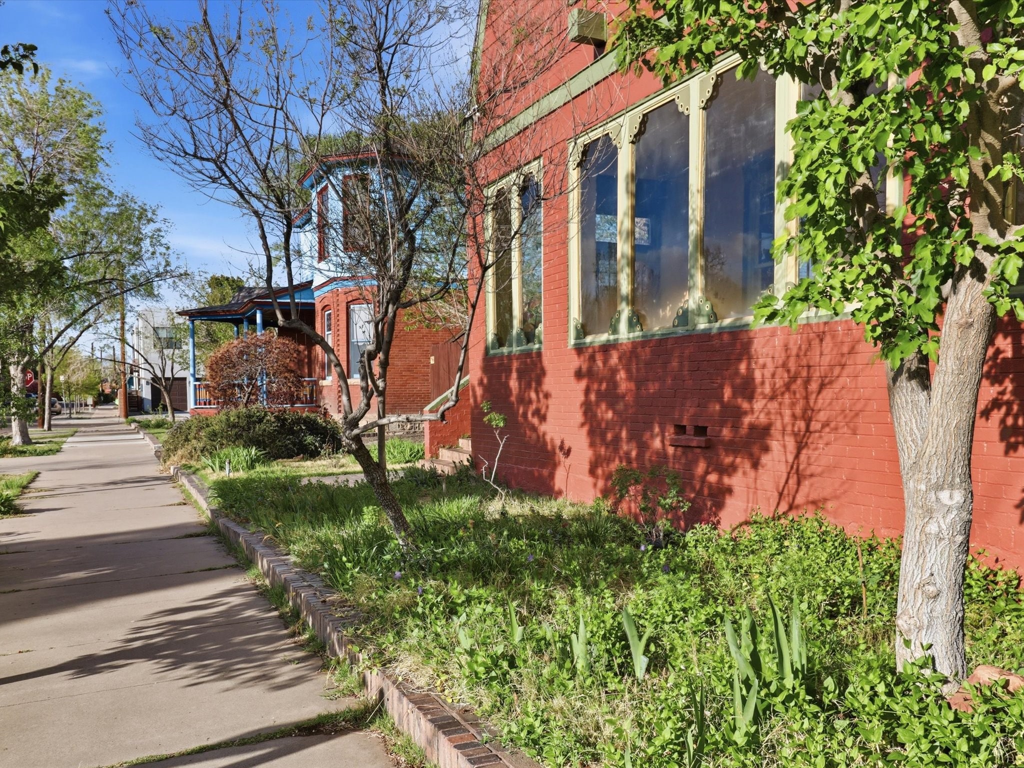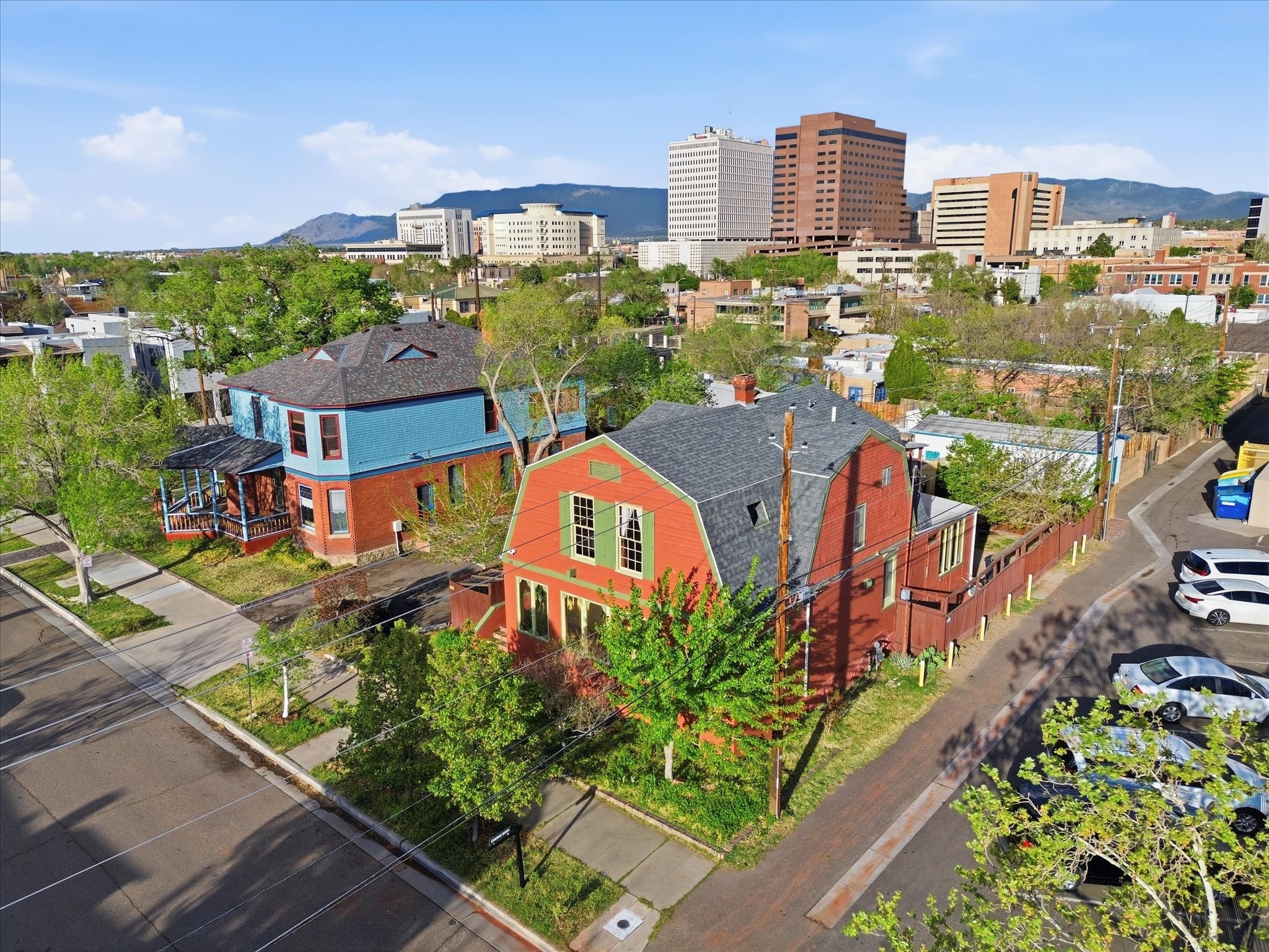 Step into Albuquerque history with the iconic J.E. Saint House, a rare 1907 Dutch Colonial Revival residence in the heart of Downtown. This architecturally significant home features brick construction, river rock foundation, distinctive gambrel rooflines, and rich character. Thoughtfully updated with modern heating and cooling, the property blends historic charm with everyday comfort. Kitchen includes Viking stovetop and range with bain-marie, bar sink and new dishwasher. Two enclosed porches and upstairs covered patio provide options to enjoy the home during different times of the day. A separate heated and cooled carriage house with kitchenette and bath offers exceptional flexibility- ideal for guest space, studio, or income potential. Natural wildflowers and flowering trees line home.10 ft ceilings and oak flooring in the main house. Finished bedroom, bathroom and laundry in basement are not included in sq ft. Balcony overlooks Downtown. Bedrooms are spacious with original hard wood floors, large closets with two full baths. 574 sq ft Guest house (not included in sq ft) has a tin ceiling, full bath, pellet stove and exposed brick interior and concrete floors. Zoned residential or commercial. The earliest resident of the home, JE Saint, was the first mayor of Albuquerque after it incorporated as a city. Home is included in the National Register of Historic Places (NRHP), and the New Mexico, Historical Society of New Mexico series lists