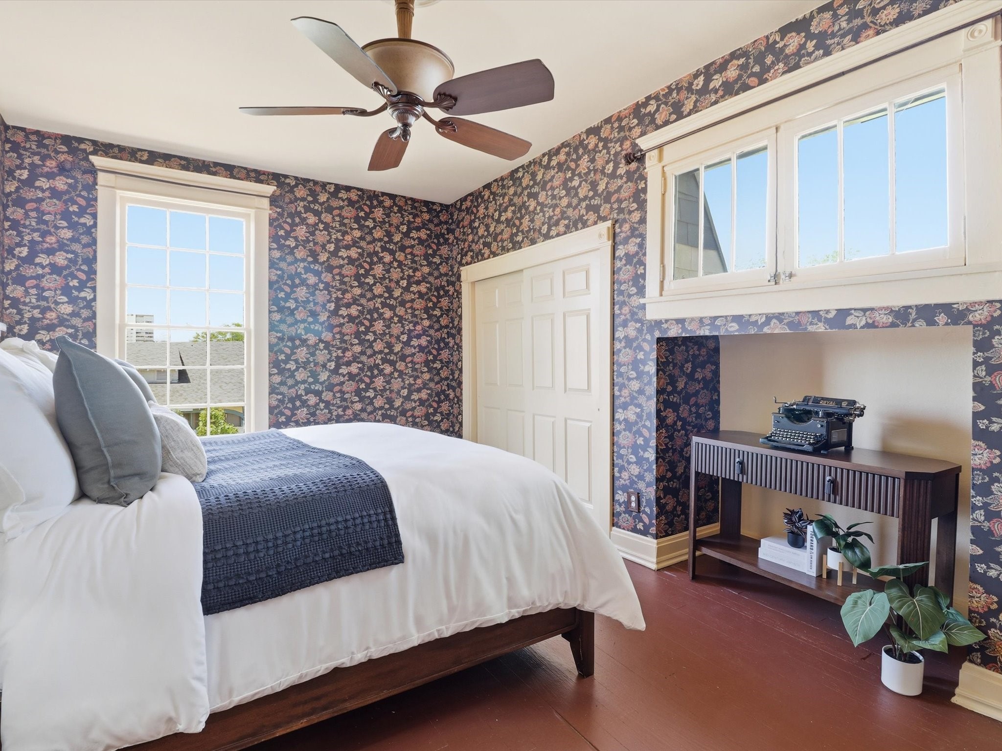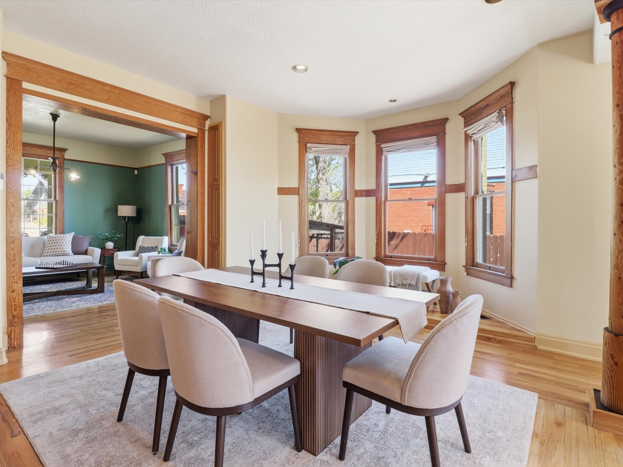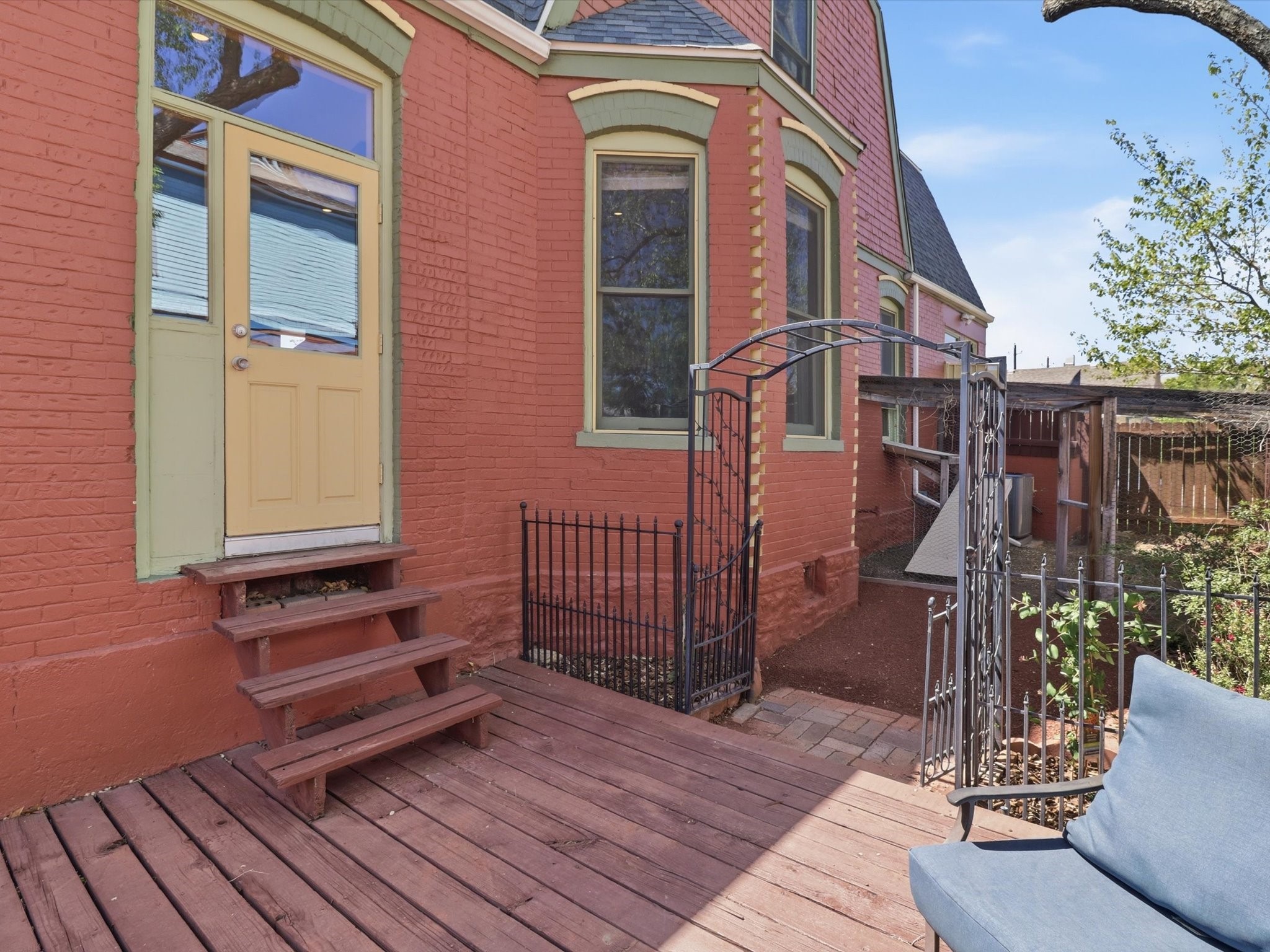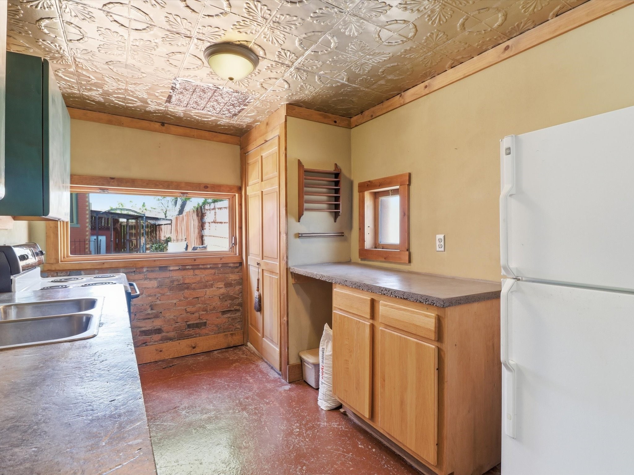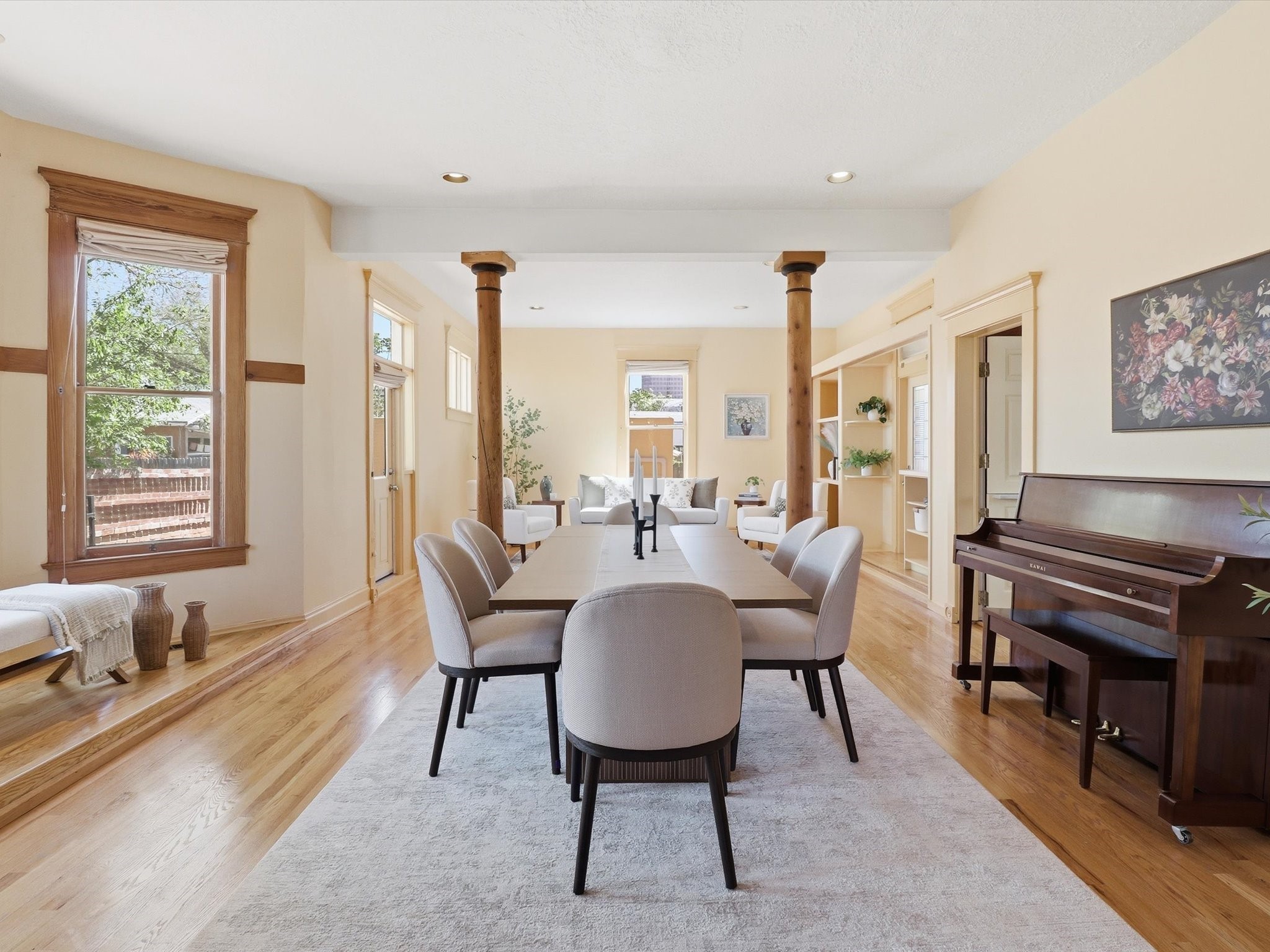 Step into Albuquerque history with the iconic J.E. Saint House, a rare 1907 Dutch Colonial Revival residence in the heart of Downtown. This architecturally significant home features brick construction, river rock foundation, distinctive gambrel rooflines, and rich character. Thoughtfully updated with modern heating and cooling, the property blends historic charm with everyday comfort. Kitchen includes Viking stovetop and range with bain-marie, bar sink and new dishwasher. Two enclosed porches and upstairs covered patio provide options to enjoy the home during different times of the day. A separate heated and cooled carriage house with kitchenette and bath offers exceptional flexibility- ideal for guest space, studio, or income potential. Natural wildflowers and flowering trees line home.10 ft ceilings and oak flooring in the main house. Finished bedroom, bathroom and laundry in basement are not included in sq ft. Balcony overlooks Downtown. Bedrooms are spacious with original hard wood floors, large closets with two full baths. 574 sq ft Guest house (not included in sq ft) has a tin ceiling, full bath, pellet stove and exposed brick interior and concrete floors. Zoned residential or commercial. The earliest resident of the home, JE Saint, was the first mayor of Albuquerque after it incorporated as a city. Home is included in the National Register of Historic Places (NRHP), and the New Mexico, Historical Society of New Mexico series lists