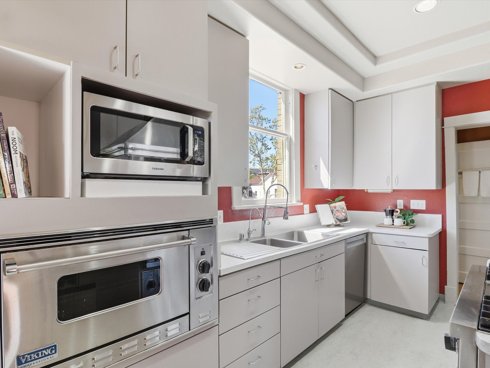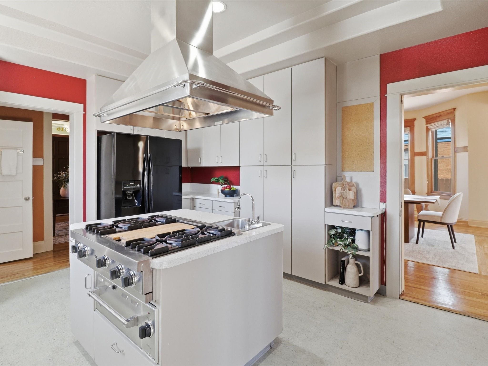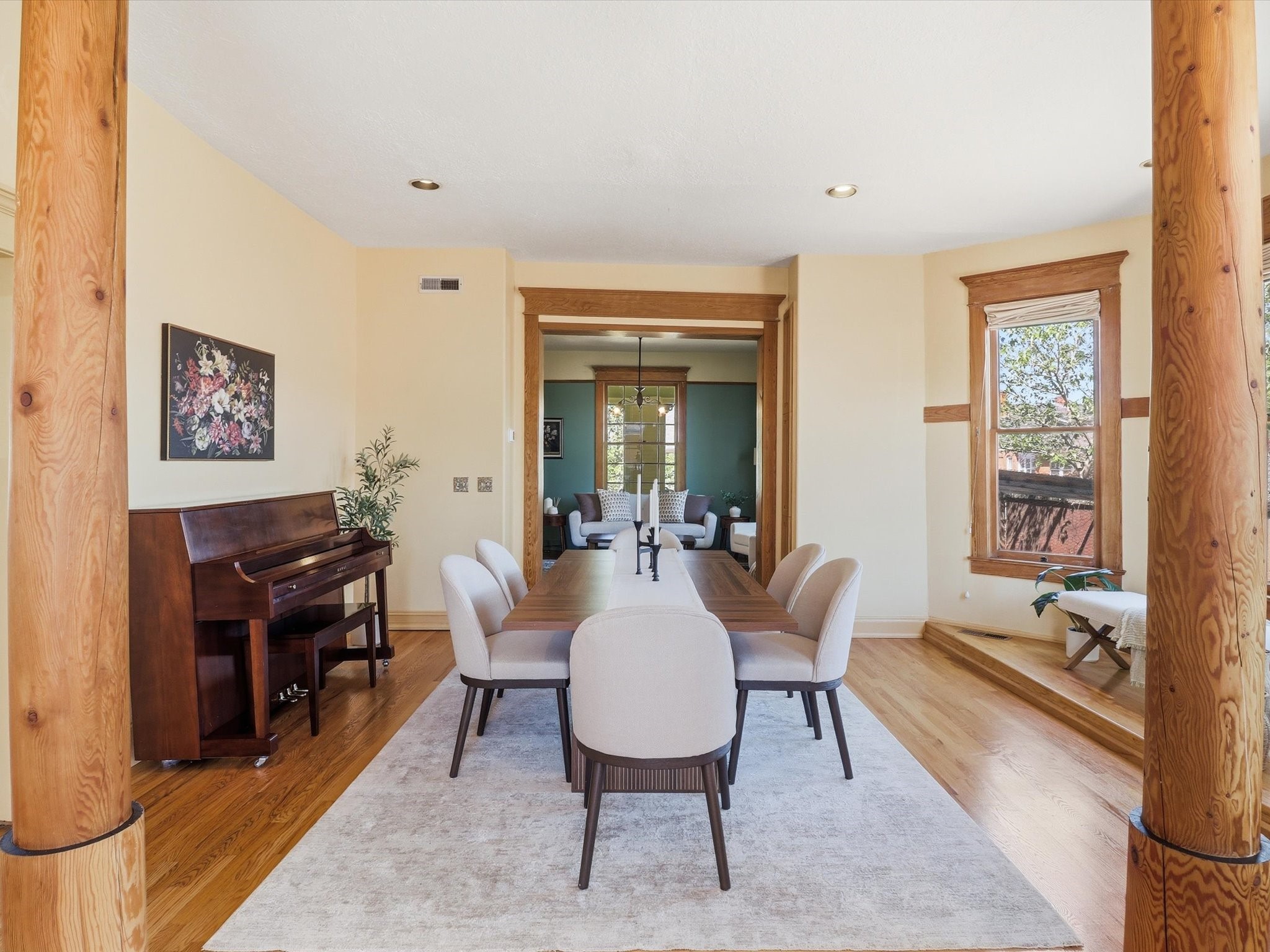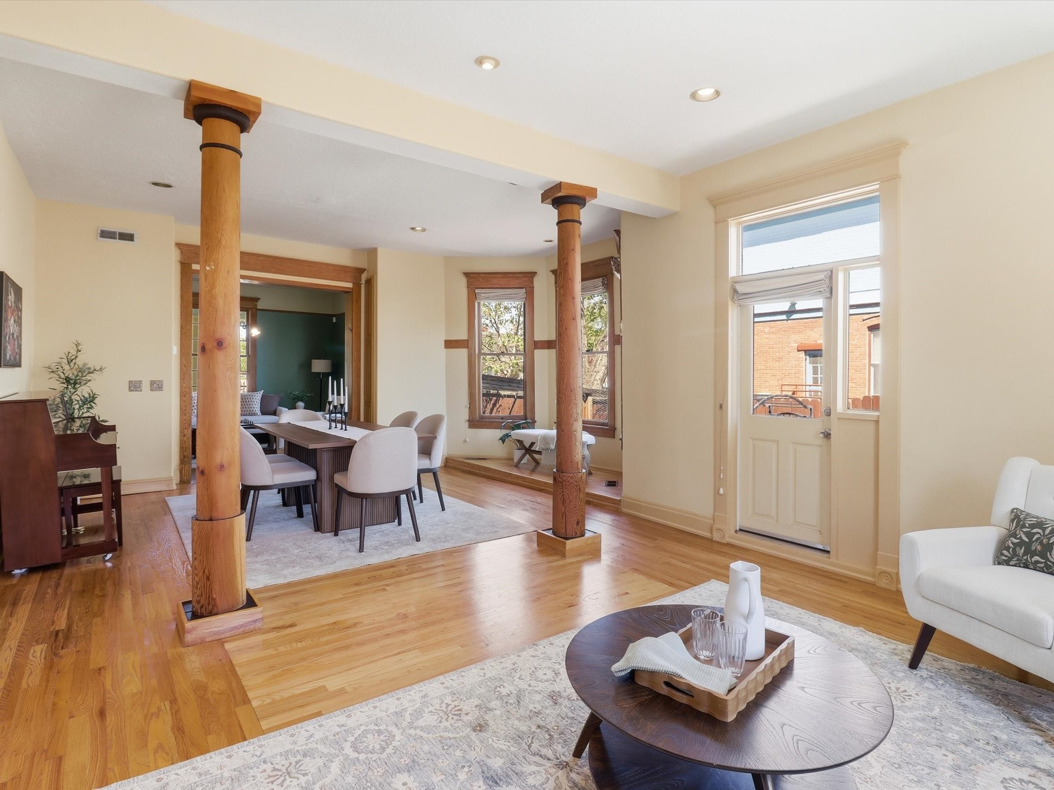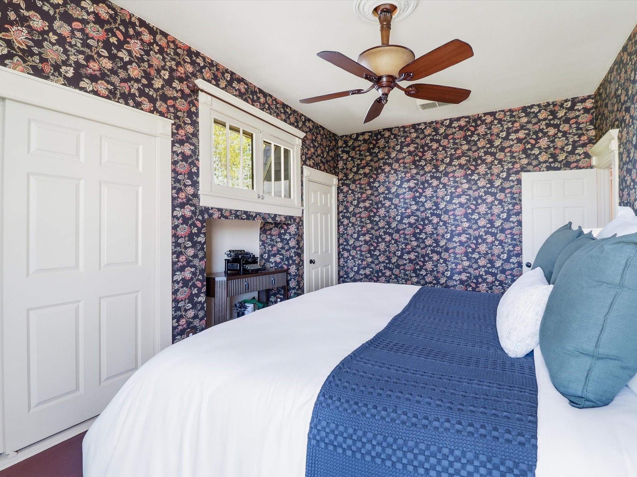 Step into Albuquerque history with the iconic J.E. Saint House, a rare 1907 Dutch Colonial Revival residence in the heart of Downtown. This architecturally significant home features brick construction, river rock foundation, distinctive gambrel rooflines, and rich character. Thoughtfully updated with modern heating and cooling, the property blends historic charm with everyday comfort. Kitchen includes Viking stovetop and range with bain-marie, bar sink and new dishwasher. Two enclosed porches and upstairs covered patio provide options to enjoy the home during different times of the day. A separate heated and cooled carriage house with kitchenette and bath offers exceptional flexibility- ideal for guest space, studio, or income potential. Natural wildflowers and flowering trees line home.10 ft ceilings and oak flooring in the main house. Finished bedroom, bathroom and laundry in basement are not included in sq ft. Balcony overlooks Downtown. Bedrooms are spacious with original hard wood floors, large closets with two full baths. 574 sq ft Guest house (not included in sq ft) has a tin ceiling, full bath, pellet stove and exposed brick interior and concrete floors. Zoned residential or commercial. The earliest resident of the home, JE Saint, was the first mayor of Albuquerque after it incorporated as a city. Home is included in the National Register of Historic Places (NRHP), and the New Mexico, Historical Society of New Mexico series lists