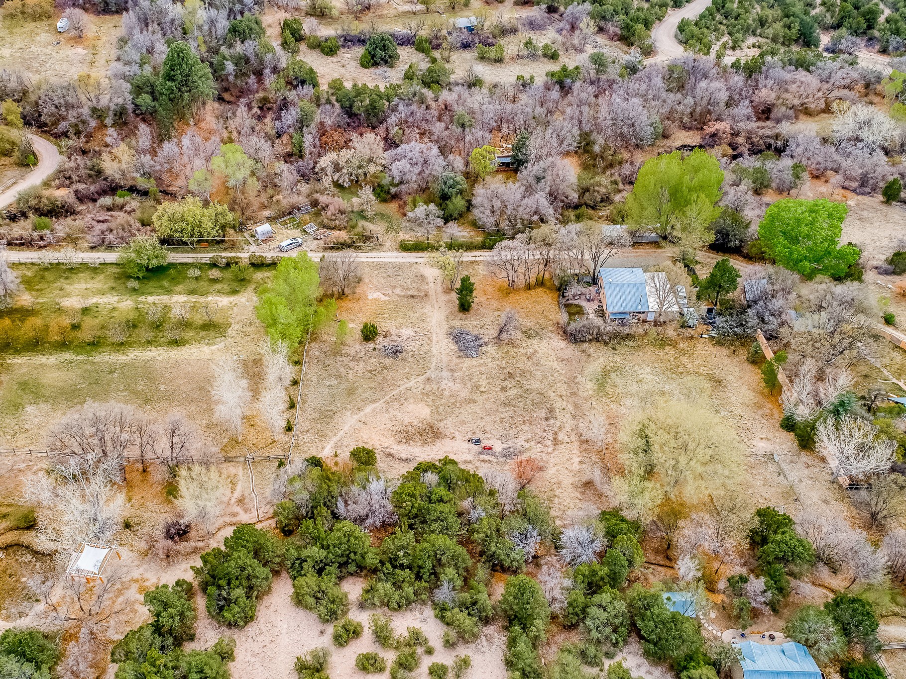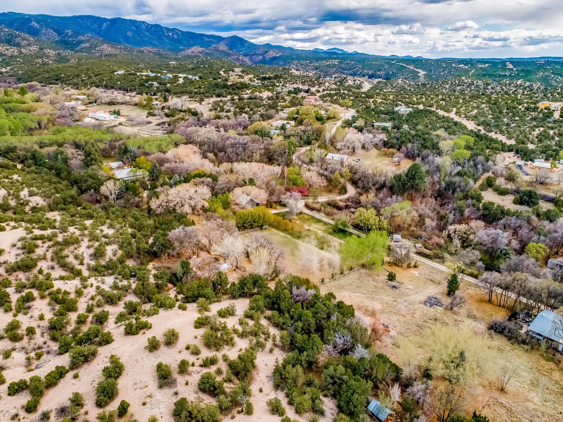 Discover a rare opportunity to own approximately 6 acres of untouched land in beautiful Tesuque, a place where open skies, vibrant landscapes, and peaceful living come together. This versatile property combines gently rolling grassland, pockets of shady wooded areas, and more rugged mountain terrain, creating a dynamic setting that feels both wild and welcoming. From sunrise to sunset, enjoy sweeping mountain views that shift with the light and seasons. Whether you dream of watching the sun rise over distant peaks from your porch, or stargazing under clear New Mexico skies, this land offers a truly inspiring backdrop for daily life. This is the perfect canvas for the home of your dreams, designed around how you live and what you love. Whether you envision a modern architectural retreat, a warm and rustic home, or a timeless pueblo-style residence, there's room to spread out. With horse riding permitted, this is an excellent homesite for equestrian lovers. There is ample room to create a thoughtful setup for keeping horses and other farm animals. Think barns, paddocks, and riding areas, all while preserving plenty of open space. The varied terrain offers both open meadow-like stretches and more sheltered spots, ideal for grazing, exploring, or simply soaking in the quiet. If you've imagined living more sustainably or growing your own food, there's space here for fruit trees and gardens. Picture rows of fruit trees along a gentle slope, a kitchen garden near your future home, and walking paths that wind through the property's natural features. Set in quiet and peaceful surroundings, the land feels worlds away from noise and stress, yet close enough to enjoy all that the Tesuque and greater Santa Fe area have to offer. With endless possibilities for design, recreation, and lifestyle, this 6-acre Tesuque property is more than just land, it's a chance to build your own sanctuary in one of New Mexico's most cherished landscapes.