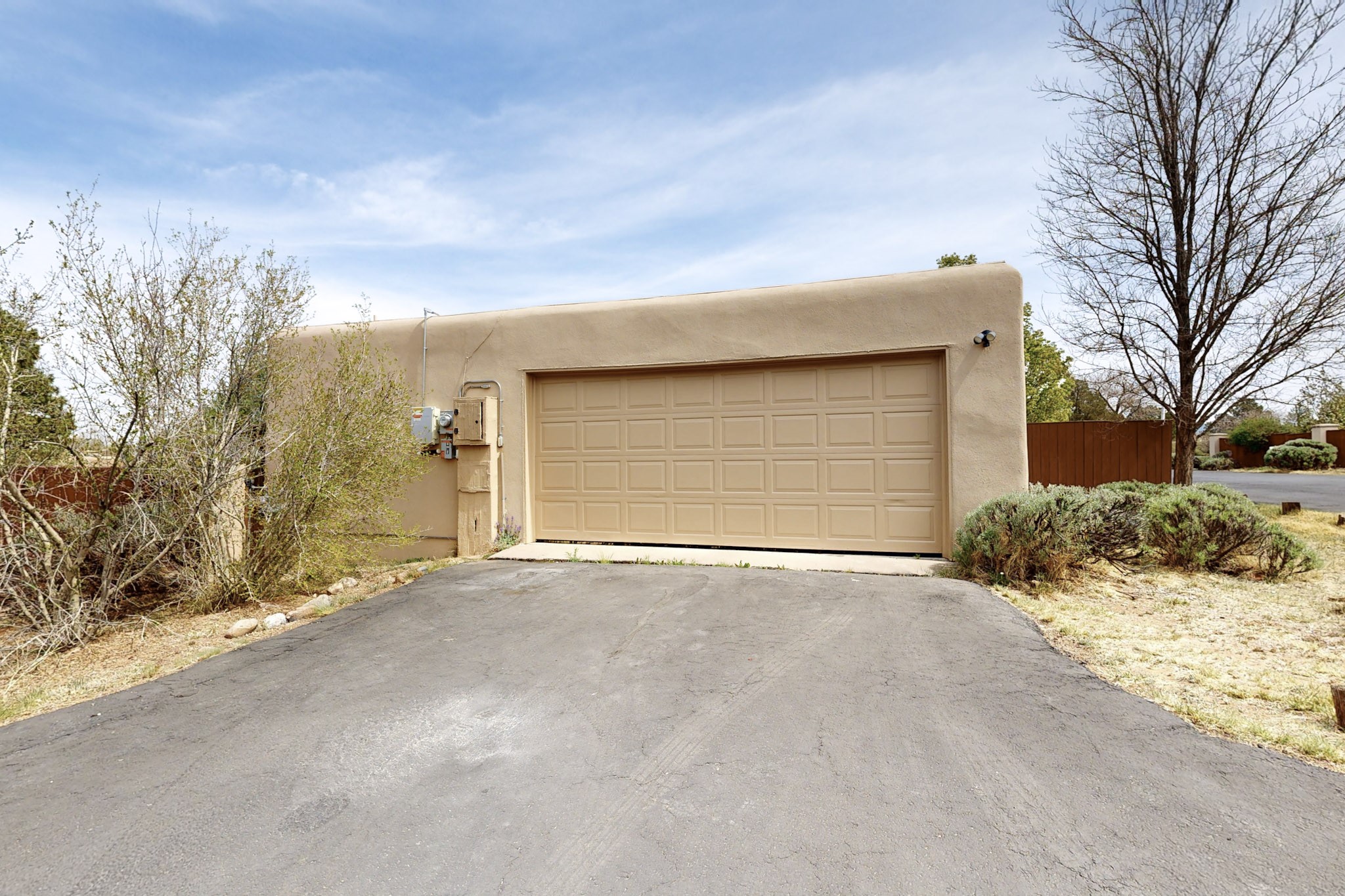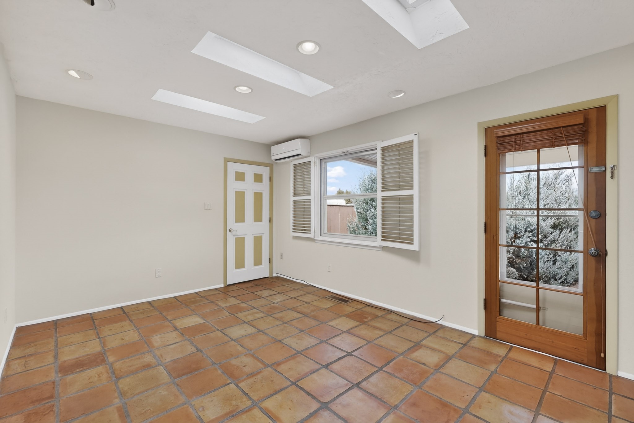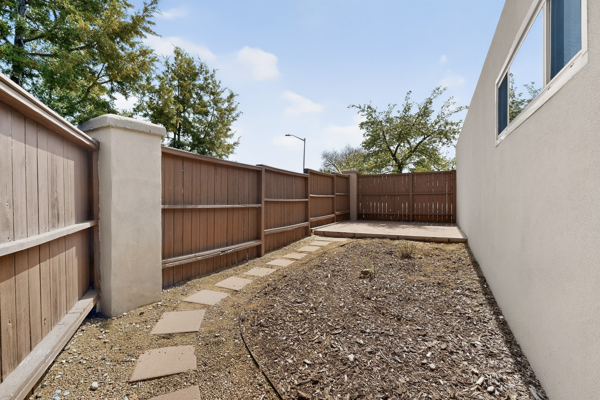You will say "this is what I have been looking for"! Park Plazas is a very desirable subdivision, noted for the exceptional mature & varied trees. Great location for getting anywhere quickly, truly the center of the city, yet quiet & secluded. 9 miles of easy walking trails, always with mountain views. Neighbors will greet you - this is a friendly place! Choices for activities: community garden, pickle ball & tennis courts, large fenced dog play area. Park Plazas has a well-organized HOA, with approximately 440 homes, some two story, or adjoined town houses. With this property you are fortunate to find a single-family house: you are especially lucky because the corner lot location creates a sense of privacy with a large fence surrounding the property. The property has been so well-maintained, every major system in the house has been replaced in the past six years, new heating fall of 2025, plus additions with A/C, mini-split, solar (owned). Fence re-built in early 2026. All the "big tickets" items are done and the house eagerly awaits the new owner. The house offers open light-filled spaces. With almost 2000 sq ft you will find a bedroom wing with 3BR & 2BA, main bedroom is en-suite. The large living room, complete with wood-burning fireplace, opens to both shady & sunny backyard. You will be pleased to find a sun-filled dining room and also an eat-in kitchen. Bonus room, located off the kitchen, would be ideal for many uses - home office, media room, quiet reading room - with direct access to the portal and treed backyard. A two-car garage also makes the house ideal. Yard is completely fenced, offering privacy anda great play space for a happy dog! A gate in the backyard fence invites you to the walking trails. Photos will show you the living room has two steps, which have never bothered the senior citizen who is giving up this special house after many happy years in Santa Fe. Some computer generated photos appear as furnished. No short term rentals allowed.