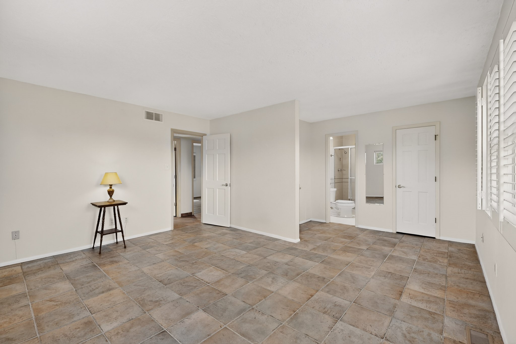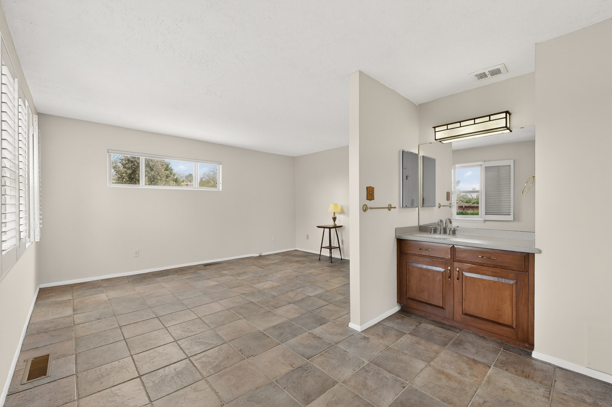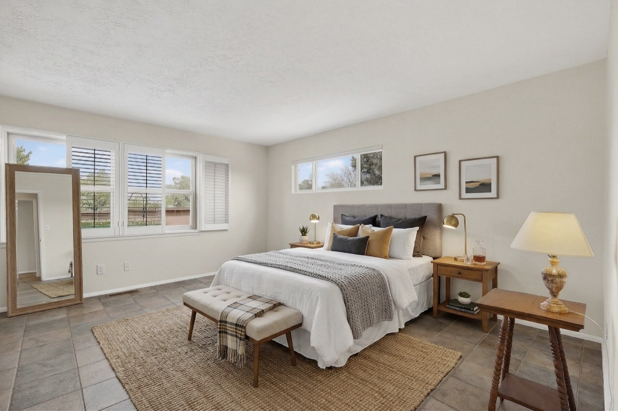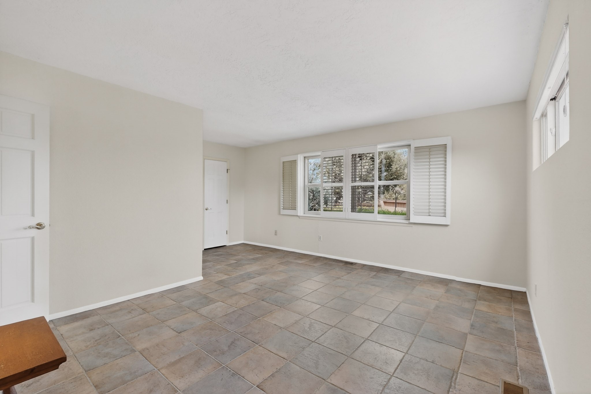 You will say "this is what I have been looking for"! Park Plazas is a very desirable subdivision, noted for the exceptional mature & varied trees. Great location for getting anywhere quickly, truly the center of the city, yet quiet & secluded. 9 miles of easy walking trails, always with mountain views. Neighbors will greet you - this is a friendly place! Choices for activities: community garden, pickle ball & tennis courts, large fenced dog play area. Park Plazas has a well-organized HOA, with approximately 440 homes, some two story, or adjoined town houses. With this property you are fortunate to find a single-family house: you are especially lucky because the corner lot location creates a sense of privacy with a large fence surrounding the property. The property has been so well-maintained, every major system in the house has been replaced in the past six years, new heating fall of 2025, plus additions with A/C, mini-split, solar (owned). Fence re-built in early 2026. All the "big tickets" items are done and the house eagerly awaits the new owner. The house offers open light-filled spaces. With almost 2000 sq ft you will find a bedroom wing with 3BR & 2BA, main bedroom is en-suite. The large living room, complete with wood-burning fireplace, opens to both shady & sunny backyard. You will be pleased to find a sun-filled dining room and also an eat-in kitchen. Bonus room, located off the kitchen, would be ideal for many uses - home office, media room, quiet reading room - with direct access to the portal and treed backyard. A two-car garage also makes the house ideal. Yard is completely fenced, offering privacy anda great play space for a happy dog! A gate in the backyard fence invites you to the walking trails. Photos will show you the living room has two steps, which have never bothered the senior citizen who is giving up this special house after many happy years in Santa Fe. Some computer generated photos appear as furnished. No short term rentals allowed.