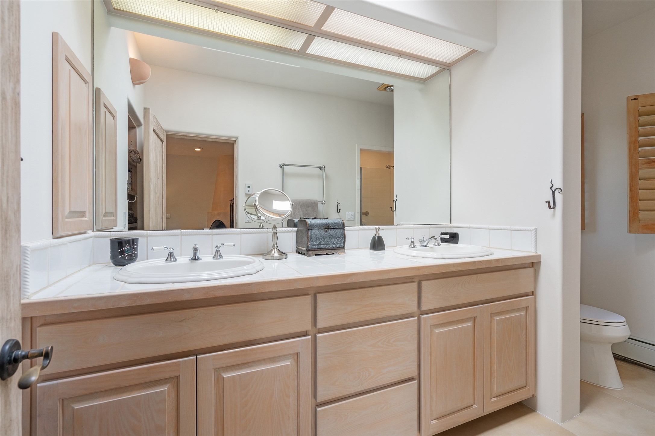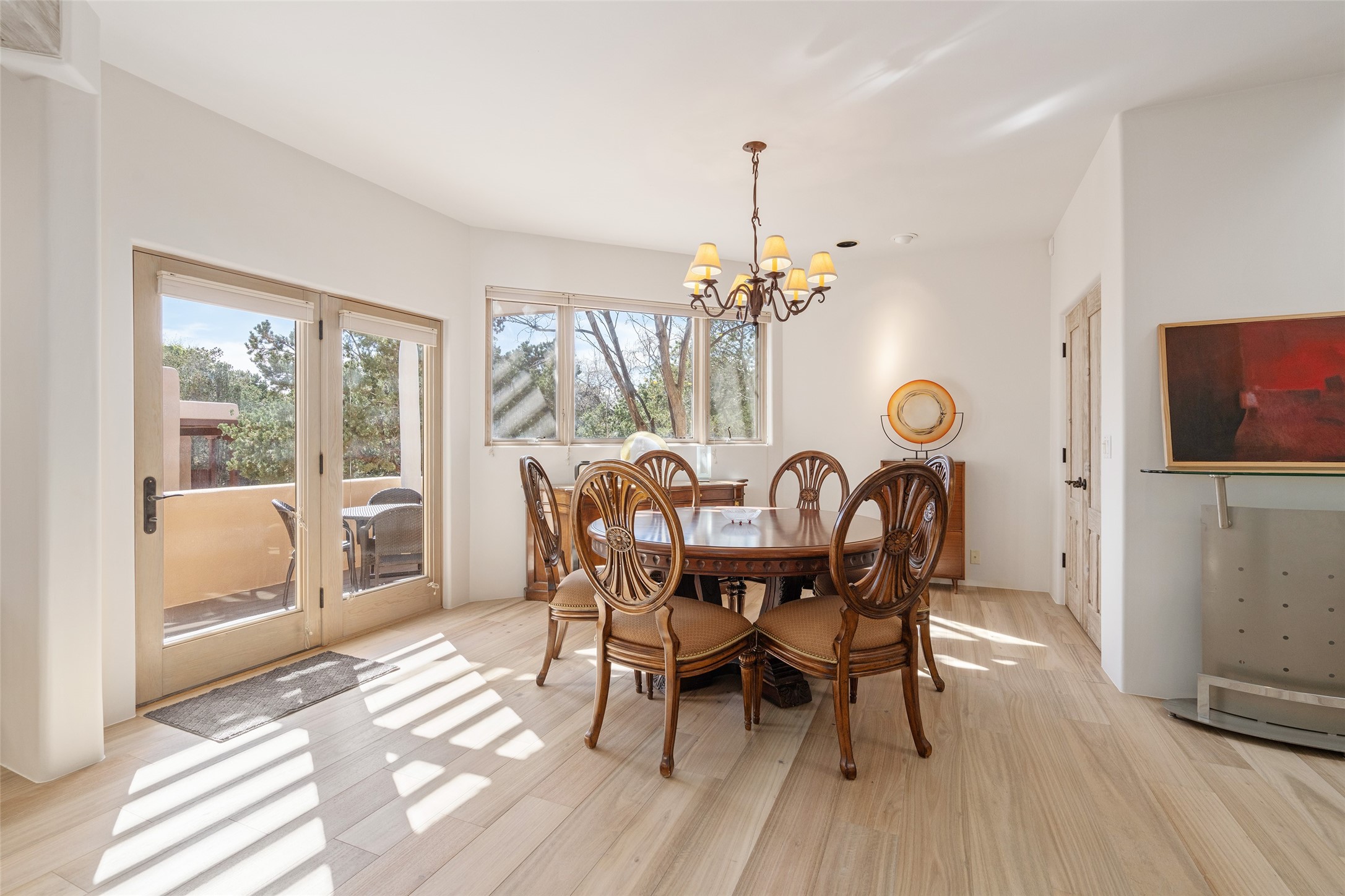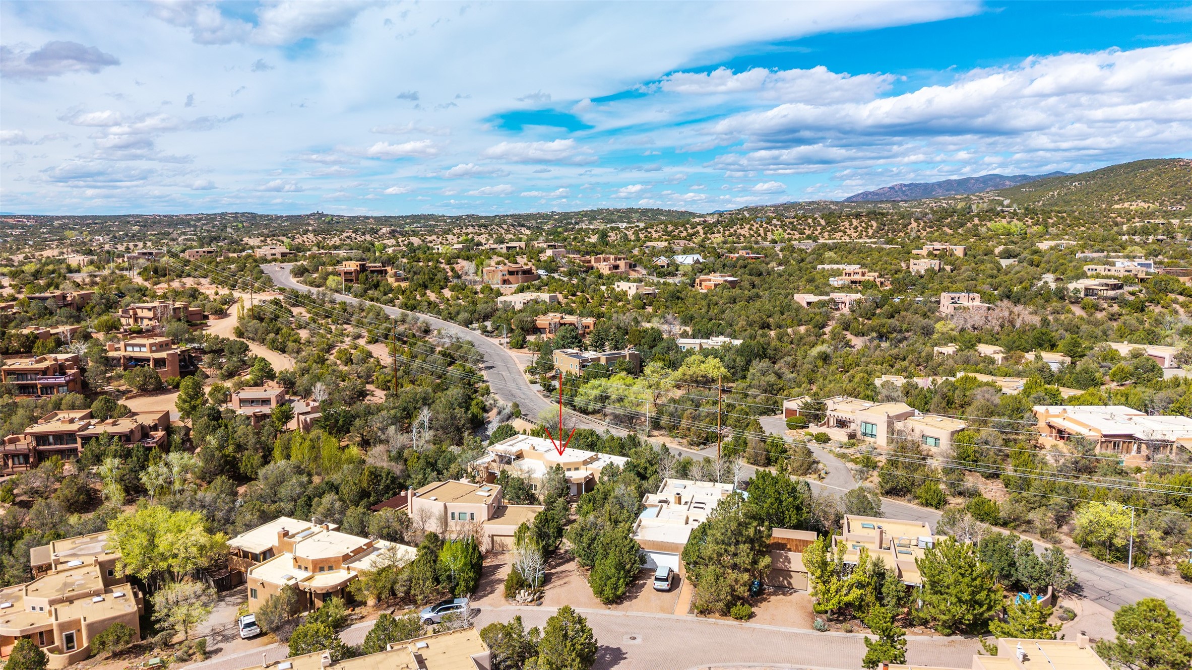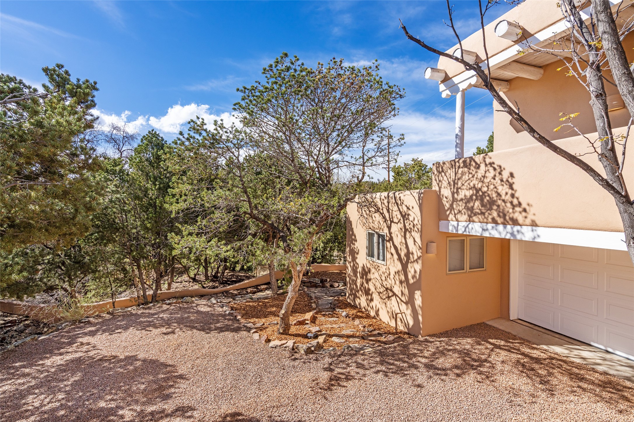 Situated on a beautifully private half-acre lot in the highly desirable Estancia Primera neighborhood, this thoughtfully updated home offers the perfect blend of Santa Fe charm and modern ease. Recent structural upgrades--including a brand new roof with transferable warranty and all-new stucco--provide peace of mind, while a newly built deck off the dining room invites morning coffee or sunset evenings beneath the trees. Inside, the home has been refreshed with brand new Engineered European Walnut wood flooring and a freshly painted interior, creating a clean, contemporary backdrop. The spacious living room is anchored by soaring ceilings with beams and a classic wood-burning kiva fireplace, offering warmth and timeless character. French doors open to a serene outdoor space, where mature trees create a sense of privacy and connection to nature. The kitchen is both functional and inviting, featuring granite countertops, stainless steel appliances, and abundant cabinetry and storage. The primary suite is a true retreat, complete with dual closets--including a cedar-lined closet--an en suite bath, and a private balcony ideal for quiet moments. On the opposite side of the home, two additional bedrooms and a guest bath provide comfortable separation for family or guests. A standout feature is the studio space just off the garage, complete with a sink--perfect for artists, hobbyists, or flexible use. Additional highlights include mini-splits throughout, new skylights and clerestory windows, plantation shutters, and a powder room. The home may also be offered essentially turnkey, with furnishings available making this an easy second home acquisition. Located just off Hyde Park Road, only minutes from the historic Plaza, Estancia Primera residents enjoy access to tennis courts, a seasonal pool, and scenic walking trails--offering a rare combination of convenience, community, and natural beauty.