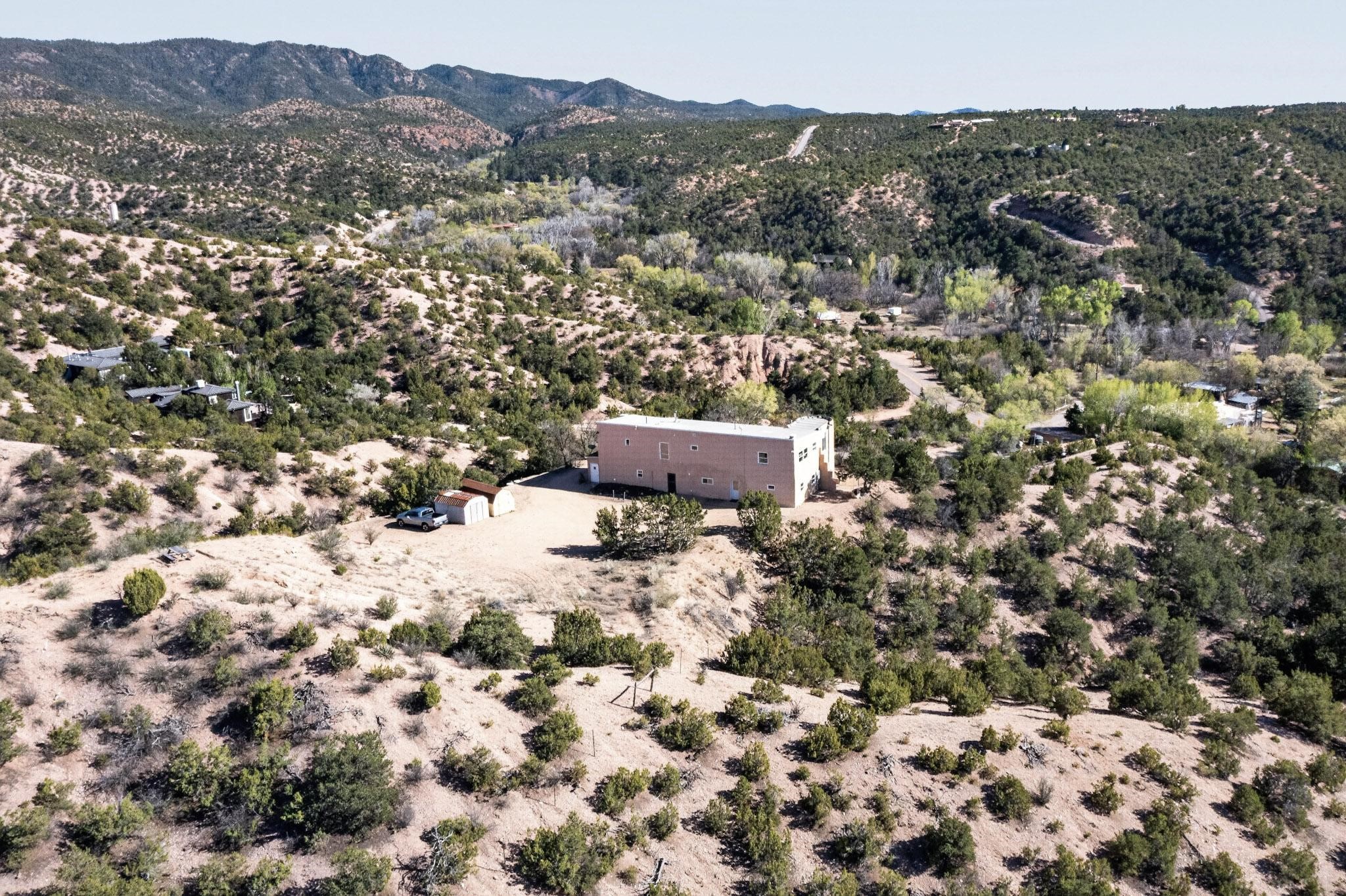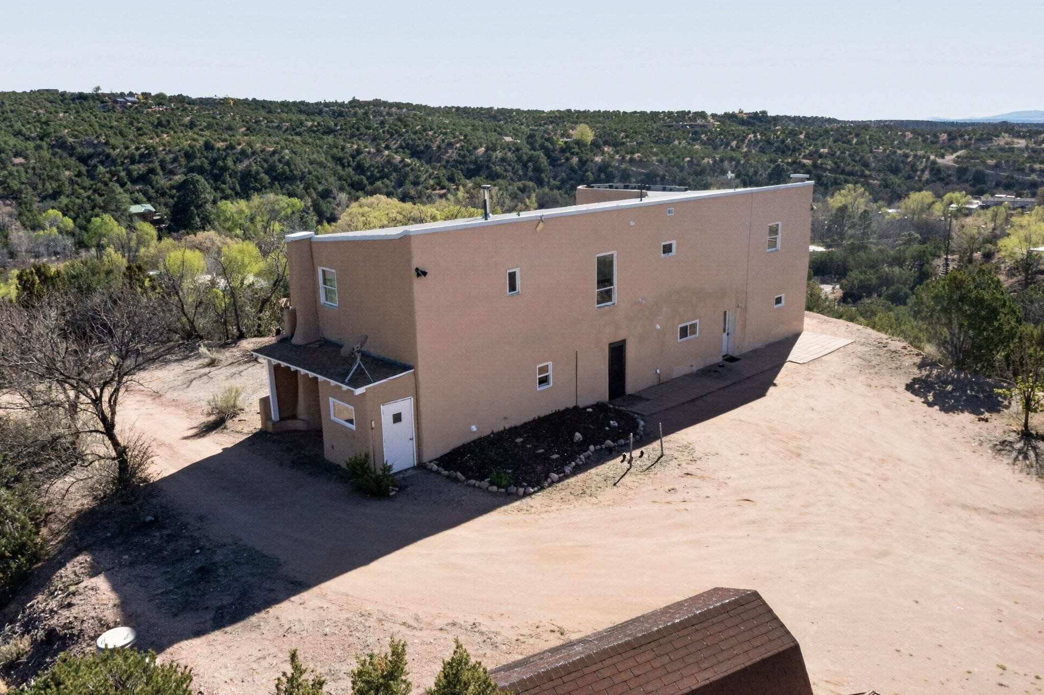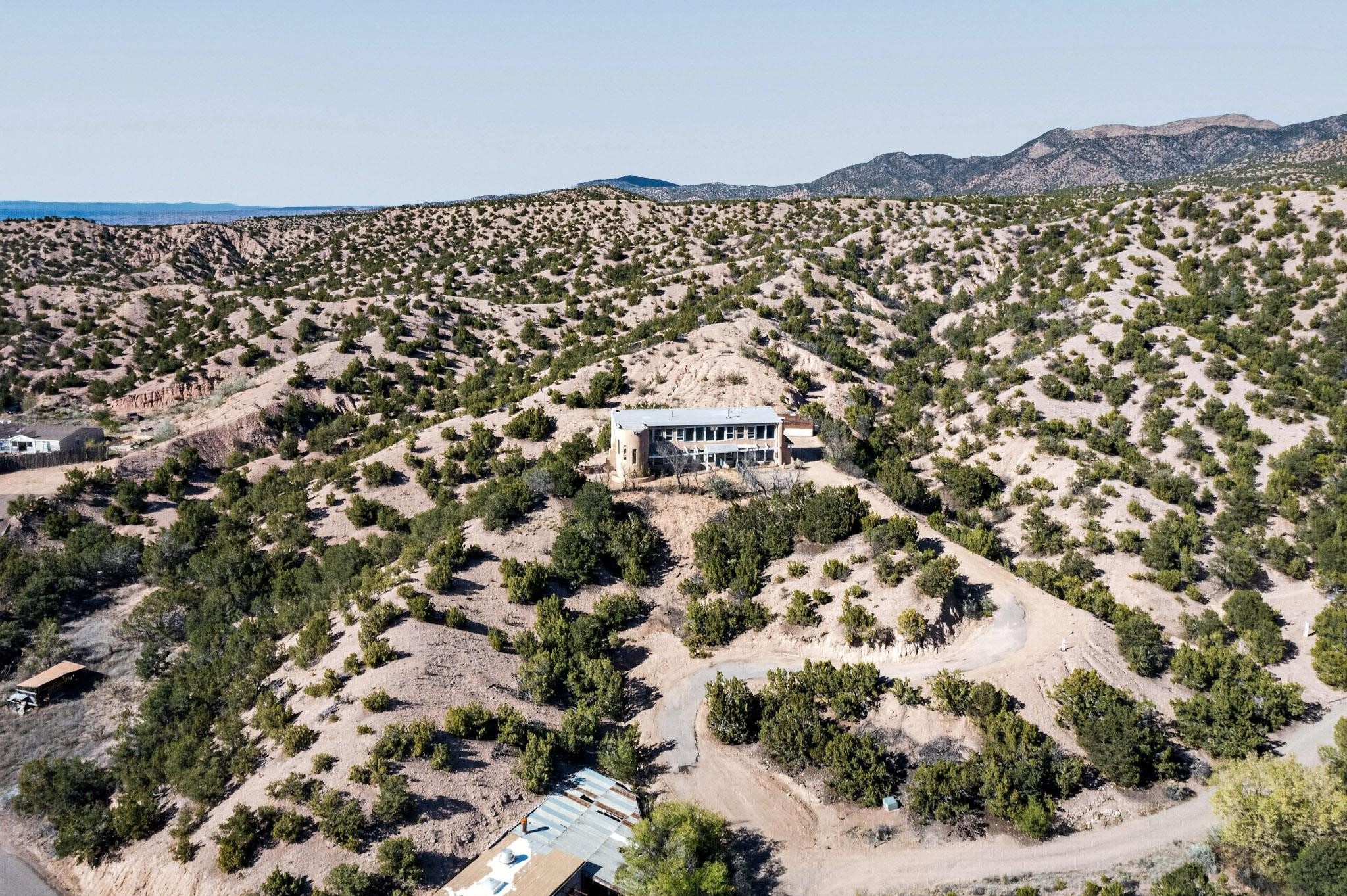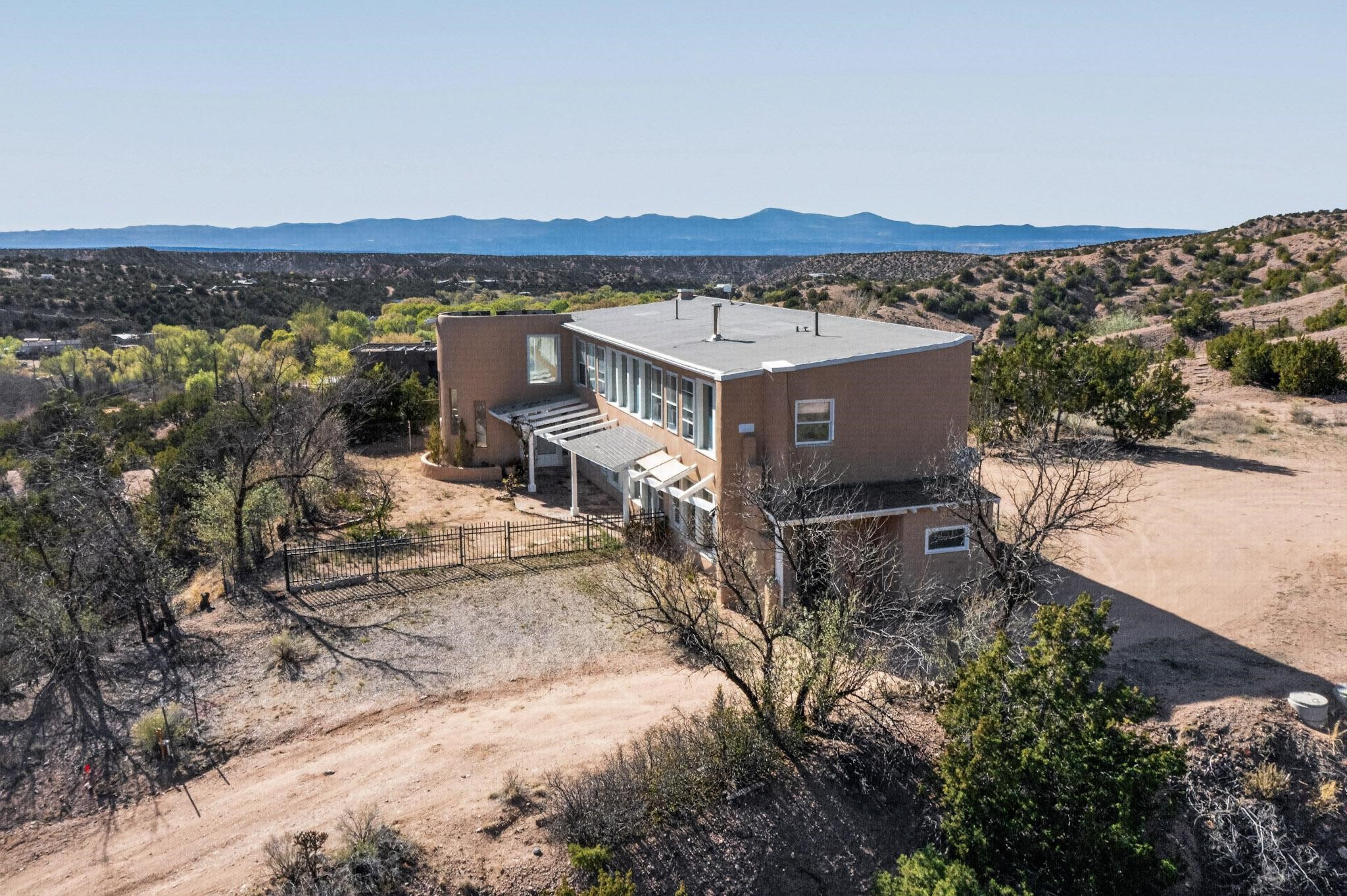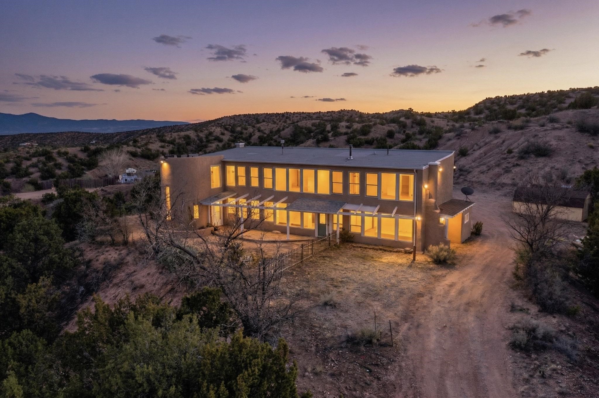 Nestled on 5 acres in the enchanting foothills near Tesuque Village, this uniquely styled home captures the essence of Northern New Mexico living. Located in the quintessential village of Chupadero, the property blends timeless Southwestern charm with breathtaking natural surroundings. Inside, you'll find over 3,100 square feet of thoughtfully designed living space, highlighted by bold vigas, warm flagstone flooring throughout the first floor, and soaring ceilings that extend to the second level. The expansive kitchen and dining area is filled with natural light from dramatic floor-to-ceiling windows, offering both stunning views and passive solar efficiency. The home features two separate living rooms--one on each floor--providing flexibility for entertaining or quiet retreat. With 3 bedrooms and 3 bathrooms, including a convenient ground-floor bedroom, the layout is ideal for multigenerational living or guest accommodations. Step outside and immerse yourself in the beauty of Northern New Mexico. Enjoy direct access to mountain trails right from your backyard, along with sweeping views of the Jemez Mountains and moonrises over the Sangre de Cristo Mountains. At night, the unobstructed skies reveal a dazzling display of stars from every window. Despite its serene setting, the home is just 22 minutes from the historic Santa Fe Plaza and only 5-10 minutes from beloved local destinations like Terra, El Nido, and Tesuque Village Market.