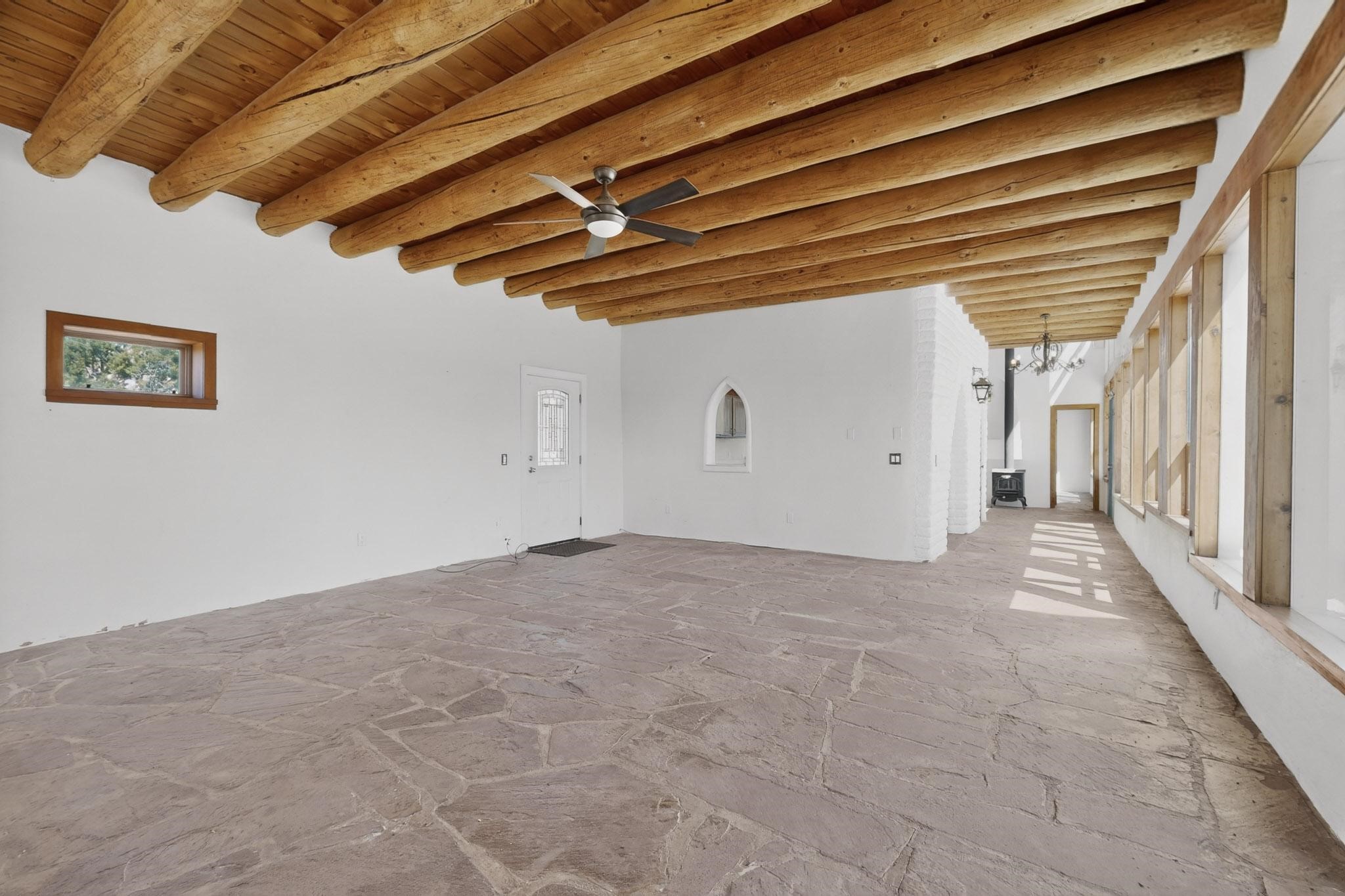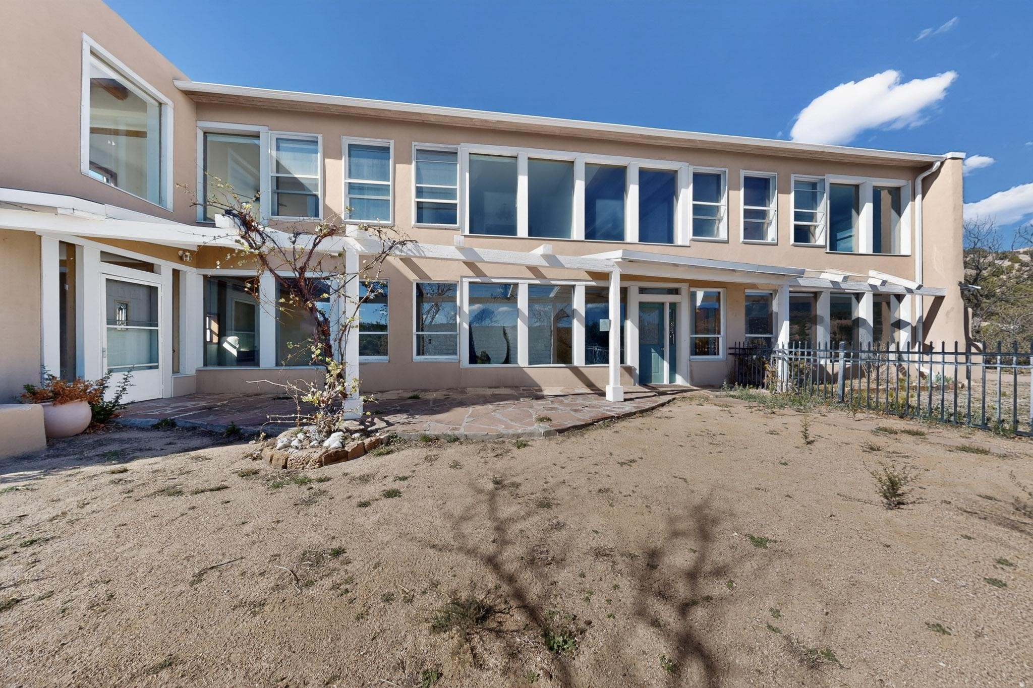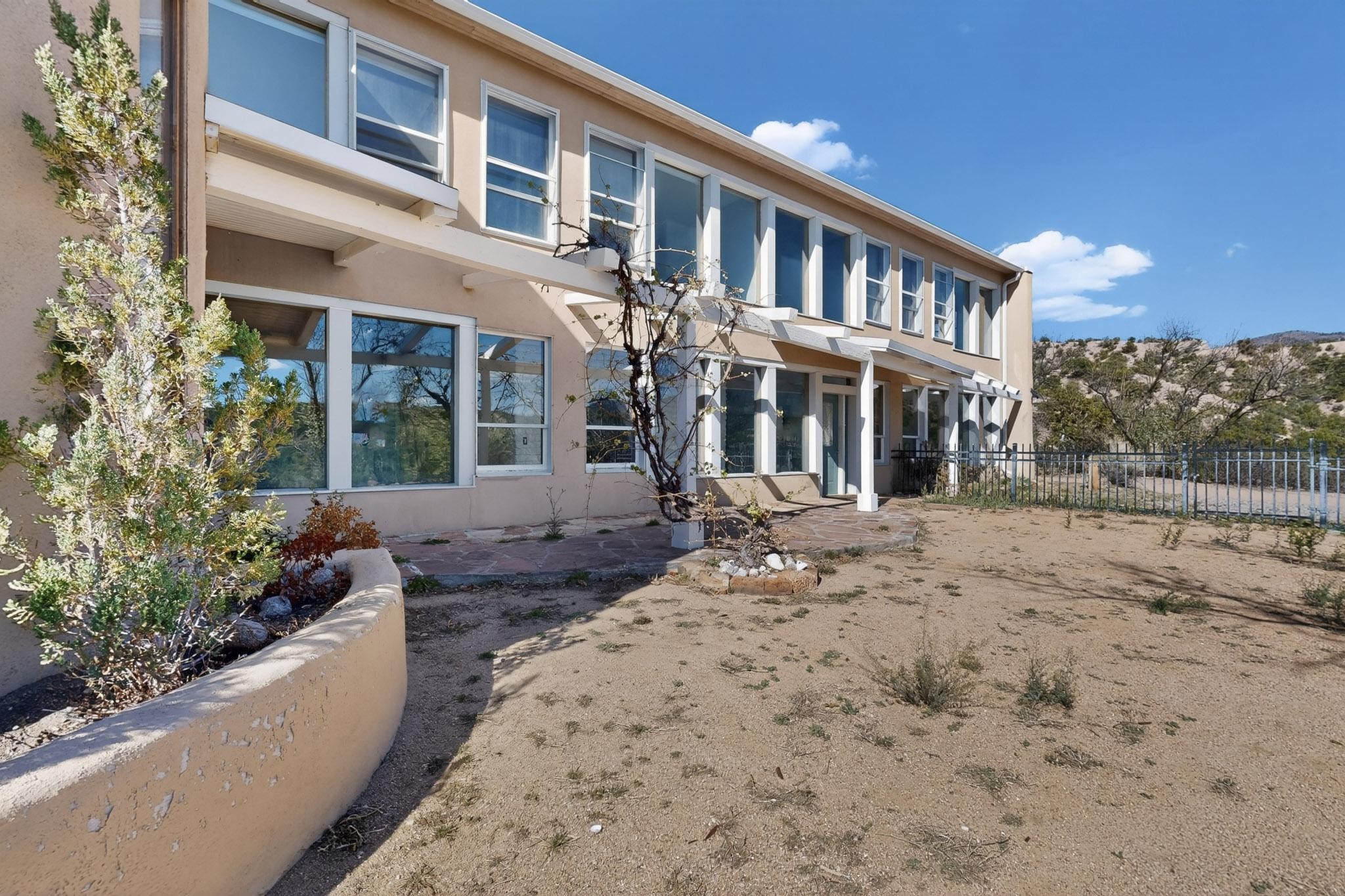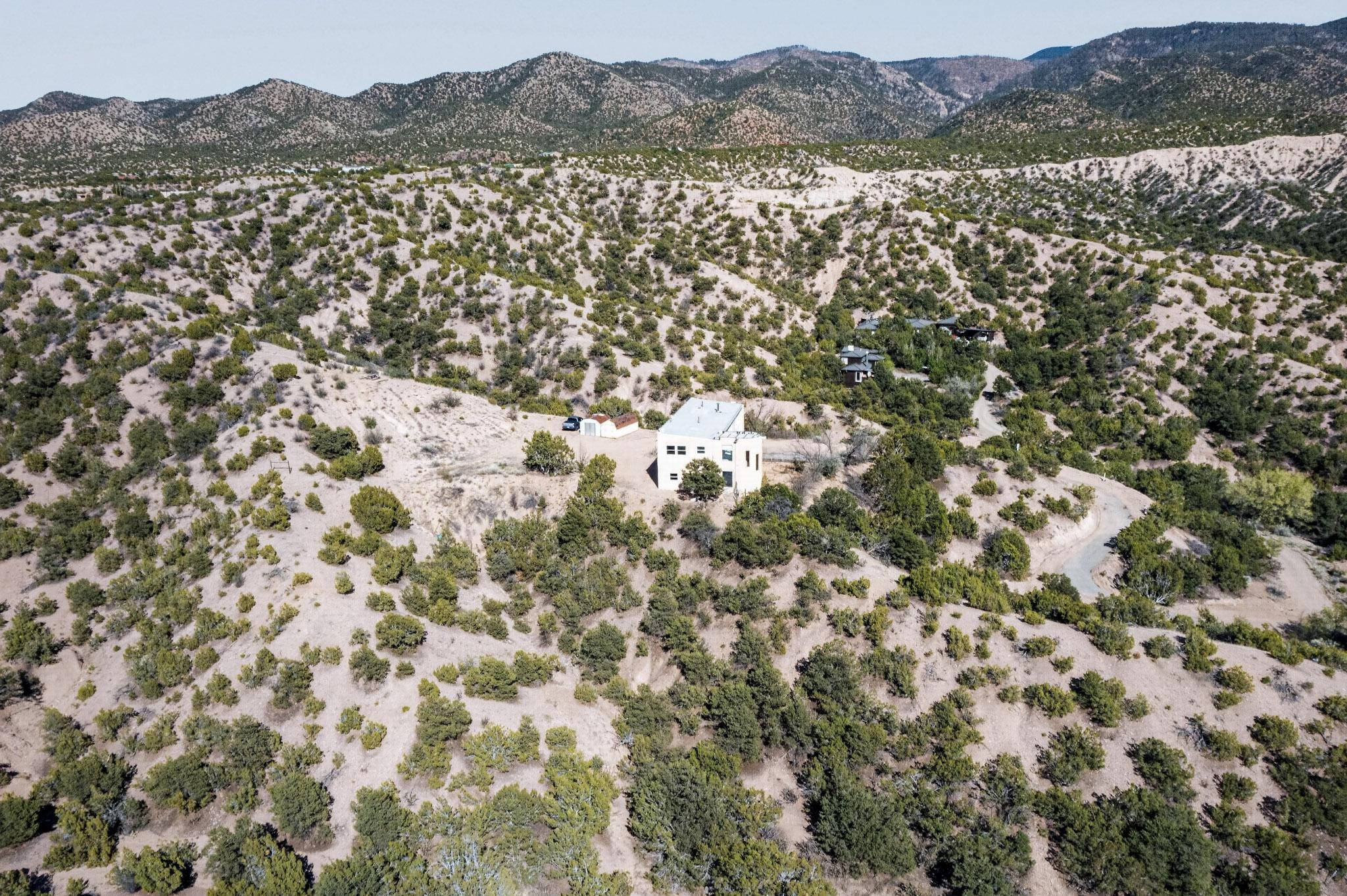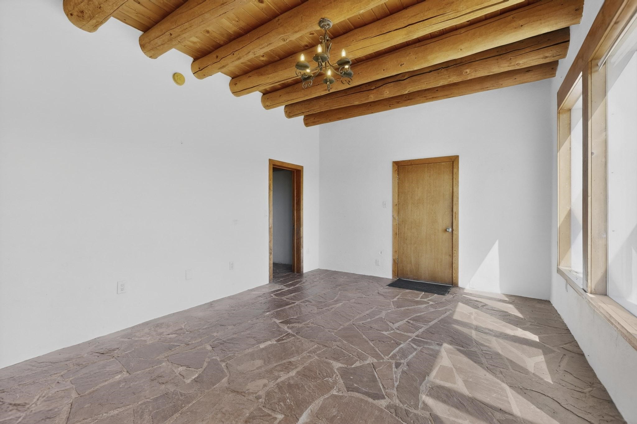 Nestled on 5 acres in the enchanting foothills near Tesuque Village, this uniquely styled home captures the essence of Northern New Mexico living. Located in the quintessential village of Chupadero, the property blends timeless Southwestern charm with breathtaking natural surroundings. Inside, you'll find over 3,100 square feet of thoughtfully designed living space, highlighted by bold vigas, warm flagstone flooring throughout the first floor, and soaring ceilings that extend to the second level. The expansive kitchen and dining area is filled with natural light from dramatic floor-to-ceiling windows, offering both stunning views and passive solar efficiency. The home features two separate living rooms--one on each floor--providing flexibility for entertaining or quiet retreat. With 3 bedrooms and 3 bathrooms, including a convenient ground-floor bedroom, the layout is ideal for multigenerational living or guest accommodations. Step outside and immerse yourself in the beauty of Northern New Mexico. Enjoy direct access to mountain trails right from your backyard, along with sweeping views of the Jemez Mountains and moonrises over the Sangre de Cristo Mountains. At night, the unobstructed skies reveal a dazzling display of stars from every window. Despite its serene setting, the home is just 22 minutes from the historic Santa Fe Plaza and only 5-10 minutes from beloved local destinations like Terra, El Nido, and Tesuque Village Market.