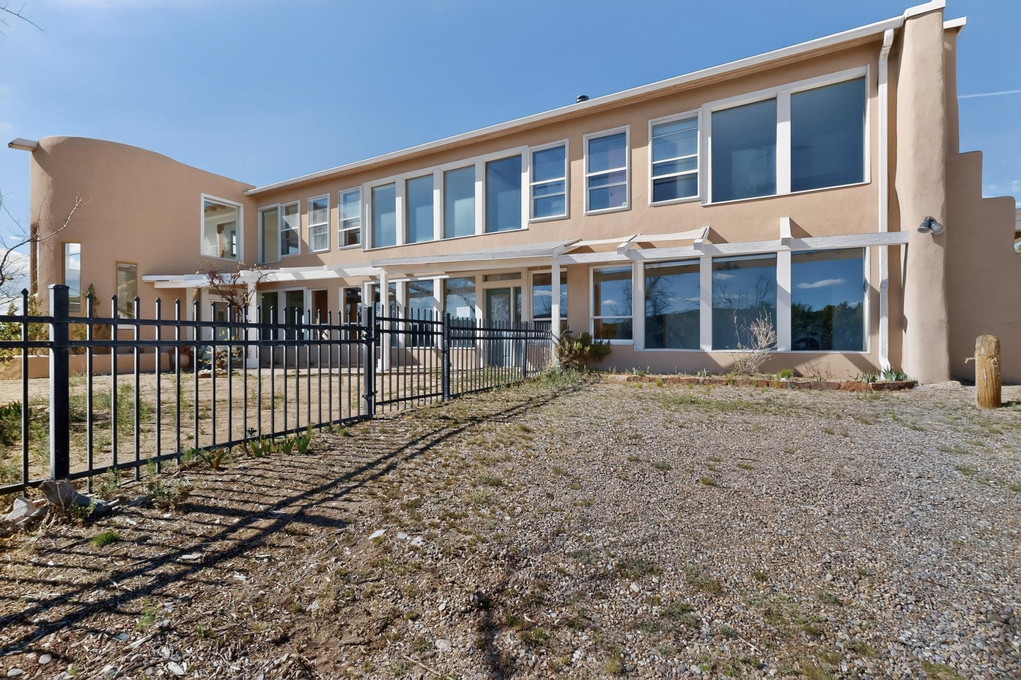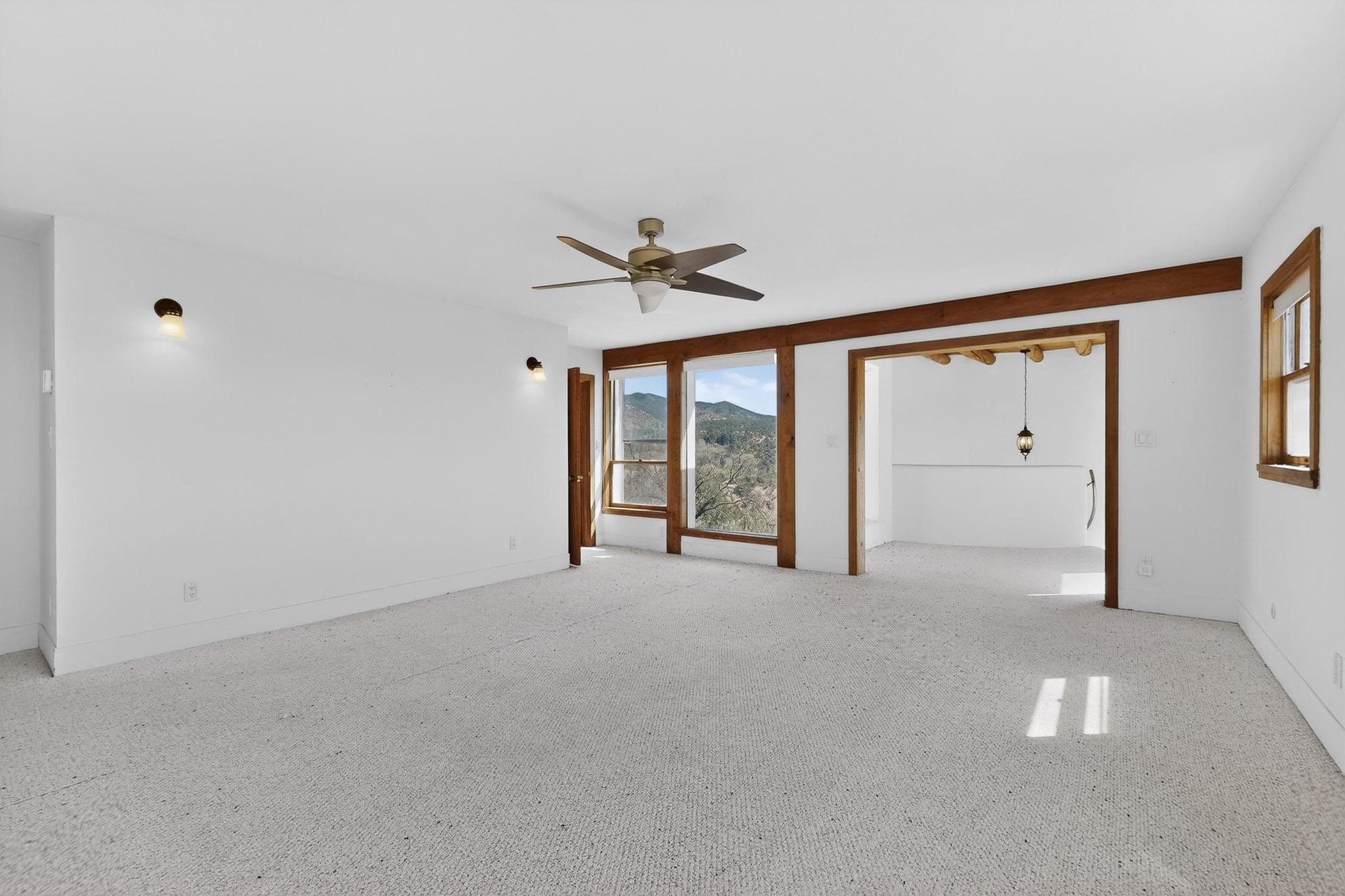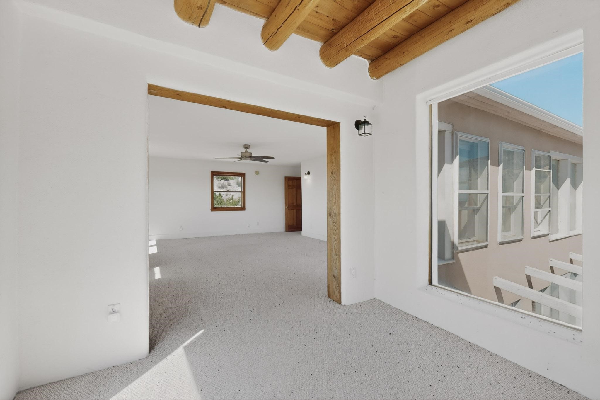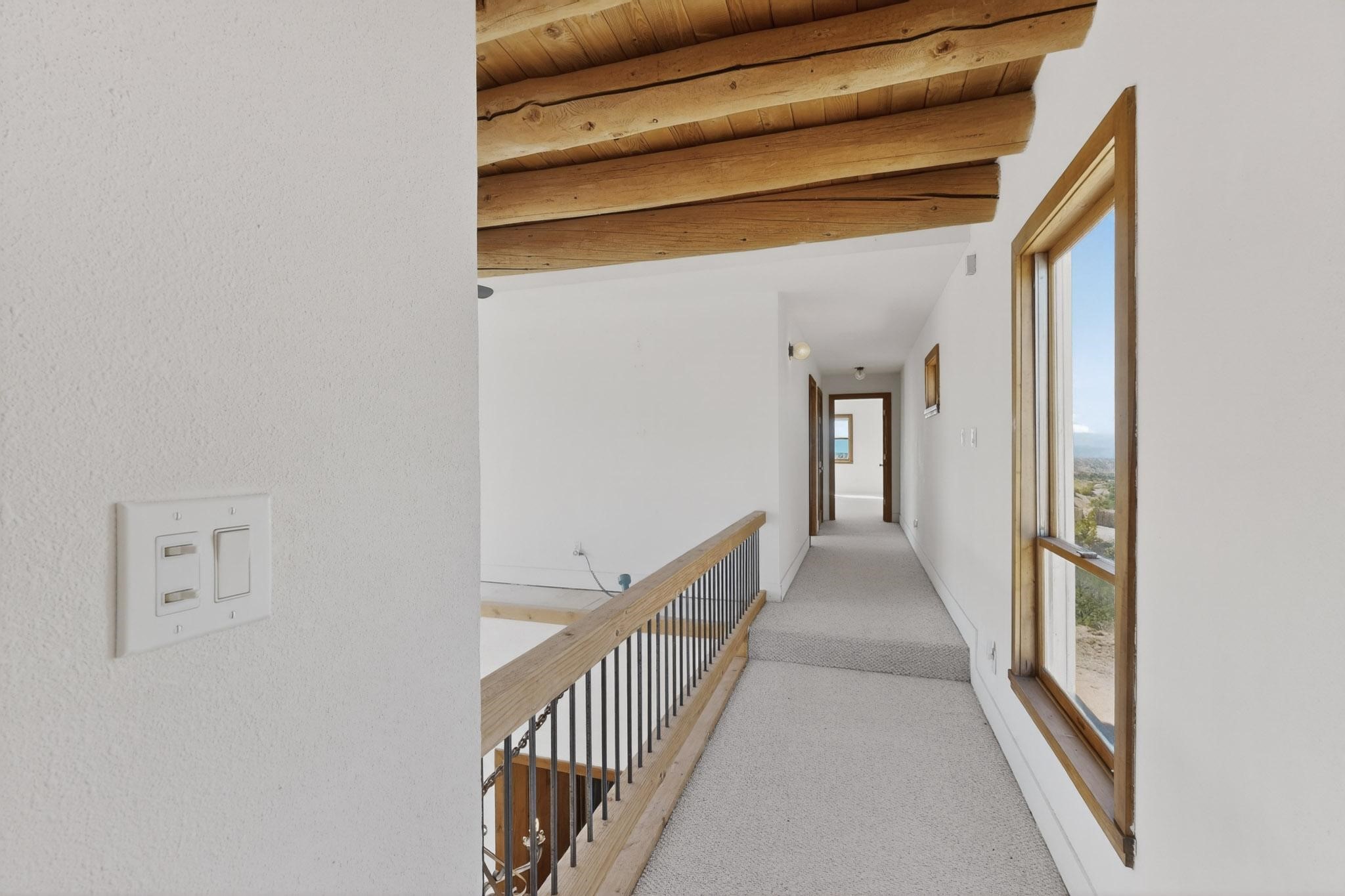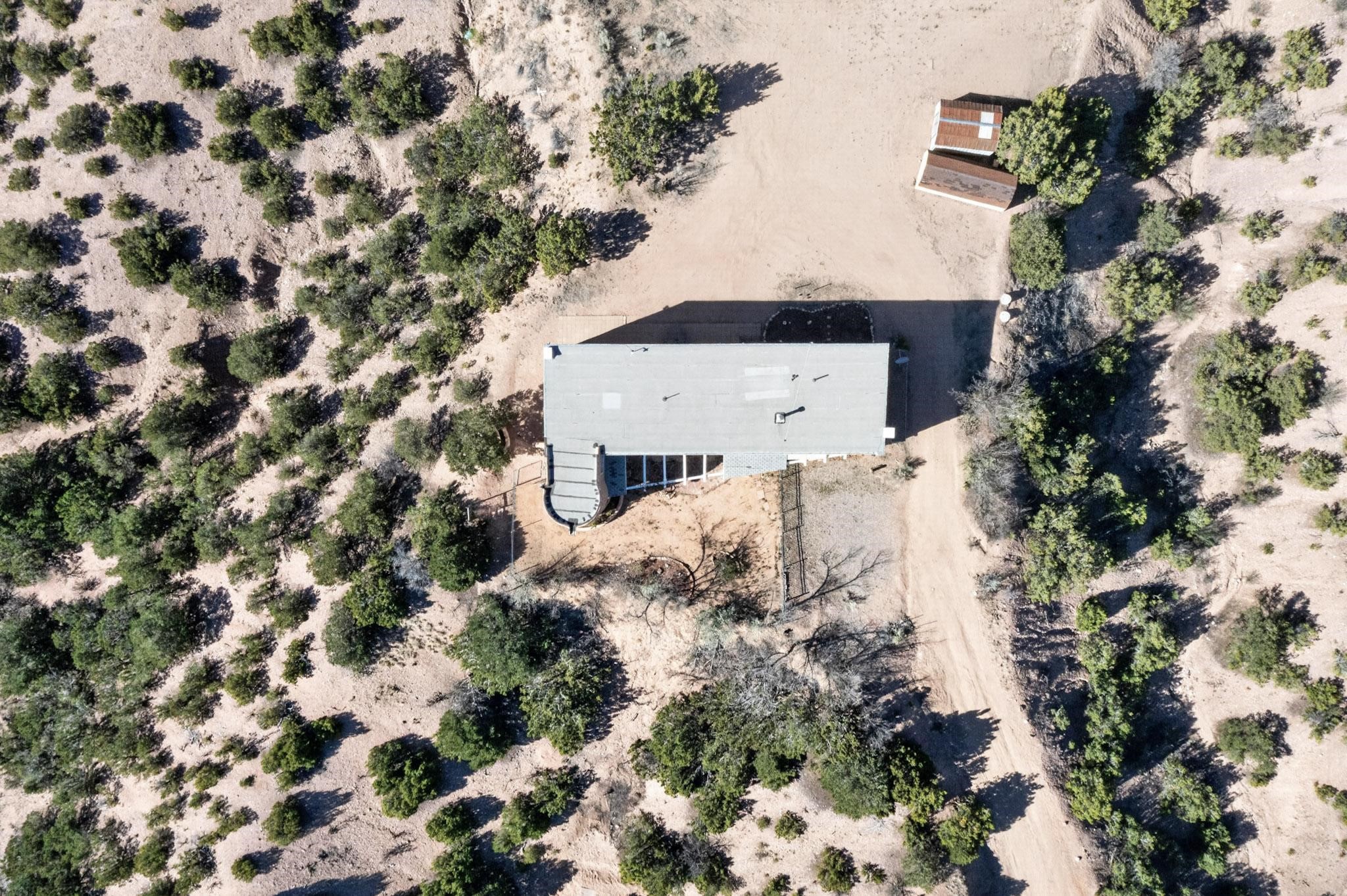Nestled on 5 acres in the enchanting foothills near Tesuque Village, this uniquely styled home captures the essence of Northern New Mexico living. Located in the quintessential village of Chupadero, the property blends timeless Southwestern charm with breathtaking natural surroundings. Inside, you'll find over 3,100 square feet of thoughtfully designed living space, highlighted by bold vigas, warm flagstone flooring throughout the first floor, and soaring ceilings that extend to the second level. The expansive kitchen and dining area is filled with natural light from dramatic floor-to-ceiling windows, offering both stunning views and passive solar efficiency. The home features two separate living rooms--one on each floor--providing flexibility for entertaining or quiet retreat. With 3 bedrooms and 3 bathrooms, including a convenient ground-floor bedroom, the layout is ideal for multigenerational living or guest accommodations. Step outside and immerse yourself in the beauty of Northern New Mexico. Enjoy direct access to mountain trails right from your backyard, along with sweeping views of the Jemez Mountains and moonrises over the Sangre de Cristo Mountains. At night, the unobstructed skies reveal a dazzling display of stars from every window. Despite its serene setting, the home is just 22 minutes from the historic Santa Fe Plaza and only 5-10 minutes from beloved local destinations like Terra, El Nido, and Tesuque Village Market.