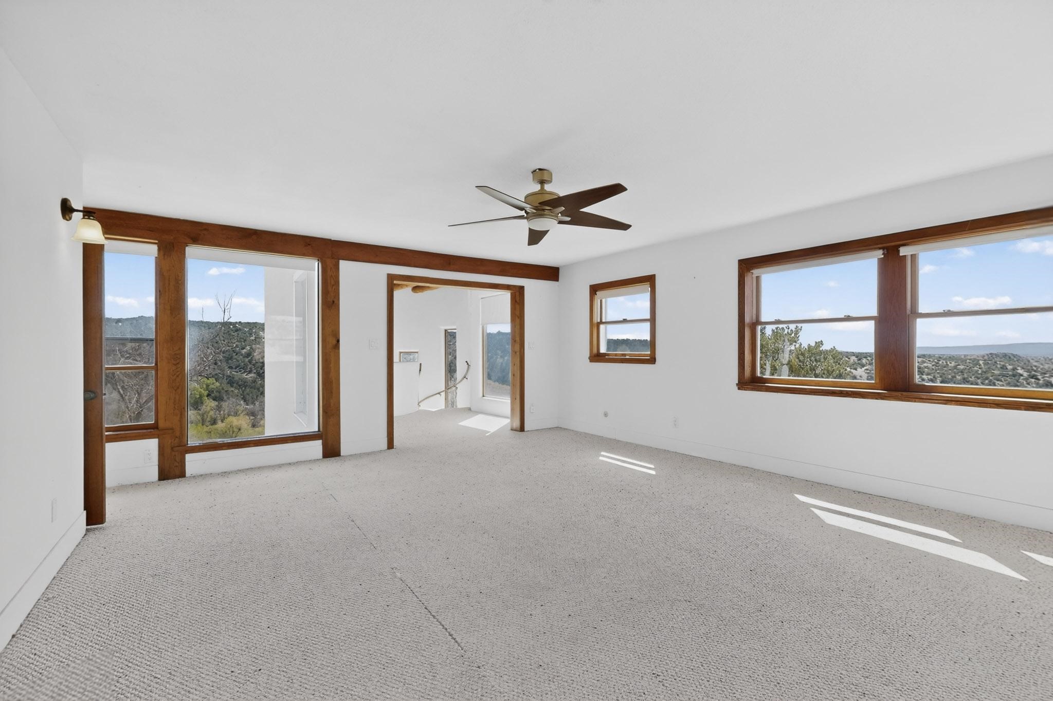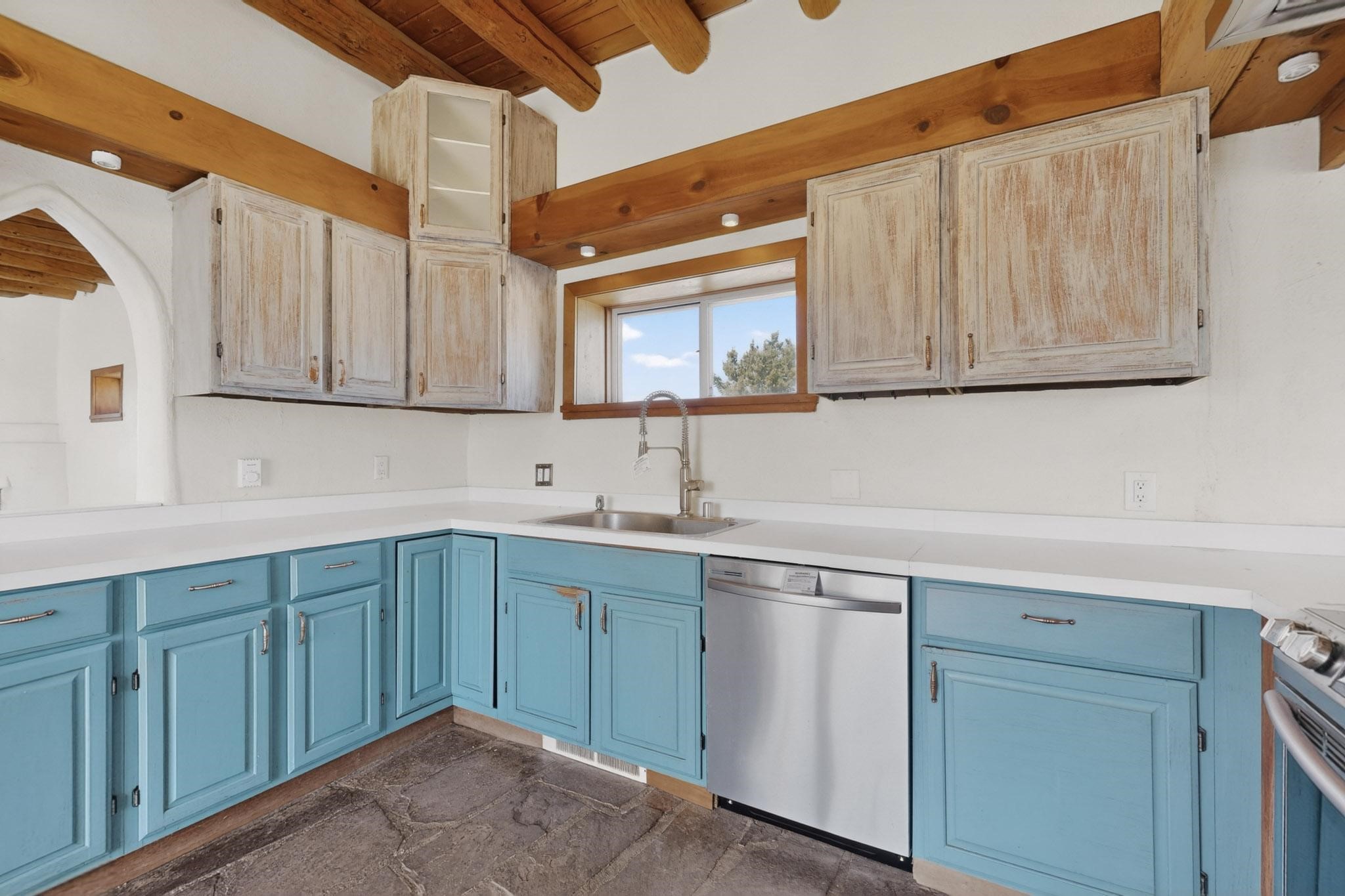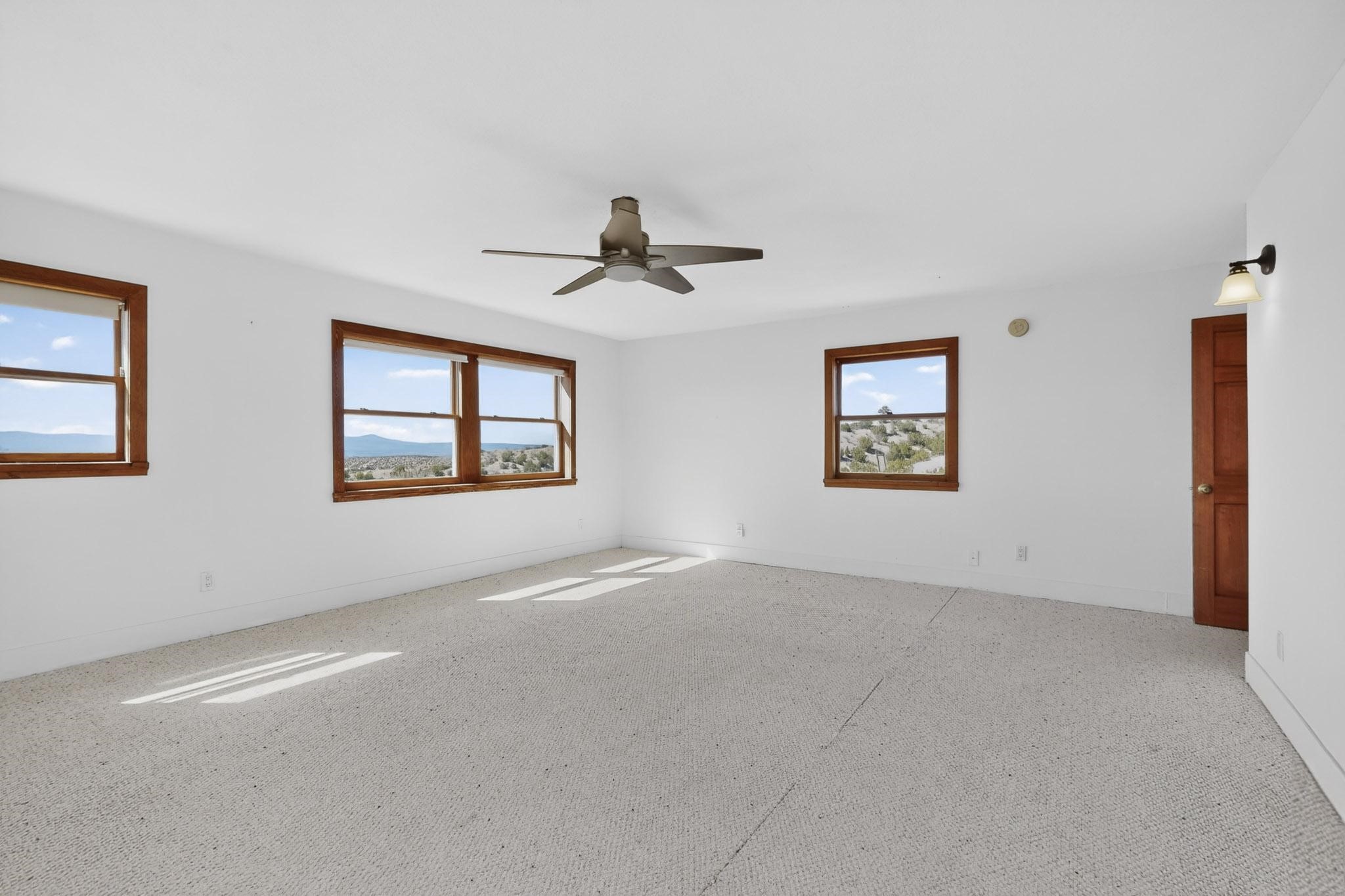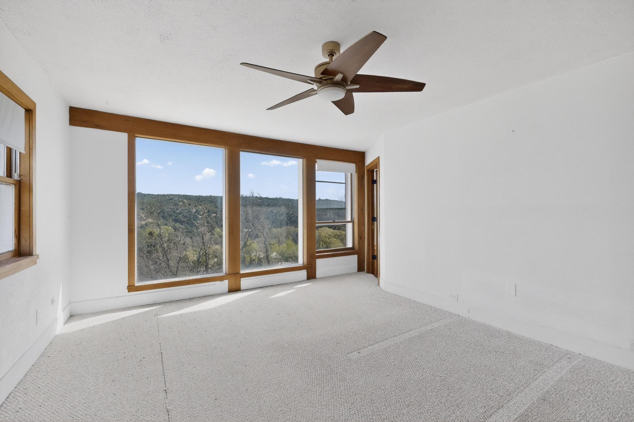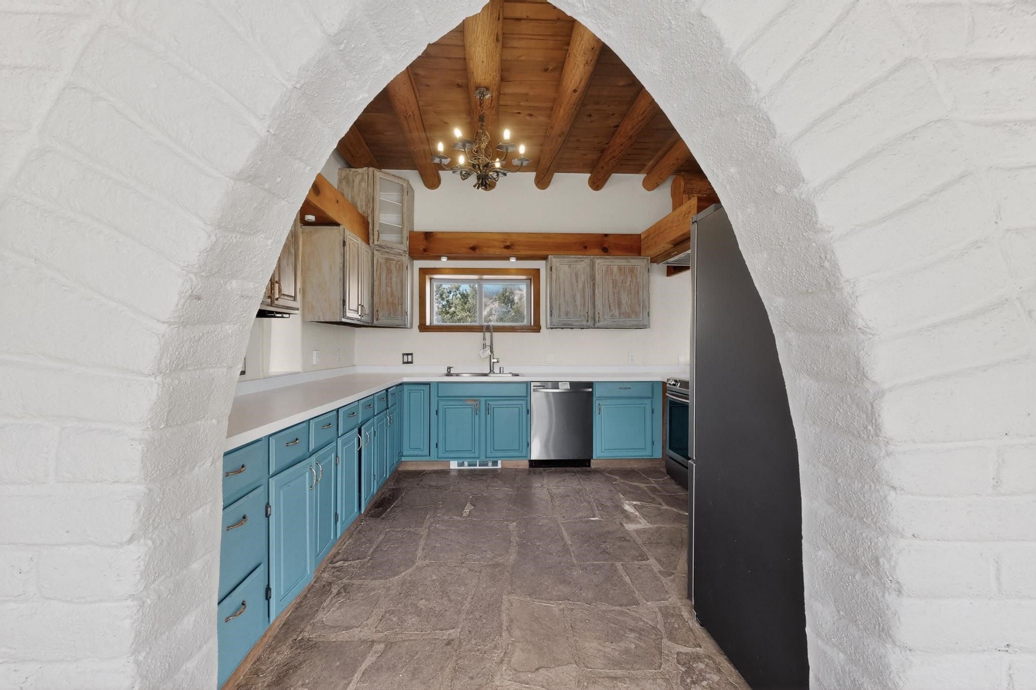 Nestled on 5 acres in the enchanting foothills near Tesuque Village, this uniquely styled home captures the essence of Northern New Mexico living. Located in the quintessential village of Chupadero, the property blends timeless Southwestern charm with breathtaking natural surroundings. Inside, you'll find over 3,100 square feet of thoughtfully designed living space, highlighted by bold vigas, warm flagstone flooring throughout the first floor, and soaring ceilings that extend to the second level. The expansive kitchen and dining area is filled with natural light from dramatic floor-to-ceiling windows, offering both stunning views and passive solar efficiency. The home features two separate living rooms--one on each floor--providing flexibility for entertaining or quiet retreat. With 3 bedrooms and 3 bathrooms, including a convenient ground-floor bedroom, the layout is ideal for multigenerational living or guest accommodations. Step outside and immerse yourself in the beauty of Northern New Mexico. Enjoy direct access to mountain trails right from your backyard, along with sweeping views of the Jemez Mountains and moonrises over the Sangre de Cristo Mountains. At night, the unobstructed skies reveal a dazzling display of stars from every window. Despite its serene setting, the home is just 22 minutes from the historic Santa Fe Plaza and only 5-10 minutes from beloved local destinations like Terra, El Nido, and Tesuque Village Market.