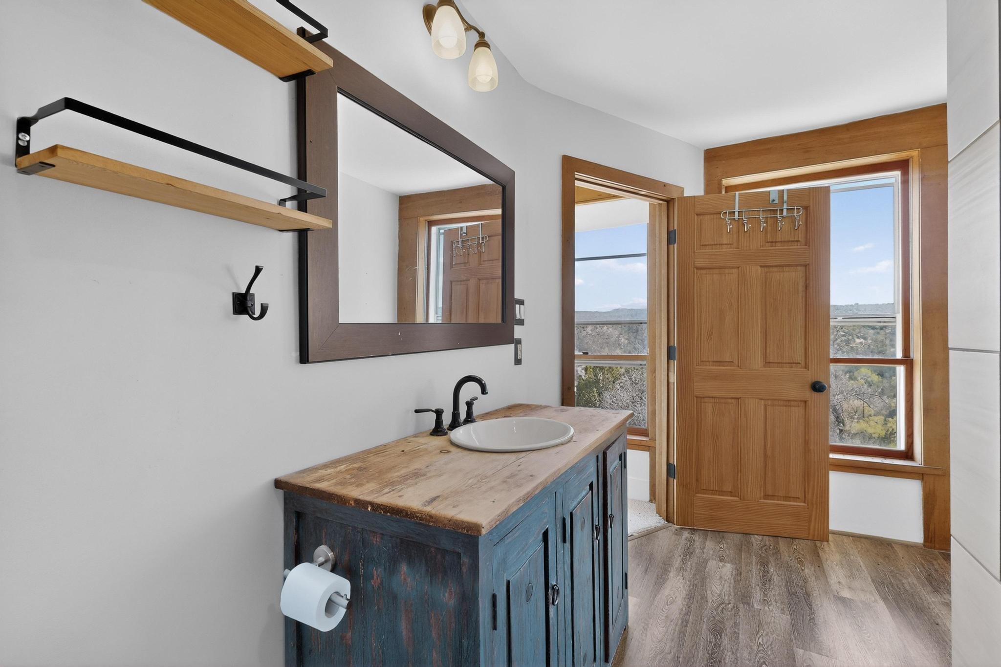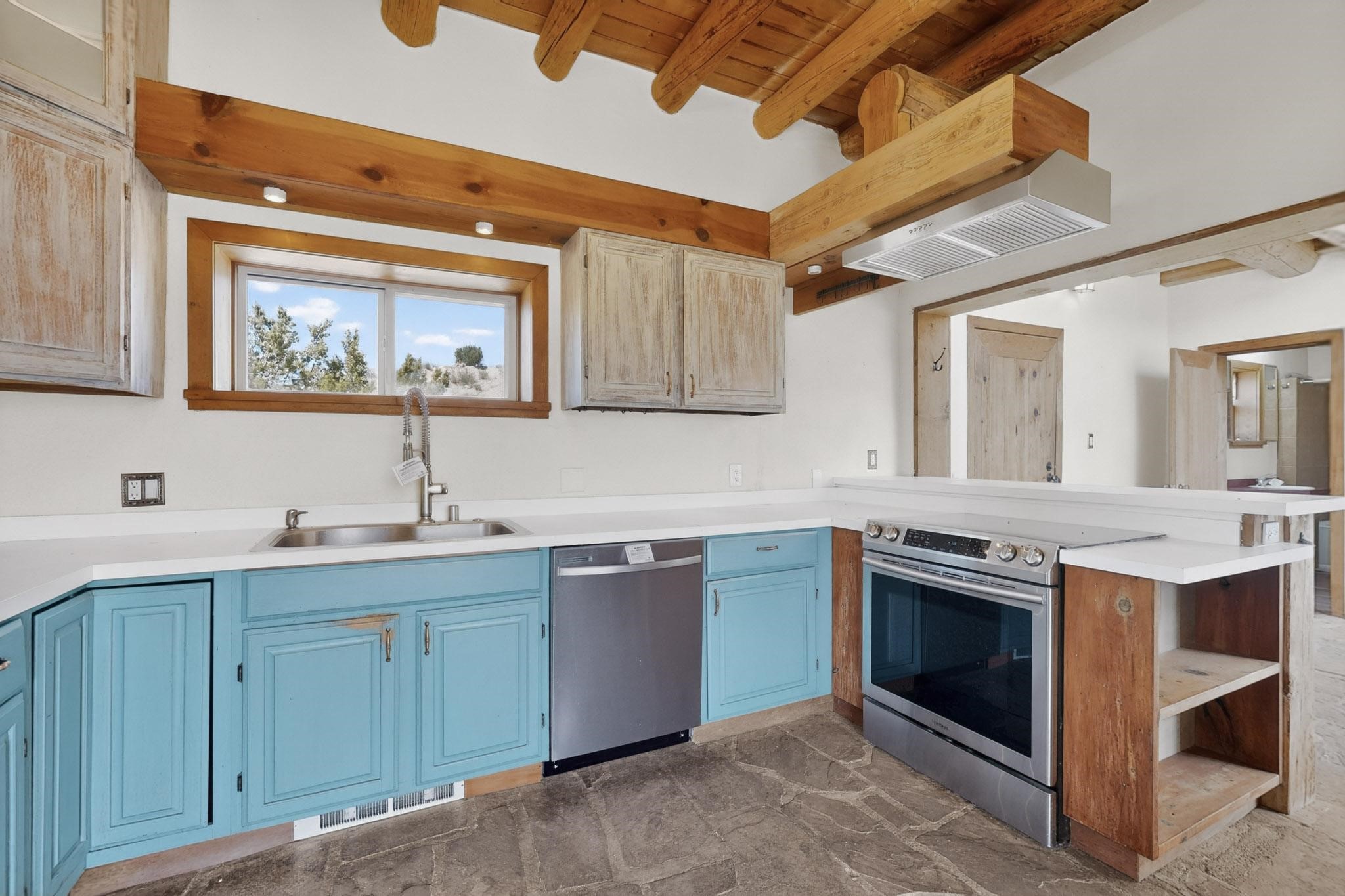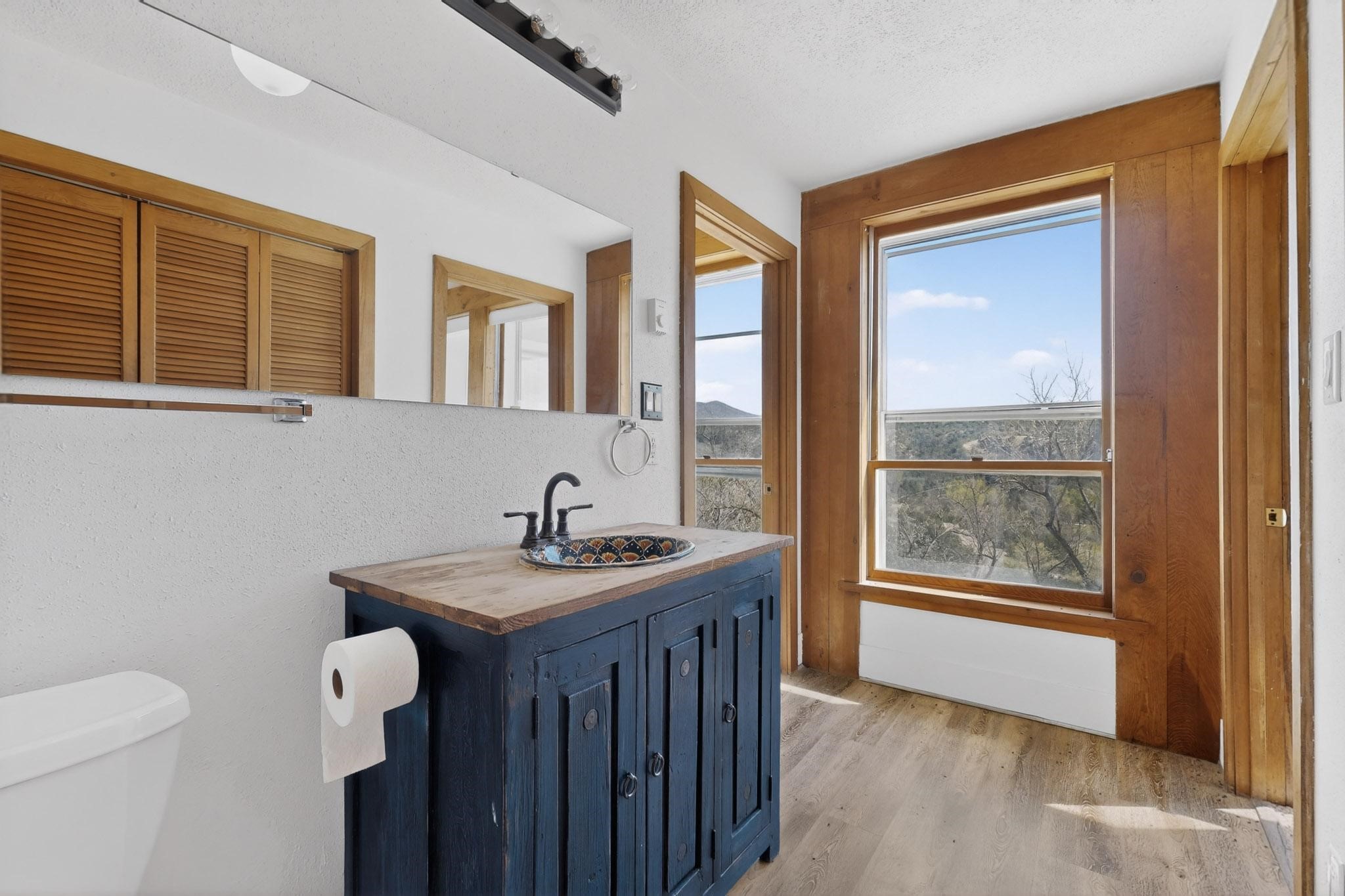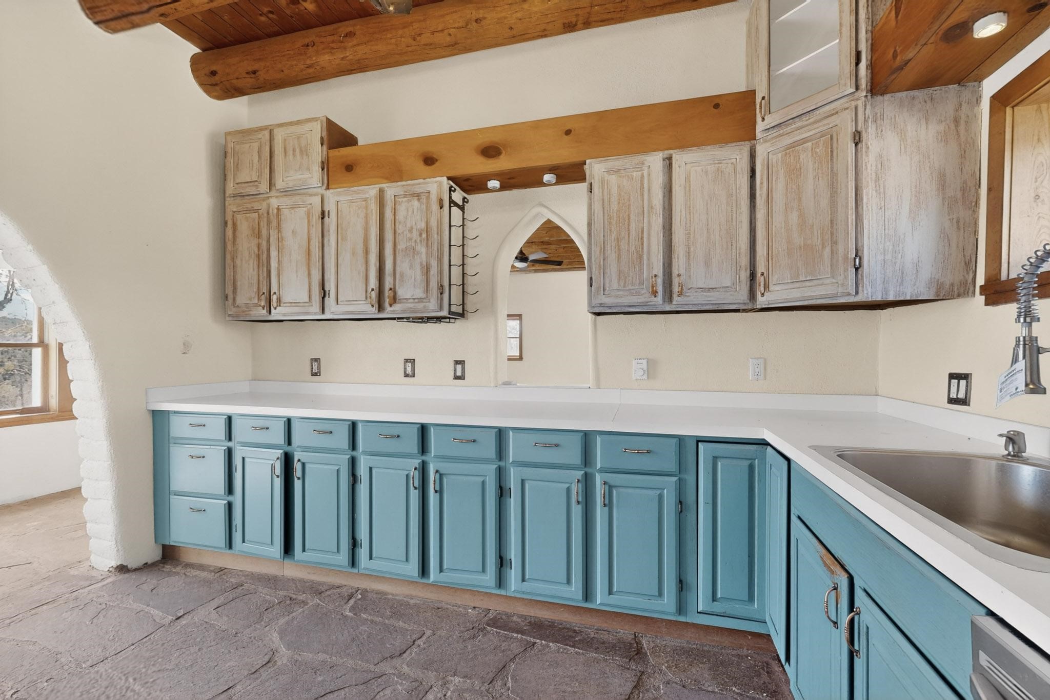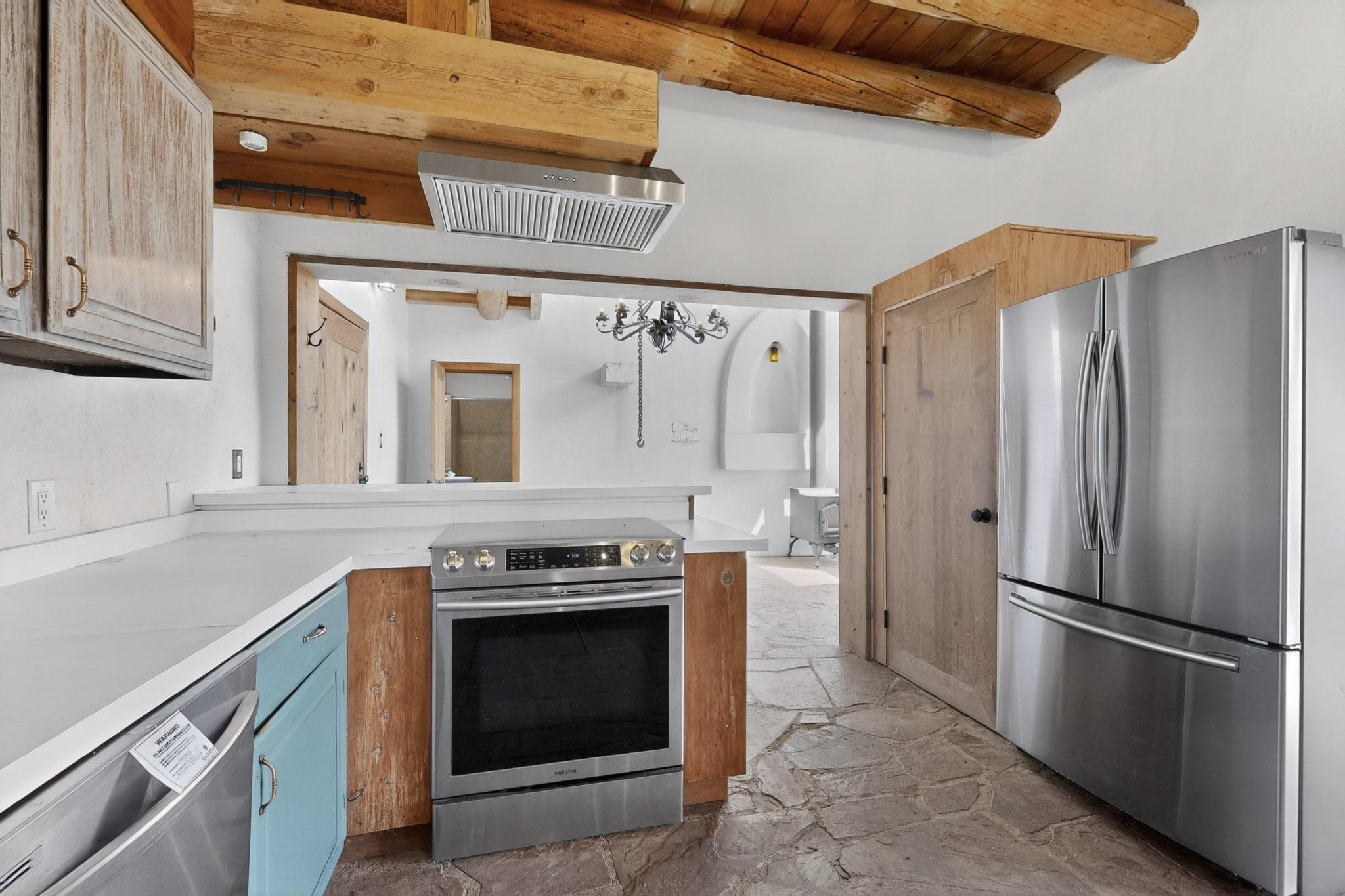 Nestled on 5 acres in the enchanting foothills near Tesuque Village, this uniquely styled home captures the essence of Northern New Mexico living. Located in the quintessential village of Chupadero, the property blends timeless Southwestern charm with breathtaking natural surroundings. Inside, you'll find over 3,100 square feet of thoughtfully designed living space, highlighted by bold vigas, warm flagstone flooring throughout the first floor, and soaring ceilings that extend to the second level. The expansive kitchen and dining area is filled with natural light from dramatic floor-to-ceiling windows, offering both stunning views and passive solar efficiency. The home features two separate living rooms--one on each floor--providing flexibility for entertaining or quiet retreat. With 3 bedrooms and 3 bathrooms, including a convenient ground-floor bedroom, the layout is ideal for multigenerational living or guest accommodations. Step outside and immerse yourself in the beauty of Northern New Mexico. Enjoy direct access to mountain trails right from your backyard, along with sweeping views of the Jemez Mountains and moonrises over the Sangre de Cristo Mountains. At night, the unobstructed skies reveal a dazzling display of stars from every window. Despite its serene setting, the home is just 22 minutes from the historic Santa Fe Plaza and only 5-10 minutes from beloved local destinations like Terra, El Nido, and Tesuque Village Market.