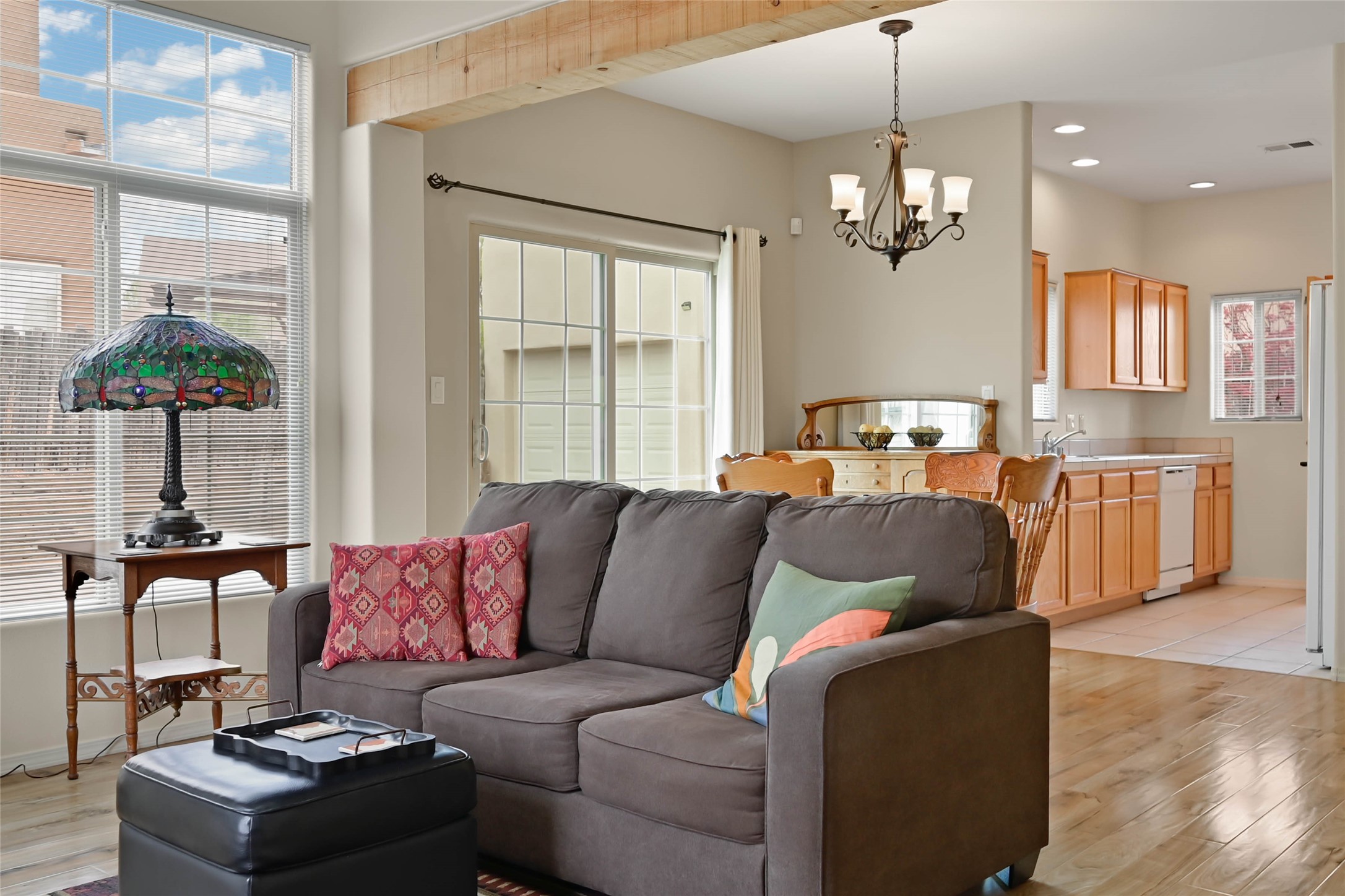 Welcome to this exceptionally well kept Nava Ade Dream Catcher floor plan. The natural light and cozy feeling are obvious the minute you walk in the door. Comfort features include AC, gas fireplace, tile and wood laminate flooring. Situated on a corner lot with easy care landscaping and a bonus two car garage add to its desirability. Neighborhood amenities include walking trails, the clubhouse featuring a work out room, sauna, locker rooms, and an outdoor pool and hot tub. Make this house your home and enjoy all it has to offer.