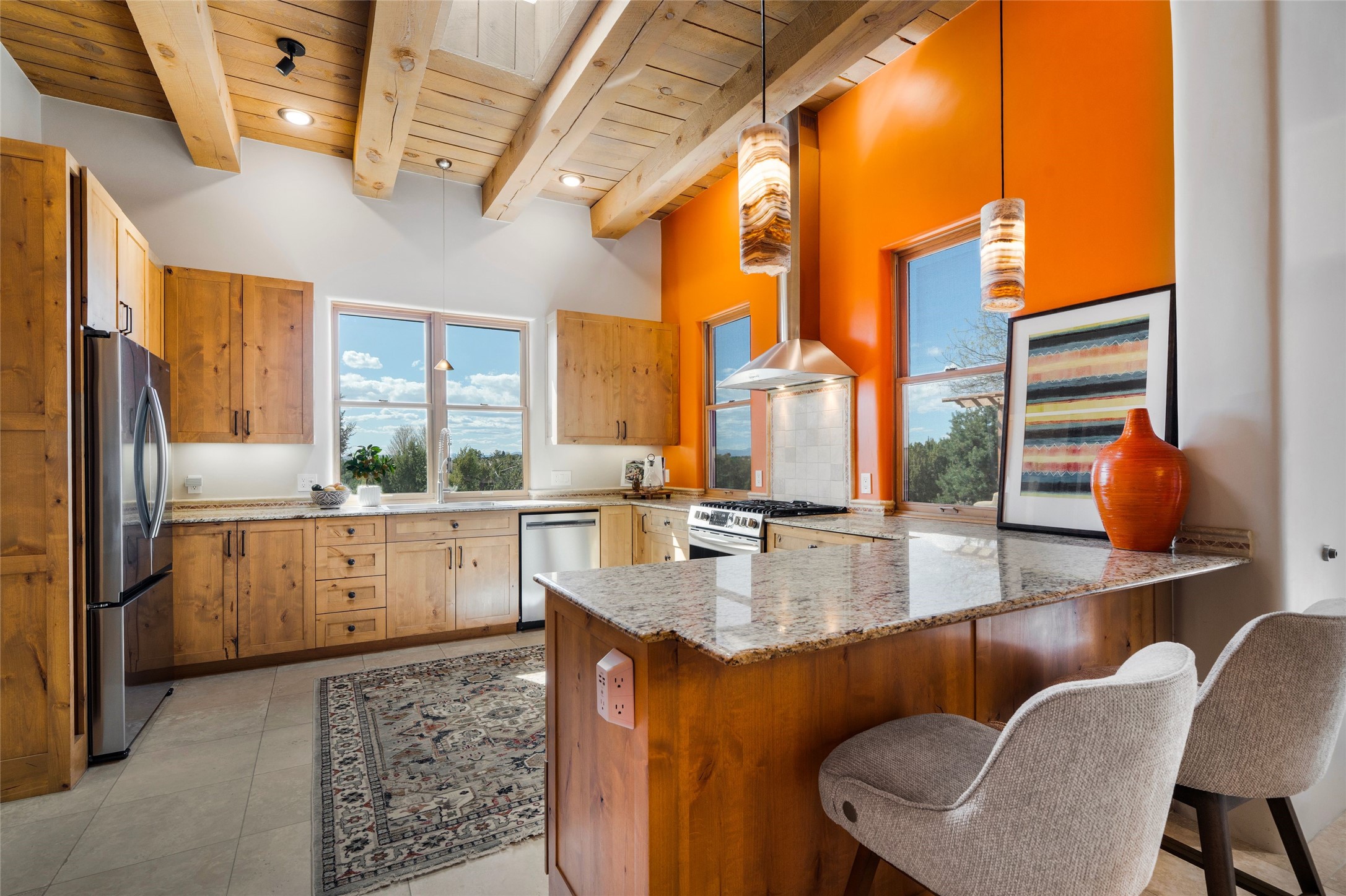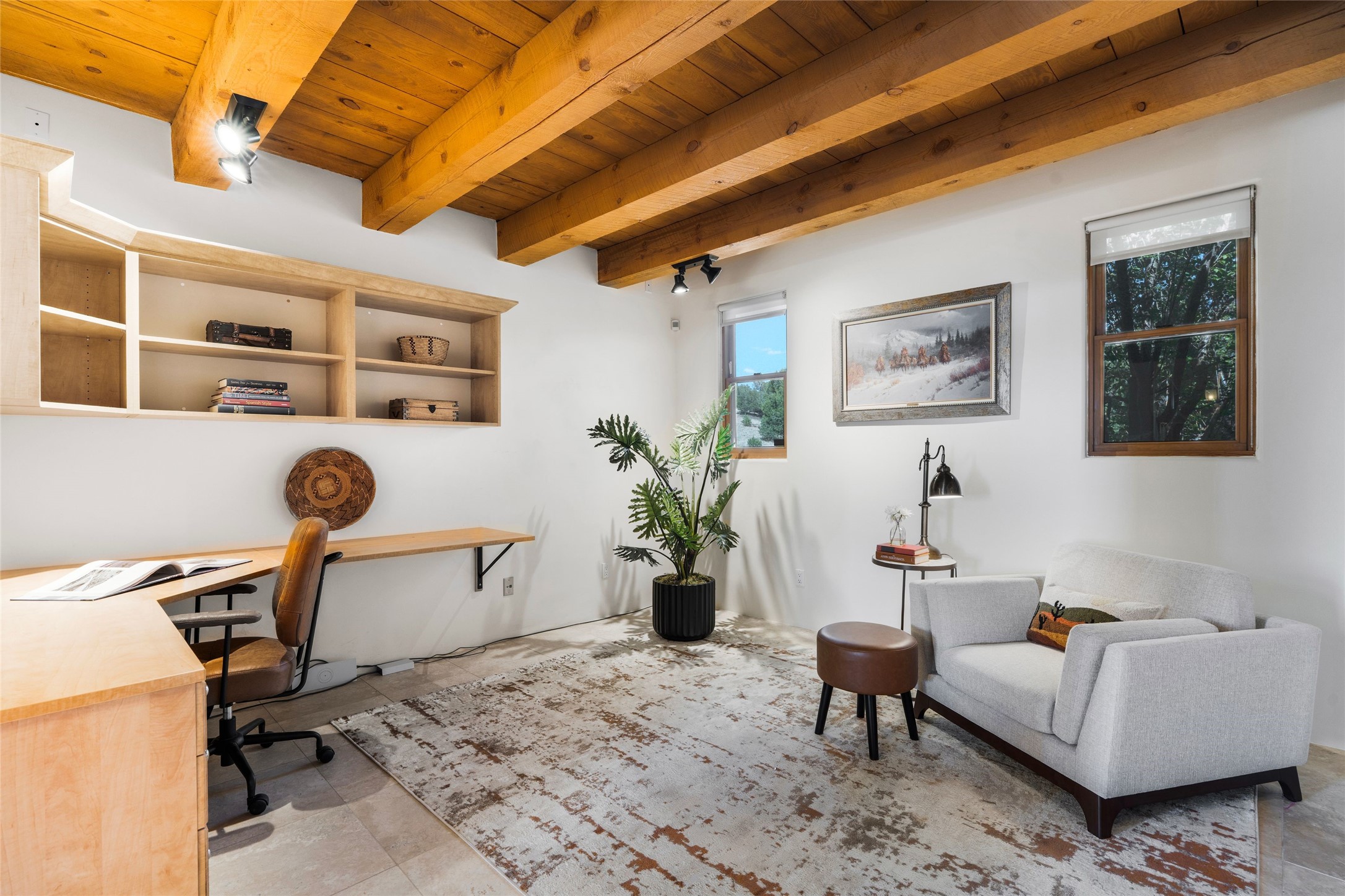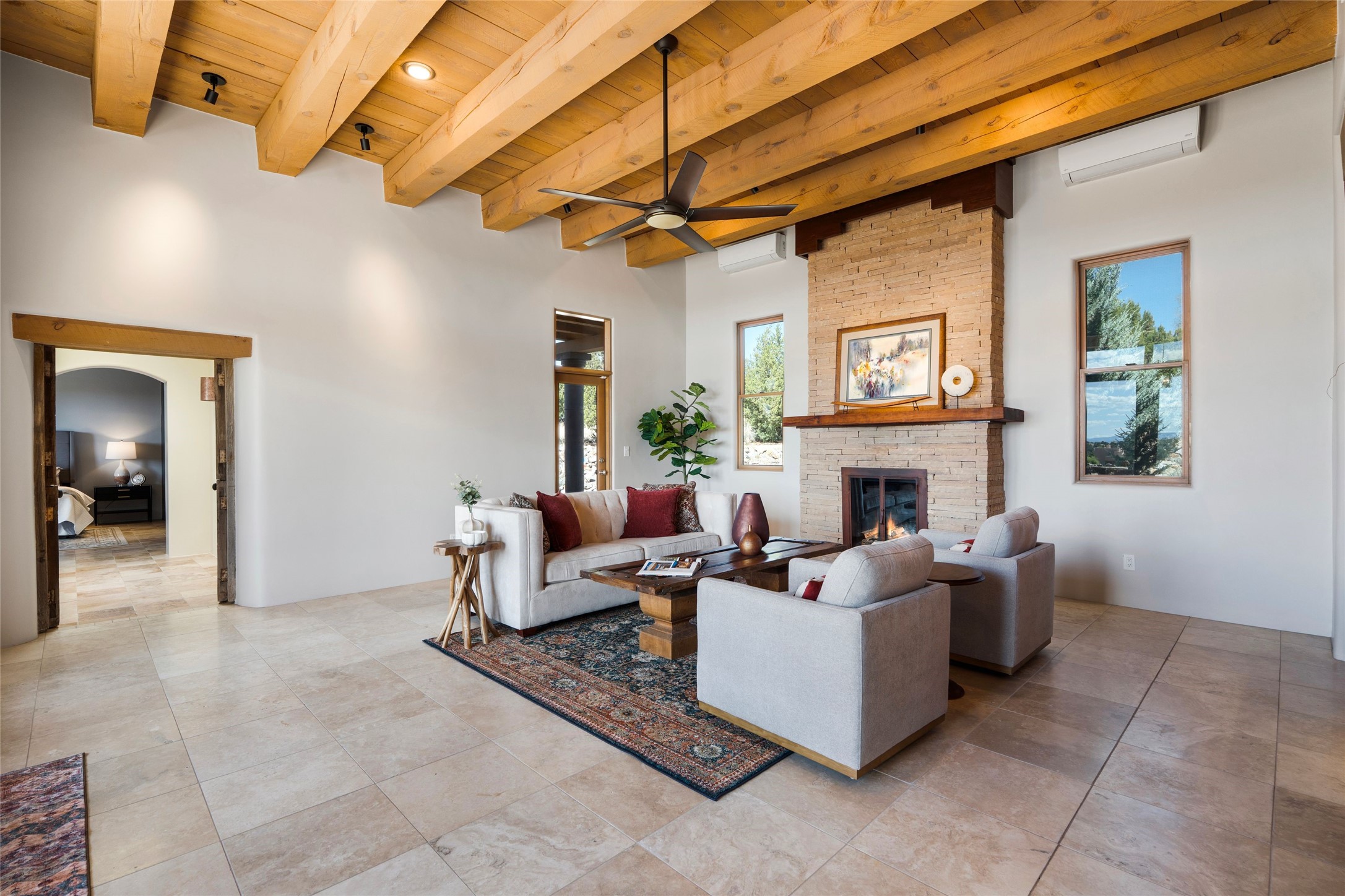 - Interior FeaturesBeamed Ceilings, No Interior Steps