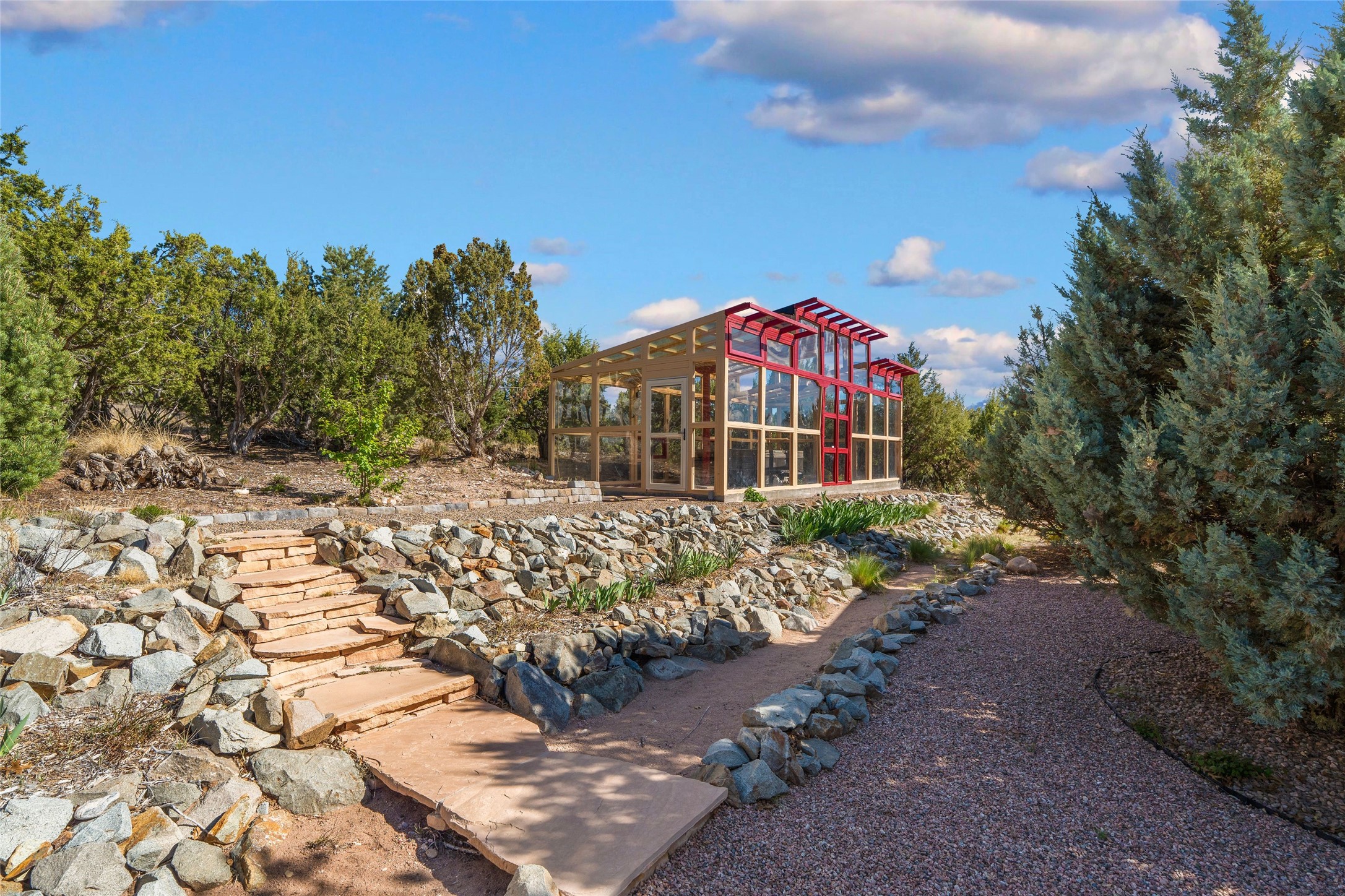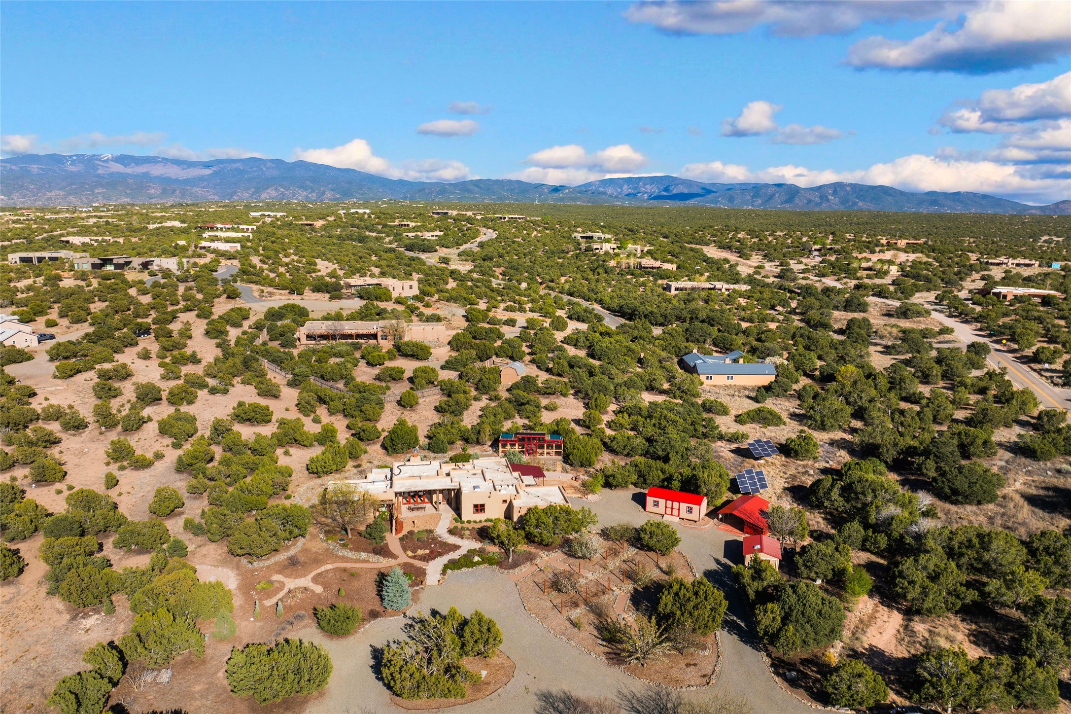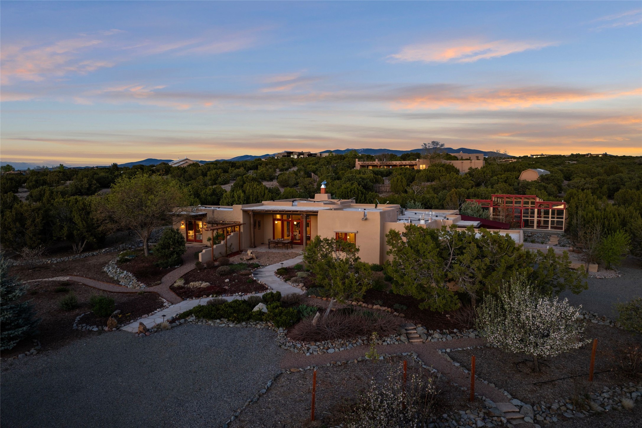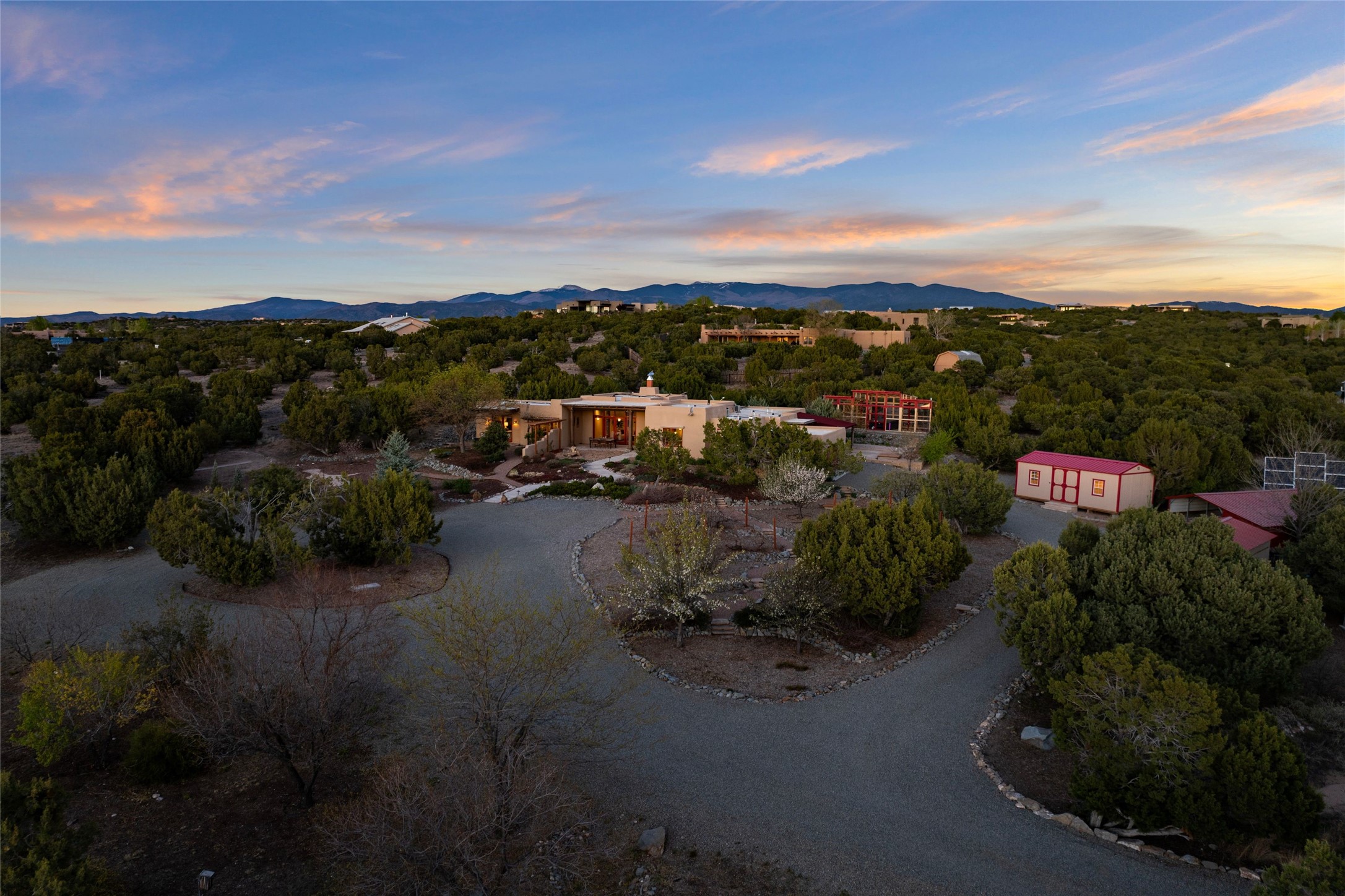 A sanctuary in nature while only minutes from town. Beautiful landscape, big views and custom finishes create this 2.7 acre dream. Inside the home showcases soaring ceilings and timeless natural finishes cultivating earthy elegance throughout. This space invites connection to nature at every turn: prepare meals while taking in glowing sunsets, unwind in the bath feeling surrounded by nature or find your creativity in the studio tucked into a private natural spot. Hone your skills in the large workshop or fine tune your gardening talents in the greenhouse. With a hot tub to relax and enjoy views, multiple patios to bring living outside, fruit trees and grape vines to partake of, solar to keep costs down and full irrigation, this is a haven, a refuge. Expansive grounds, tranquil atmosphere and big country feel-yet just minutes from town-this one-of-a-kind property offers the perfect balance of seclusion, beauty and convenience. Well maintained with many tasteful updates. Come and experience.