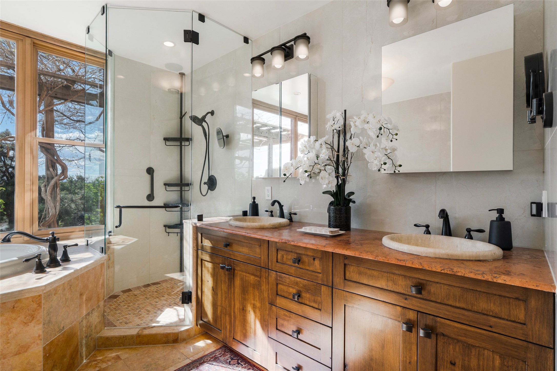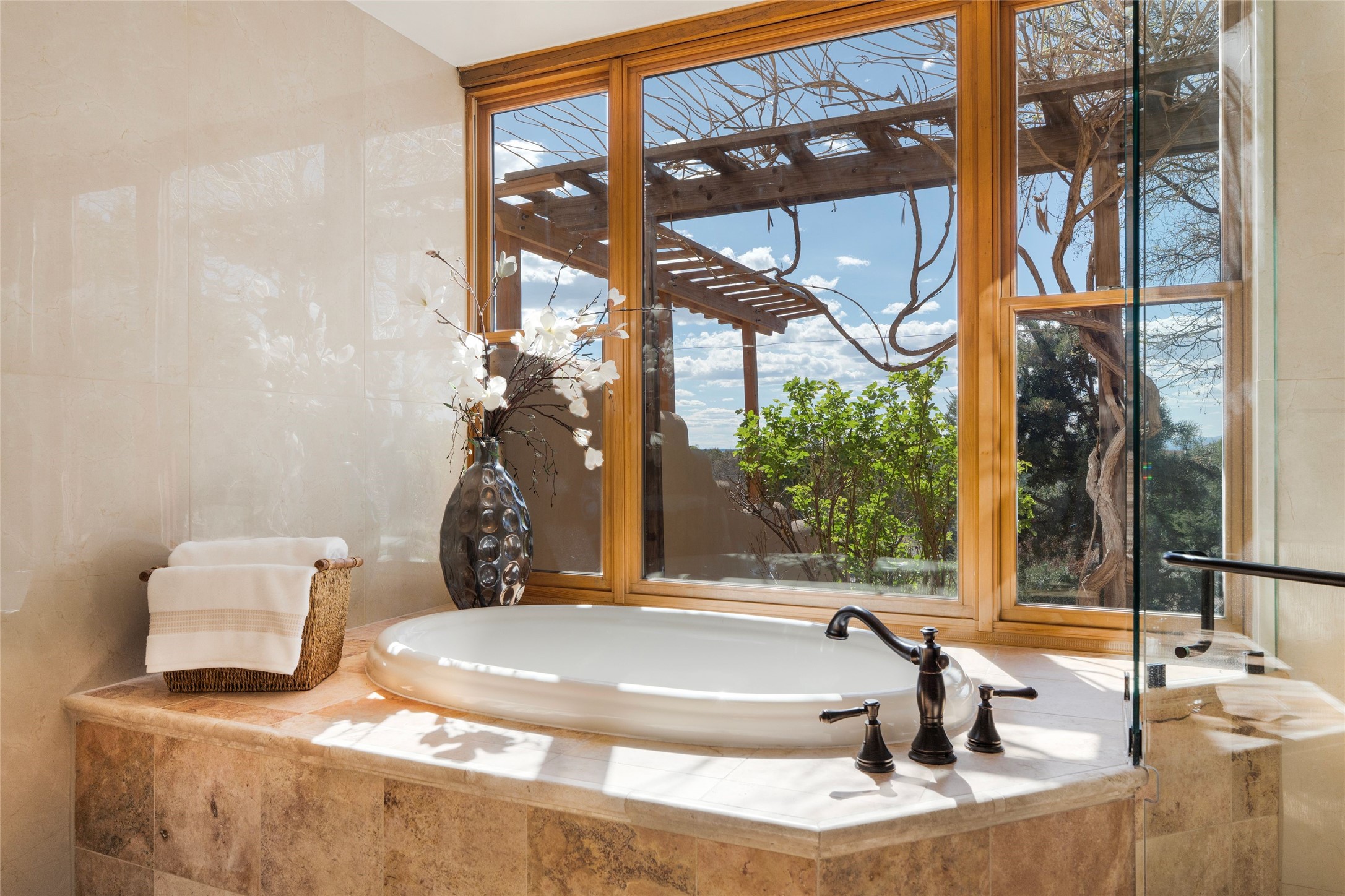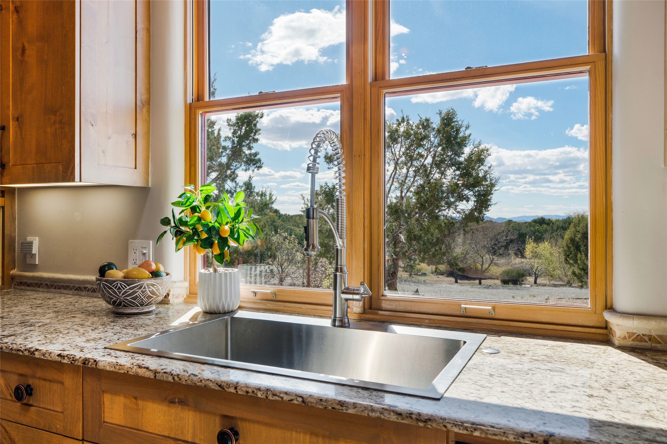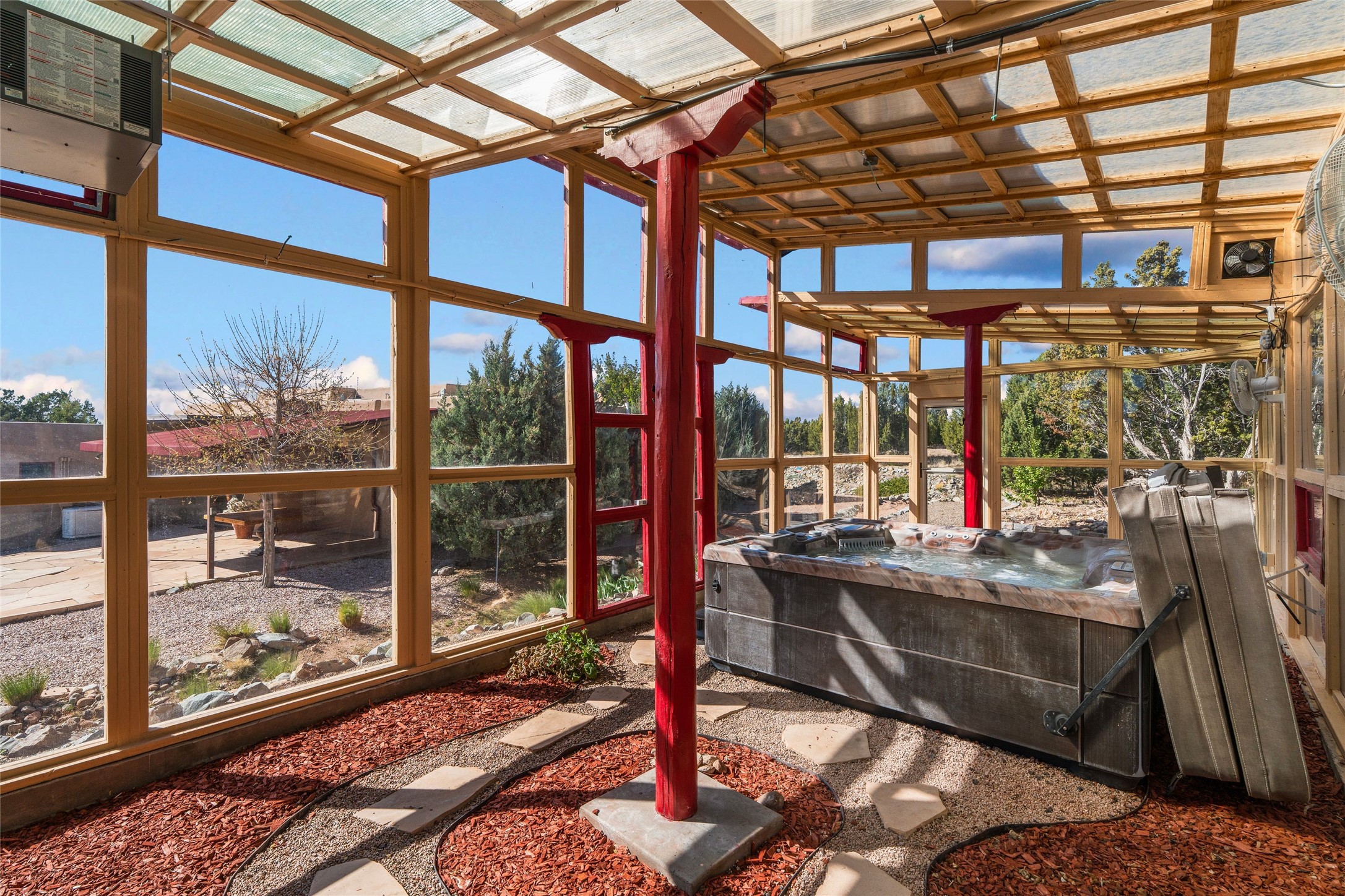 A sanctuary in nature while only minutes from town. Beautiful landscape, big views and custom finishes create this 2.7 acre dream. Inside the home showcases soaring ceilings and timeless natural finishes cultivating earthy elegance throughout. This space invites connection to nature at every turn: prepare meals while taking in glowing sunsets, unwind in the bath feeling surrounded by nature or find your creativity in the studio tucked into a private natural spot. Hone your skills in the large workshop or fine tune your gardening talents in the greenhouse. With a hot tub to relax and enjoy views, multiple patios to bring living outside, fruit trees and grape vines to partake of, solar to keep costs down and full irrigation, this is a haven, a refuge. Expansive grounds, tranquil atmosphere and big country feel-yet just minutes from town-this one-of-a-kind property offers the perfect balance of seclusion, beauty and convenience. Well maintained with many tasteful updates. Come and experience.