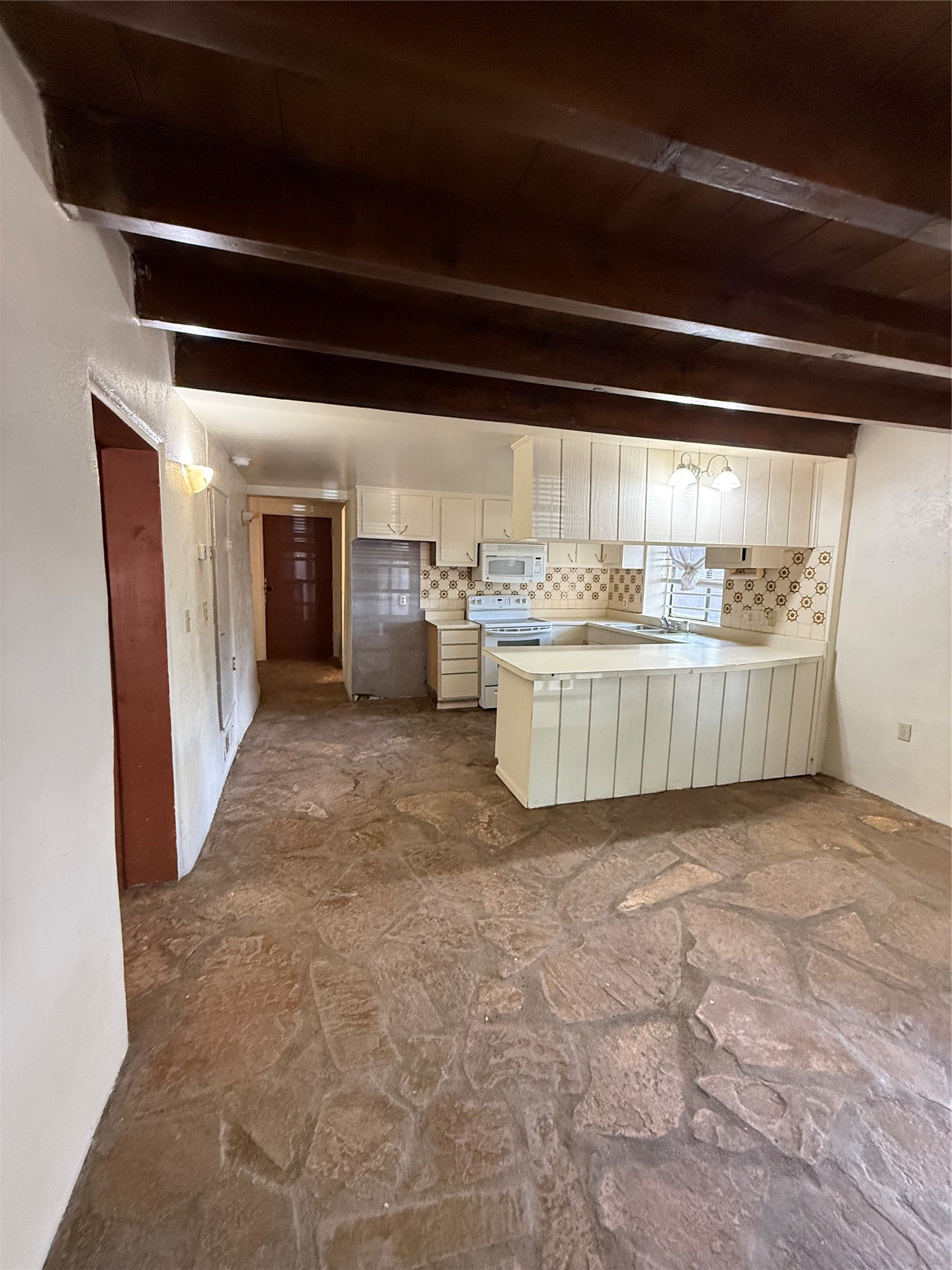 This cozy, private adobe home, featuring flagstone floors, offers a welcoming retreat both indoors and out. Ready to be shaped by your personal style, it awaits your finishing touches to become your very own comfortable castle. "The seller will not make any repairs to property"