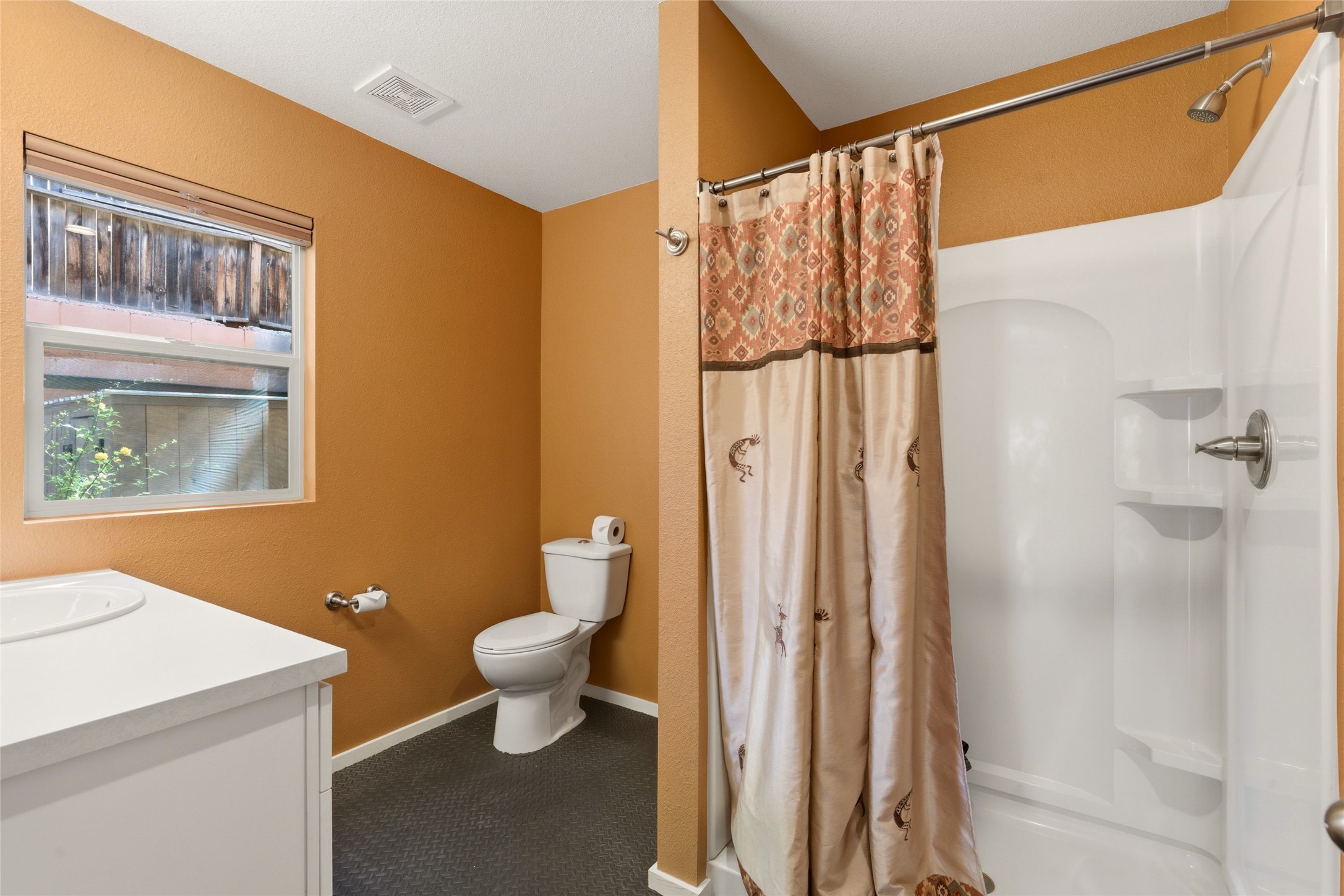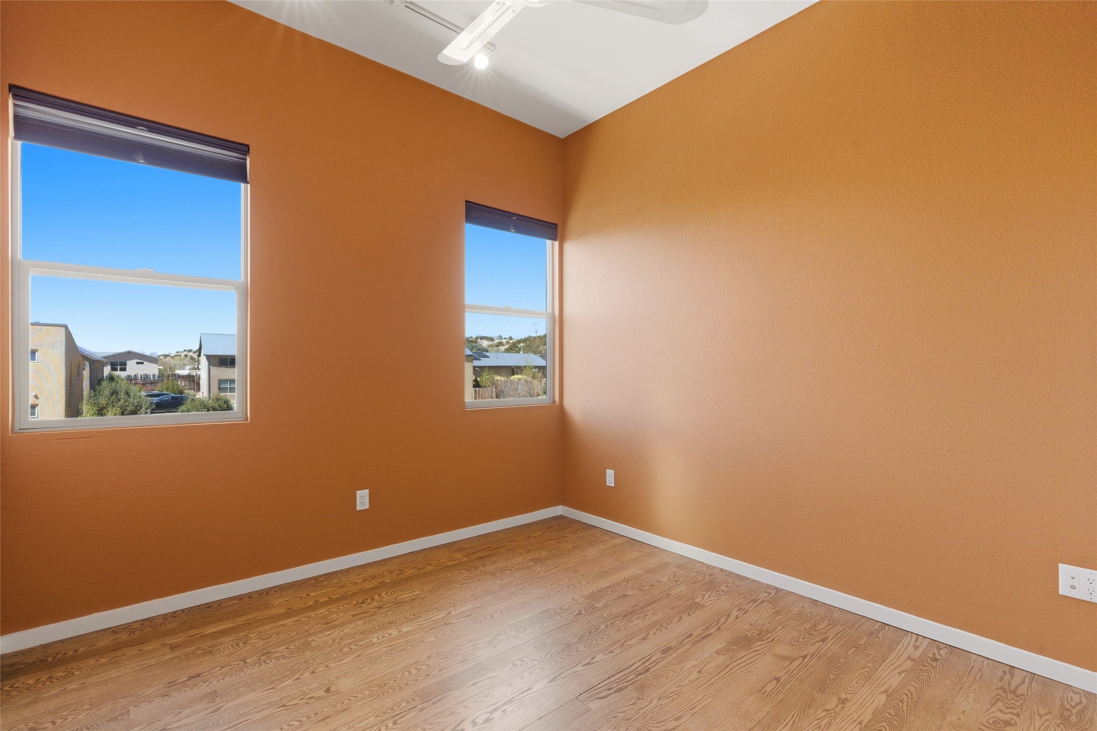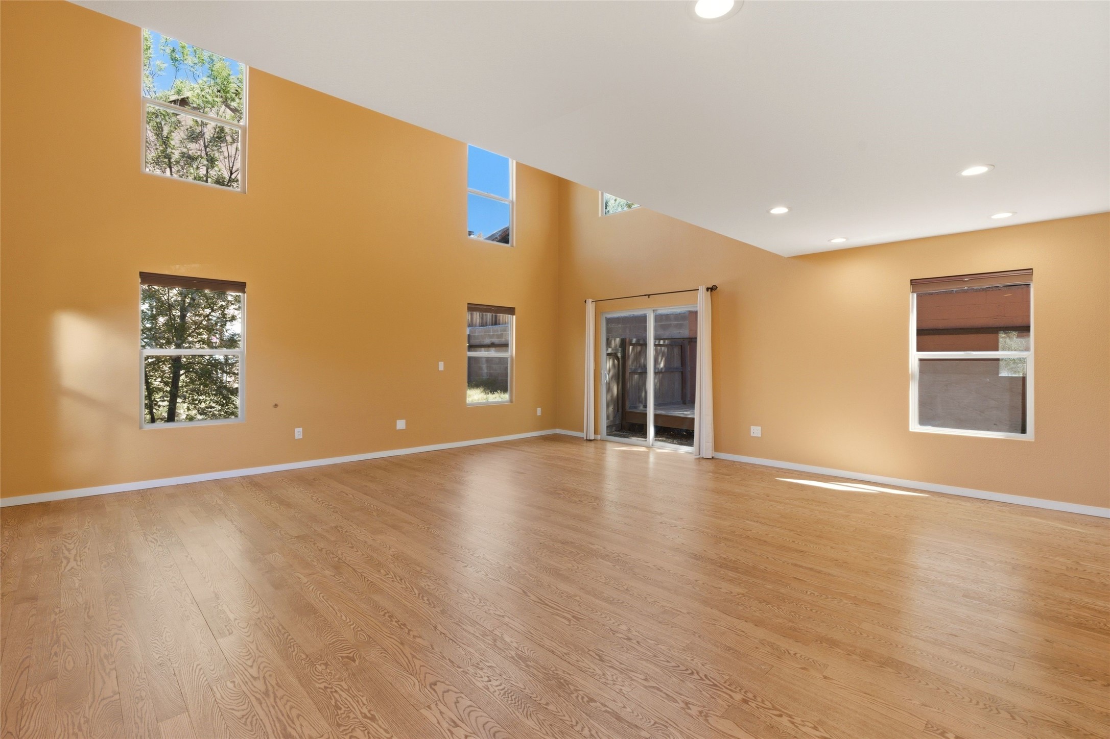 Located in the desirable River Trail Lofts community, 2180 W Alameda Unit 14 offers a rare blend of comfort, understated luxury, and a peaceful yet convenient Santa Fe location. This beautifully maintained four-bedroom, two-bath residence provides approximately 1,877 square feet of thoughtfully designed living space across a bright and functional two-story floor plan, with direct access to the Santa Fe River Trail just outside the front door. The interior showcases quality finishes and refined details, including radiant in-floor heating, real red oak flooring, high and vaulted ceilings, generous closet space, upgraded kitchen appliances, ceiling fans, and top-down bottom-up cellular blinds throughout. The kitchen and bathrooms feature padded gym flooring for added comfort, while the laundry room is finished with tile for durability and ease of maintenance. The private backyard has been transformed into a serene outdoor retreat, complete with a custom hardwood deck, fountain, custom storage shed, flower beds, shrubs, new ground coverings, and automated irrigation. This inviting outdoor living space feels like a natural extension of the home and is ideal for outdoor dining, entertaining, or quiet relaxation. River Trail Lofts is tucked below Alameda on a no-through street, offering a quiet, private setting with minimal traffic while remaining just minutes from downtown Santa Fe, the Railyard District, shopping, dining, and the airport. This property presents a unique opportunity to enjoy comfort, privacy, trail access, and low-maintenance luxury living in one of Santa Fe's most convenient locations.