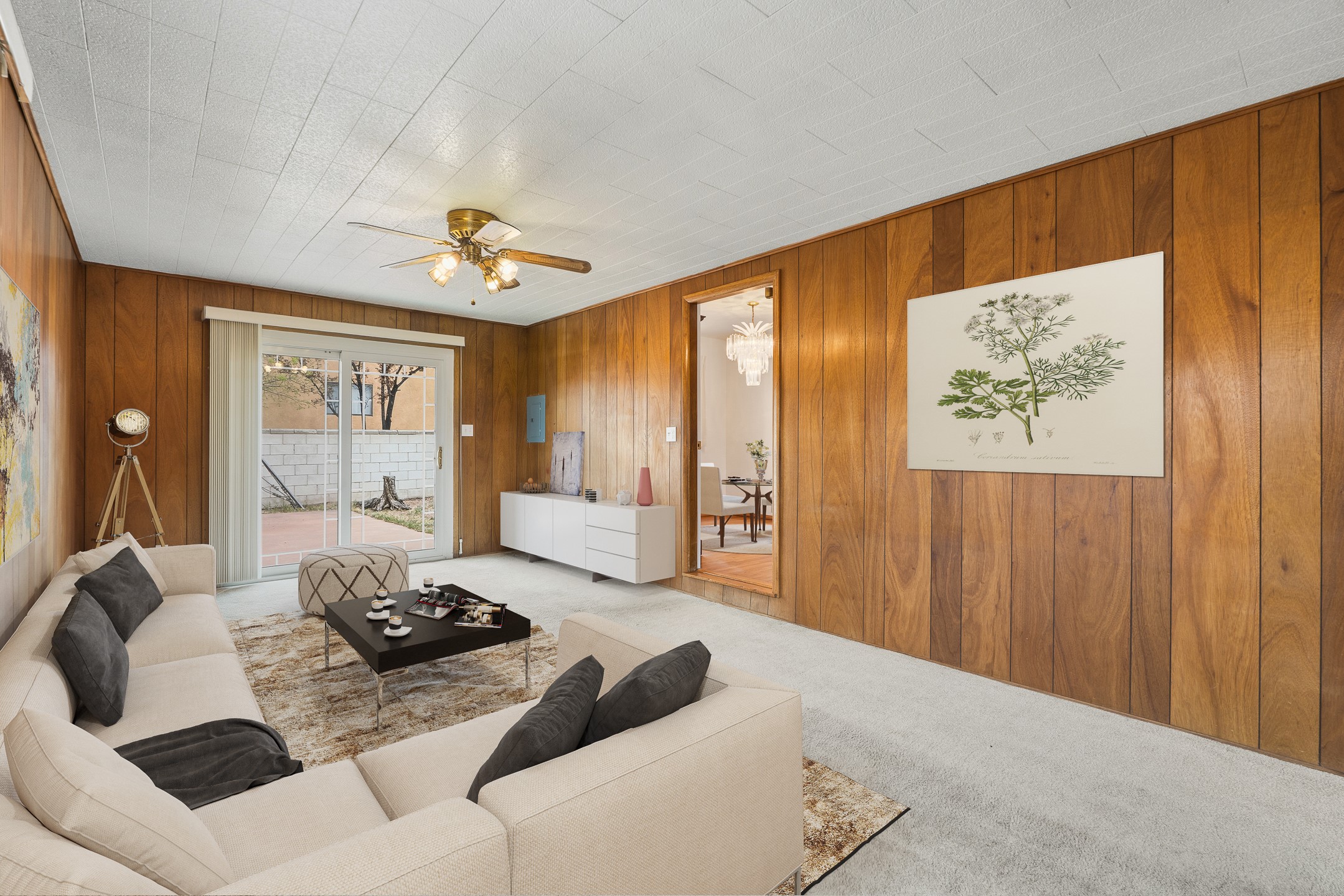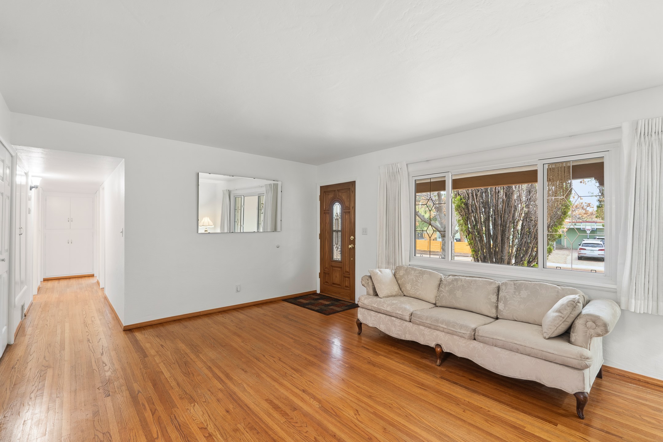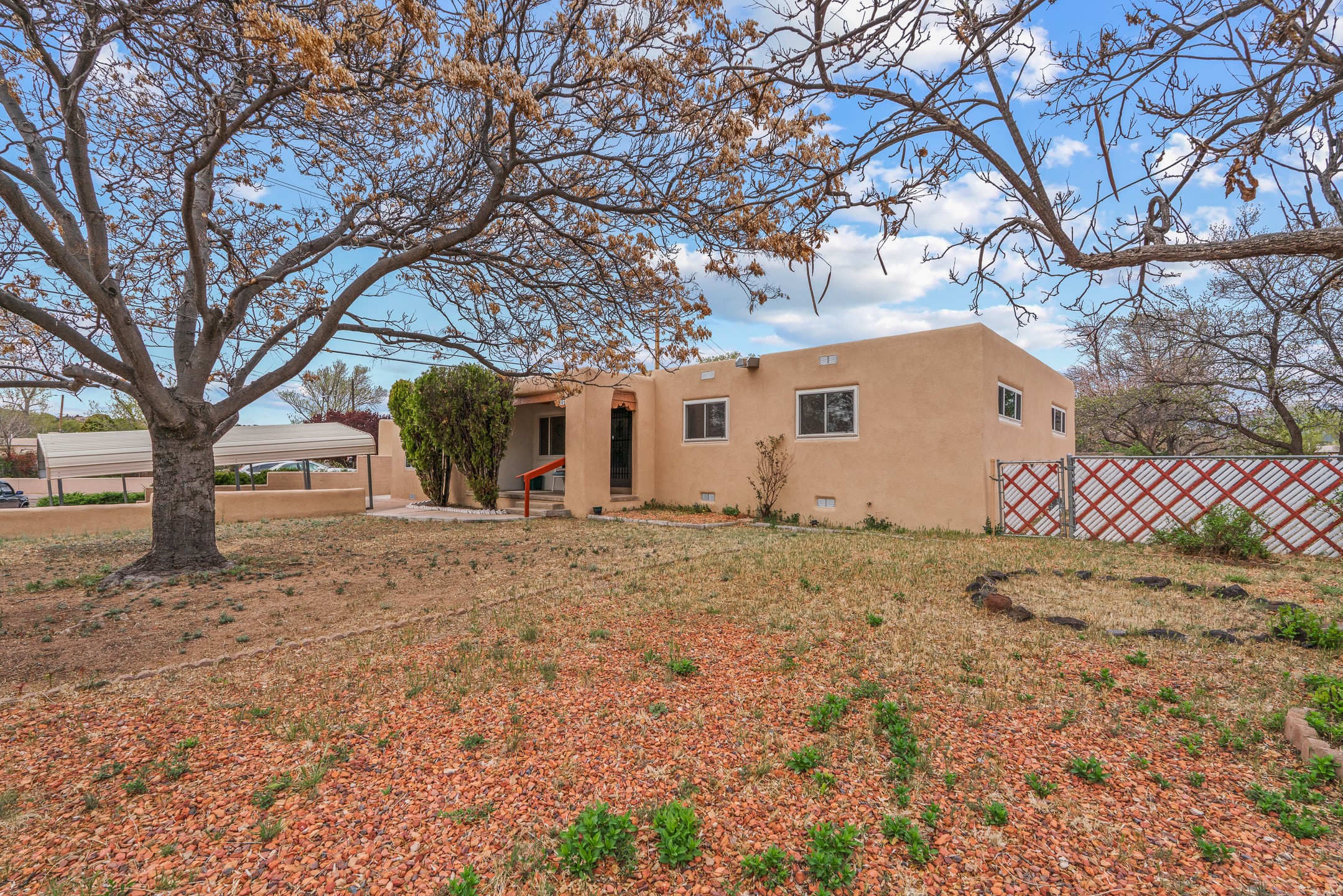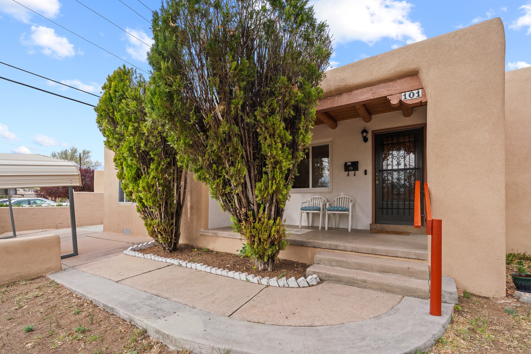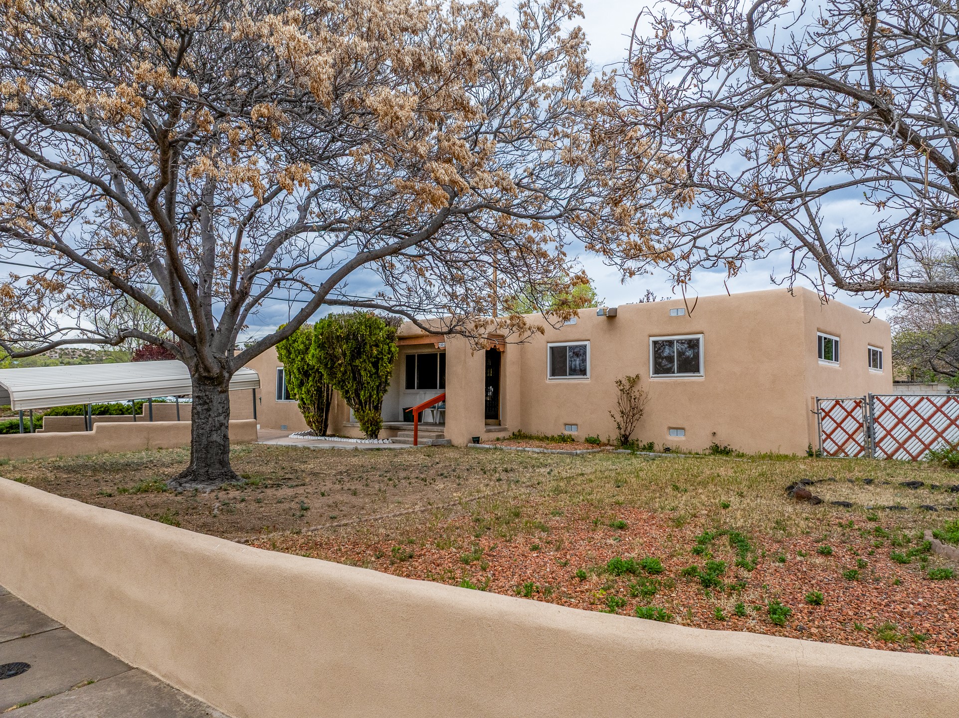 Welcome to 101 Lugar de Oro, a one-owner family home located in the coveted Casa Solana neighborhood. This 4-bedroom, 1.5-bath residence features beautiful original wood floors throughout the living room, dining room, hallway, and bedrooms, adding warmth and classic appeal. The home offers a thoughtful layout with a formal living room, a separate dining room, an eat-in kitchen, and additional living space that includes a den and the fourth bedroom, ideal for today's flexible lifestyle needs. The kitchen remains in its original condition, showcasing well-kept cabinetry complemented by a new range/oven. Fresh interior paint enhances the bright, move-in-ready feel, while vinyl windows, upgraded several years ago by Accent Windows, add efficiency and comfort. The home is also equipped with forced air heating and refrigerated air conditioning for year-round comfort. Situated on a generous 0.190-acre corner lot, the property includes a carport, a backyard storage shed, and ample outdoor space with room to personalize. Major exterior updates, including stucco, parapets, and canales, were completed approximately four years ago. A convenient laundry area is located just off the kitchen, with the washer and dryer included. Full of charm and ready for its next owner, this home offers a wonderful opportunity to enjoy classic features with modern comfort.