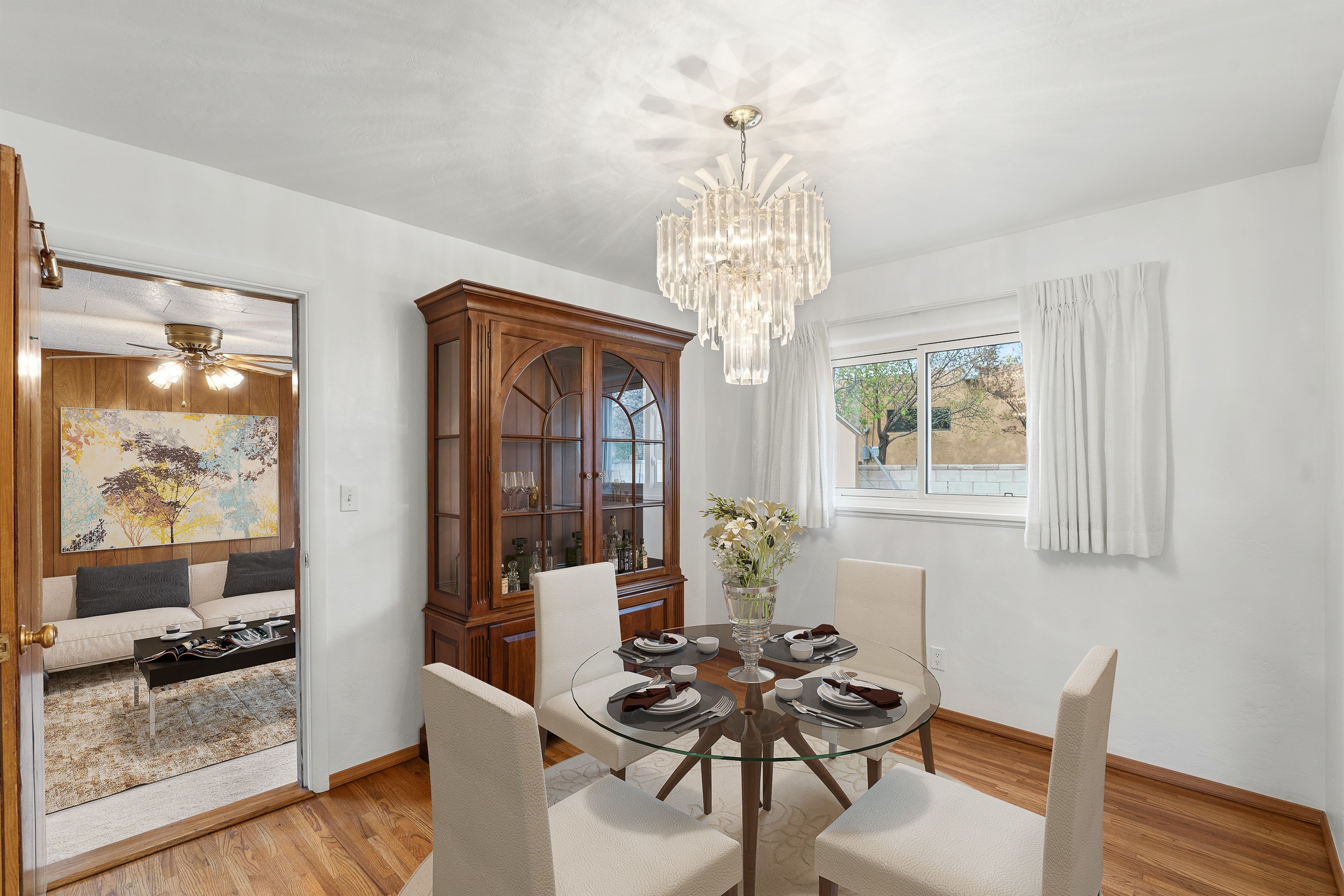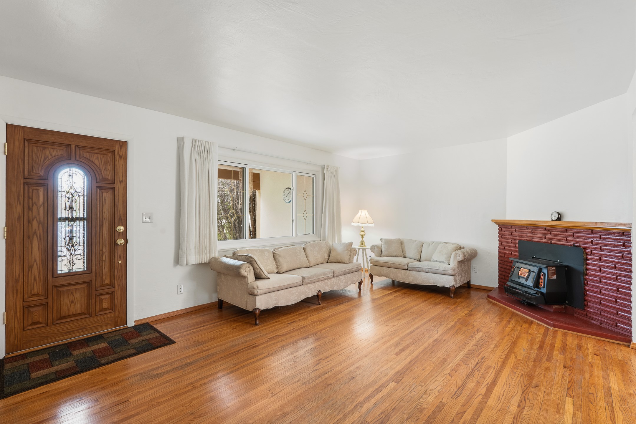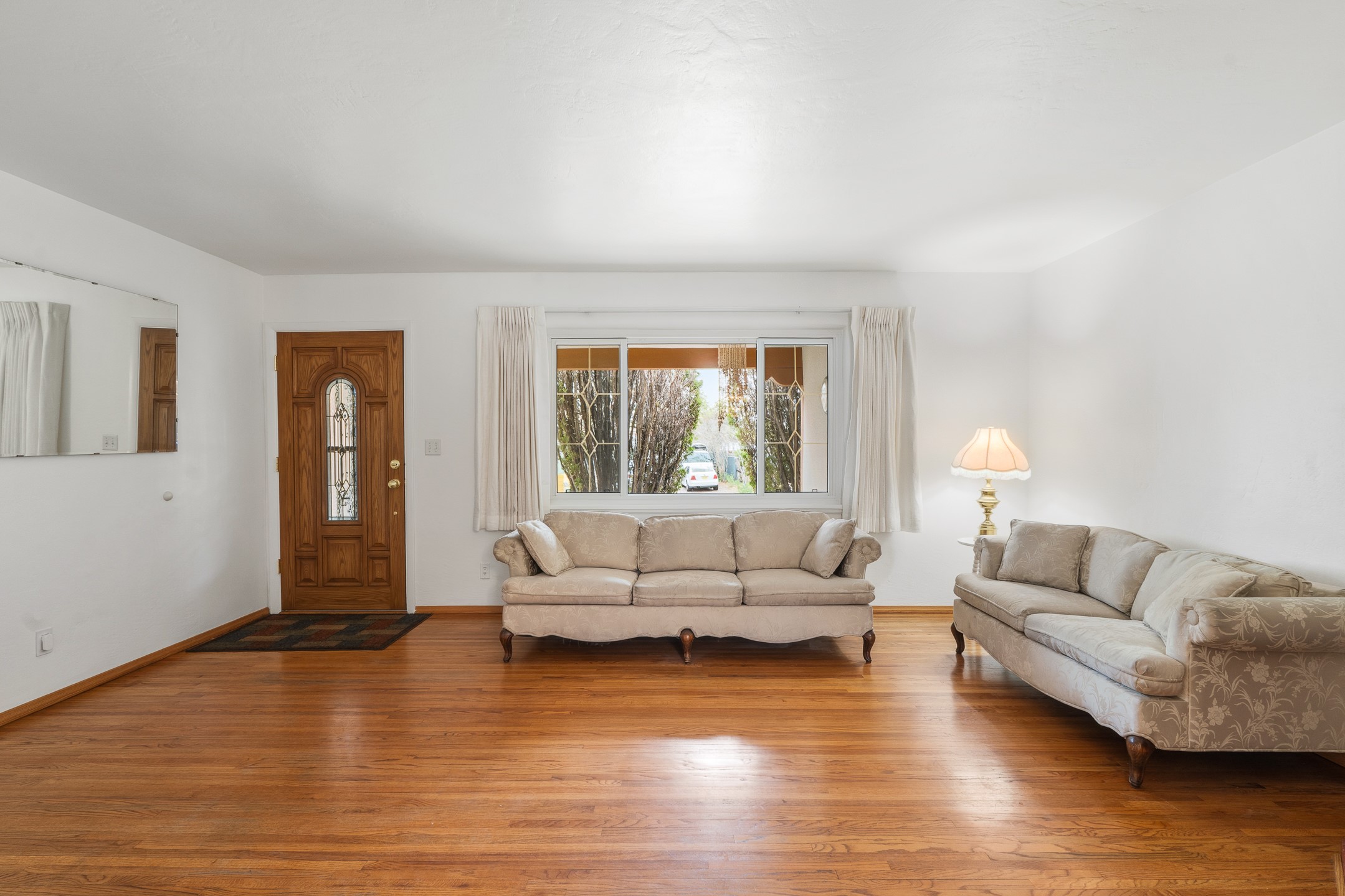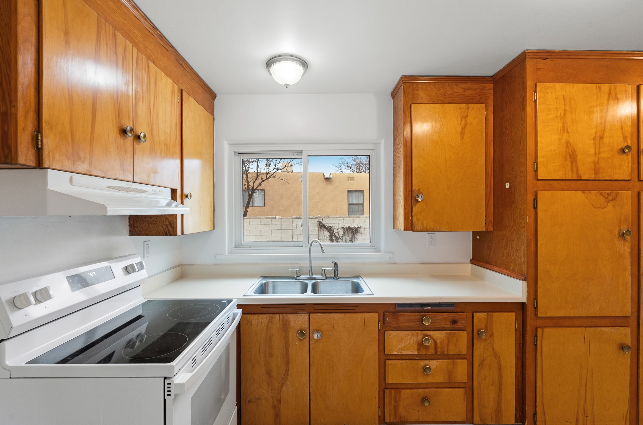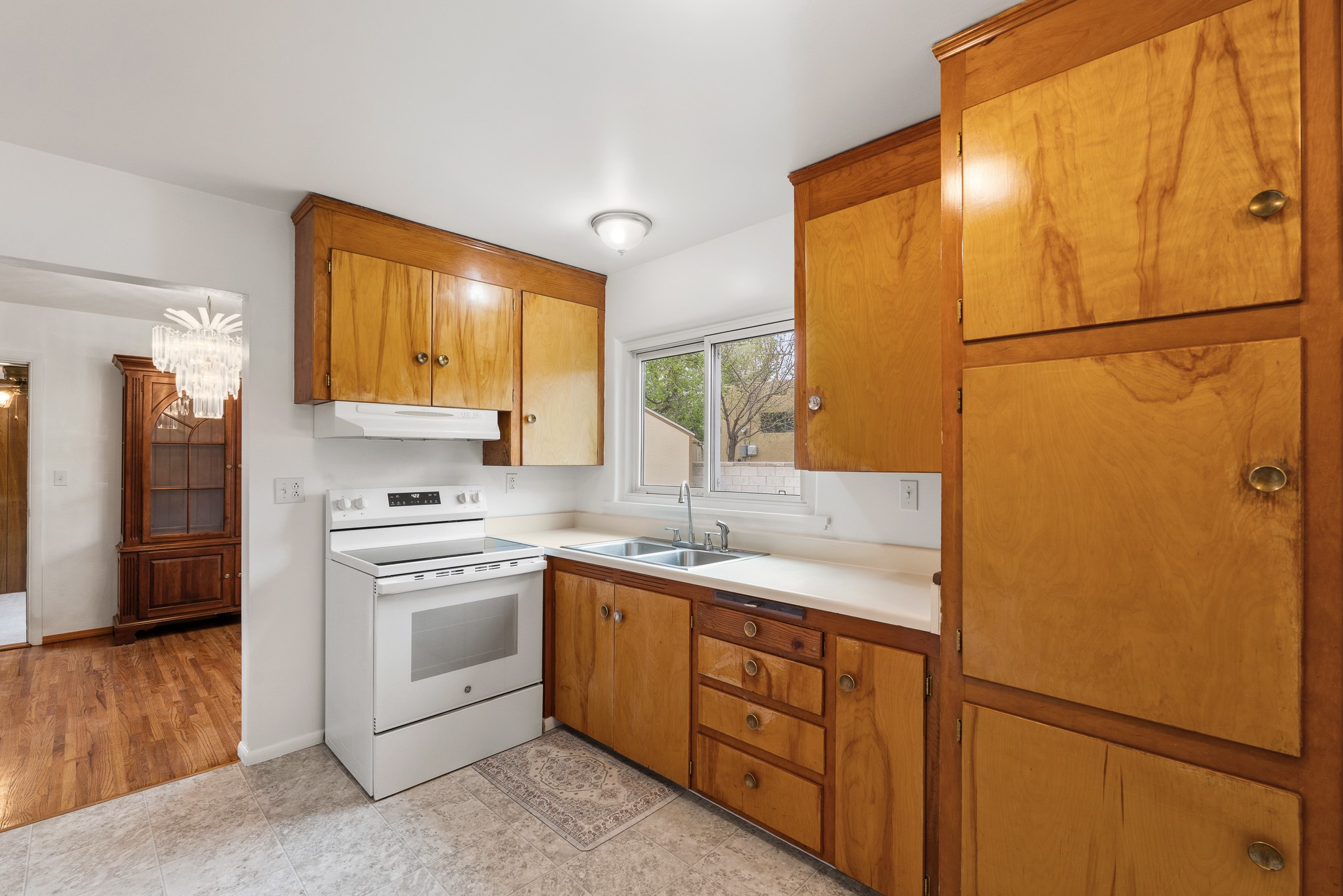 Welcome to 101 Lugar de Oro, a one-owner family home located in the coveted Casa Solana neighborhood. This 4-bedroom, 1.5-bath residence features beautiful original wood floors throughout the living room, dining room, hallway, and bedrooms, adding warmth and classic appeal. The home offers a thoughtful layout with a formal living room, a separate dining room, an eat-in kitchen, and additional living space that includes a den and the fourth bedroom, ideal for today's flexible lifestyle needs. The kitchen remains in its original condition, showcasing well-kept cabinetry complemented by a new range/oven. Fresh interior paint enhances the bright, move-in-ready feel, while vinyl windows, upgraded several years ago by Accent Windows, add efficiency and comfort. The home is also equipped with forced air heating and refrigerated air conditioning for year-round comfort. Situated on a generous 0.190-acre corner lot, the property includes a carport, a backyard storage shed, and ample outdoor space with room to personalize. Major exterior updates, including stucco, parapets, and canales, were completed approximately four years ago. A convenient laundry area is located just off the kitchen, with the washer and dryer included. Full of charm and ready for its next owner, this home offers a wonderful opportunity to enjoy classic features with modern comfort.