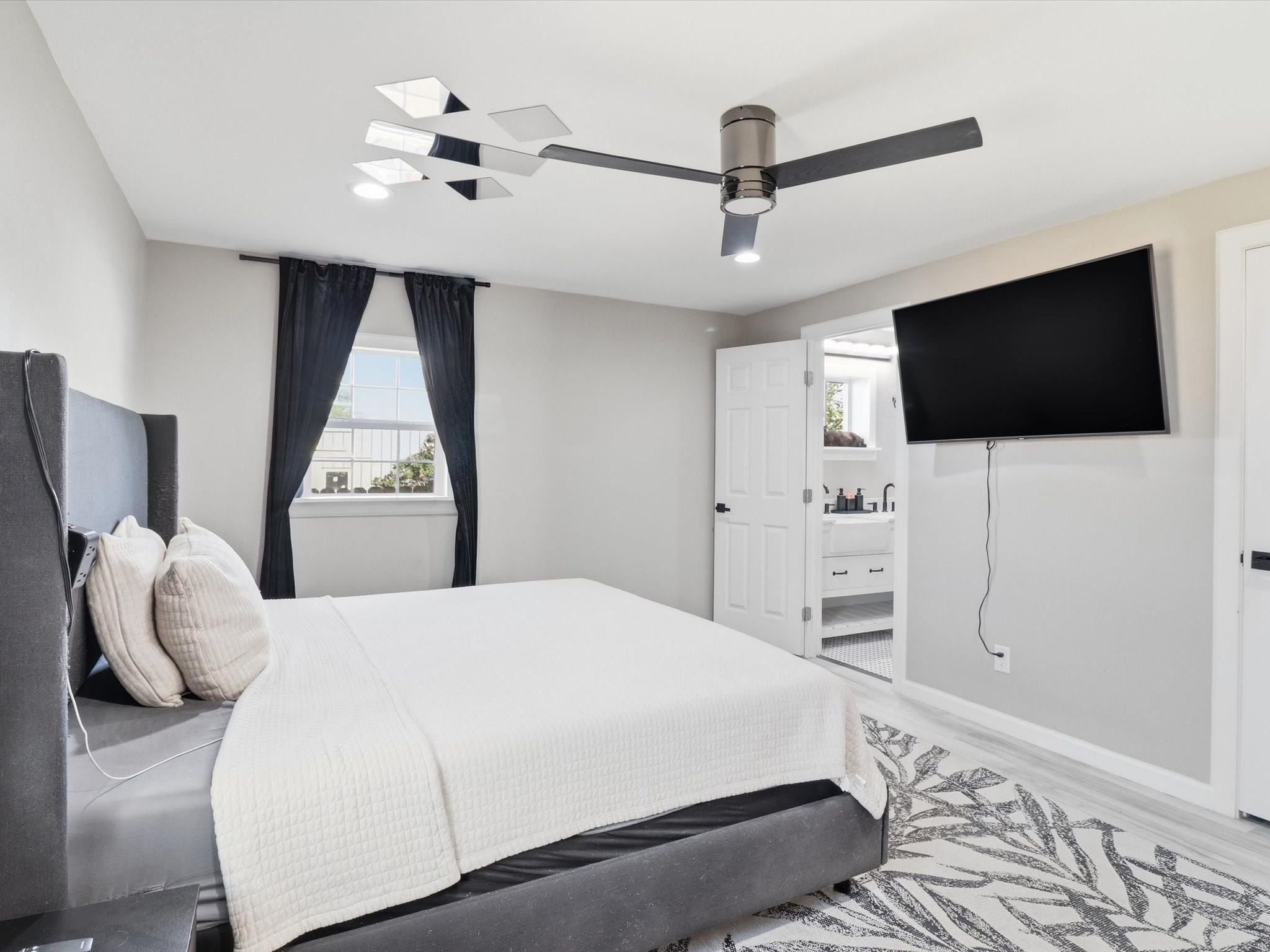 This 3-bedroom, 2-bath home sits on a .22-acre lot and has been updated from top to bottom. Pull up and you'll immediately notice the custom front gate and the classic stucco exterior with a metal roof that's clean, sharp, and low maintenance.Step inside to the kitchen with white shaker cabinets, dark countertops, a custom wood island, tile backsplash, and stainless steel LG appliances. The pendant chandelier ties it all together.The master bedroom is generous in size, filled with natural light from multiple windows. The master bath features a double vanity with white countertops, matte black fixtures, a wood accent wall, freestanding soaker tub, and a walk-in shower.Fresh finishes throughout. Detached garage provides space for vehicles, storage, or workshop use.Seller offering $5,000 credit to buyer at closing. Housing built before 1978 may contain lead-based paint. Buyer should verify all MLS data. Information deemed reliable but not guaranteed.