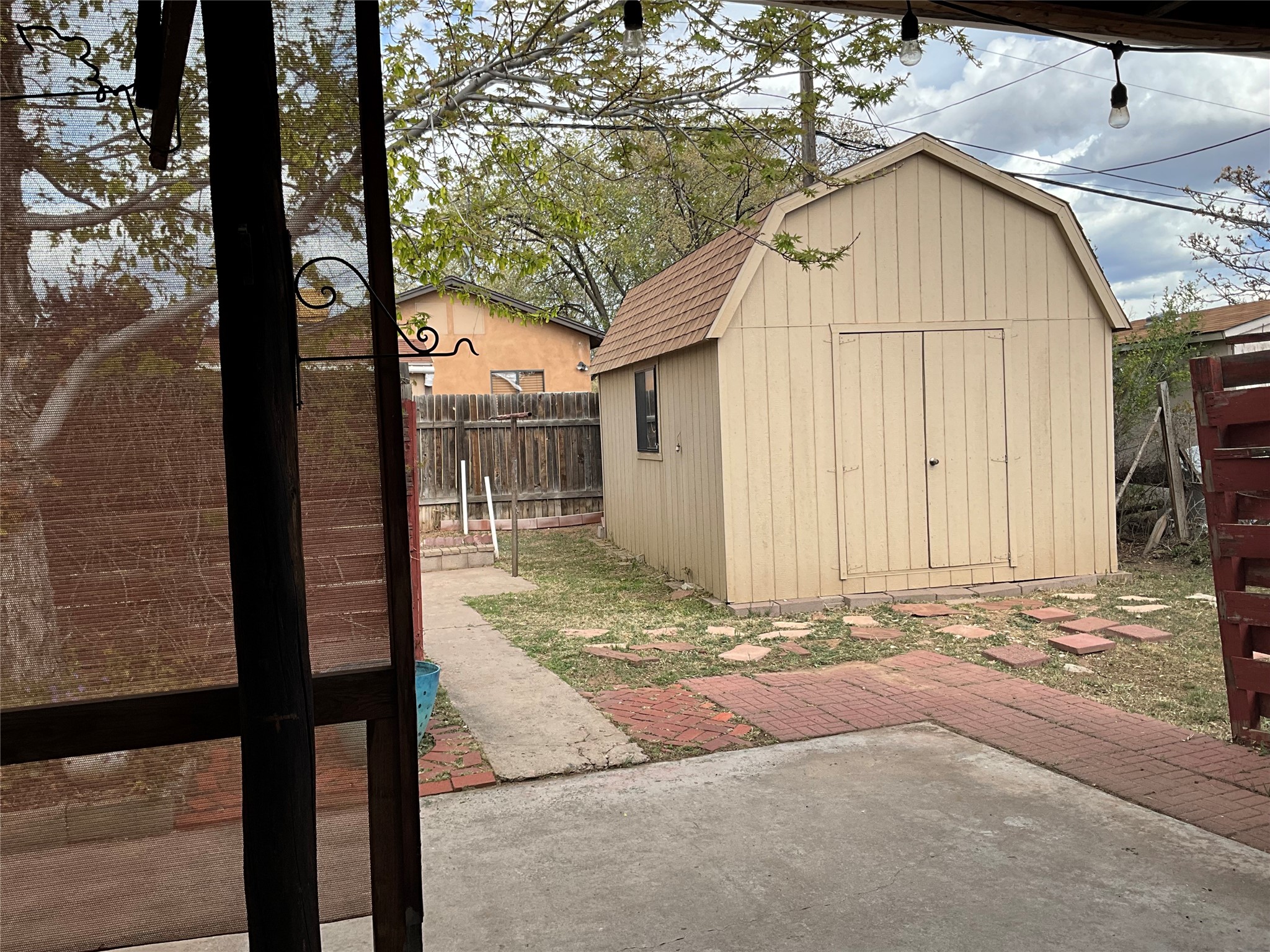 This home is situated on Siringo Rondo E as it curves into Siringo Rondo S. Located near schools, parks and shopping this home features 3 bedrooms, 1 3/4 baths, a great room with a kiva fireplace, covered back portal and a custom multi-use shed approximately 12'x18' in size. Improvements within the last 10 years have been a new roof, new insulated windows and new stucco.