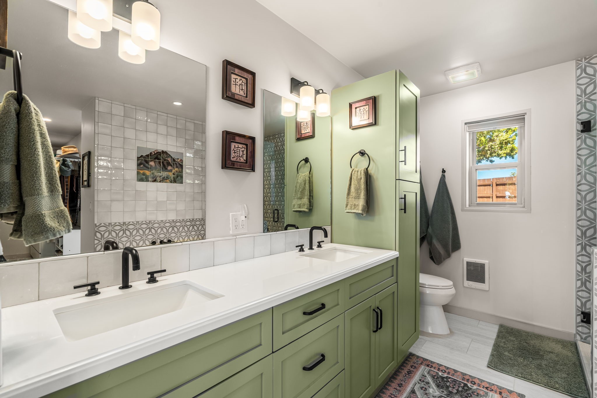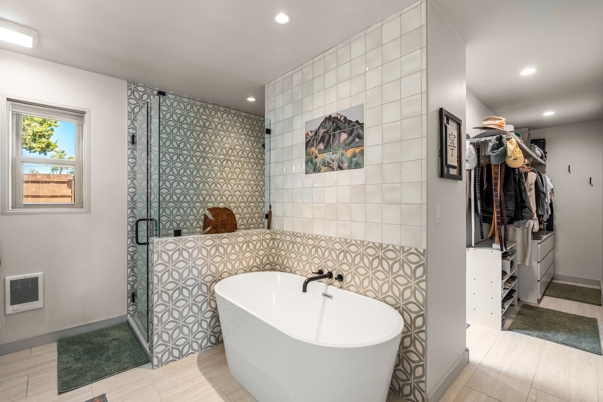 One of the most impressive remodels in Eldorado, this immaculate single-level home offers a light-filled, open floor plan with 3 bedrooms and 3 bathrooms, thoughtfully designed for both comfort and style. Beautiful 12" x 24" porcelain tile floors run throughout creating a clean, modern look. The chef's kitchen is the heart of the home, featuring quartz countertops, stainless steel appliances, a large pantry, and under-cabinet lighting, all opening seamlessly to the dining and living areas for effortless entertaining. The spacious living room is anchored by a classic kiva fireplace, adding warmth and character. The generous primary suite provides a relaxing retreat with a spa-like bath and soaking tub, while the third bedroom includes a built-in Murphy bed, offering flexibility for guests or a home office. Four mini-split systems ensure efficient heating and cooling year-round. Outdoor living is just as inviting, with multiple areas for entertaining, a fully fenced backyard, extensive drip irrigation, and French drains designed to direct water away from the home. Additional upgrades include a finished two-car garage with a workbench and storage, a tankless water heater, whole-house water filtration, and a silicone roof coating with two years remaining on the warranty. The home also includes a radon mitigation system and has been pre-inspected, with the report available upon request. A complete list of upgrades and available furnishings in supplements. Seller may require up to a 30-day leaseback.