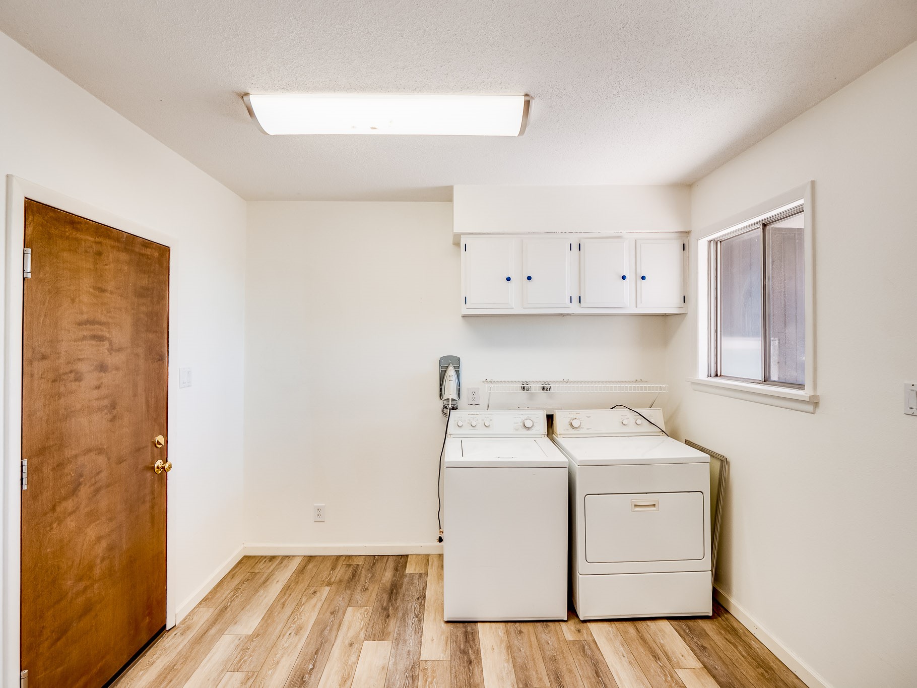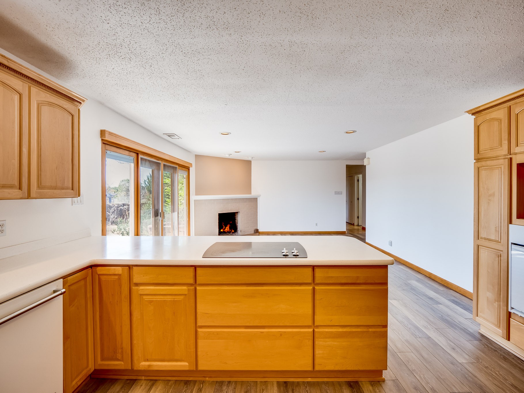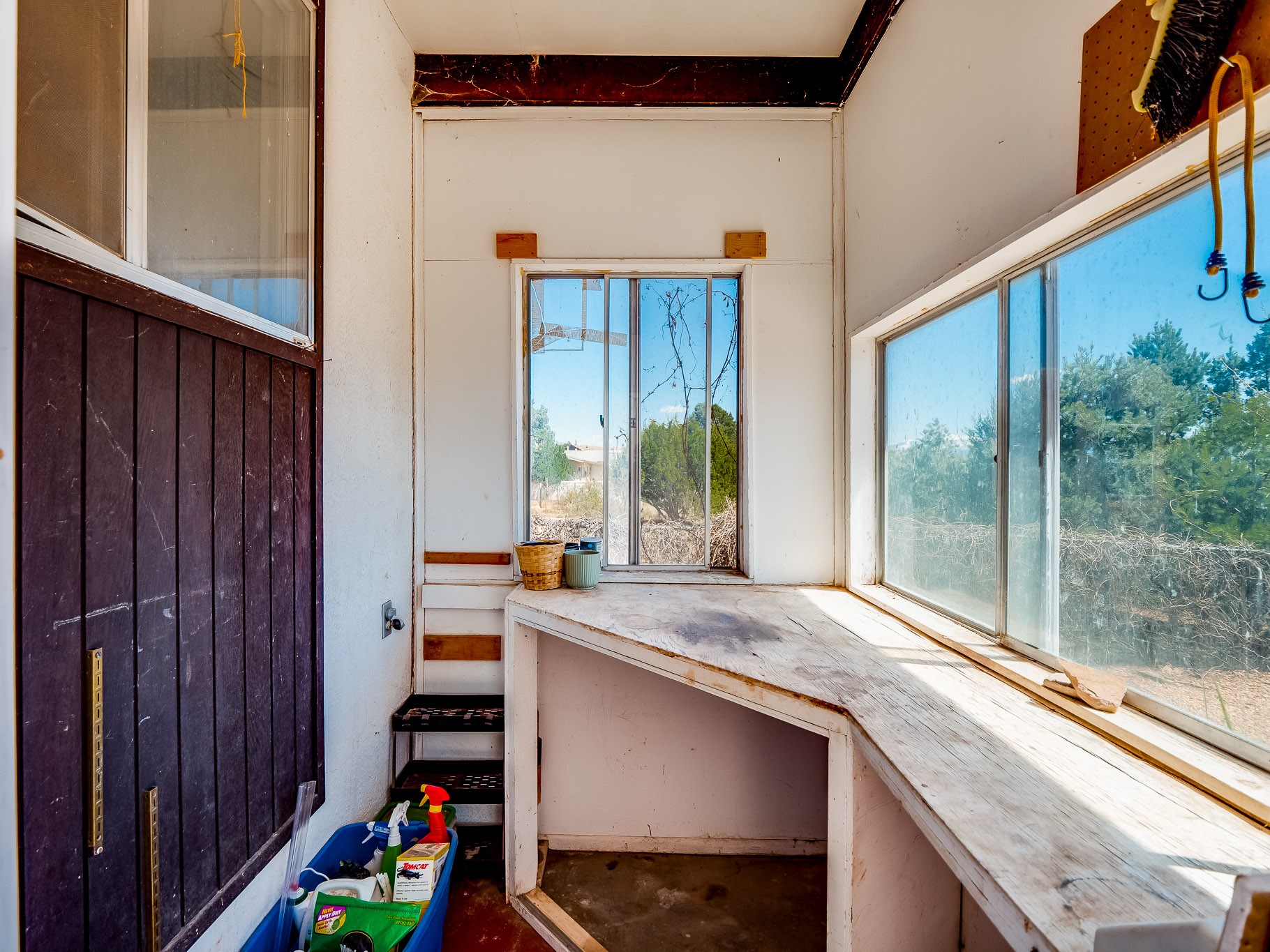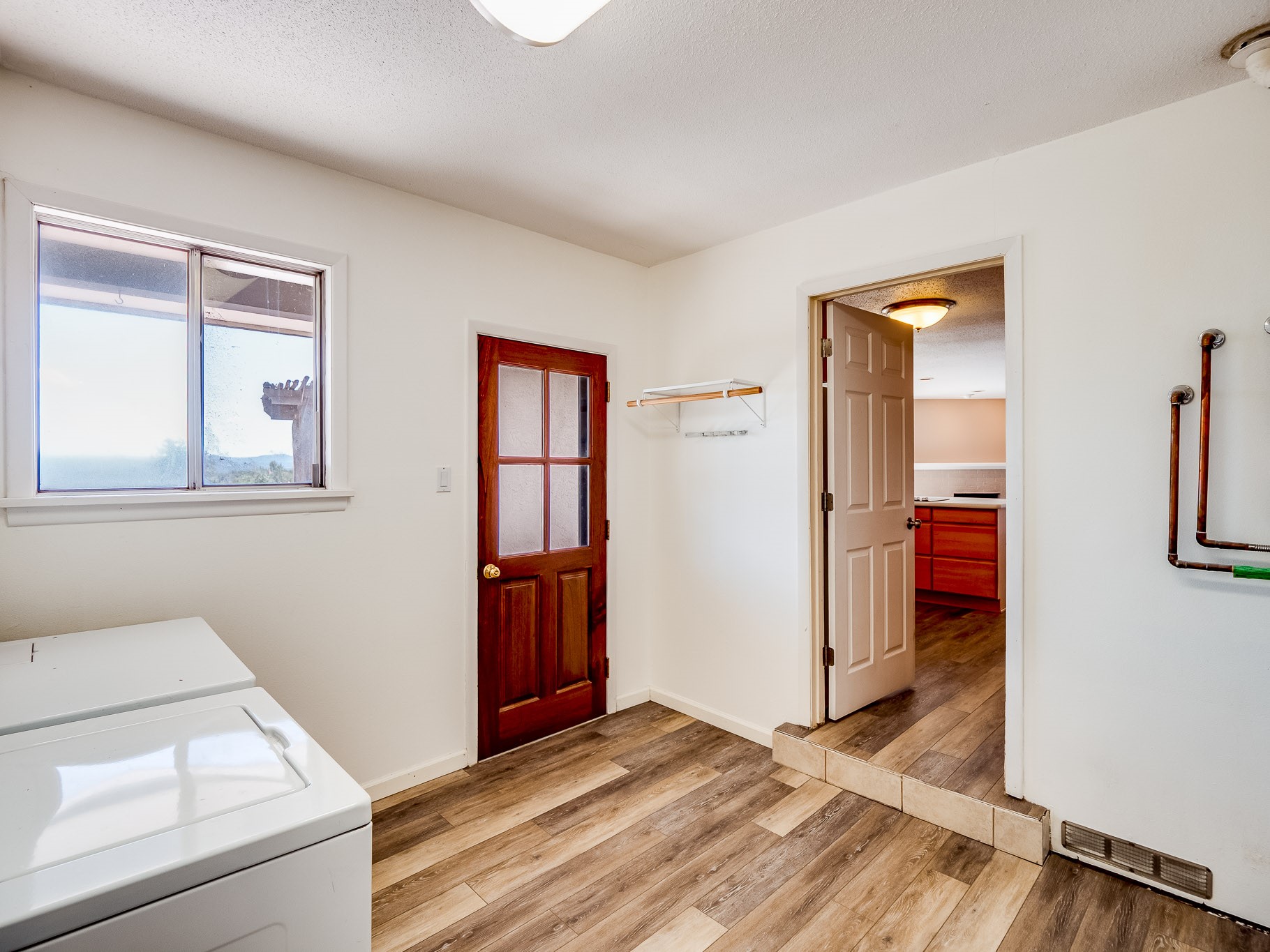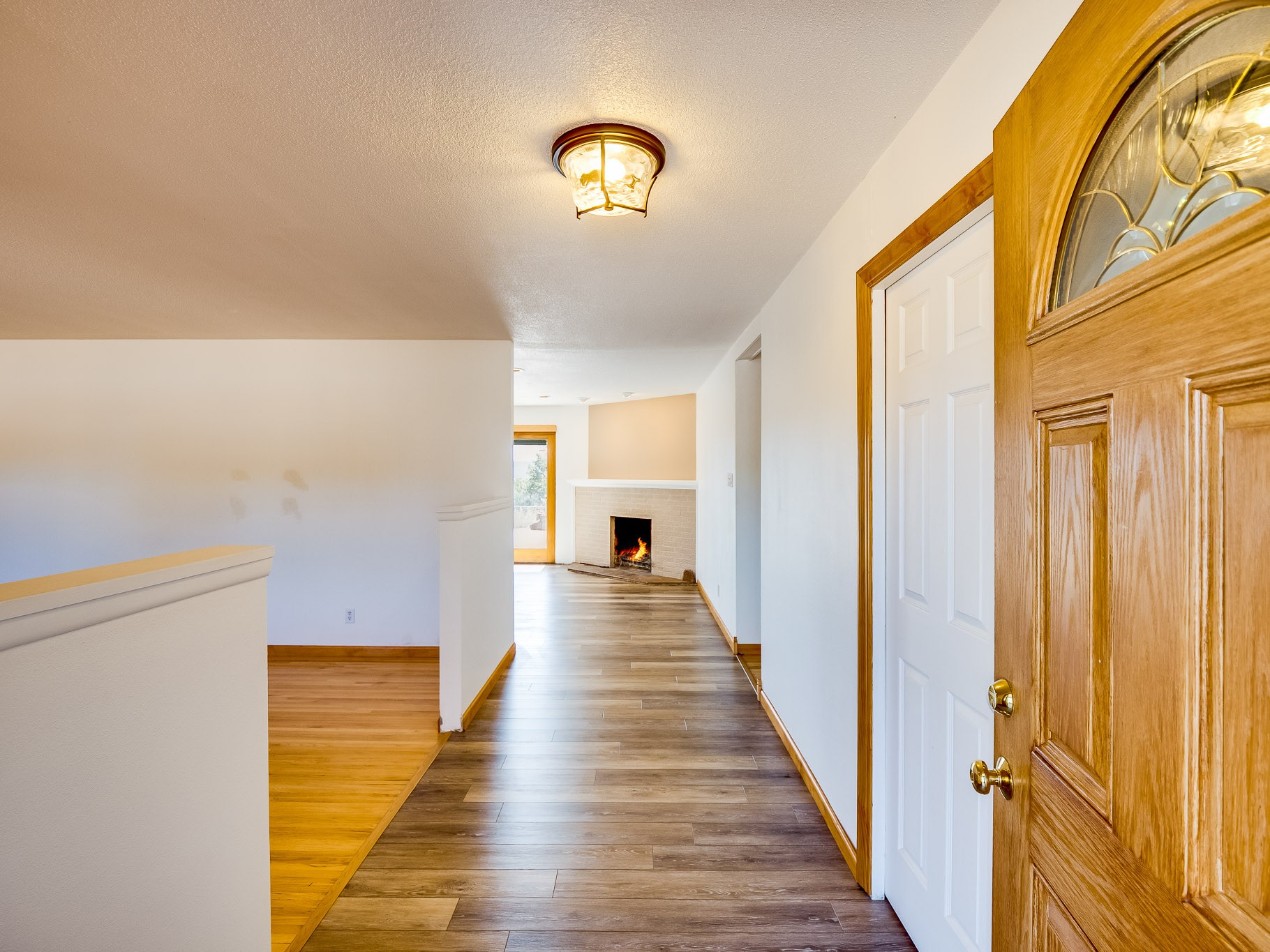 Welcome to this charming single-story ranch home in White Rock, where comfort, functionality, and outdoor living all come together. The inviting curb appeal begins with a large xeriscaped front yard that offers low-maintenance beauty year-round, complemented by a welcoming covered front porch. Step inside to a spacious living and dining area, highlighted by warm wood floors and abundant natural light--an ideal setting for everyday living and entertaining. The large kitchen features ample wood cabinetry, solid-surface counters, generous workspace, and it opens seamlessly to the cozy family room. Here you'll find a wood-burning fireplace for cool evenings and sliding glass doors that lead directly to the backyard and elevated stone patio, creating an easy indoor-outdoor flow. Just off the kitchen is a convenient laundry room access to the backyard, as well as direct entry to the two-car garage. Down the hallway are two bright guest bedrooms with plantation shutters, a dedicated office with built-in storage and a desk, and a full guest bathroom featuring a single-sink vanity and a tiled tub/shower combination. At the end of the hall, the nicely sized primary en-suite offers a peaceful retreat, complete with plantation shutters and a walk-in closet. The primary bathroom includes a single-sink vanity with ample storage, an additional closet, and a tiled walk-in shower. The true crown jewel of this home is the expansive backyard, with no homes directly behind, offering a wonderful sense of privacy and space. An elevated stone patio with a boulder water feature and a covered pergola creates a stunning outdoor living and entertaining area--perfect for gatherings, quiet evenings, or dining al fresco. There is plenty of room for the avid gardener to create garden beds or landscaping projects, all set beneath wide open skies with beautiful mountain views. Come experience this beautiful home in person and see all it has to offer!