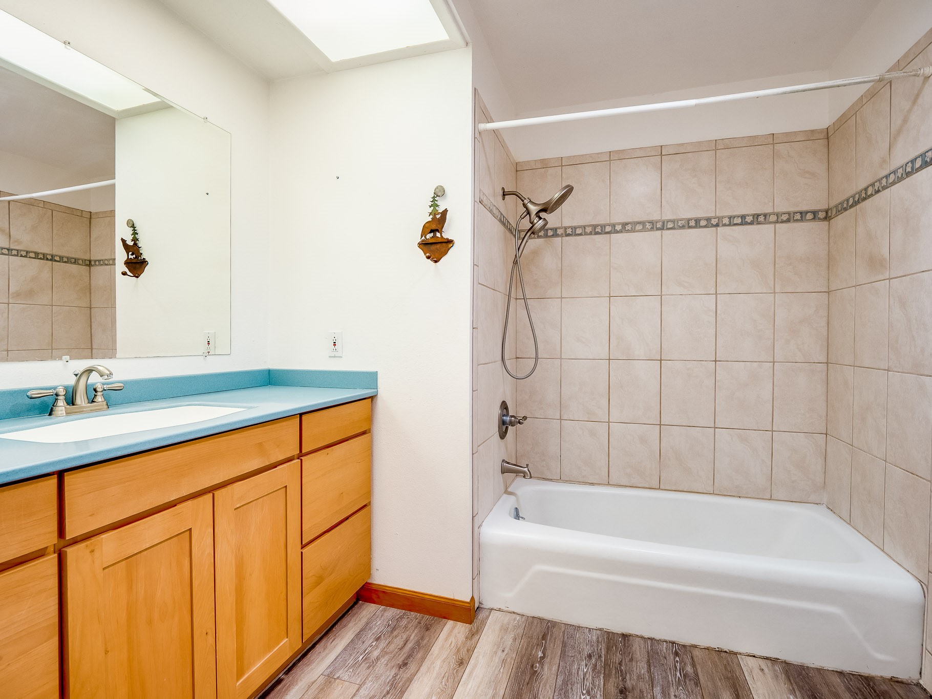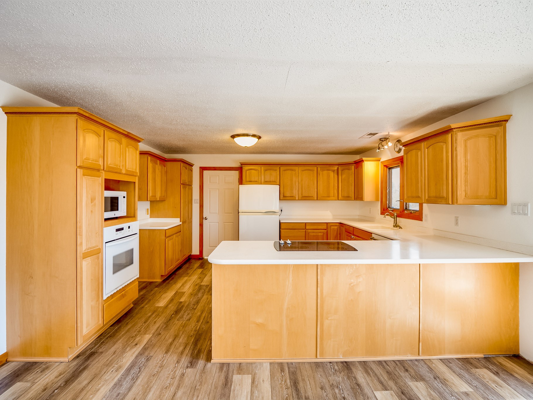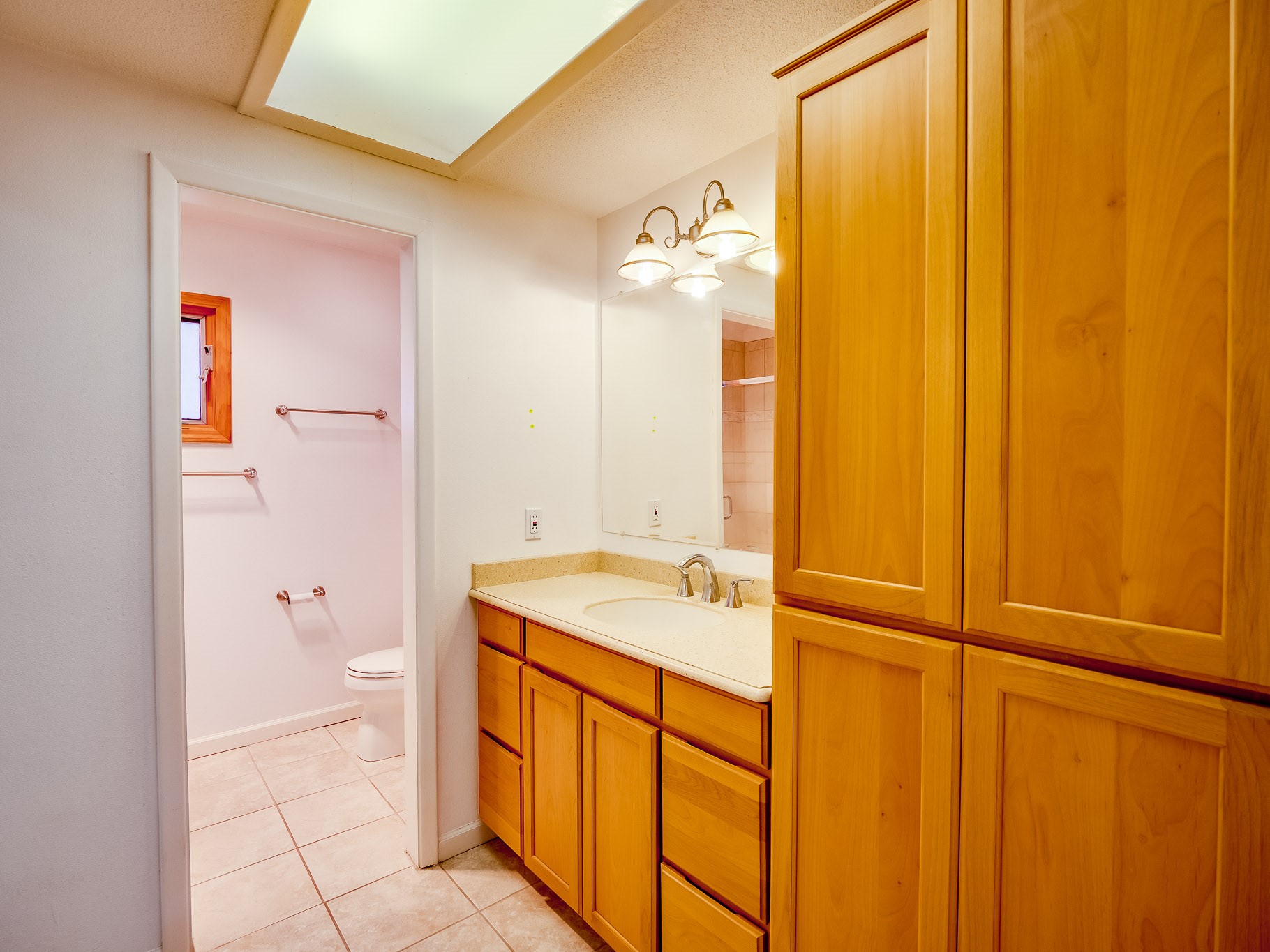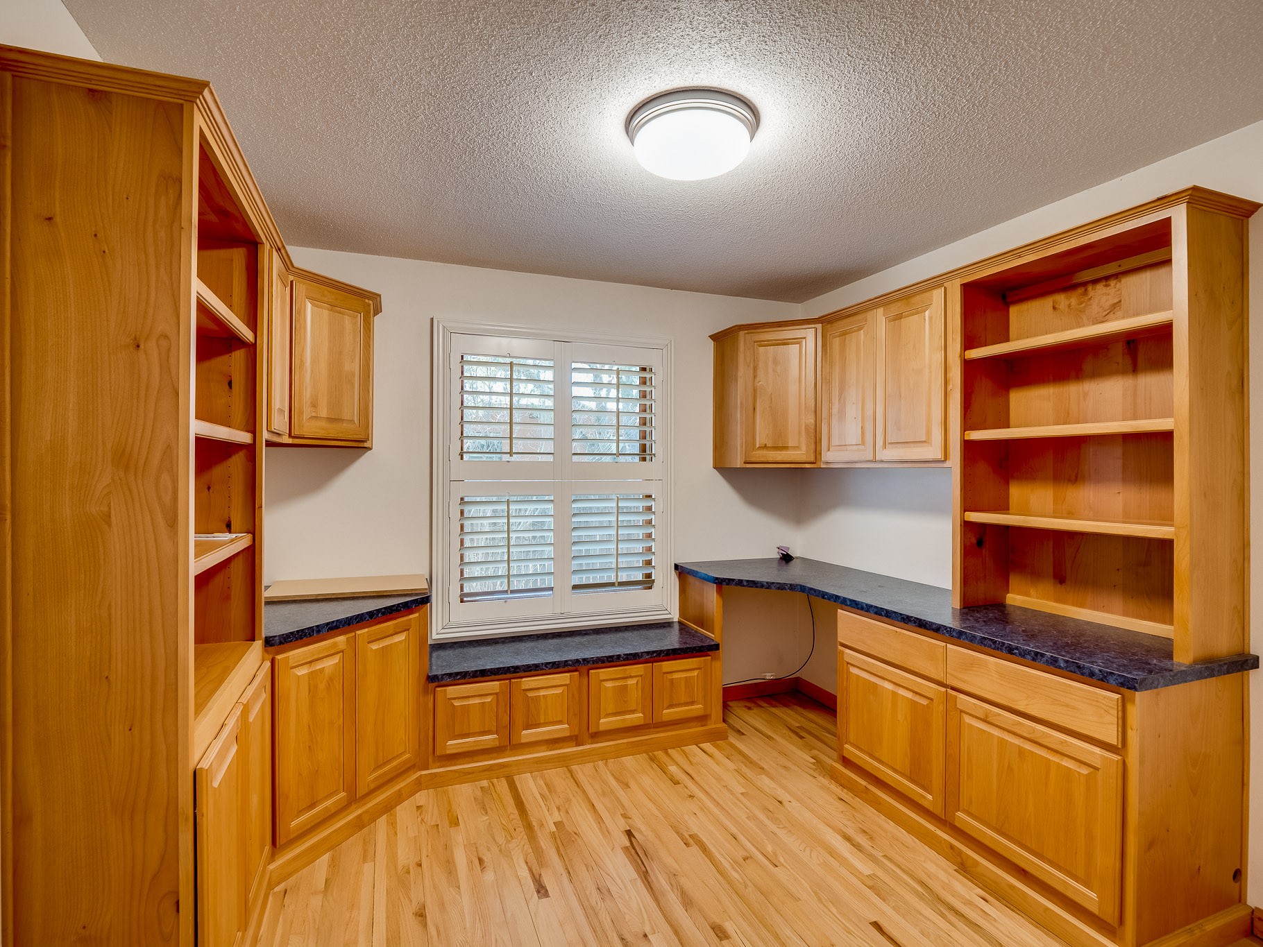 Welcome to this charming single-story ranch home in White Rock, where comfort, functionality, and outdoor living all come together. The inviting curb appeal begins with a large xeriscaped front yard that offers low-maintenance beauty year-round, complemented by a welcoming covered front porch. Step inside to a spacious living and dining area, highlighted by warm wood floors and abundant natural light--an ideal setting for everyday living and entertaining. The large kitchen features ample wood cabinetry, solid-surface counters, generous workspace, and it opens seamlessly to the cozy family room. Here you'll find a wood-burning fireplace for cool evenings and sliding glass doors that lead directly to the backyard and elevated stone patio, creating an easy indoor-outdoor flow. Just off the kitchen is a convenient laundry room access to the backyard, as well as direct entry to the two-car garage. Down the hallway are two bright guest bedrooms with plantation shutters, a dedicated office with built-in storage and a desk, and a full guest bathroom featuring a single-sink vanity and a tiled tub/shower combination. At the end of the hall, the nicely sized primary en-suite offers a peaceful retreat, complete with plantation shutters and a walk-in closet. The primary bathroom includes a single-sink vanity with ample storage, an additional closet, and a tiled walk-in shower. The true crown jewel of this home is the expansive backyard, with no homes directly behind, offering a wonderful sense of privacy and space. An elevated stone patio with a boulder water feature and a covered pergola creates a stunning outdoor living and entertaining area--perfect for gatherings, quiet evenings, or dining al fresco. There is plenty of room for the avid gardener to create garden beds or landscaping projects, all set beneath wide open skies with beautiful mountain views. Come experience this beautiful home in person and see all it has to offer!