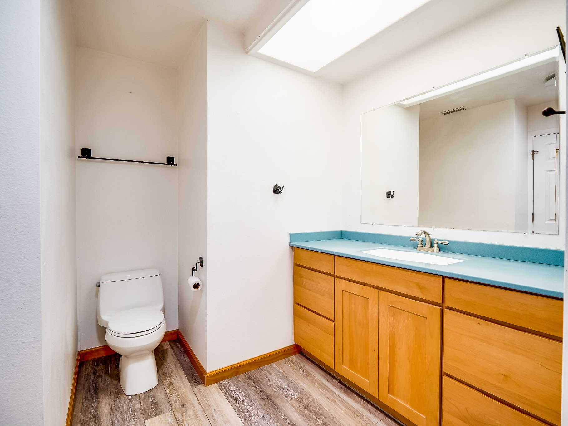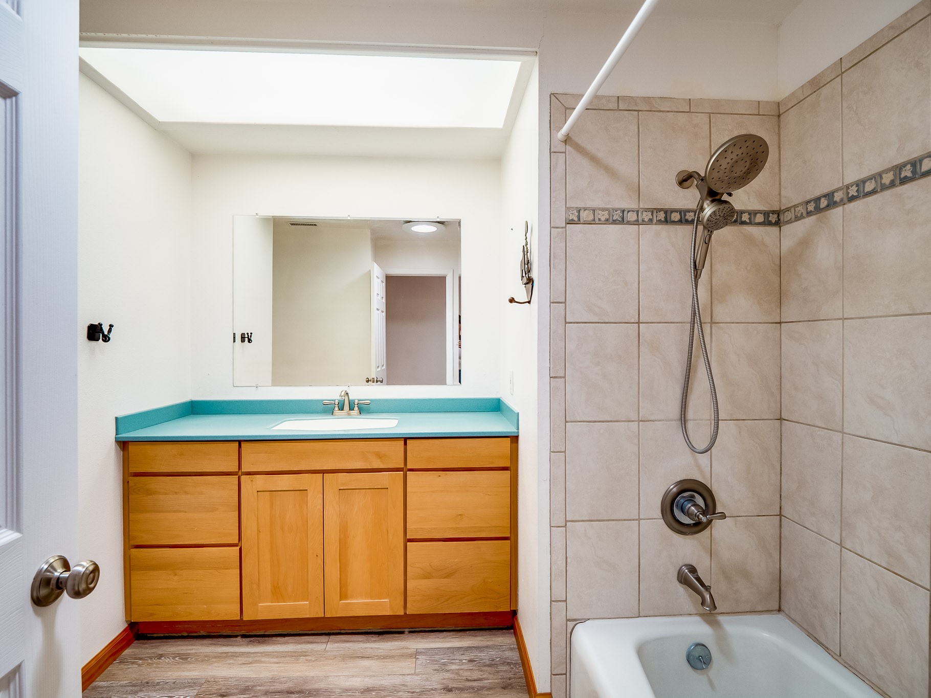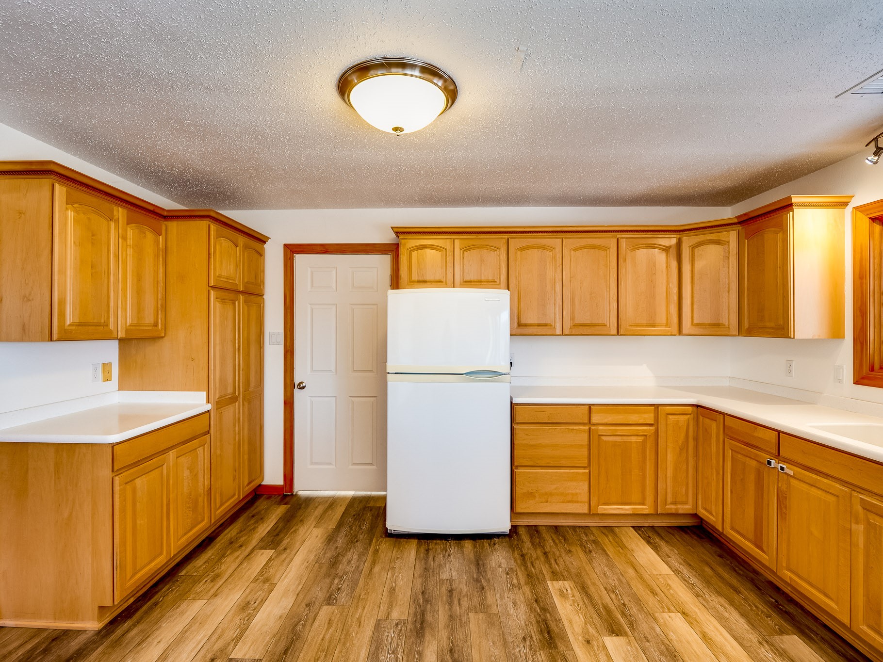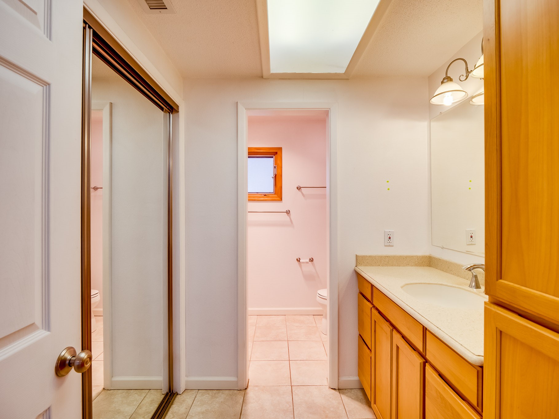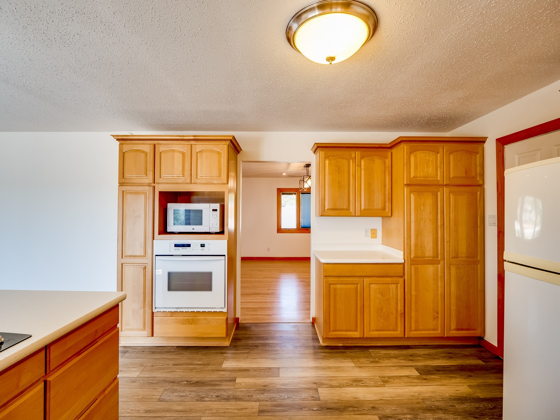 Welcome to this charming single-story ranch home in White Rock, where comfort, functionality, and outdoor living all come together. The inviting curb appeal begins with a large xeriscaped front yard that offers low-maintenance beauty year-round, complemented by a welcoming covered front porch. Step inside to a spacious living and dining area, highlighted by warm wood floors and abundant natural light--an ideal setting for everyday living and entertaining. The large kitchen features ample wood cabinetry, solid-surface counters, generous workspace, and it opens seamlessly to the cozy family room. Here you'll find a wood-burning fireplace for cool evenings and sliding glass doors that lead directly to the backyard and elevated stone patio, creating an easy indoor-outdoor flow. Just off the kitchen is a convenient laundry room access to the backyard, as well as direct entry to the two-car garage. Down the hallway are two bright guest bedrooms with plantation shutters, a dedicated office with built-in storage and a desk, and a full guest bathroom featuring a single-sink vanity and a tiled tub/shower combination. At the end of the hall, the nicely sized primary en-suite offers a peaceful retreat, complete with plantation shutters and a walk-in closet. The primary bathroom includes a single-sink vanity with ample storage, an additional closet, and a tiled walk-in shower. The true crown jewel of this home is the expansive backyard, with no homes directly behind, offering a wonderful sense of privacy and space. An elevated stone patio with a boulder water feature and a covered pergola creates a stunning outdoor living and entertaining area--perfect for gatherings, quiet evenings, or dining al fresco. There is plenty of room for the avid gardener to create garden beds or landscaping projects, all set beneath wide open skies with beautiful mountain views. Come experience this beautiful home in person and see all it has to offer!