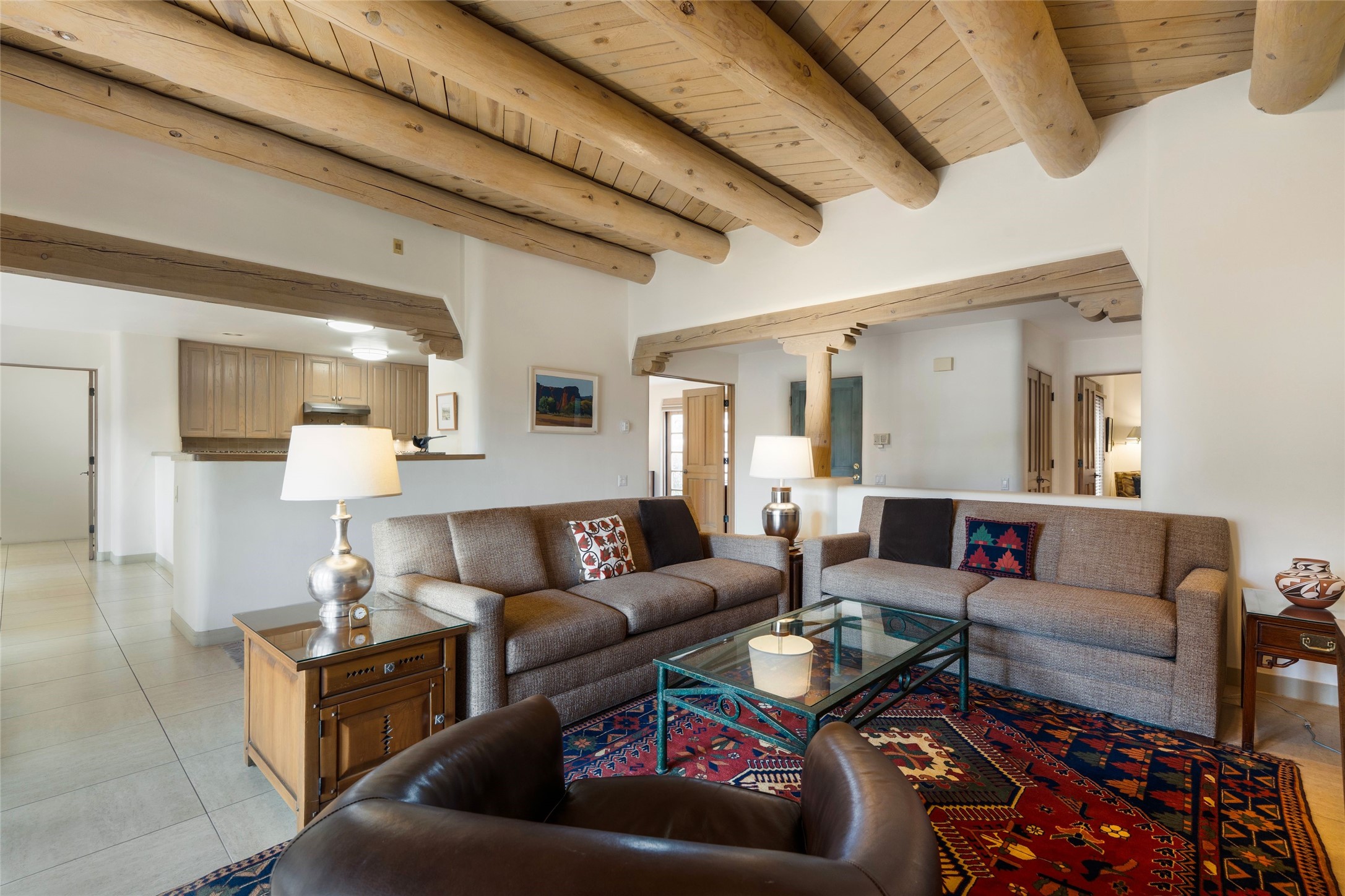 Ideally located on the golf course with an oversized back portal to take in the scenic views and gaze at the pond, this two bedroom with an office is a fabulous Quail Run offering. Updated floors and kitchen serve to make this functional and enjoyable. Plenty of Santa Fe style, great separation of bedrooms and ample windows that host the sunlight and give plenty of expanse to view. Located walking distance from the Clubhouse inside of 103 beautifully maintained acres with 24 hour hosted security. Ownership at Quail Run includes all amenities; engaging 9 hole golf course, state of the art pool, spa and workout areas, varied quality fitness classes, pickleball and tennis courts as well a delightful 1 3/4 mile walking trail. Come and see!