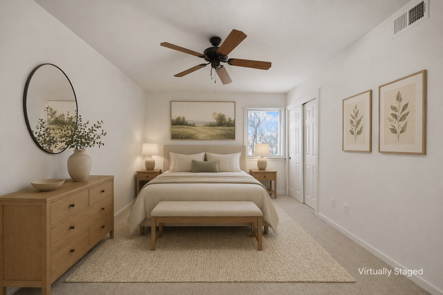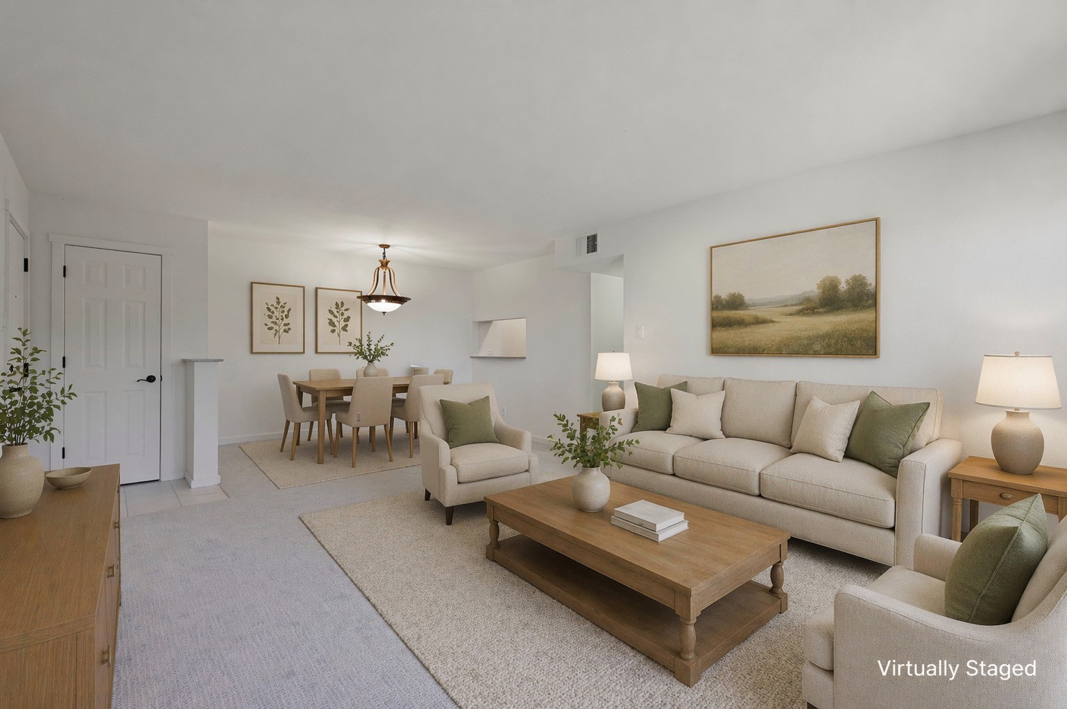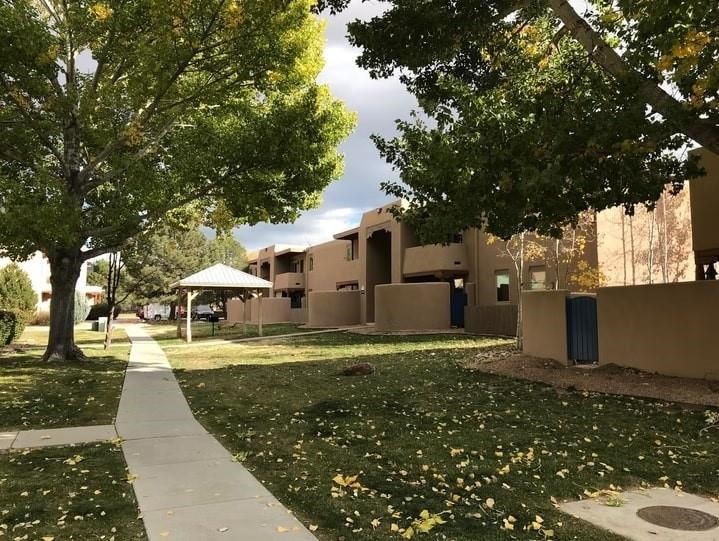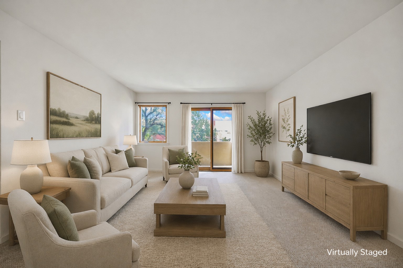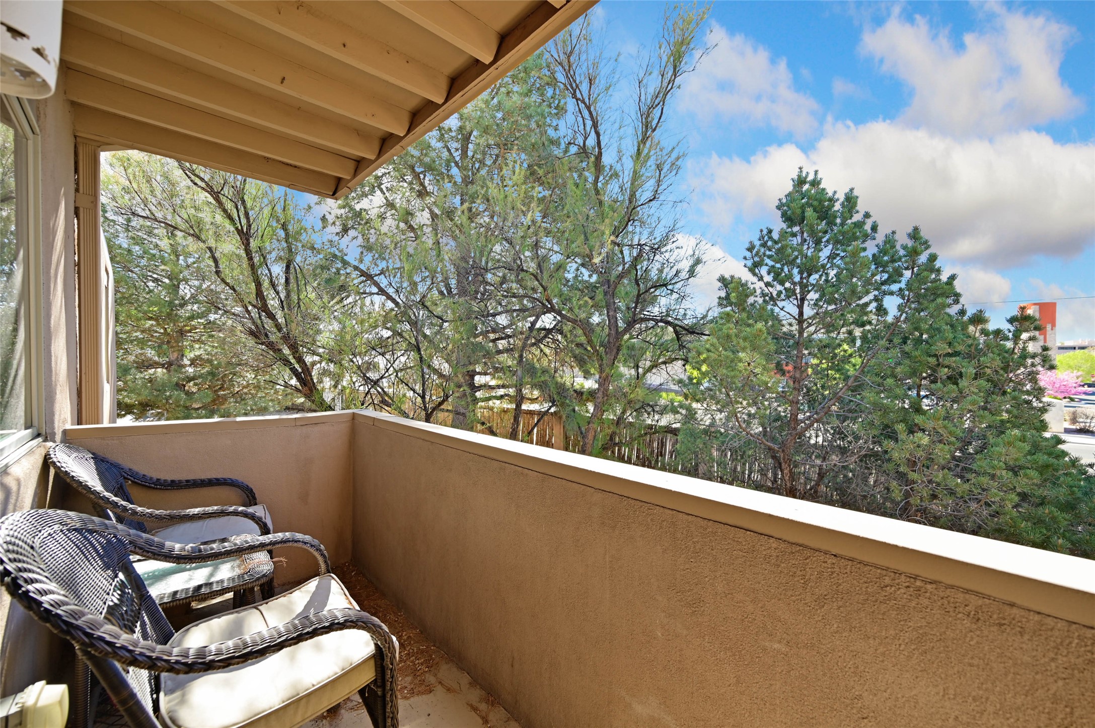 Welcome home to this charming two-bedroom, two-bath condo situated in the neatly maintained San Mateo gated community, surrounded by mature trees and verdant spaces. Located on the second floor, this comfortable home features two full baths, including a primary suite with a relaxing Jacuzzi tub. Enjoy beautiful southern exposure with great natural light and views of the Ortiz Mountains. The interior offers stainless steel appliances, in-unit laundry, recently upgraded carpeting, and a new water heater. Residents appreciate the peaceful setting and access to great community amenities, including a pool, clubhouse, and landscaped common areas. Conveniently located near shopping, restaurants, major routes, and just a short drive to the Plaza, this condo offers easy access to everything you need while maintaining a calm, private atmosphere. A wonderful opportunity to enjoy low-maintenance living in a central and desirable location.