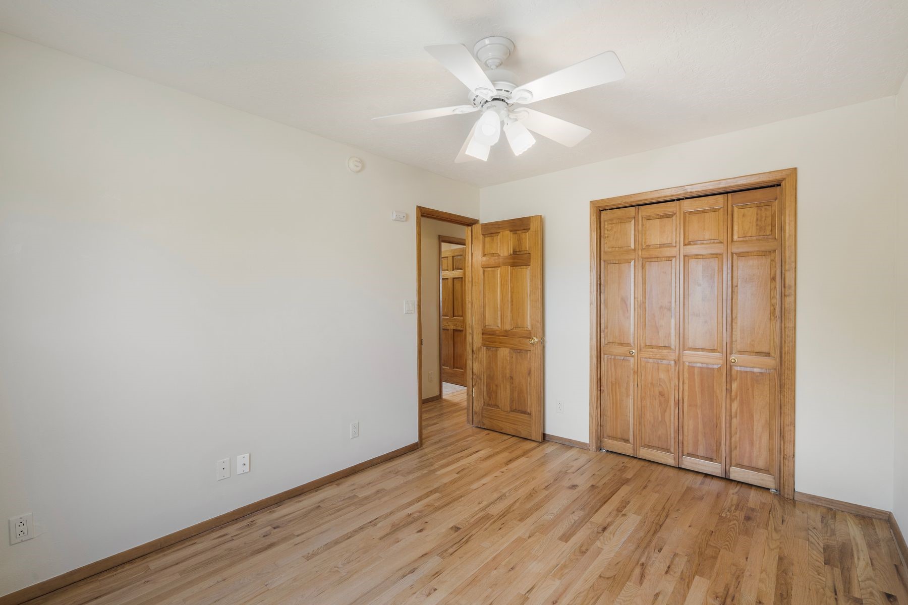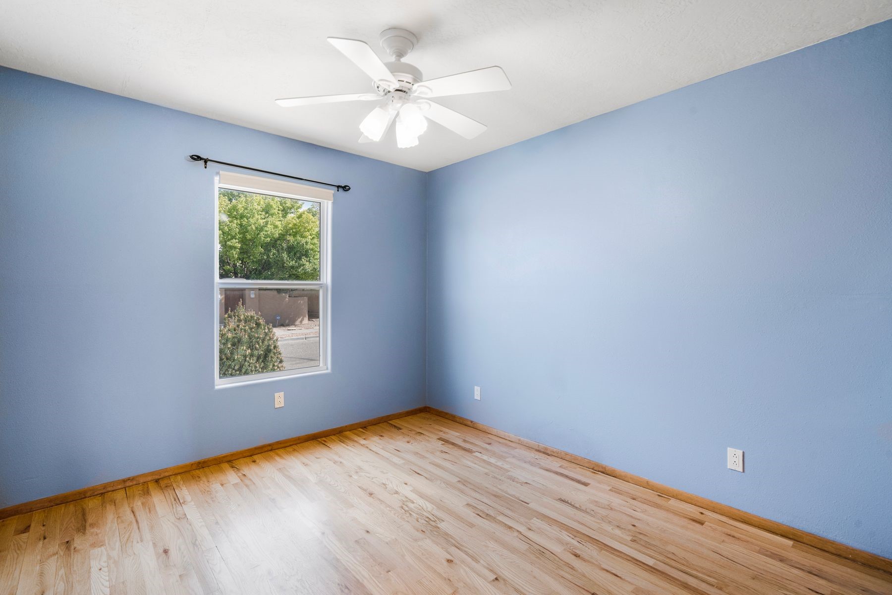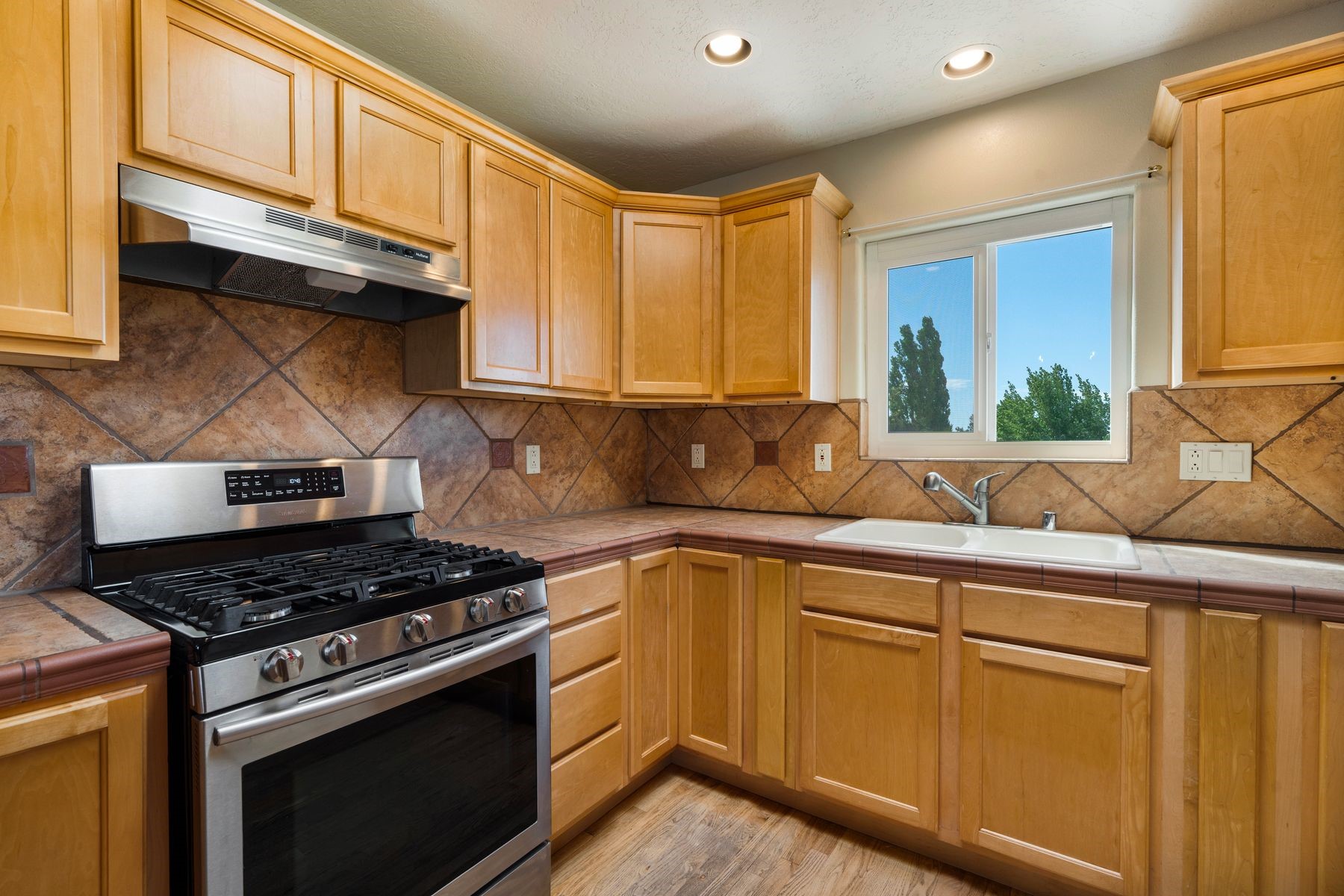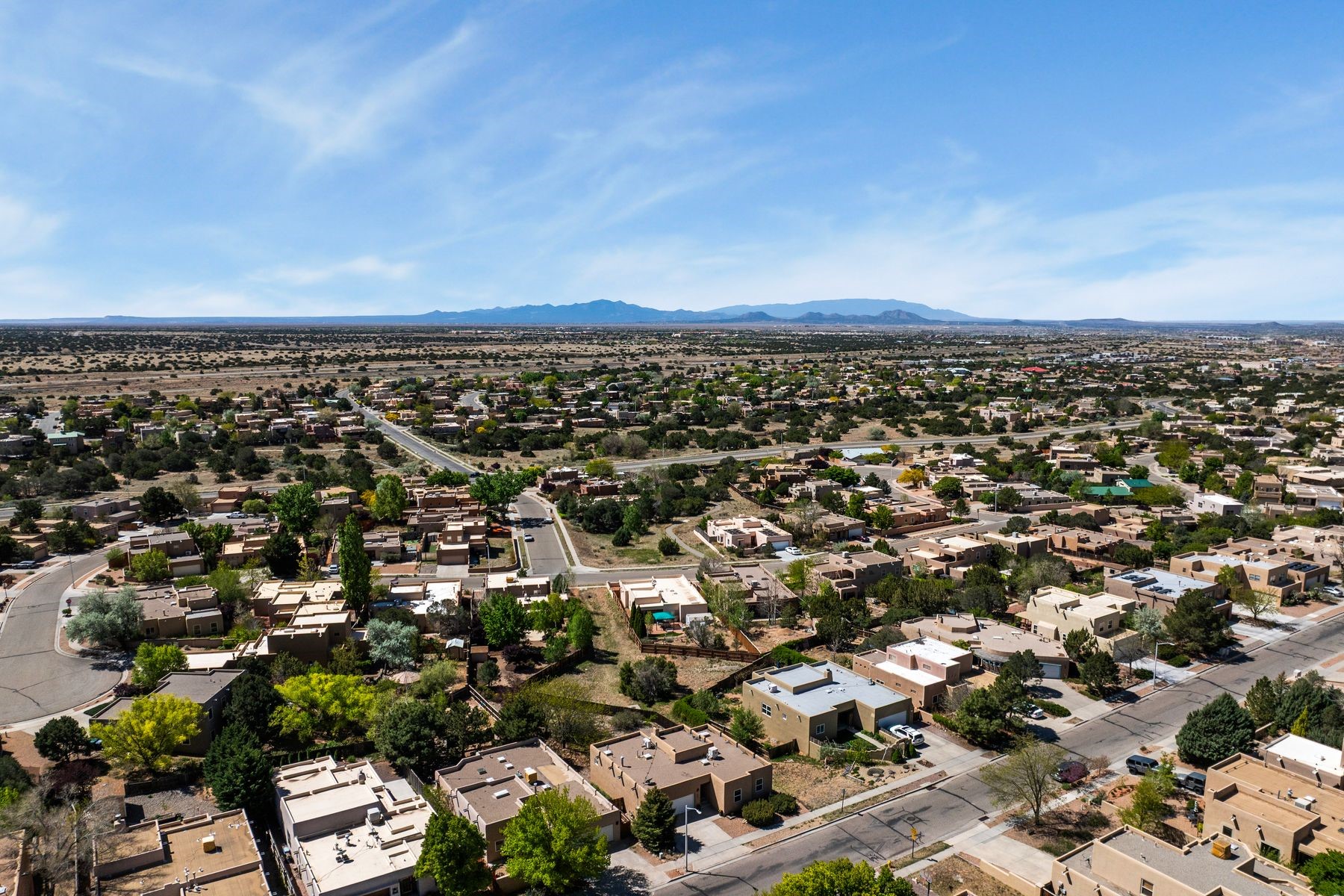 Single-level home in Pueblos del Sol with Ortiz and Sandia mountain views, located just 10 minutes from downtown Santa Fe and 5 minutes to I-25. This 3 bedroom, 2 bath residence offers 1,336 square feet on a .17-acre lot with no interior steps, good bedroom separation, and a functional layout designed for comfortable everyday living. The home features wood flooring throughout with no carpet, along with high ceilings, exposed vigas, and nichos that reflect classic Santa Fe architectural character. The living room opens to a deck with direct access from both the main living area and the primary bedroom, creating a seamless connection to outdoor space. The kitchen and dining areas flow easily into the living room, supporting both daily living and gathering. The primary bedroom is en-suite and positioned separately from the guest bedrooms, offering privacy and flexibility. Two additional bedrooms and a second bathroom accommodate guests, workspace, or additional living needs. Comfort systems include forced air heating and ductless mini-split systems in the living room and primary bedroom for supplemental heating and cooling. A new water heater was installed in 2025. Outdoor features include a large, fully fenced backyard with ample space for outdoor living, pets, or gardening. A spacious basement provides additional storage. Additional highlights include a two-car garage and low HOA dues. The Pueblos del Sol community offers walking paths, parks, and playgrounds, with a coffee shop and nearby amenities within walking distance. This property combines single-level living, outdoor space, and proximity to Santa Fe's amenities in a well-established and desirable neighborhood.