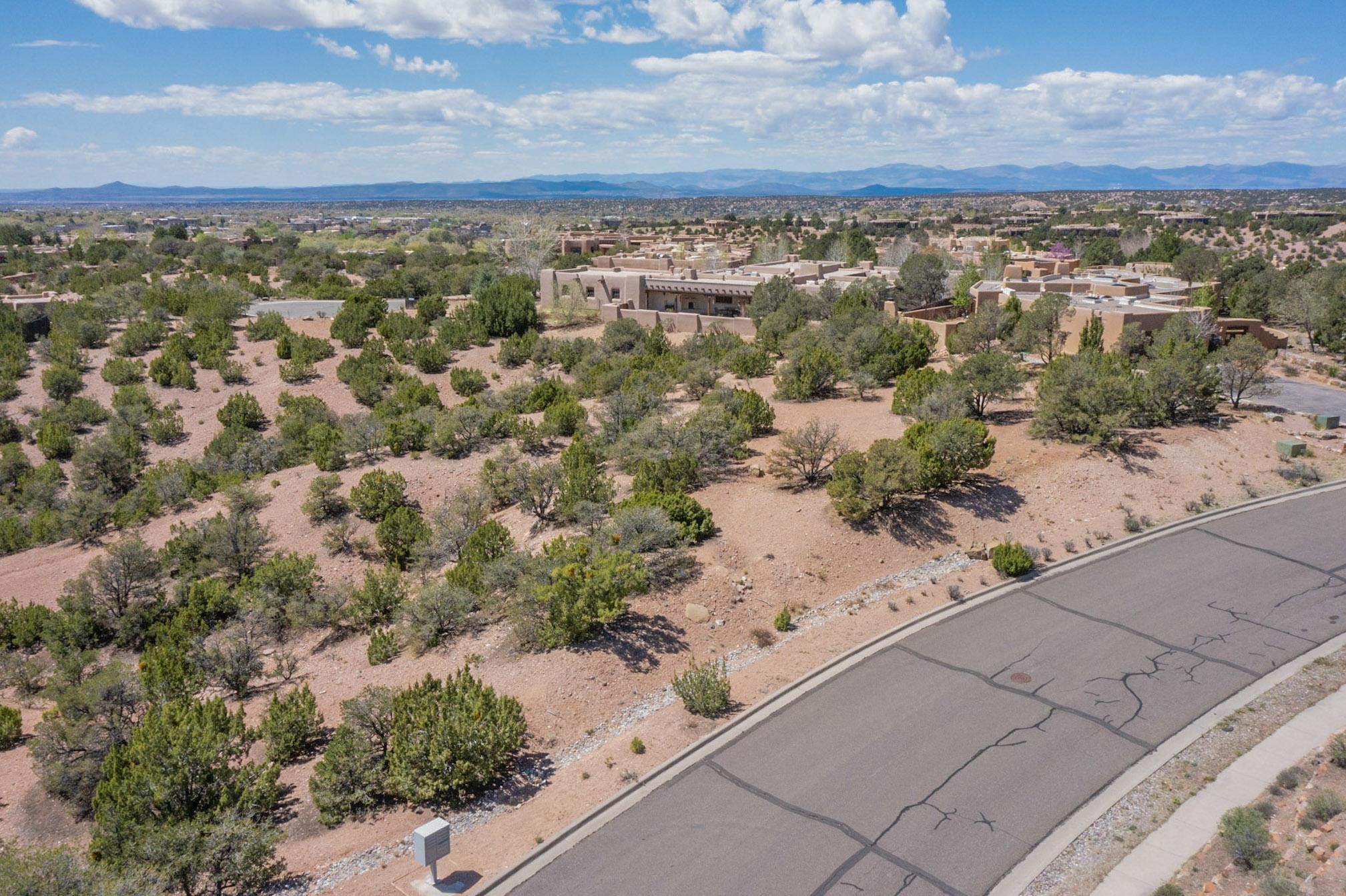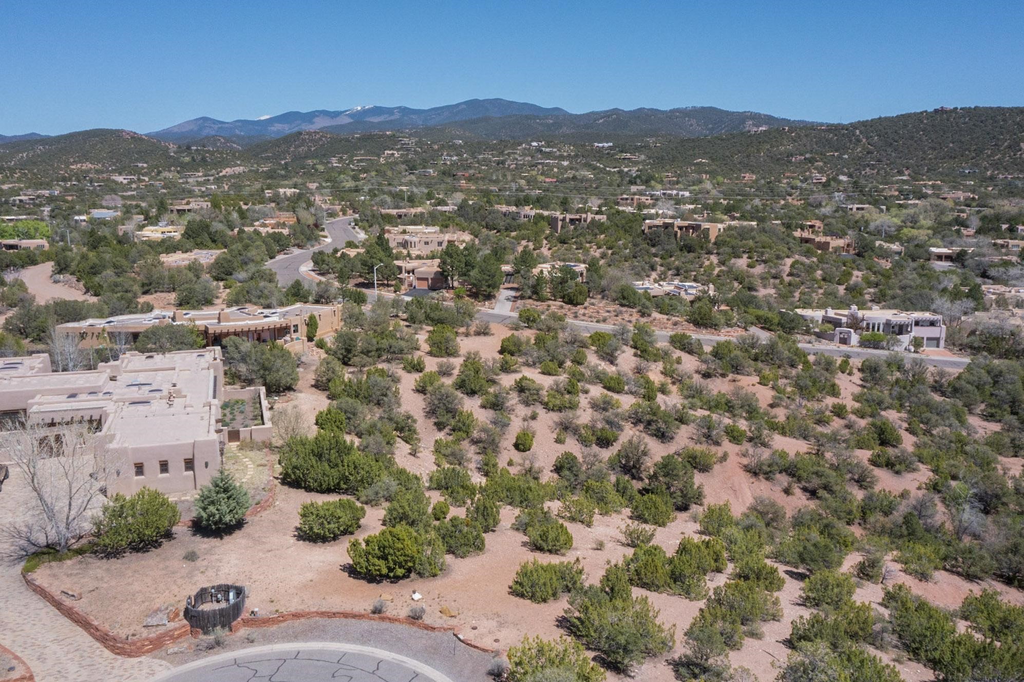 This Las Barrancas Beauty with views of Sun and Moon Mountains adjoins 1.5 acres of open space. Live the ultimate Santa Fe lifestyle 5 minutes from Canyon Rd, 8 minutes from the Plaza, and 7 minutes from Ten Thousand Waves. No septic, no well - just a convenient lot with City utilities, views, extra green space, and deer regularly passing by. Opportunities to build in Las Barrancas are rare. Don't miss your chance.