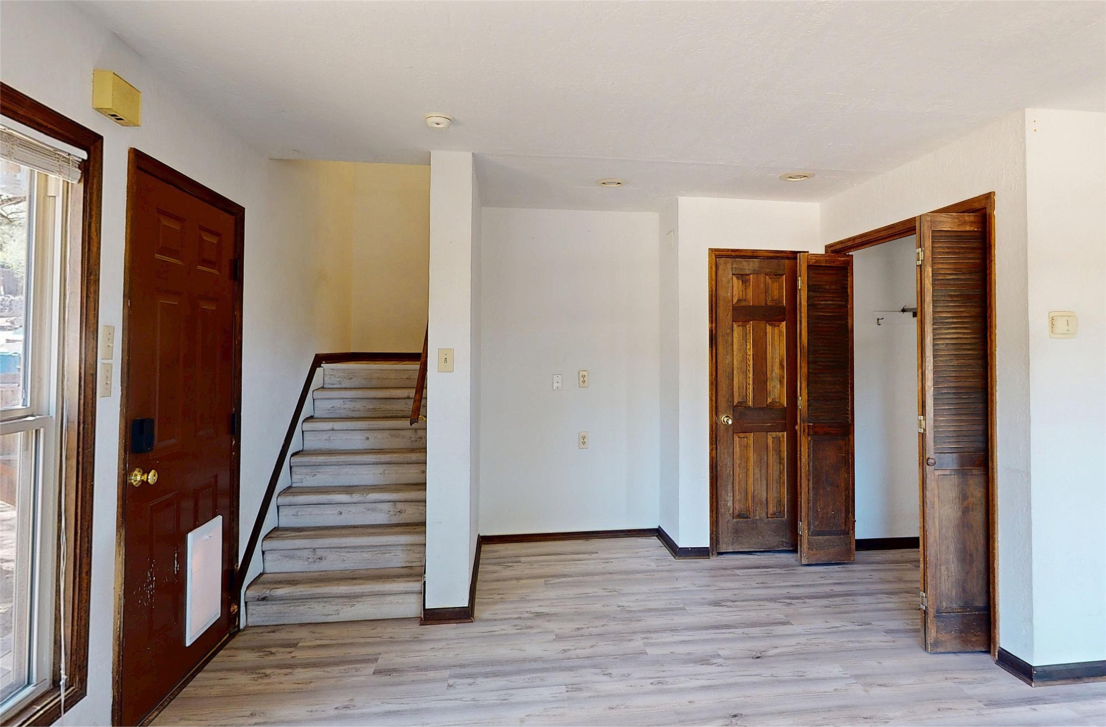 Welcome to this charming and versatile 3-story home located on a quiet street in North Mesa. Offering 2 bedrooms, 2 bathrooms, and over 1400 square feet of living space, this home provides comfort, flexibility, and unique features throughout. On the main level, you're welcomed into an open-concept living and dining area, perfect for both everyday living and entertaining. Just off the dining space, the kitchen features a convenient pantry, along with access to the garage and basement. The dining room also opens directly onto a deck, creating an ideal spot to relax and enjoy the natural surroundings. Upstairs, you'll find two comfortable bedrooms and a full bathroom, offering a functional and private layout. The finished basement adds versatility, featuring a room with a closet and a full bathroom, making it ideal for a guest suite, additional living area, or flexible-use space. A portion of the basement remains unfinished and includes a built-in workbench, perfect for a workshop, hobby area, or crafting space. Enjoy the convenience of two single-car garages, one of which offers direct access to the home. Ideally located near a middle school, tennis courts, and a playground, this home combines a peaceful setting with everyday convenience. With its flexible layout, functional spaces, and serene location, this home is a fantastic opportunity. Come take a look!
