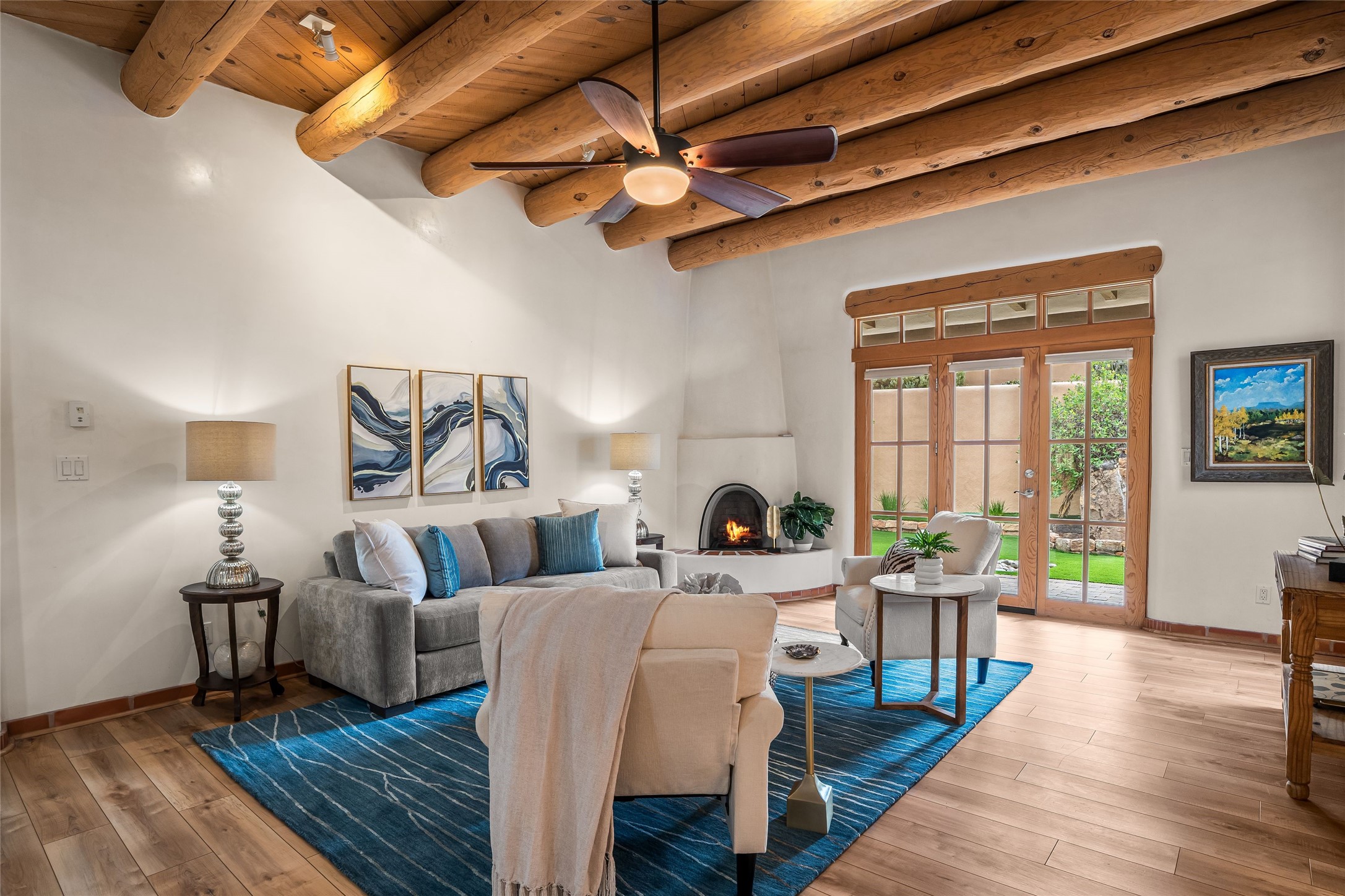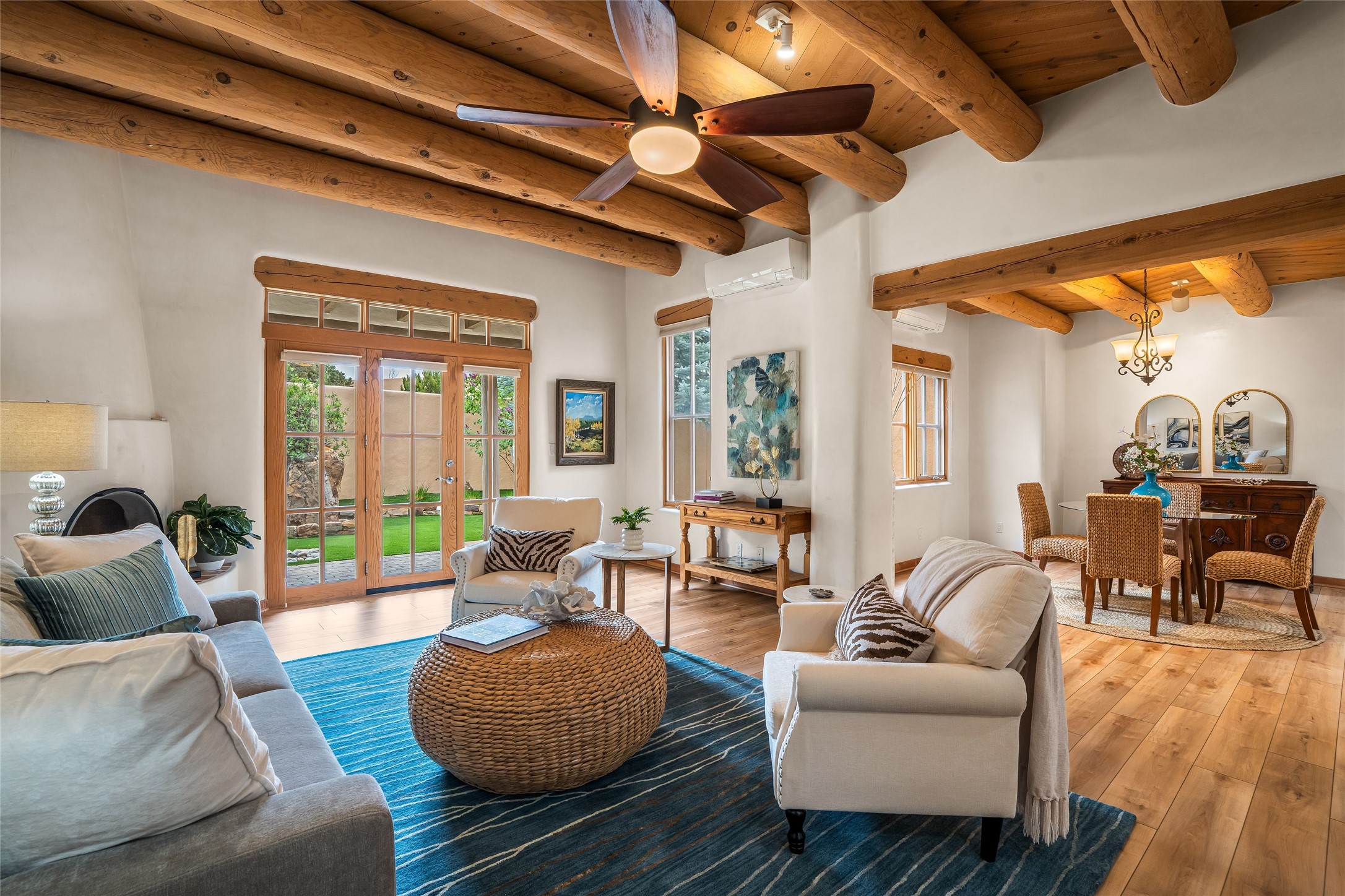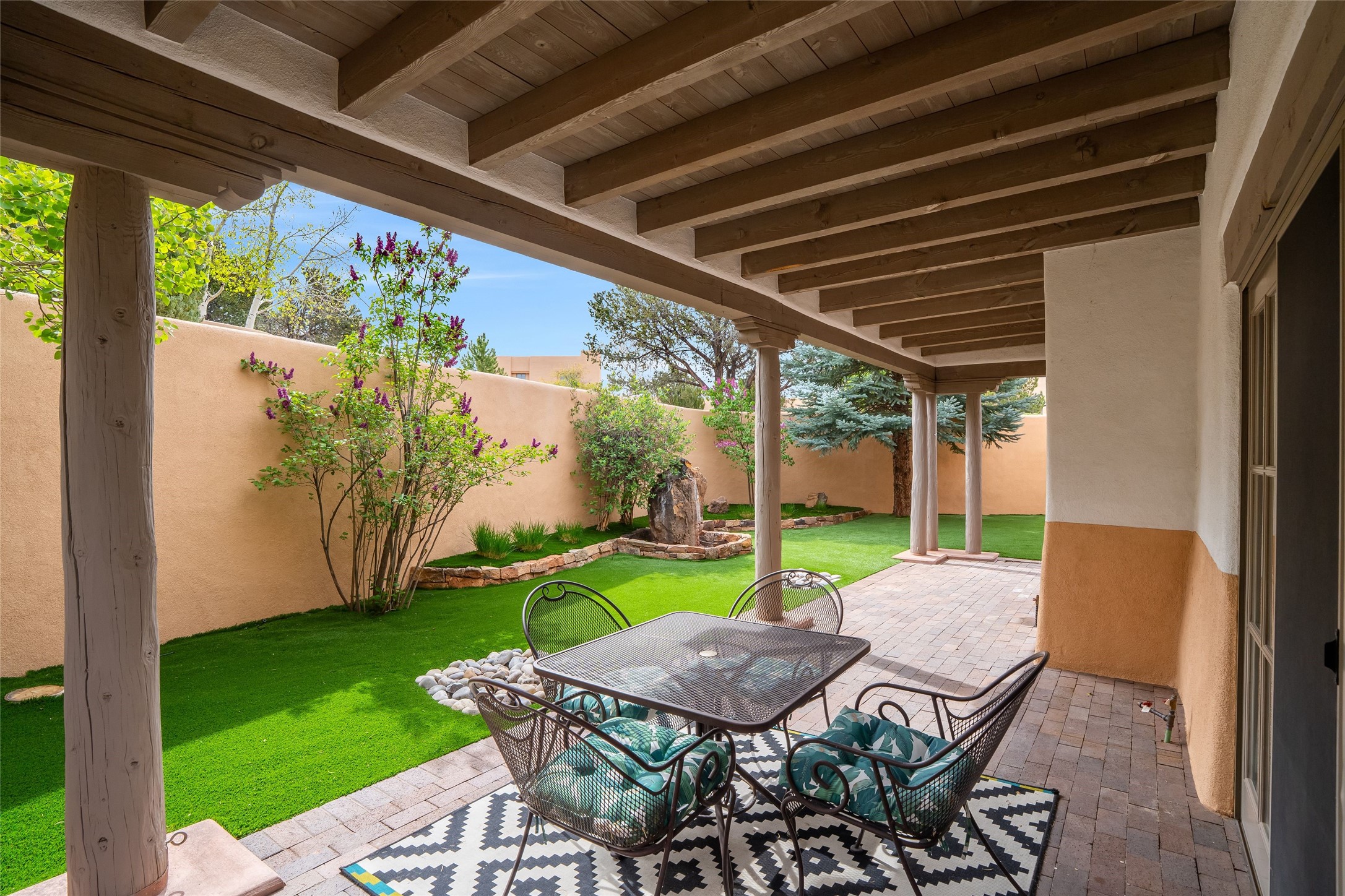 Traditional Santa Fe charm integrated with modern updates make this 2 bedroom Quail Run condo turn key and ready to enjoy. Tucked in the community on a corner lot, this detached light-filled space offers privacy and peace of mind. Custom Coretec Manila Oak floors offer a natural finish with enhanced durability. Updated kitchen and bathrooms with modern counters, newer appliances and stylish cabinets combine with a functional layout to create an ideal space to unwind in. With a light filled kitchen nook, private outdoor spaces and great separation of bedrooms you'll look forward to coming home. Home ownership at Quail Run includes all it's fabulous amenities: 24 hour hosted security, engaging 9 hole golf course, state of the art workout areas, pool and spa, quality fitness classes, tennis and pickleball and a delightful 1 3/4 walking path, come and see!
