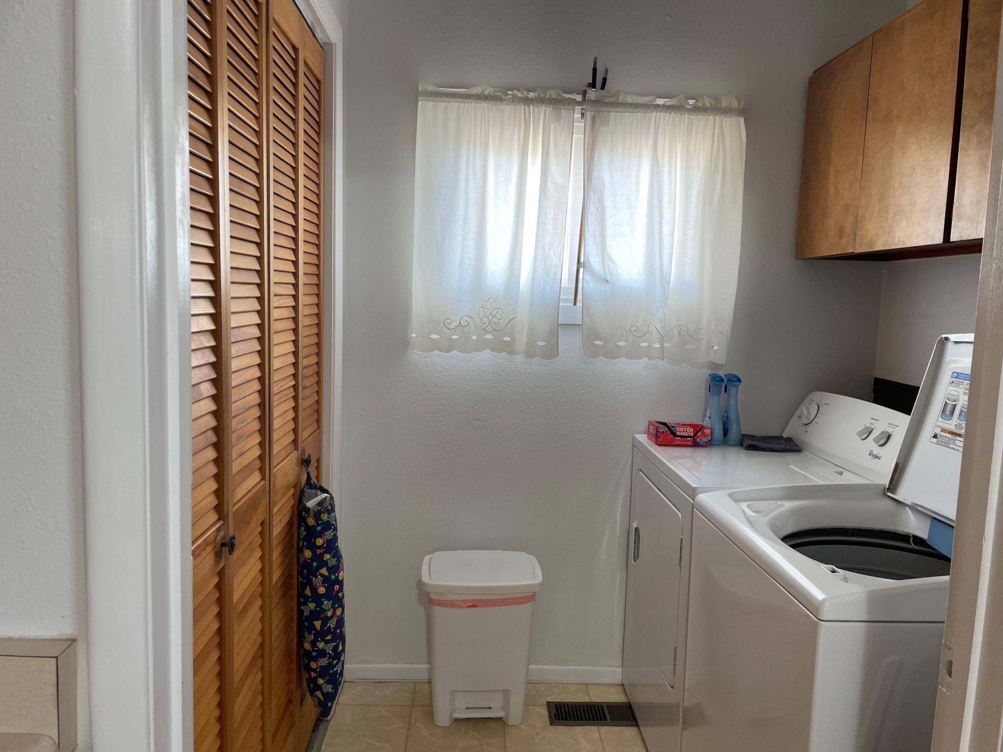 Come and see this welcoming 3-bedroom, 2-bath home offering open living and dining areas and a comfortable, functional floor plan. The kitchen is conveniently located to the dining area and the covered patio, making entertaining and family gatherings indoors or out streamlined. Adjacent to the kitchen is a separate laundry and pantry area, and easy access to the two-car garage. Sliding glass doors radiate natural light into the home, drawing you to the generously sized back yard. This home offers approximately 1281 square feet and a .20 +/- acre lot, allowing for the possibility of expansion. The 2025-2026 upgrades include: a lovely tub surround, bathroom vanity, solid surface bathroom countertop, modern fixtures, laminate flooring, and a new hot water heater. You can enjoy the comfort of central air conditioning while you observe the outdoor sprinkler system at work. Call for a showing today