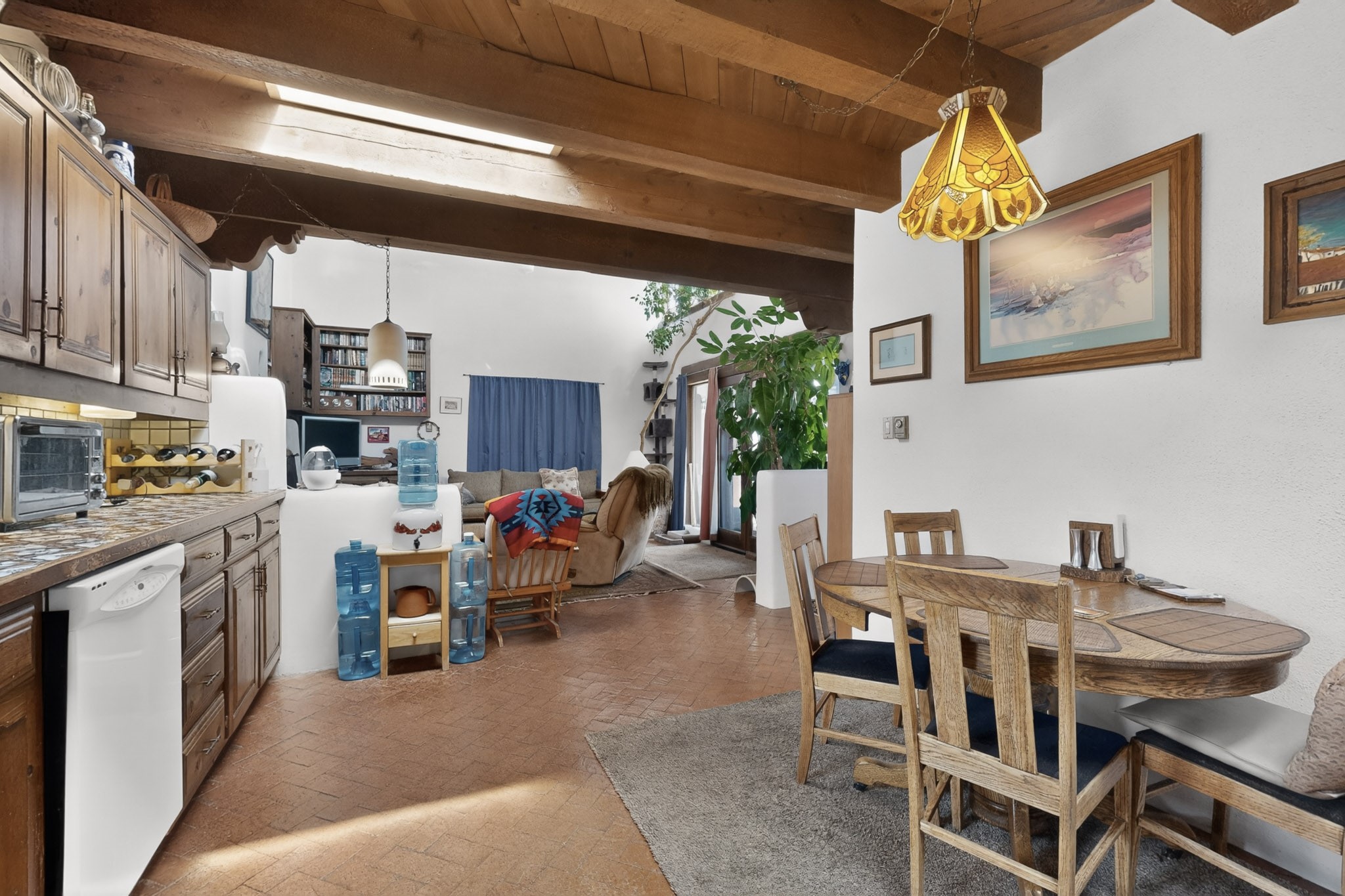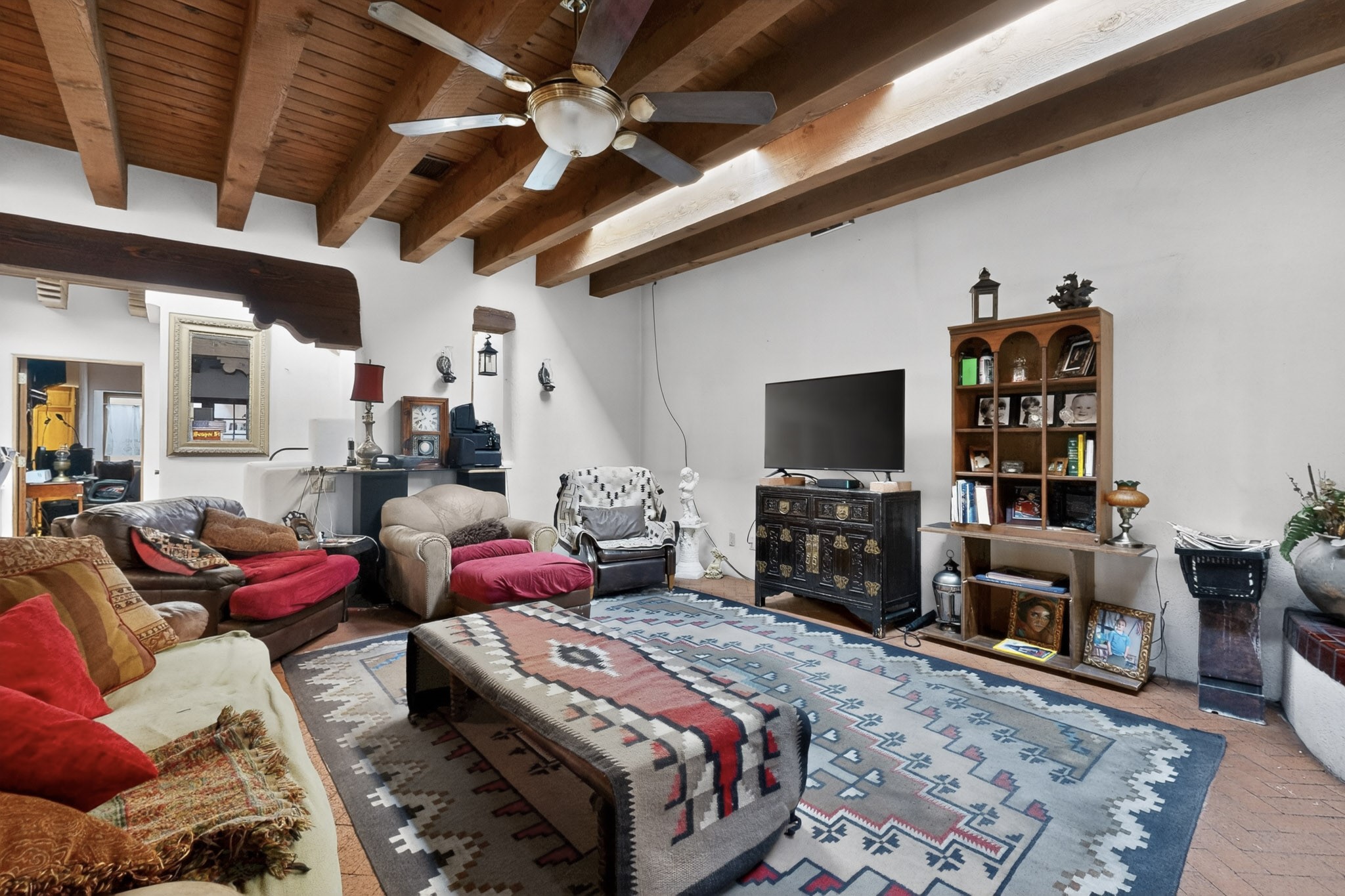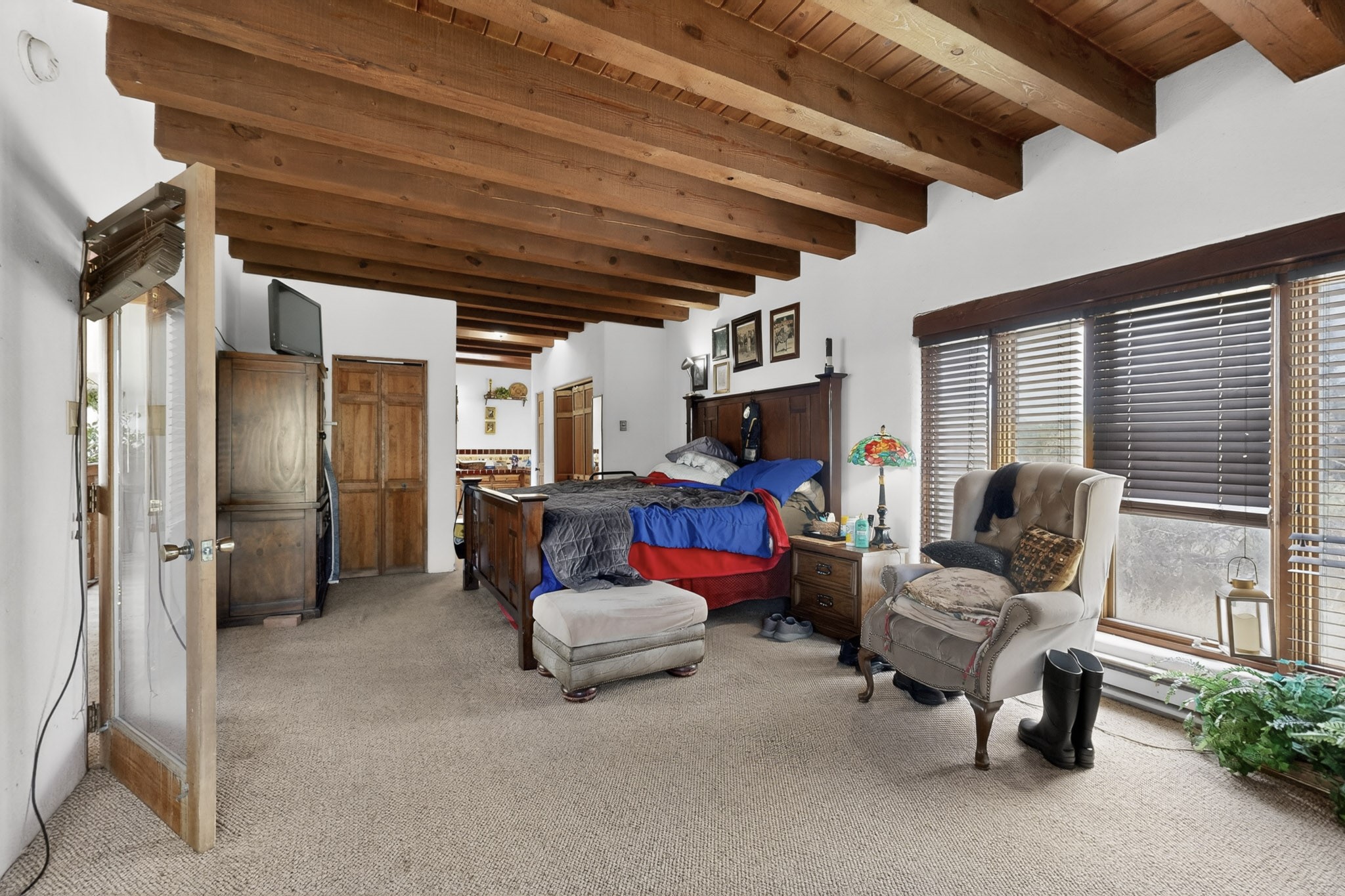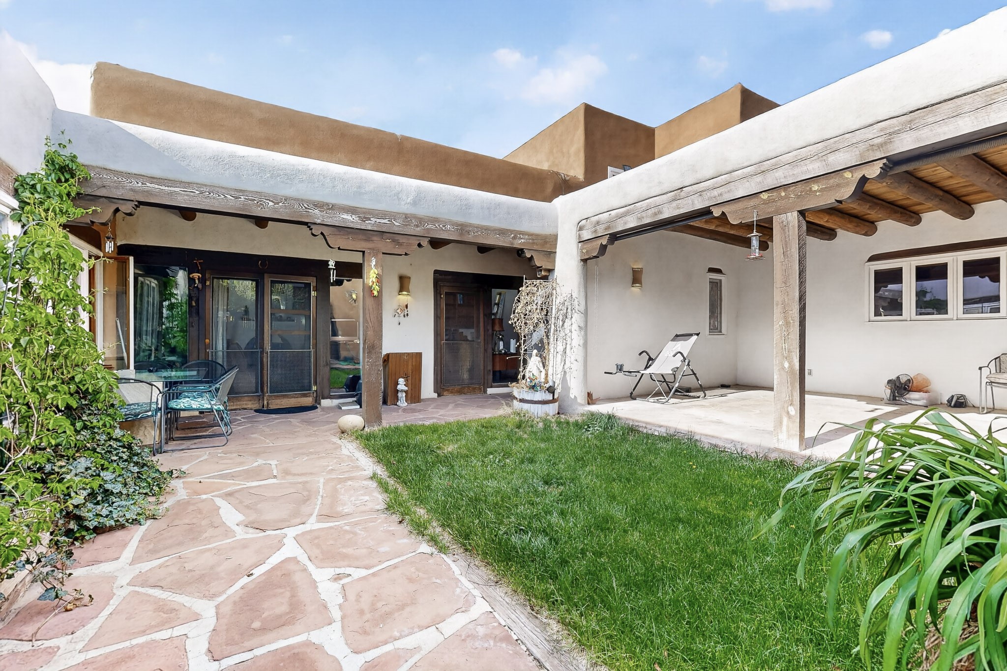 Bring your horses to this pinon and juniper covered Santa Fe County property close to town! The 10 acre parcel in Los Cerros Negros includes a main house, guest quarters, horse facility and is only 8 miles to the Santa Fe Plaza. The Southwest inspired house and guest quarters feature beautifully handcrafted wood throughout. The air conditioned main house has 3 bedrooms, 3 bathrooms and a sun room. The guest quarters has 2 bedrooms, 1 bathroom and an office. Your green thumb will be delighted with the large sun room in the main house where something can be blooming year round. The guest house could be a mother in law quarters or even an income producing property since it has its own entrance. There is abundant storage with many closets, a pantry, storage area off the covered portal and additional storage in the oversized well house.The horse barn situated away from the house includes a tack room, hay storage and 4 large stalls. Despite the country setting you are minutes away from Harry's Road House, Jambo Bobcat Bite, Cafe Fina and the Eldorado Supermarket. Just down the road is historical Santa Fe with its many dining options, art galleries and museums.