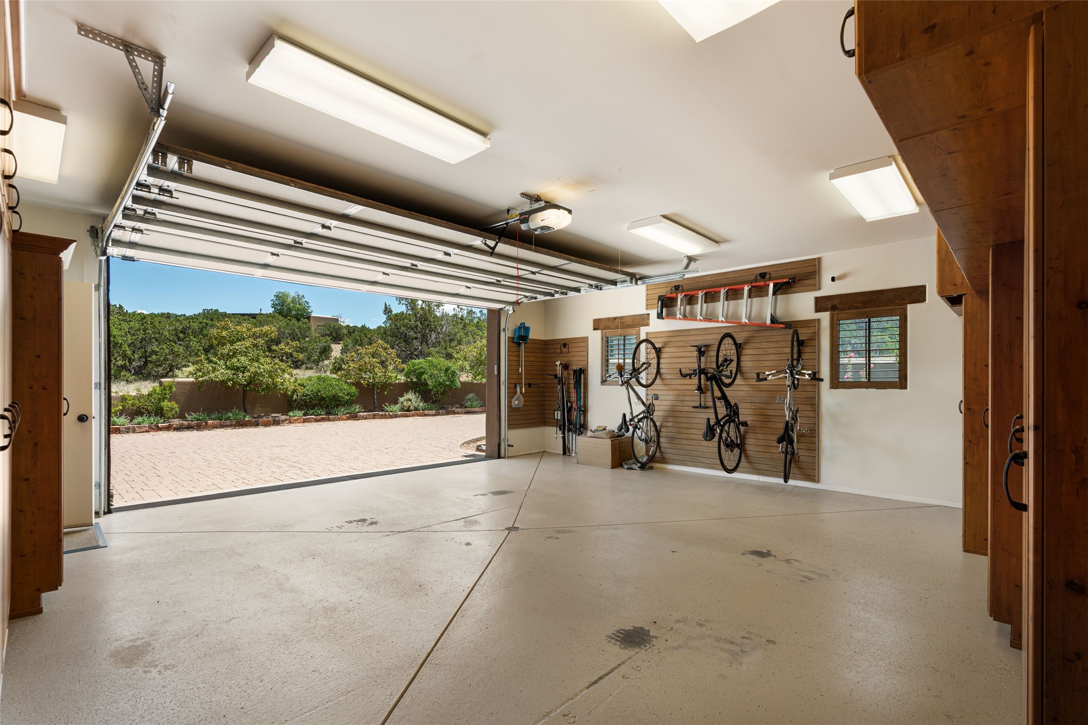 This home is the epitome of Refined Santa Fe Elegance, with 4 Bedrooms, 4.5 baths, 4 Fireplaces, No Steps and panoramic views of Sandia Mountain & the Fourth Fairway of the Sunset Golf Course, at the end of a cul-de-sac in Gated Las Campanas. An expansive hallway for artwork features 2 sets of French doors that open to the wrap-around portal for dining & relaxing which extends to the Living Room, also showcases the golf course view. The Gourmet Kitchen includes Viking appliances, an over-size island with prep sink, menu-planning desk & Butler's Pantry with wine cooler. The Main Bedroom suite offers a luxurious Spa Bath with large shower & whirlpool tub plus a walk-in closet worthy of a designer retail store. Bedroom Two is sequestered from the Main and has an en-suite bath. Bedroom Three with en-suite bath is adjacent to the Main and currently used as an office. Bedroom Four offers total privacy, as an attached Casita with en-suite bath & mini-kitchenette. The expansive brick Portal off the gallery hall includes a built-in BBQ & impressive fireplace, providing the perfect venue for entertaining, dining, relaxing or savoring the panoramic golf course & Sandia Mountain views. The Two-car Garage has eliminated garage clutter, with 29 feet of handsome cabinets plus a power wall to store bicycles, skis & other outdoor equipment. Come see why this 4-Bedroom home with Golf & Mountain views is the perfect embodiment of elegant Santa Fe resort living.