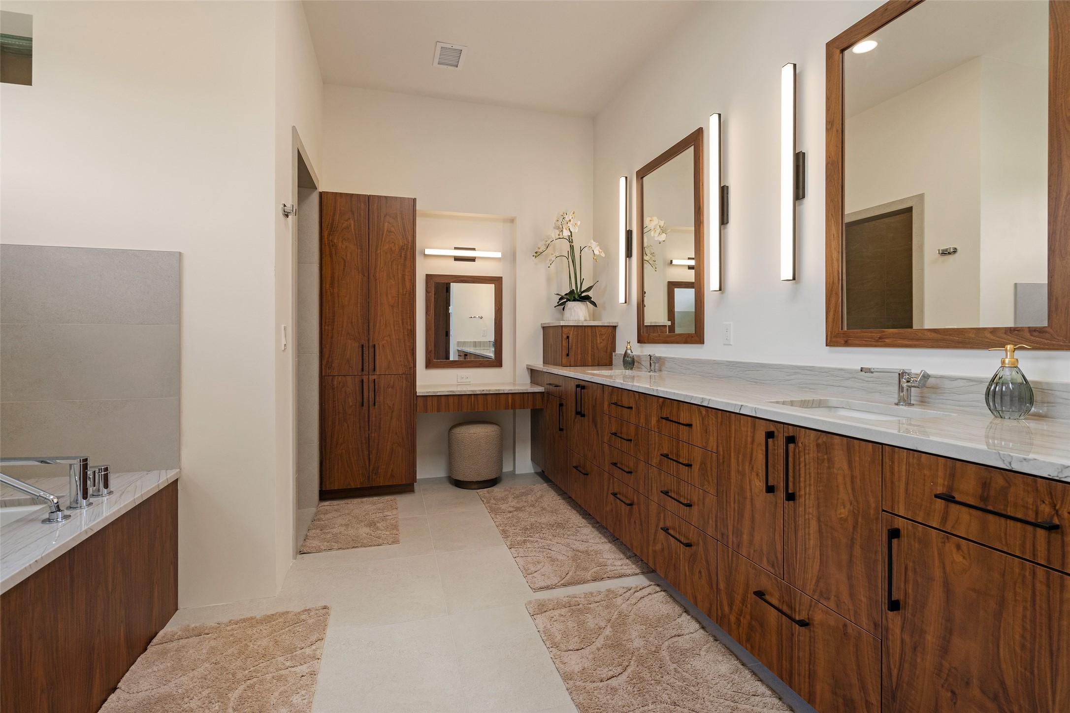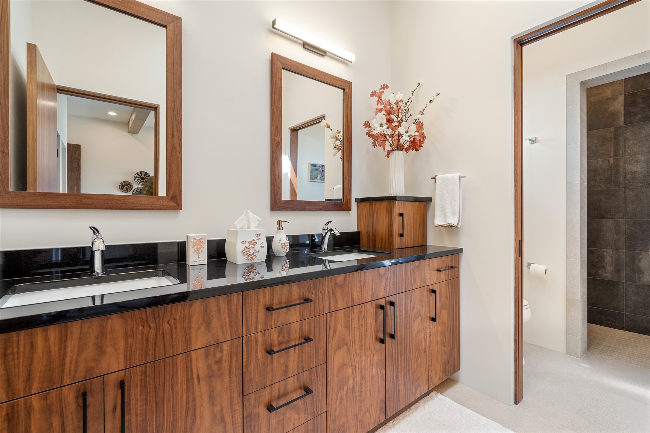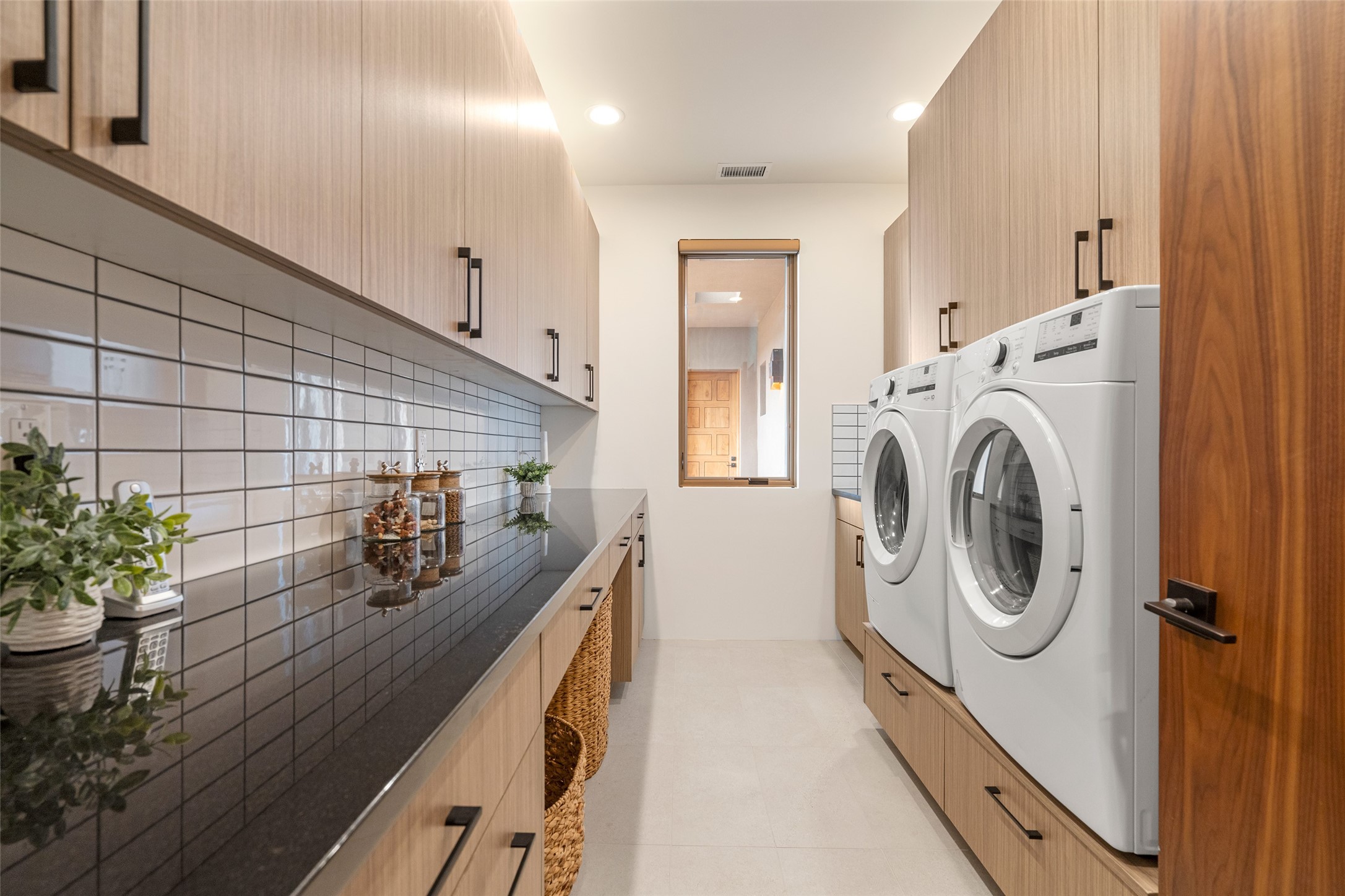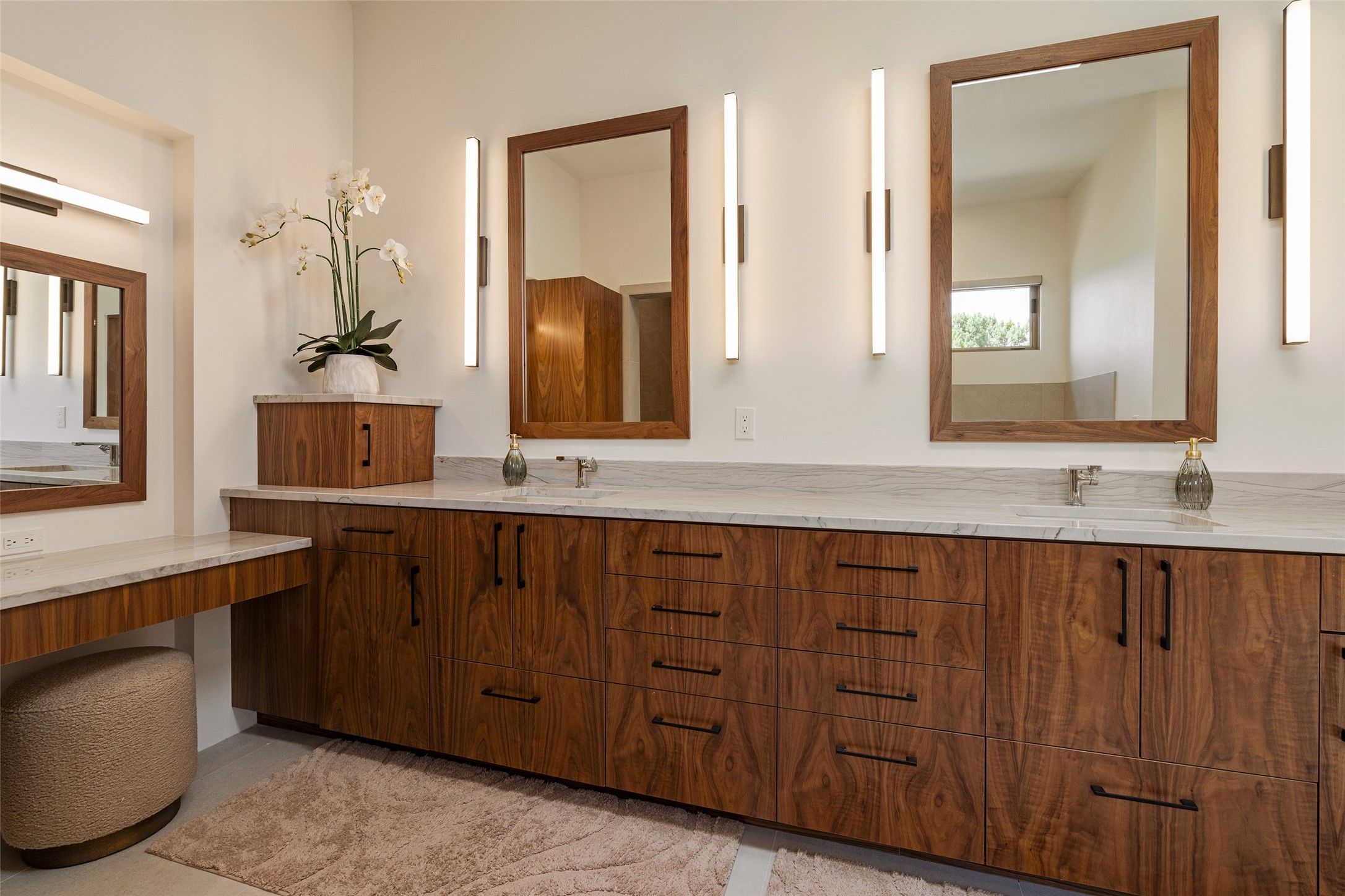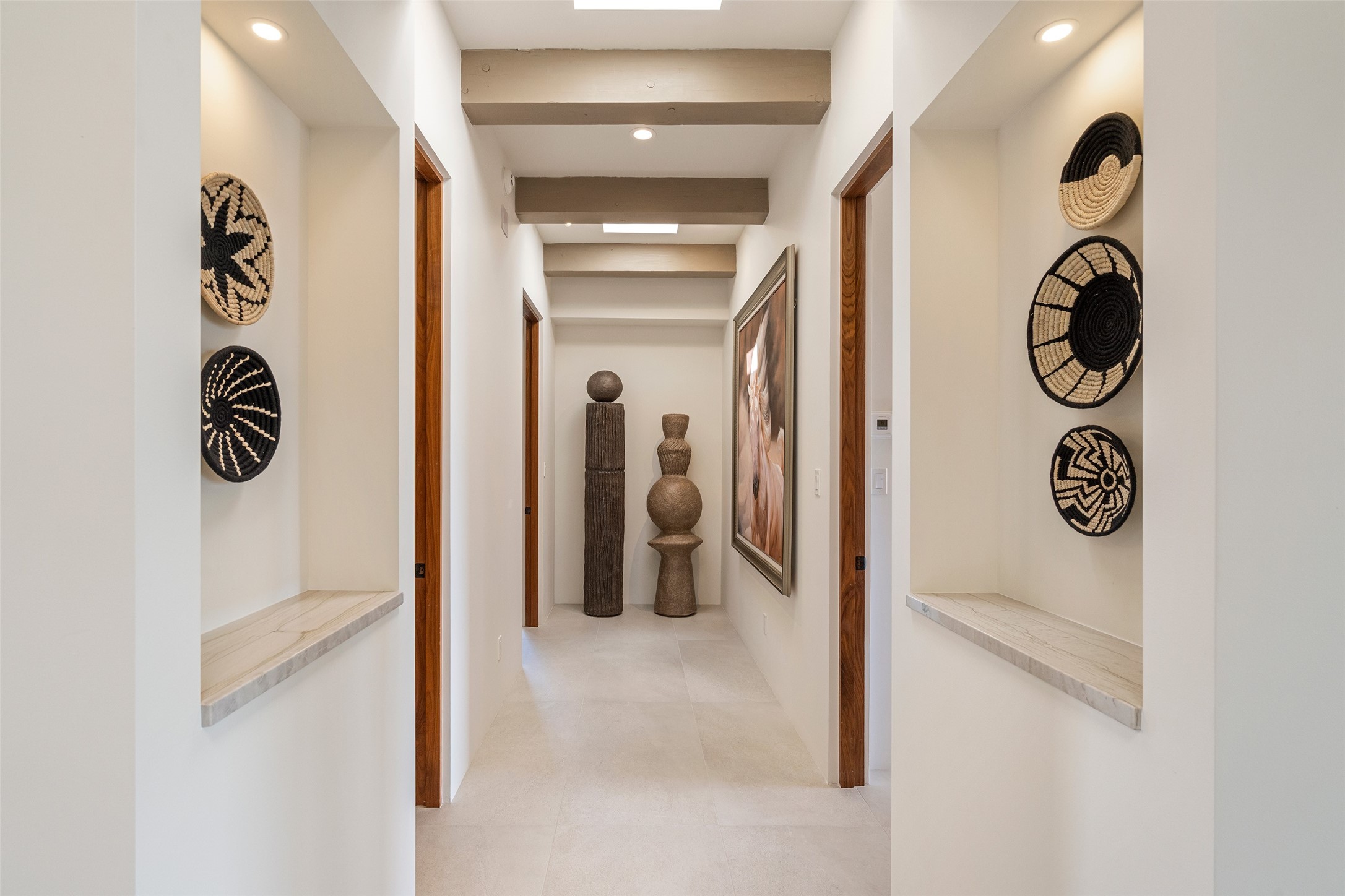 This nearly new soft contemporary home captures the essence of modern Southwest living. Set on 1.7 acres with unobstructed views of the Jemez, Sandia, and Sangre de Cristo mountains offering unforgettable sunsets and a seamless blend of indoor and outdoor spaces. Clean lines, soaring ceilings, three fireplaces, top of the line appointments, including Wolf dual ovens, and Sub-Zero refrigerator define the spacious open floor plan, making this the perfect dream home for the most discerning buyer. Built by award-winning builder Rick Driscoll, the residence offers an owner's retreat with fireplace, a second ensuite bedroom, and an attached casita with its own entrance and mini kitchen. A fourth room for media/office provides added flexibility. All rooms have their own private portals offering sweeping views. The oversized three-car garage includes an attached artist studio, a separate workshop area with new built-in cabinetry and a separate storage area. Modern systems recently installed to enhance everyday living include a water softening system, dual reverse osmosis systems, humidification system, motorized/retractable Hunter Douglas blinds, and a Sonos audio-visual system throughout the home. Updated landscaping and a newly paved brick driveway complete the exterior to welcome you to the home. The sale includes the washer and dryer, two refrigerators, and a separate freezer, making this extraordinary home ready to enjoy from day one. Private, thoughtfully designed, and surrounded by panoramic mountain views, it is a rare find in Northern New Mexico. Beautiful!!!
