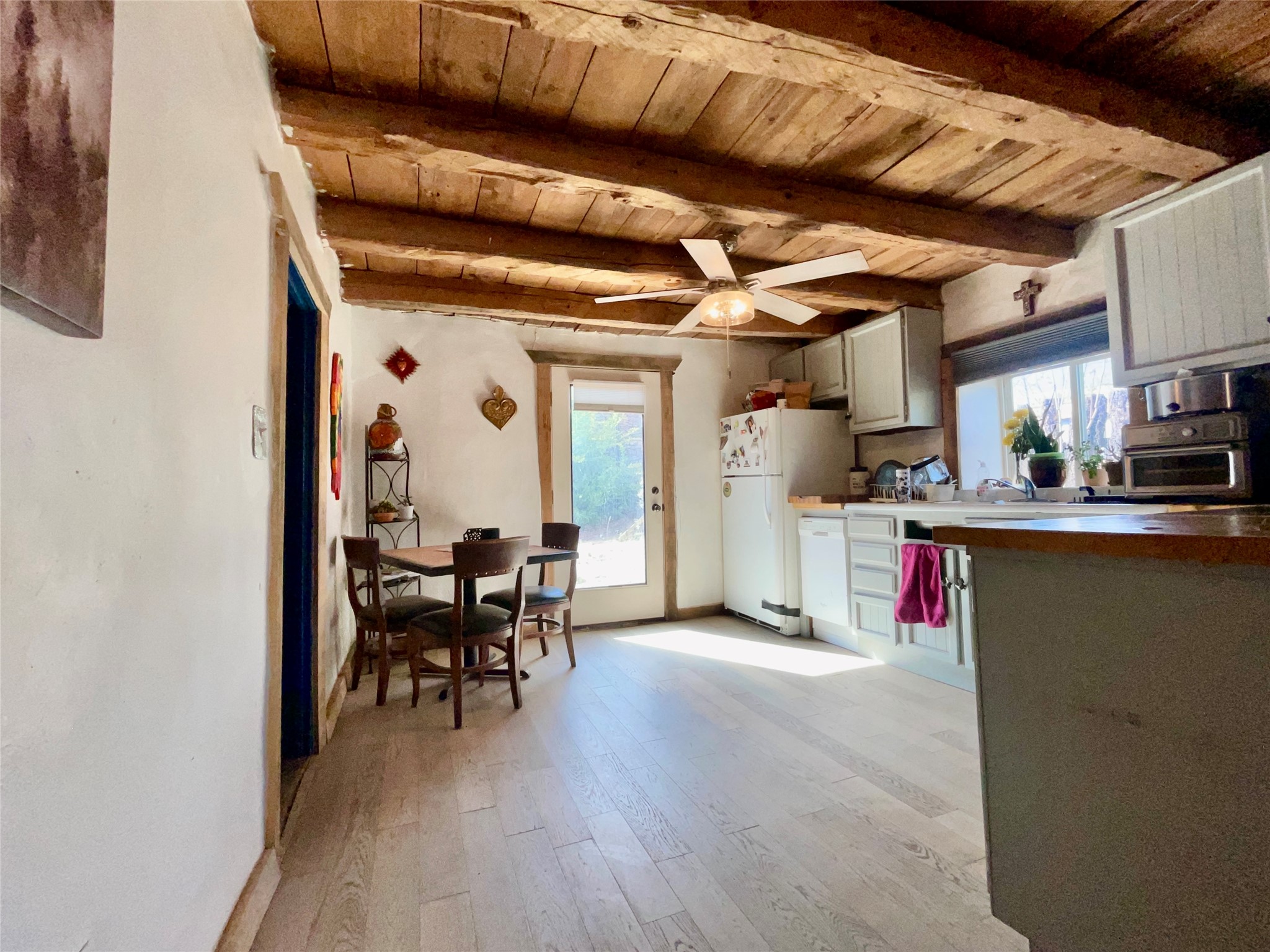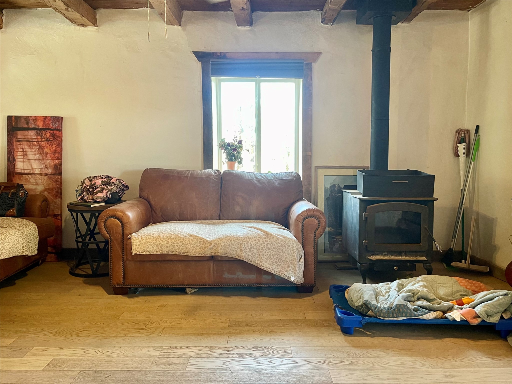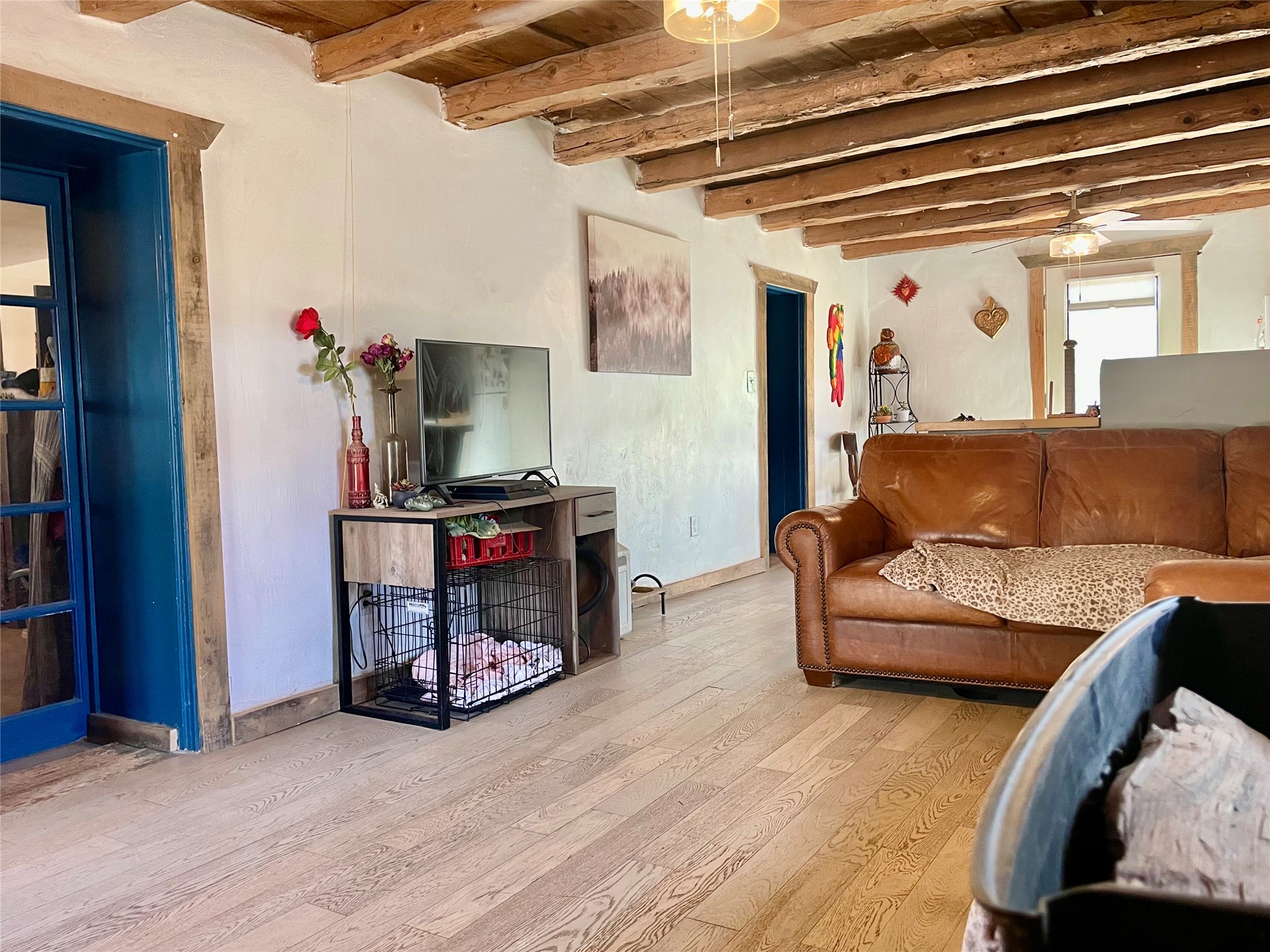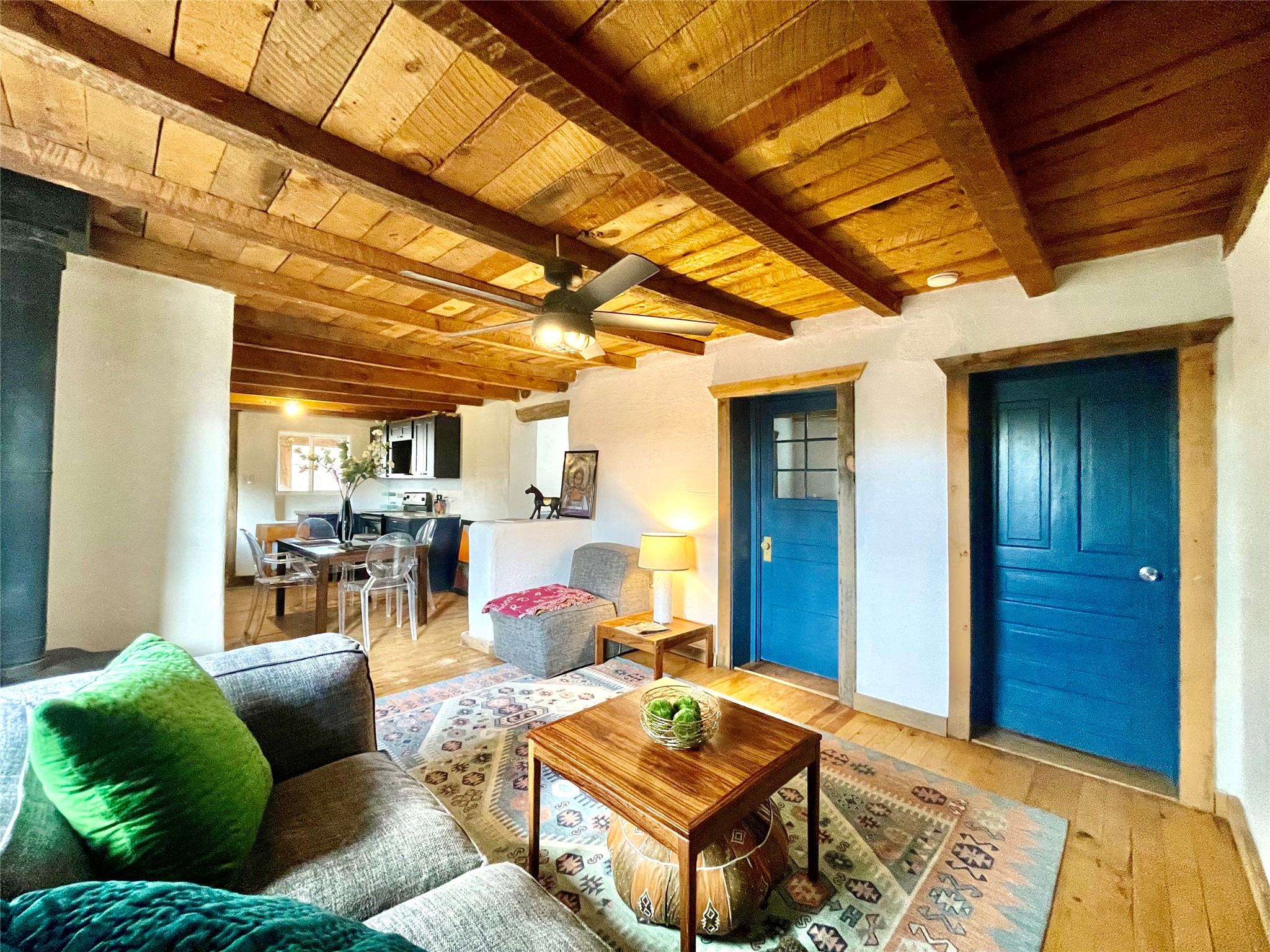 A charming compound: two homes, a commercial building we call the Sala, and lots of parking space in the village of Ribera provides the perfect live/work opportunity. Live in one home and rent out the other while you operate an art gallery or retail space where the Ribera Farmer's Market has been located. Both homes have that Southwestern Style with vigas, and both have been recently updated with new electrical, new mini-splits, and so much more. The first home is an adobe with 3 bedrooms, living room, mini splits, wood stove, granite counters, eat in kitchen, laundry room, a full bathroom, with two covered portal porches, and is fully fenced. It shares electric meter with the commercial building. It is vacant and ready to move in and has rented for $1,500 per month in the past. The second home has 30 inch rock walls, 2 bedrooms, 1 bathroom, a covered portal porch, wood stove, and is fully fenced. It is currently rented for $1,100 per month, and it has its own electric meter. The Sala commercial building is a large adobe and rock building with high ceilings and gorgeous vigas. There is plenty of parking all around, with views of the mesa and close to I-25 for a 20 minute drive to Las Vegas NM or 40 minutes to Santa Fe. Villanueva State Park is just down the road with camping and hiking. This beautiful New Mexico style compound has income and space to live and work in a beautiful environment! Be sure to watch both video tours in the video links.