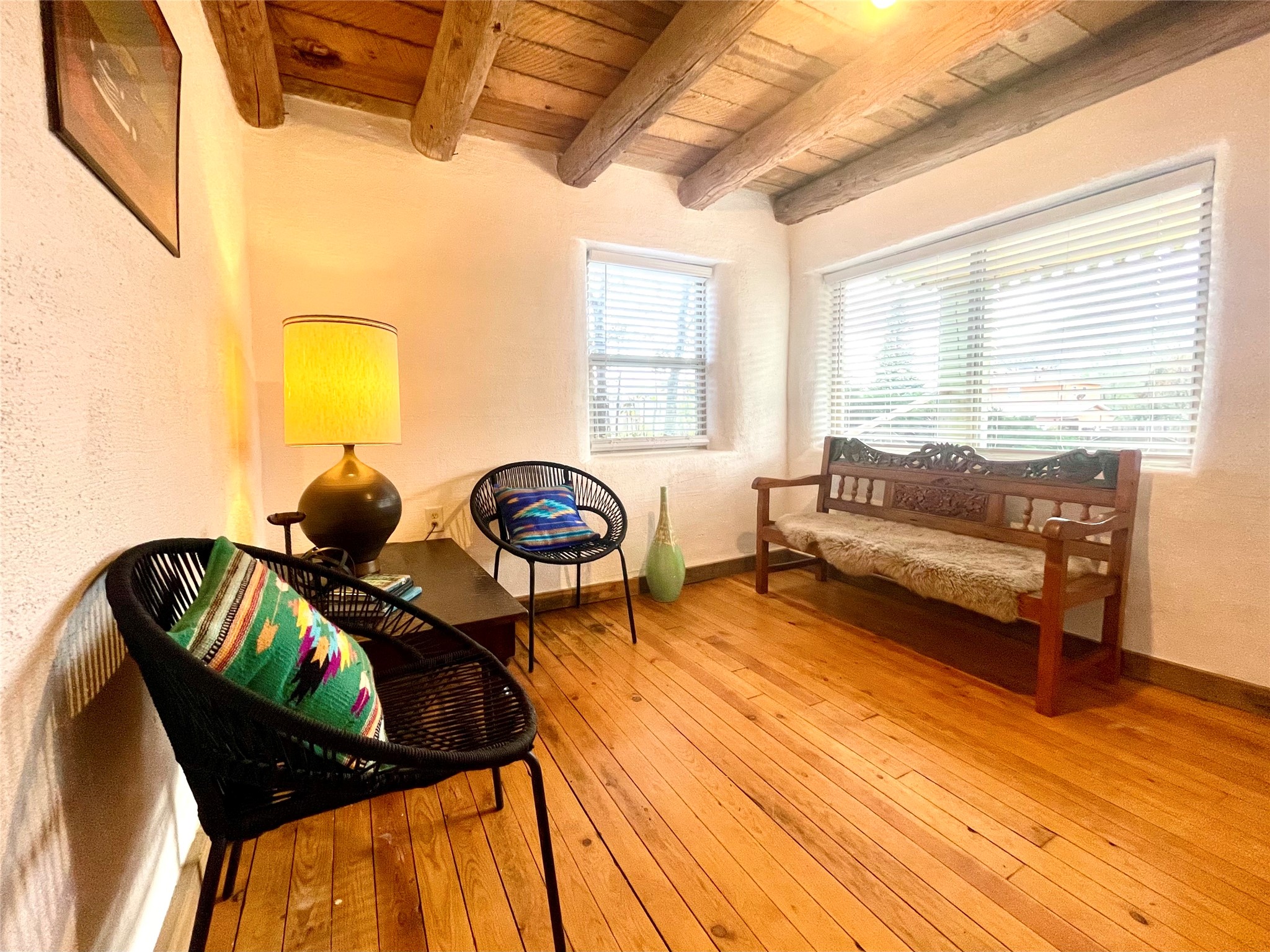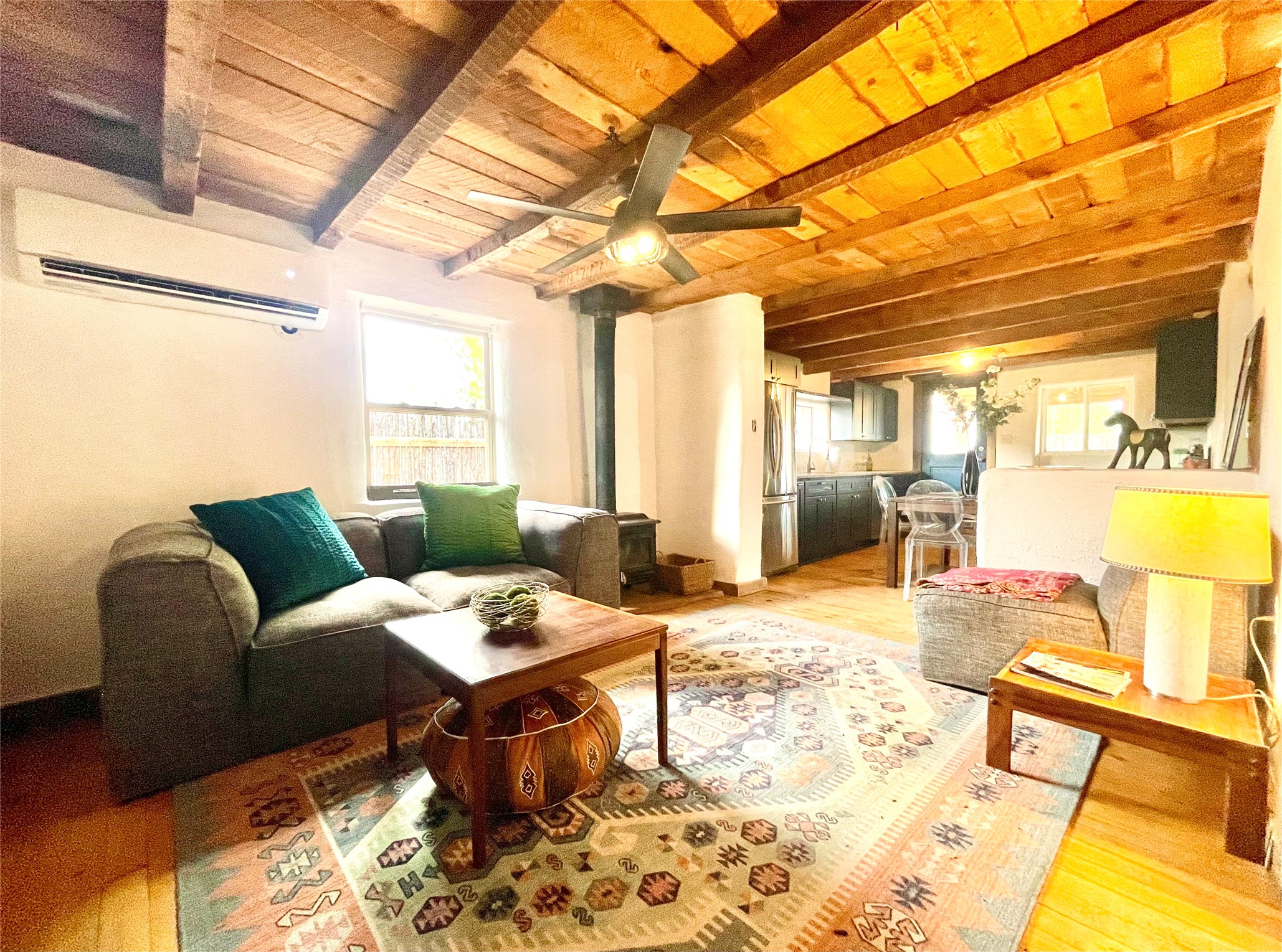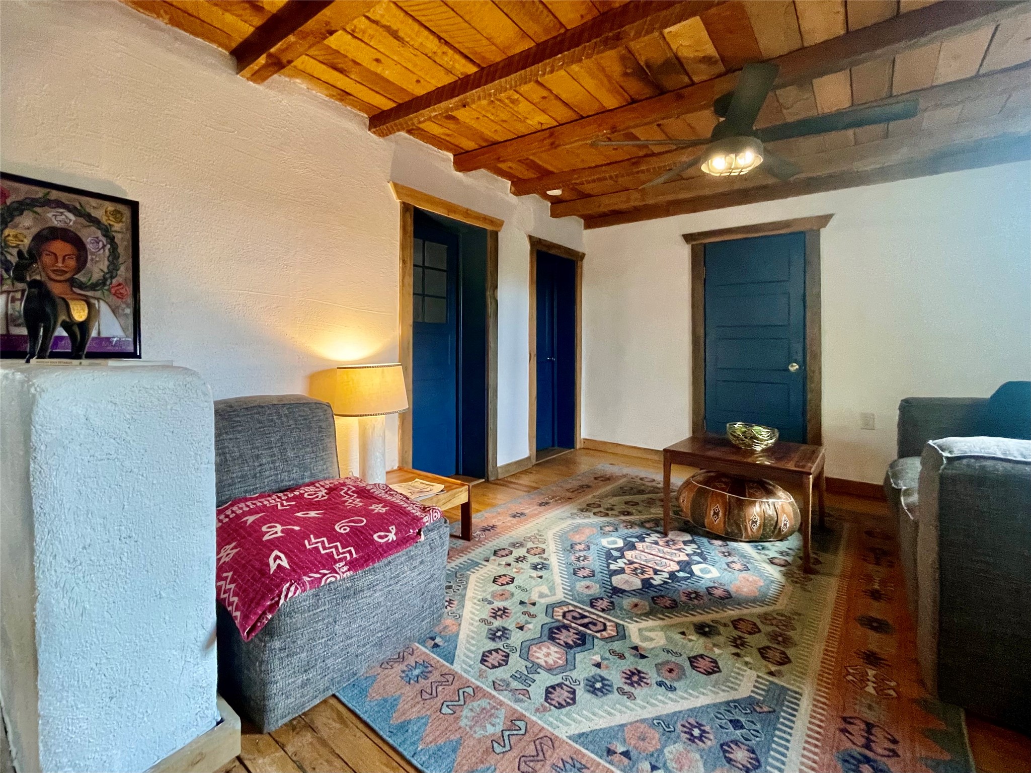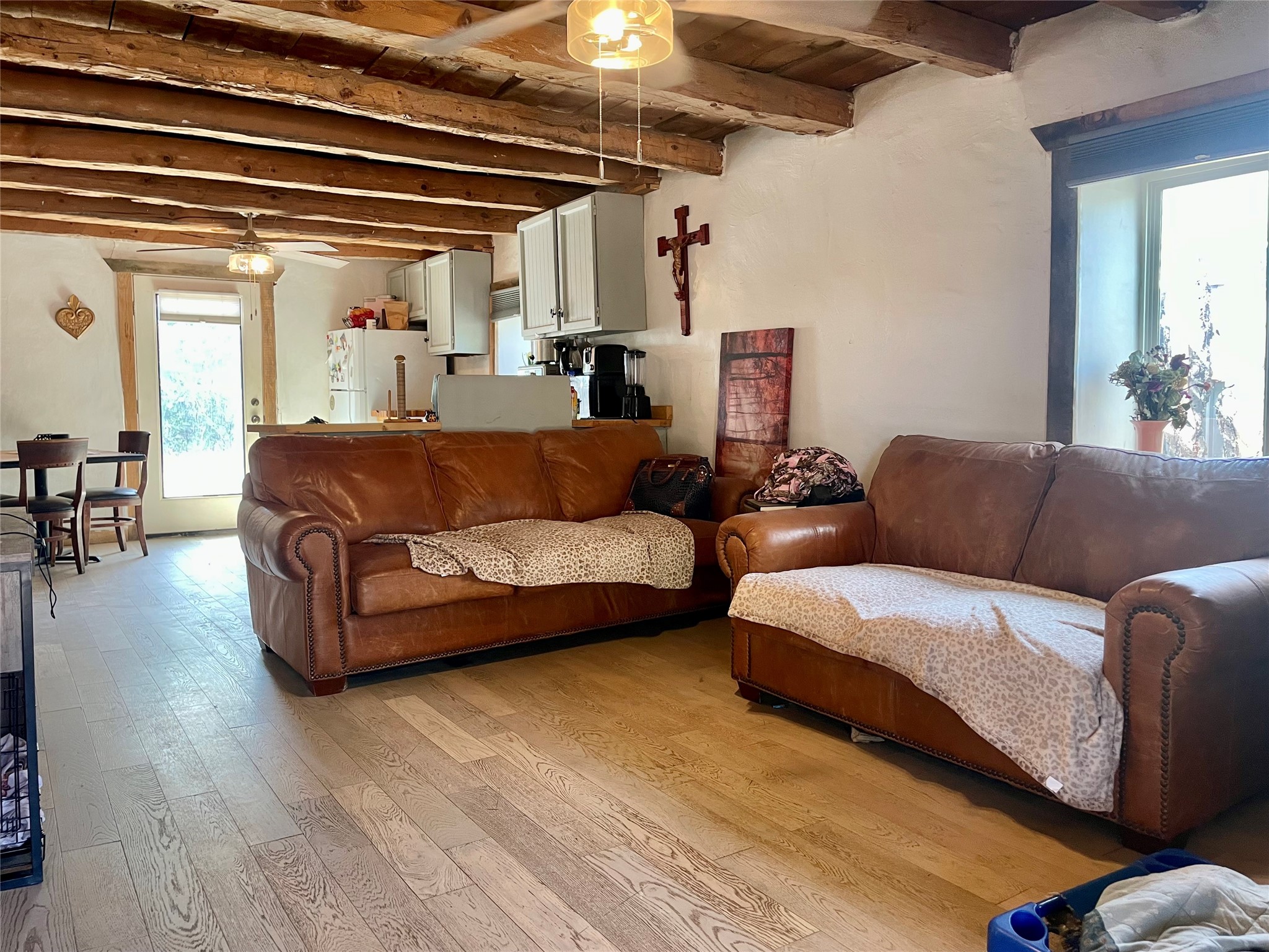 A charming compound: two homes, a commercial building we call the Sala, and lots of parking space in the village of Ribera provides the perfect live/work opportunity. Live in one home and rent out the other while you operate an art gallery or retail space where the Ribera Farmer's Market has been located. Both homes have that Southwestern Style with vigas, and both have been recently updated with new electrical, new mini-splits, and so much more. The first home is an adobe with 3 bedrooms, living room, mini splits, wood stove, granite counters, eat in kitchen, laundry room, a full bathroom, with two covered portal porches, and is fully fenced. It shares electric meter with the commercial building. It is vacant and ready to move in and has rented for $1,500 per month in the past. The second home has 30 inch rock walls, 2 bedrooms, 1 bathroom, a covered portal porch, wood stove, and is fully fenced. It is currently rented for $1,100 per month, and it has its own electric meter. The Sala commercial building is a large adobe and rock building with high ceilings and gorgeous vigas. There is plenty of parking all around, with views of the mesa and close to I-25 for a 20 minute drive to Las Vegas NM or 40 minutes to Santa Fe. Villanueva State Park is just down the road with camping and hiking. This beautiful New Mexico style compound has income and space to live and work in a beautiful environment! Be sure to watch both video tours in the video links.