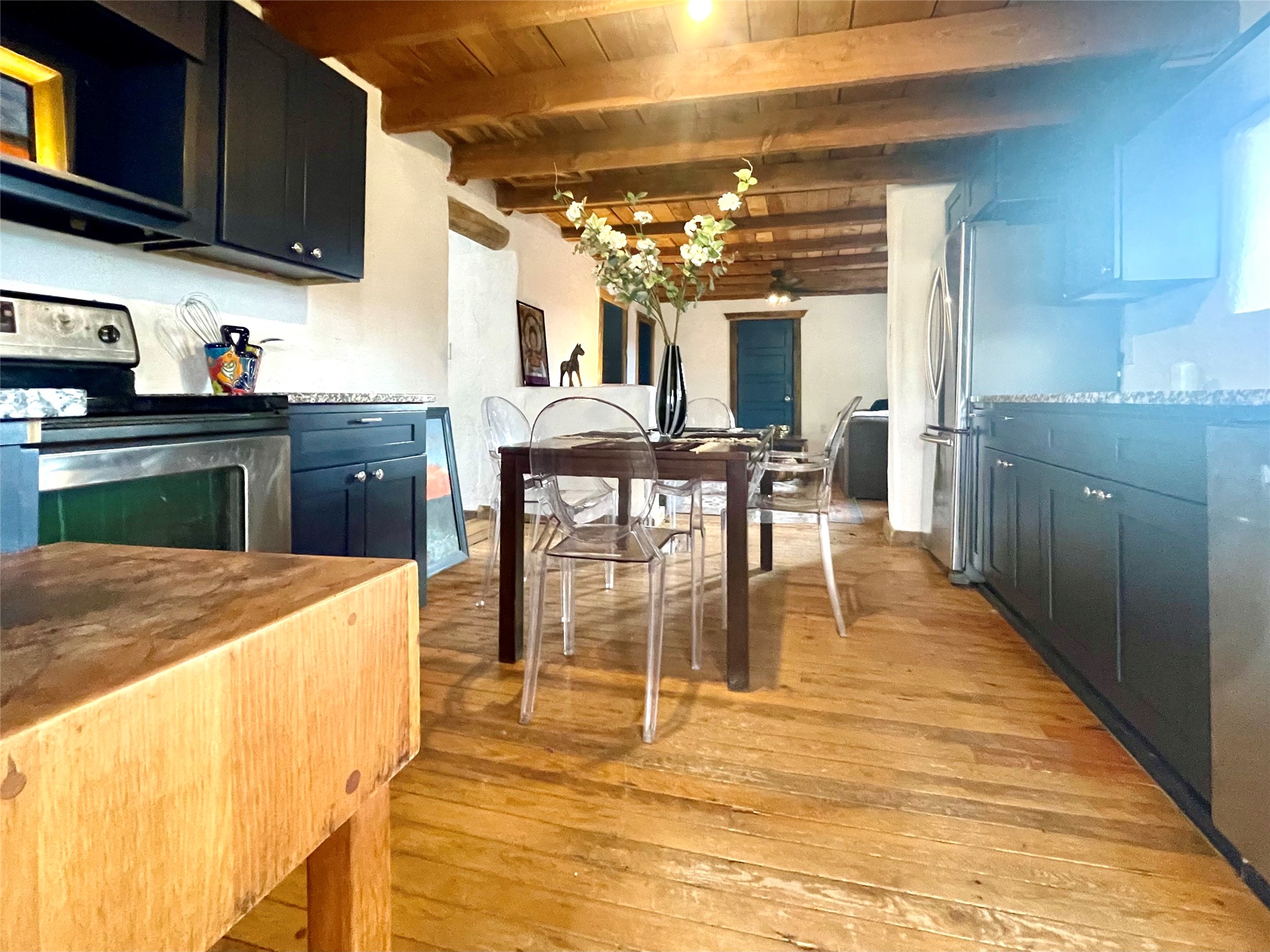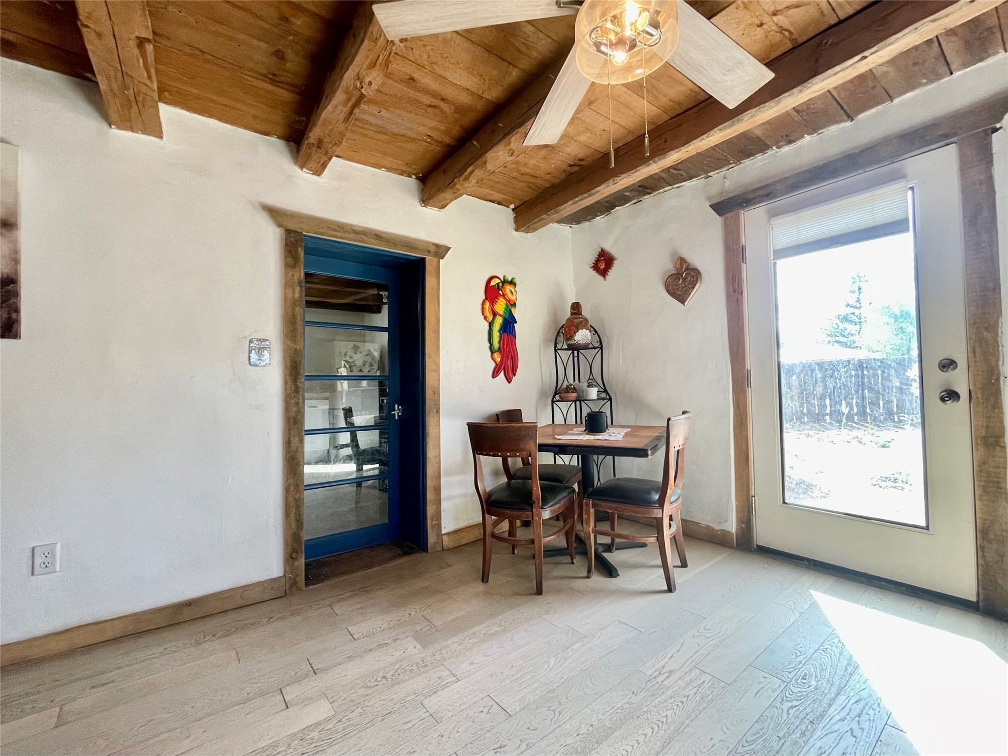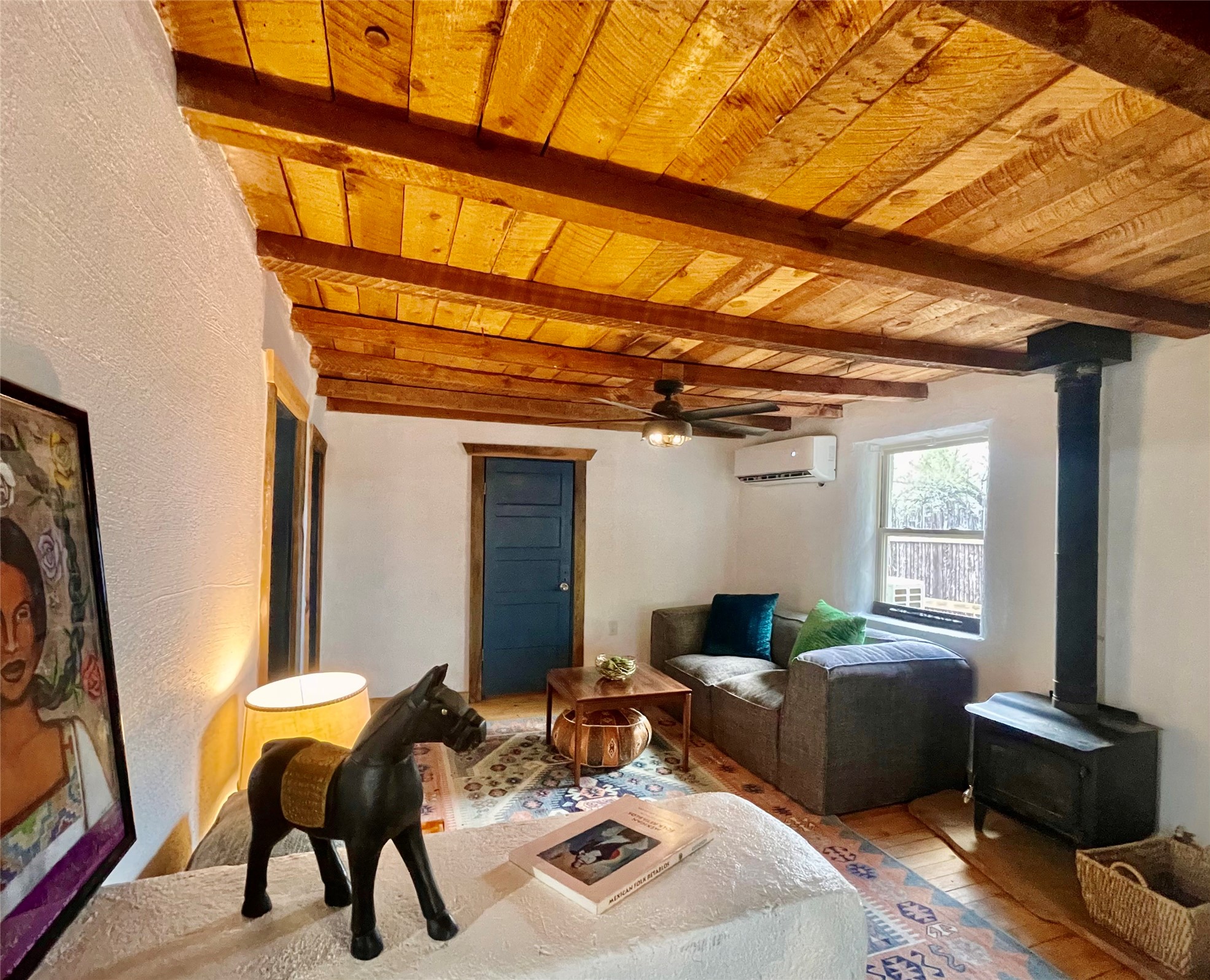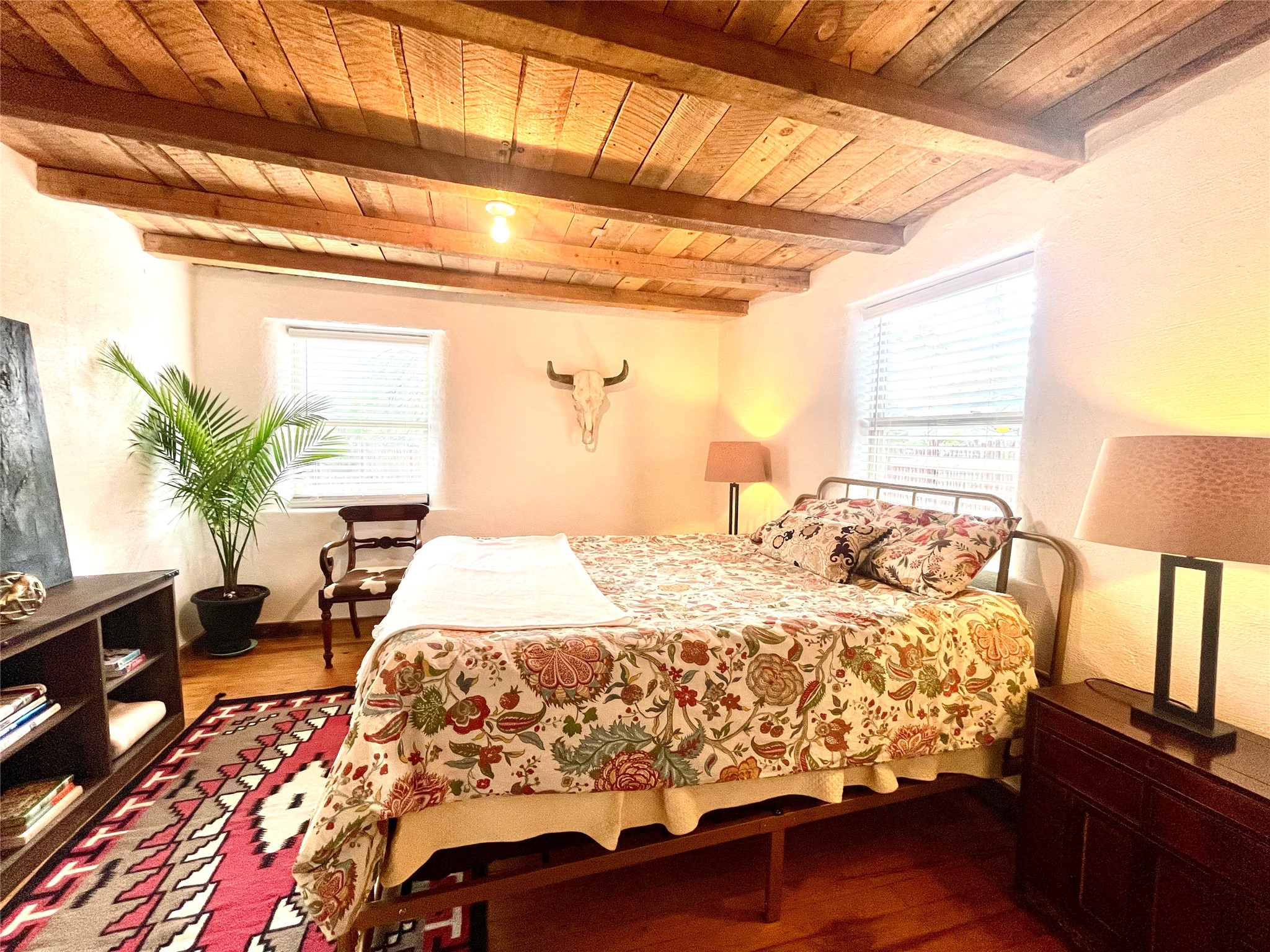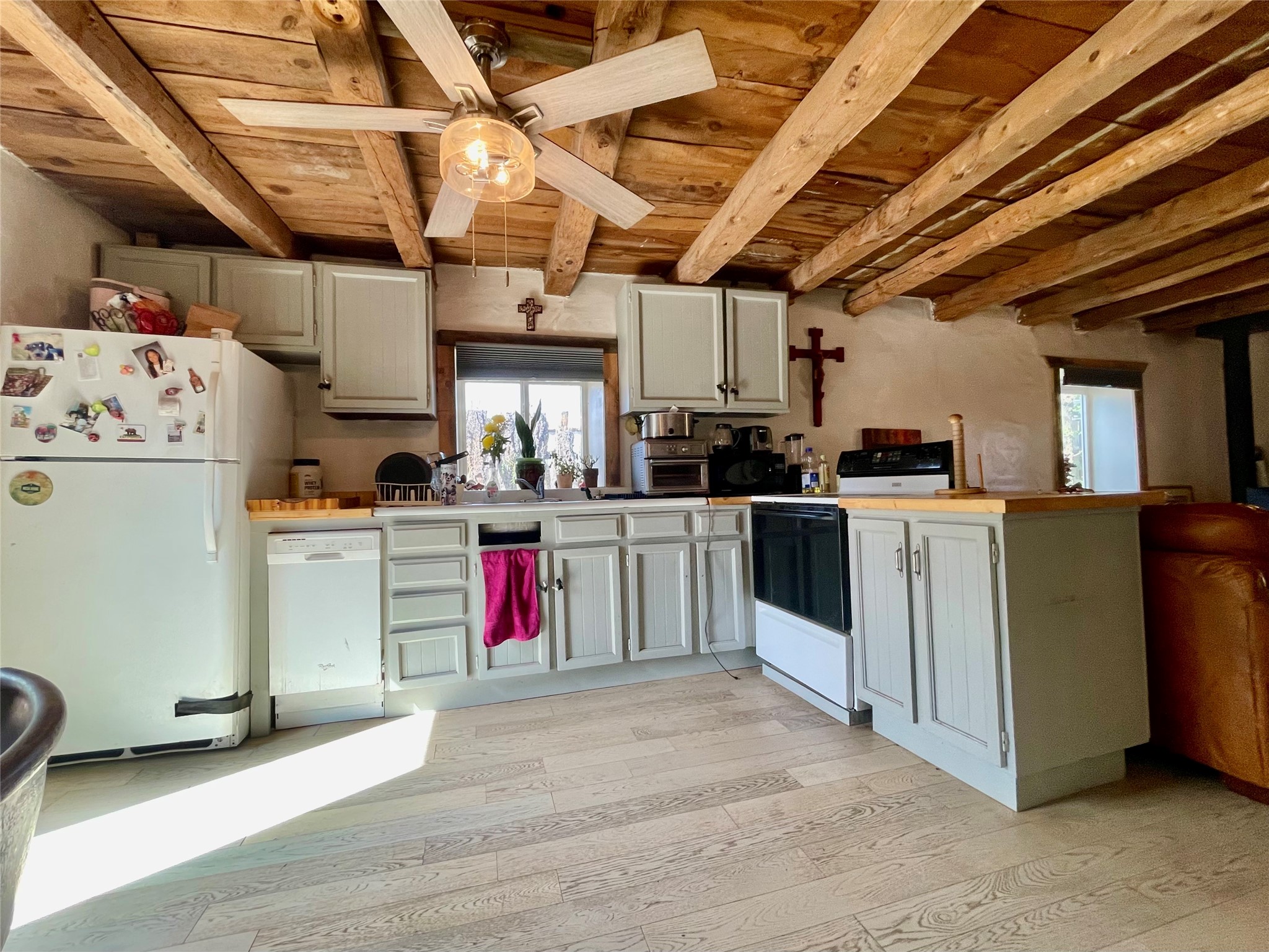 A charming compound: two homes, a commercial building we call the Sala, and lots of parking space in the village of Ribera provides the perfect live/work opportunity. Live in one home and rent out the other while you operate an art gallery or retail space where the Ribera Farmer's Market has been located. Both homes have that Southwestern Style with vigas, and both have been recently updated with new electrical, new mini-splits, and so much more. The first home is an adobe with 3 bedrooms, living room, mini splits, wood stove, granite counters, eat in kitchen, laundry room, a full bathroom, with two covered portal porches, and is fully fenced. It shares electric meter with the commercial building. It is vacant and ready to move in and has rented for $1,500 per month in the past. The second home has 30 inch rock walls, 2 bedrooms, 1 bathroom, a covered portal porch, wood stove, and is fully fenced. It is currently rented for $1,100 per month, and it has its own electric meter. The Sala commercial building is a large adobe and rock building with high ceilings and gorgeous vigas. There is plenty of parking all around, with views of the mesa and close to I-25 for a 20 minute drive to Las Vegas NM or 40 minutes to Santa Fe. Villanueva State Park is just down the road with camping and hiking. This beautiful New Mexico style compound has income and space to live and work in a beautiful environment! Be sure to watch both video tours in the video links.