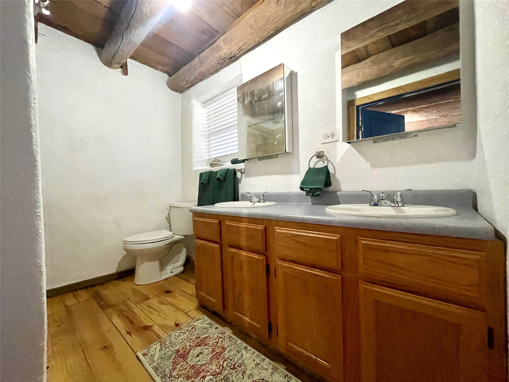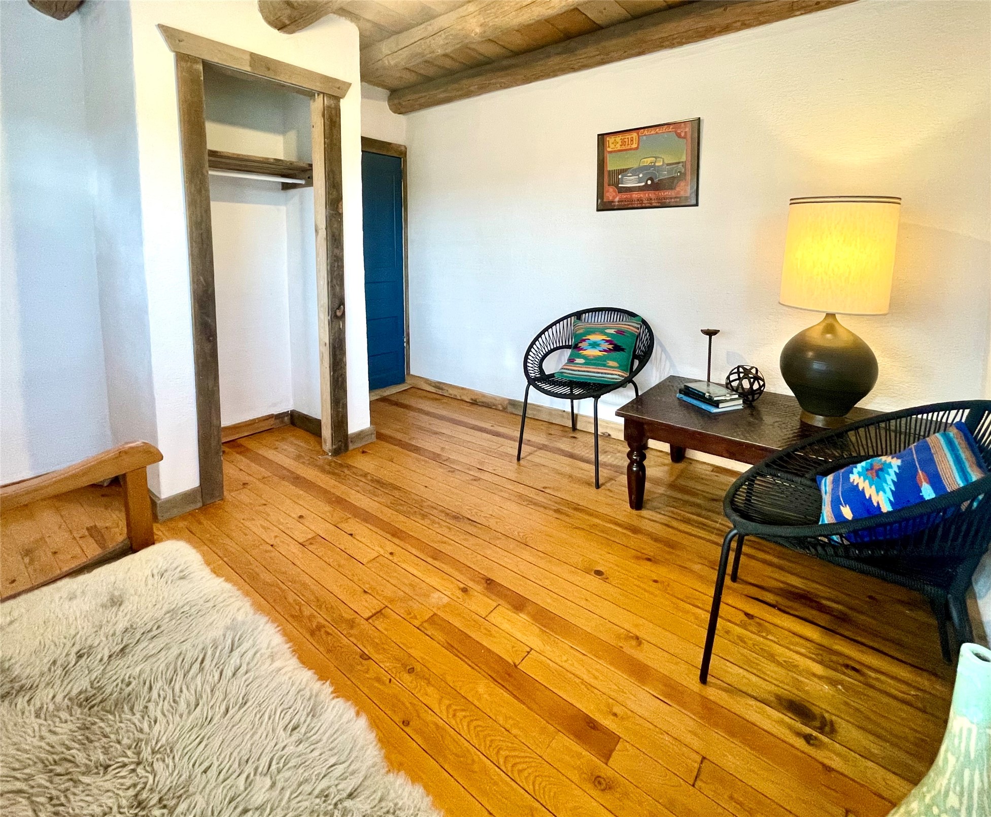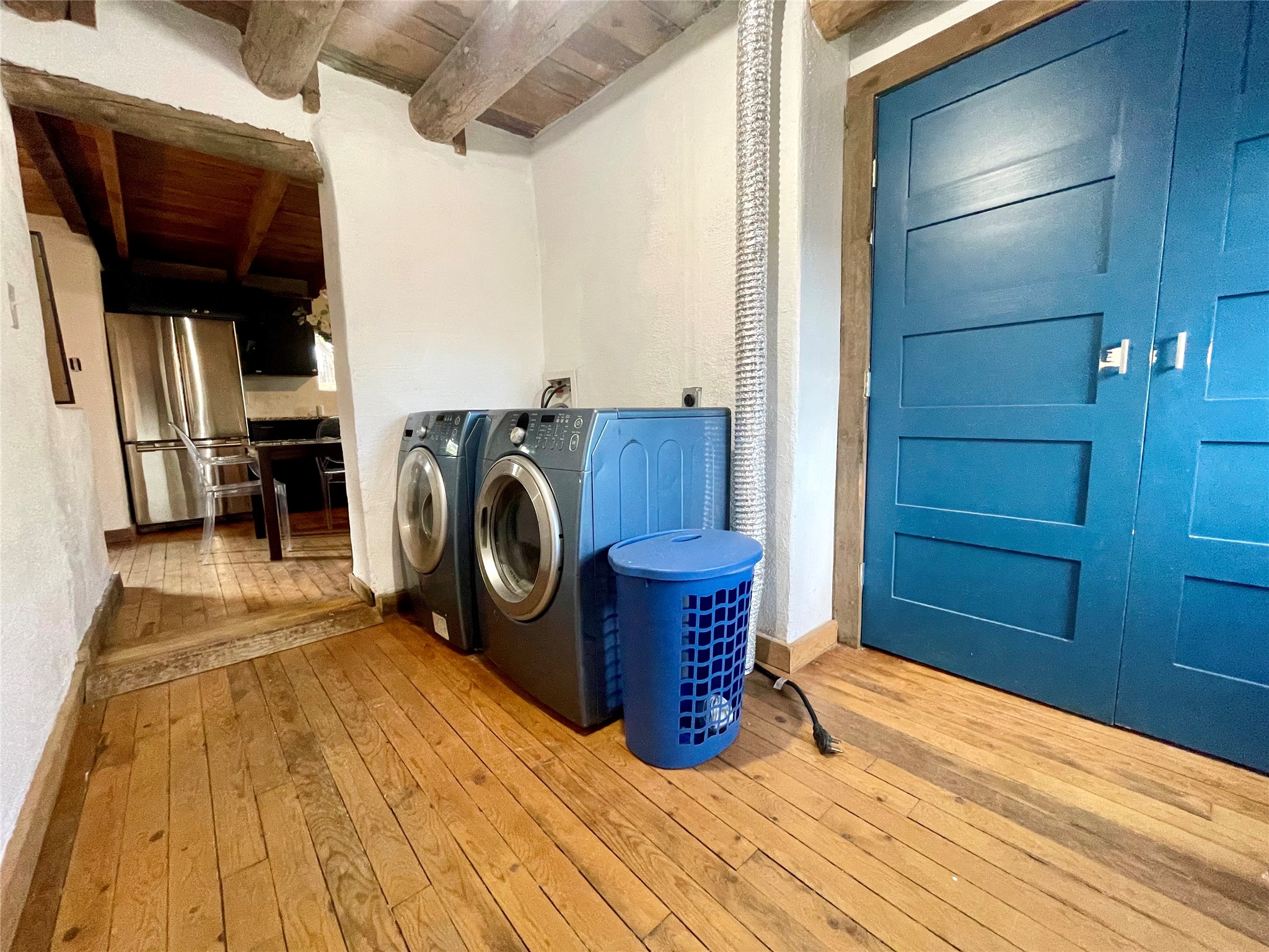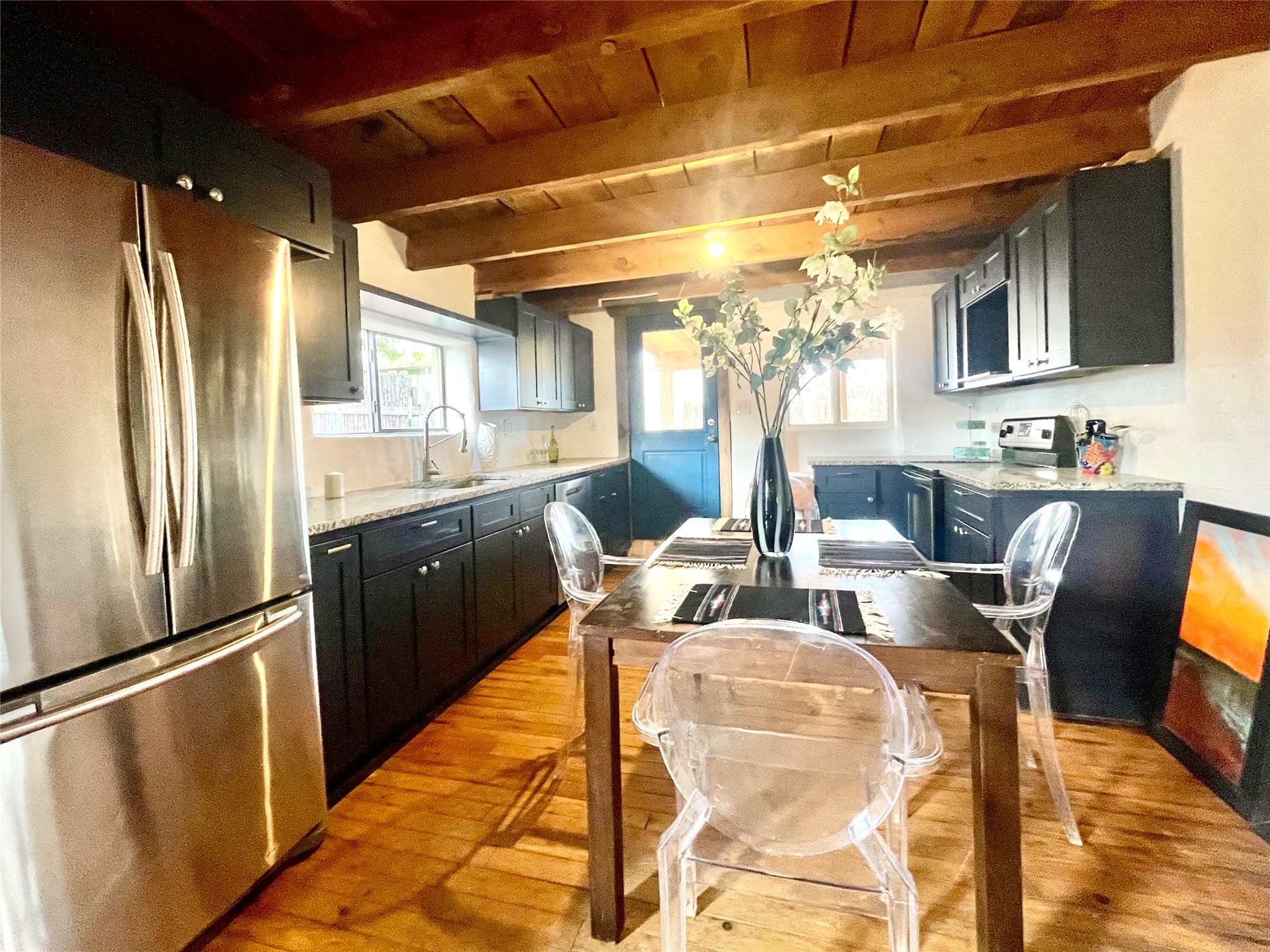 A charming compound: two homes, a commercial building we call the Sala, and lots of parking space in the village of Ribera provides the perfect live/work opportunity. Live in one home and rent out the other while you operate an art gallery or retail space where the Ribera Farmer's Market has been located. Both homes have that Southwestern Style with vigas, and both have been recently updated with new electrical, new mini-splits, and so much more. The first home is an adobe with 3 bedrooms, living room, mini splits, wood stove, granite counters, eat in kitchen, laundry room, a full bathroom, with two covered portal porches, and is fully fenced. It shares electric meter with the commercial building. It is vacant and ready to move in and has rented for $1,500 per month in the past. The second home has 30 inch rock walls, 2 bedrooms, 1 bathroom, a covered portal porch, wood stove, and is fully fenced. It is currently rented for $1,100 per month, and it has its own electric meter. The Sala commercial building is a large adobe and rock building with high ceilings and gorgeous vigas. There is plenty of parking all around, with views of the mesa and close to I-25 for a 20 minute drive to Las Vegas NM or 40 minutes to Santa Fe. Villanueva State Park is just down the road with camping and hiking. This beautiful New Mexico style compound has income and space to live and work in a beautiful environment! Be sure to watch both video tours in the video links.