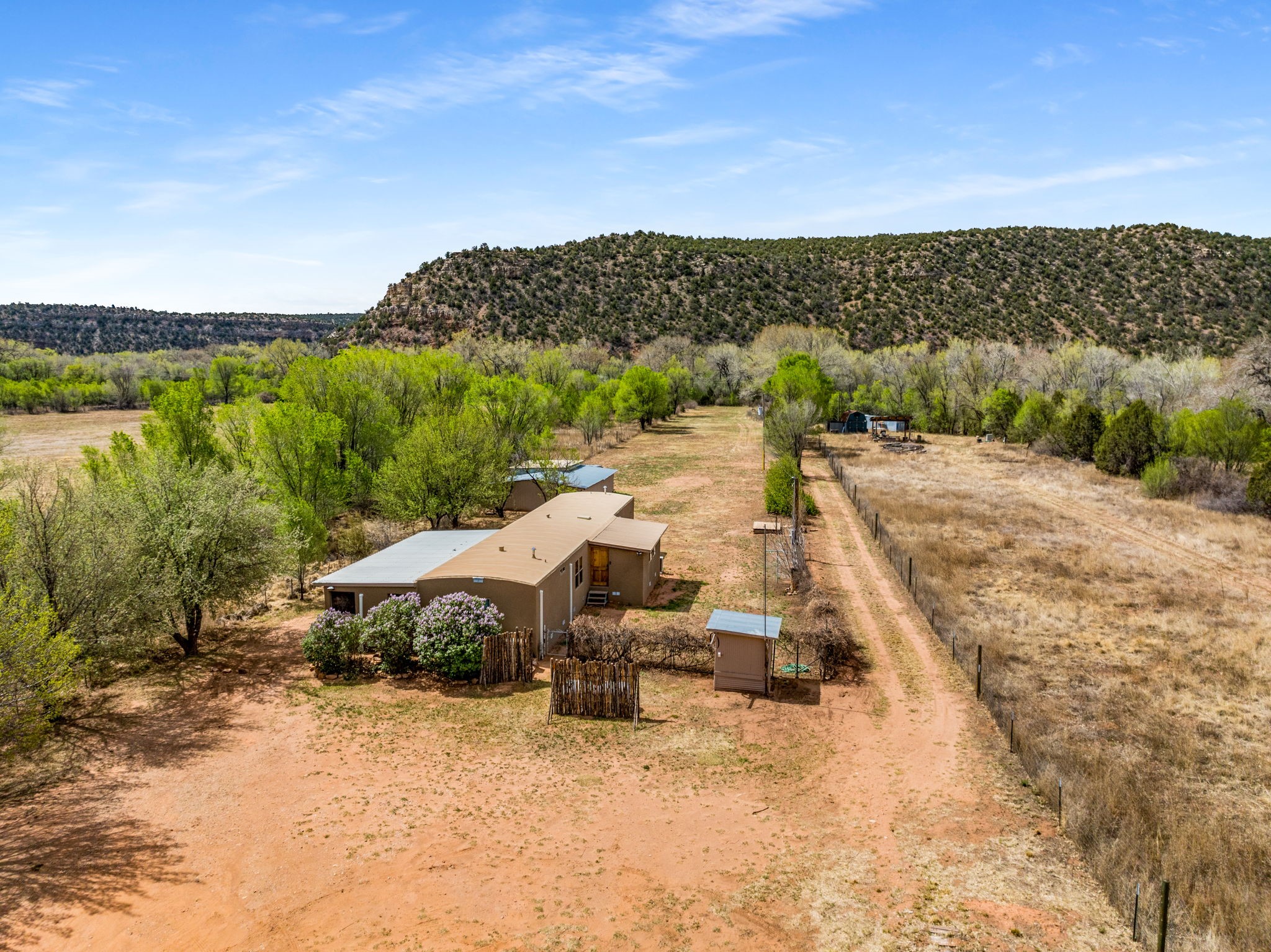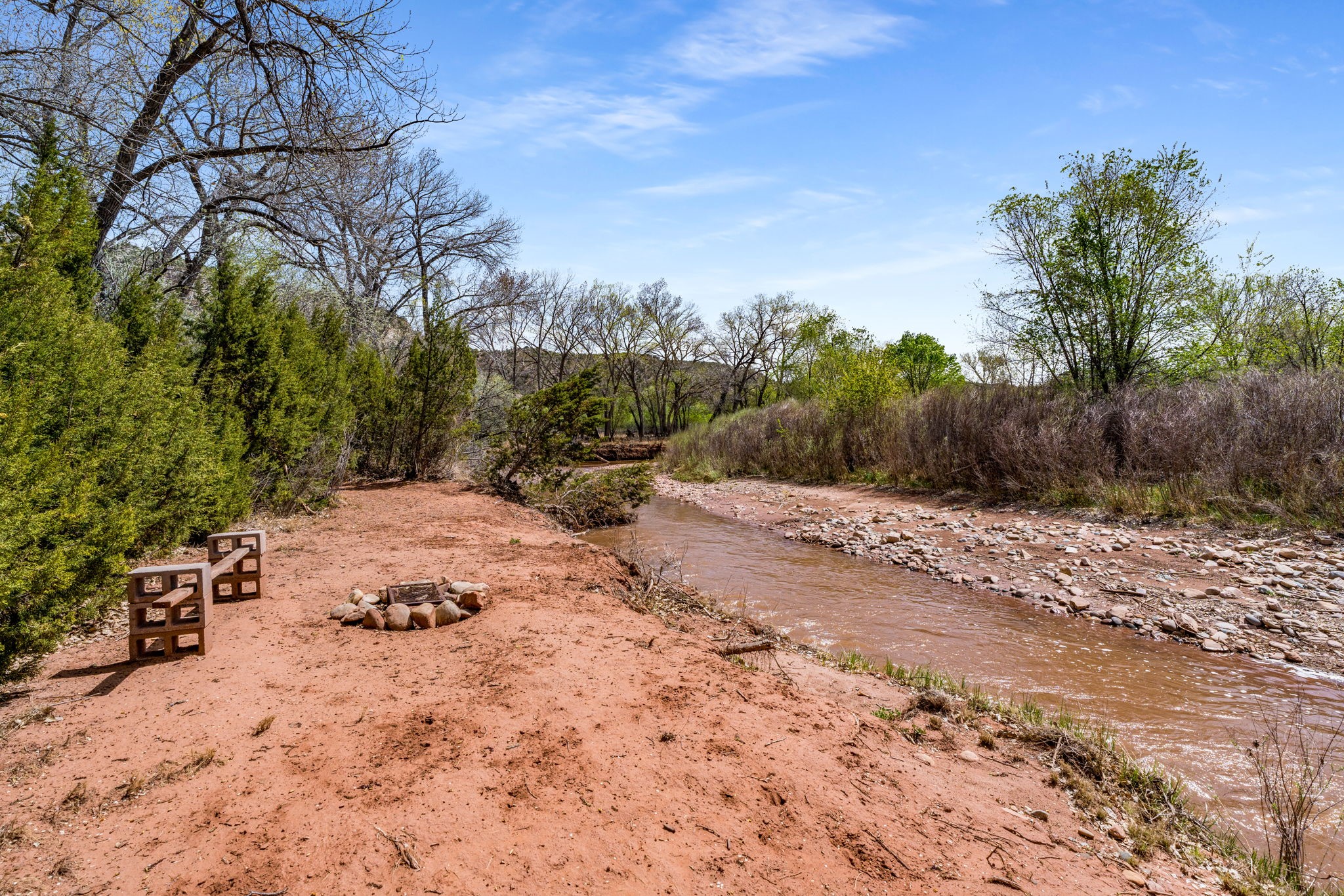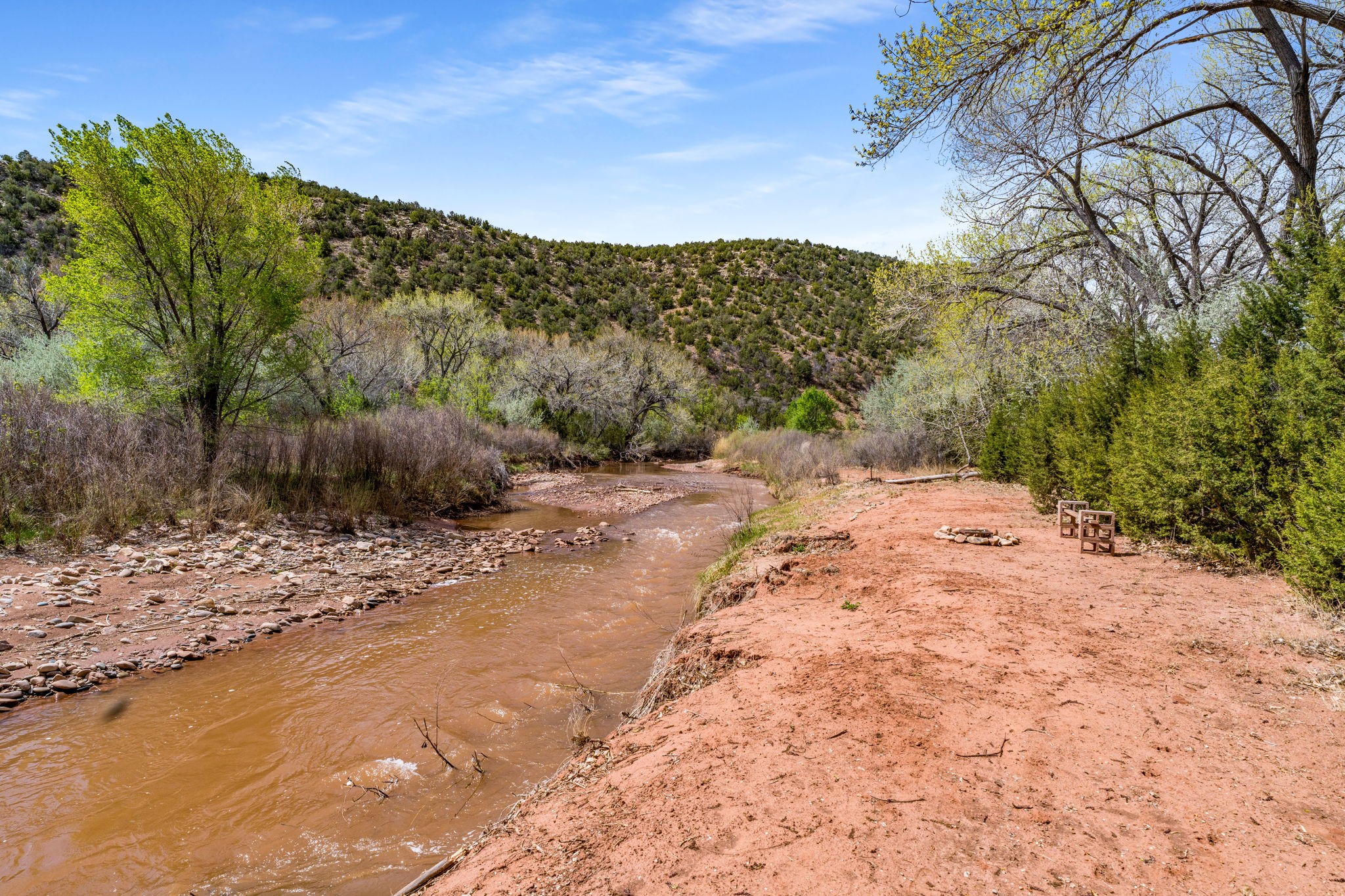 Purchase your own private sanctuary along the banks of the Pecos River. This picturesque property offers a rare blend of natural beauty, usable land, and thoughtful improvements--perfect for those seeking space, serenity, and a connection to the outdoors.The land features established fruit trees including apple, apricot, peach, and plum, along with mature grapevines, wildflowers, and room for gardening or small-scale agriculture. Enjoy multiple outdoor spaces for gatherings, camping, or simply relaxing. The Pecos River runs through the property, while an acequia with irrigation rights borders the eastern boundary. Water rights convey at 2.26 acre-feet. Stunning mountain views and the sound of the river create an unmatched setting.Improvements include a one-car carport, storage shed with attached chicken coop, and a fully renovated 2-bedroom, 2-bath manufactured home on a permanent foundation.Extensive updates provide modern comfort and peace of mind. 2025: plumbing, electrical, HVAC, windows, flooring, sheetrock, paint, tile, cabinetry, countertops, and full exterior upgrades. 2026: interior fixtures, water softener, water break system, and hot water recirculating line.All domestic water lines, including the recirculating line, updated to PEX (2025) with angle stops and supply lines replaced (2025). Washer and refrigerator water boxes replaced (2025). Only original plumbing is the main sewer line. Bathrooms include electric heat strip heaters.Utilities: private well, septic, fiber optic internet, and owned propane tank.A unique riverfront retreat, full-time residence, or investment opportunity.