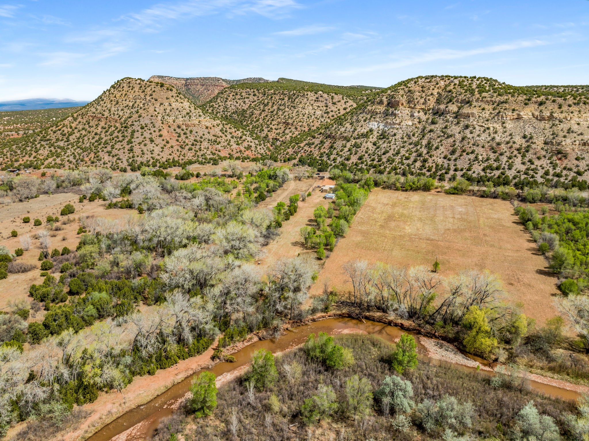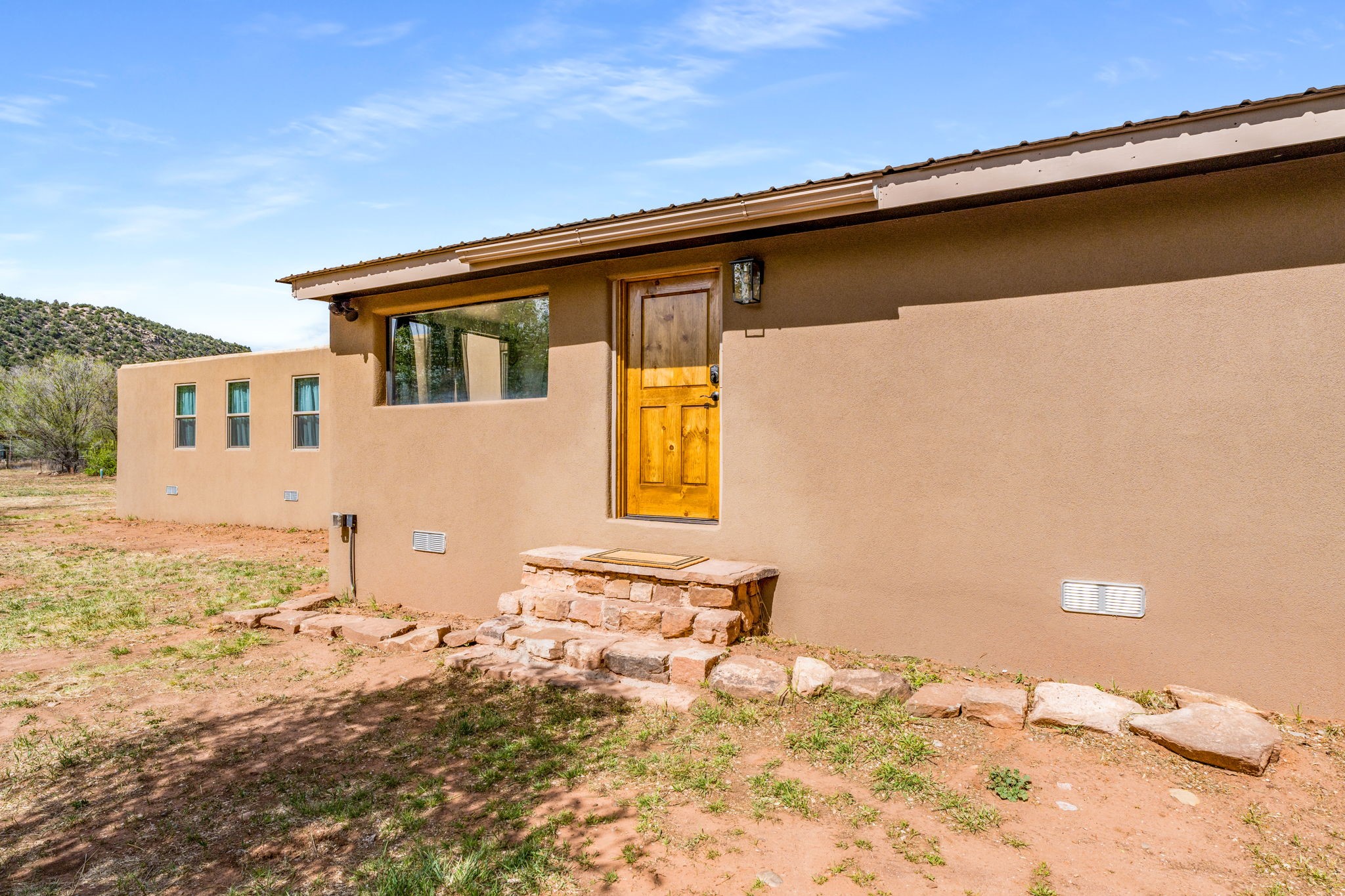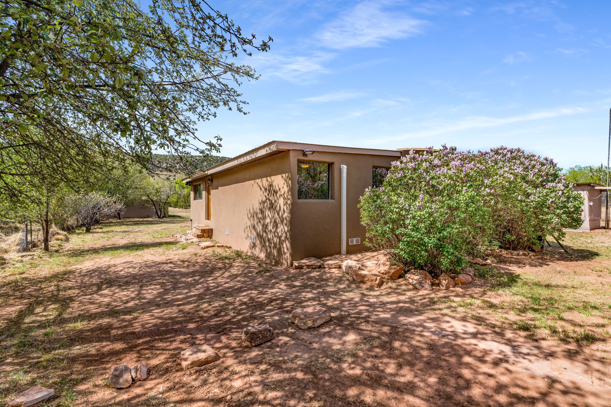 Purchase your own private sanctuary along the banks of the Pecos River. This picturesque property offers a rare blend of natural beauty, usable land, and thoughtful improvements--perfect for those seeking space, serenity, and a connection to the outdoors.The land features established fruit trees including apple, apricot, peach, and plum, along with mature grapevines, wildflowers, and room for gardening or small-scale agriculture. Enjoy multiple outdoor spaces for gatherings, camping, or simply relaxing. The Pecos River runs through the property, while an acequia with irrigation rights borders the eastern boundary. Water rights convey at 2.26 acre-feet. Stunning mountain views and the sound of the river create an unmatched setting.Improvements include a one-car carport, storage shed with attached chicken coop, and a fully renovated 2-bedroom, 2-bath manufactured home on a permanent foundation.Extensive updates provide modern comfort and peace of mind. 2025: plumbing, electrical, HVAC, windows, flooring, sheetrock, paint, tile, cabinetry, countertops, and full exterior upgrades. 2026: interior fixtures, water softener, water break system, and hot water recirculating line.All domestic water lines, including the recirculating line, updated to PEX (2025) with angle stops and supply lines replaced (2025). Washer and refrigerator water boxes replaced (2025). Only original plumbing is the main sewer line. Bathrooms include electric heat strip heaters.Utilities: private well, septic, fiber optic internet, and owned propane tank.A unique riverfront retreat, full-time residence, or investment opportunity.